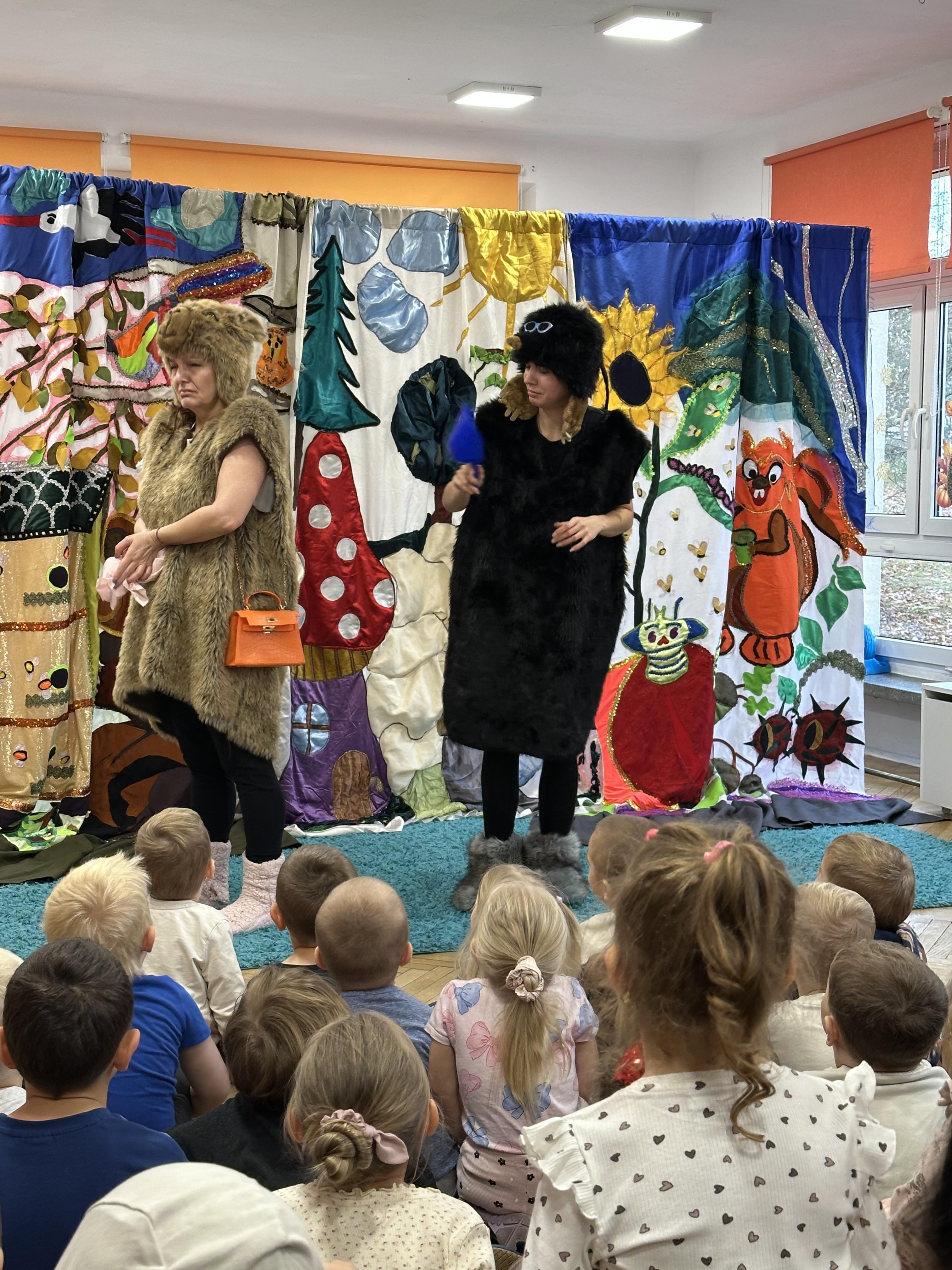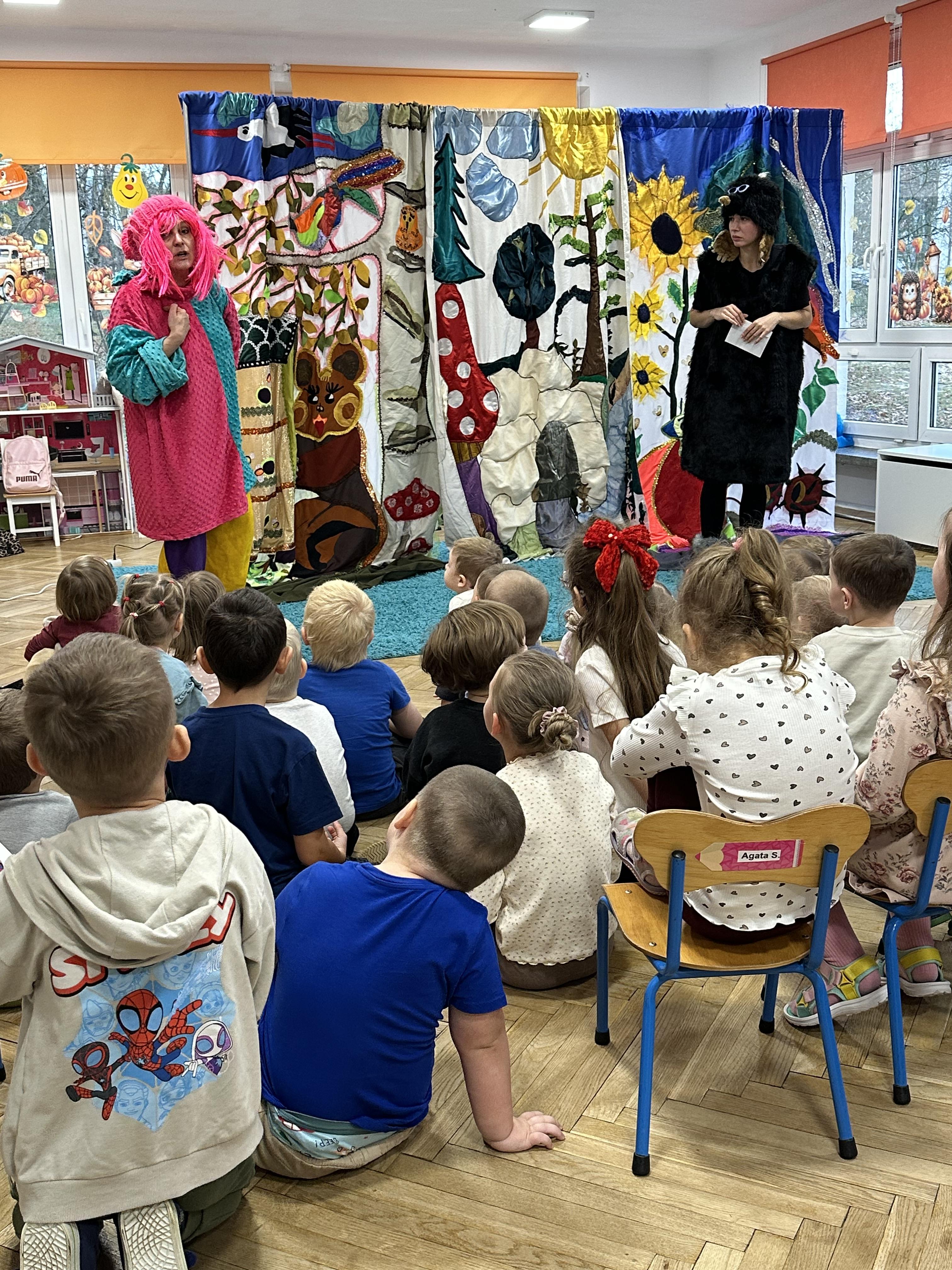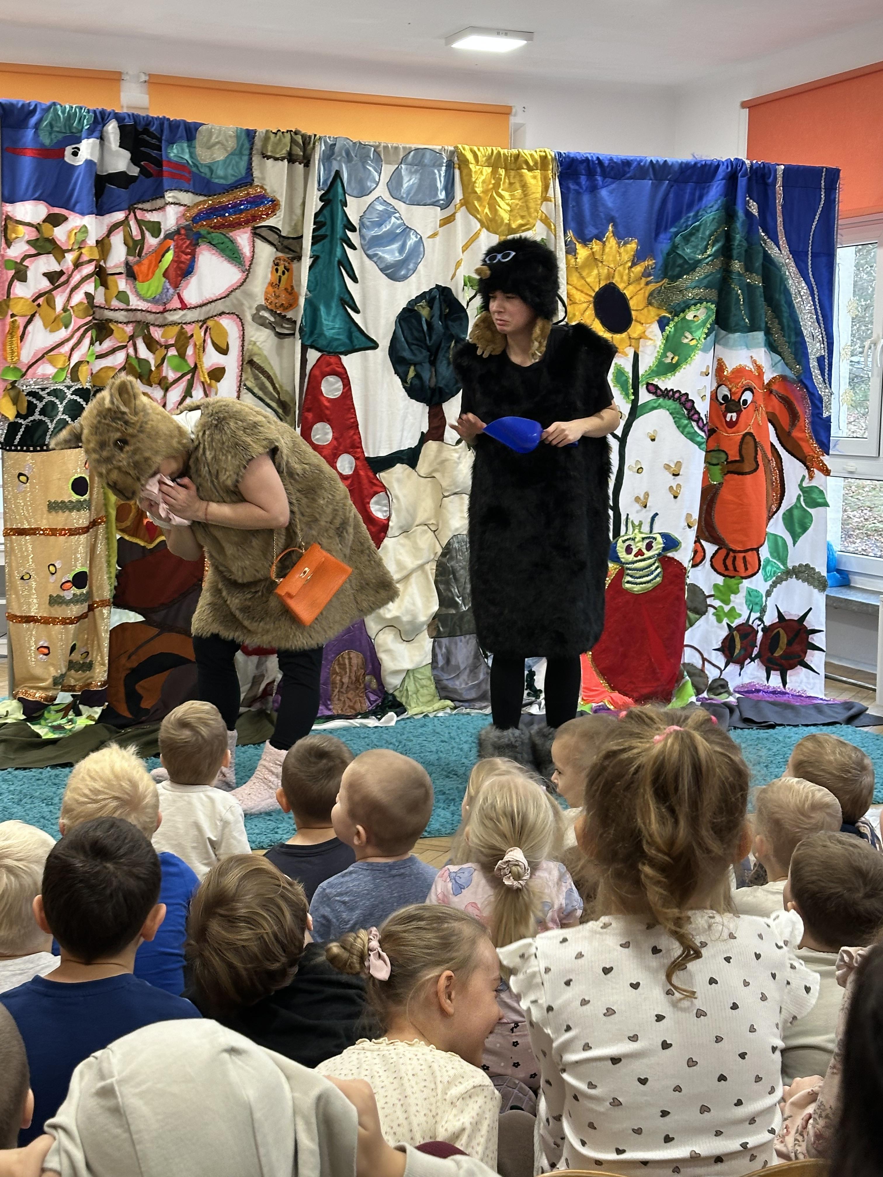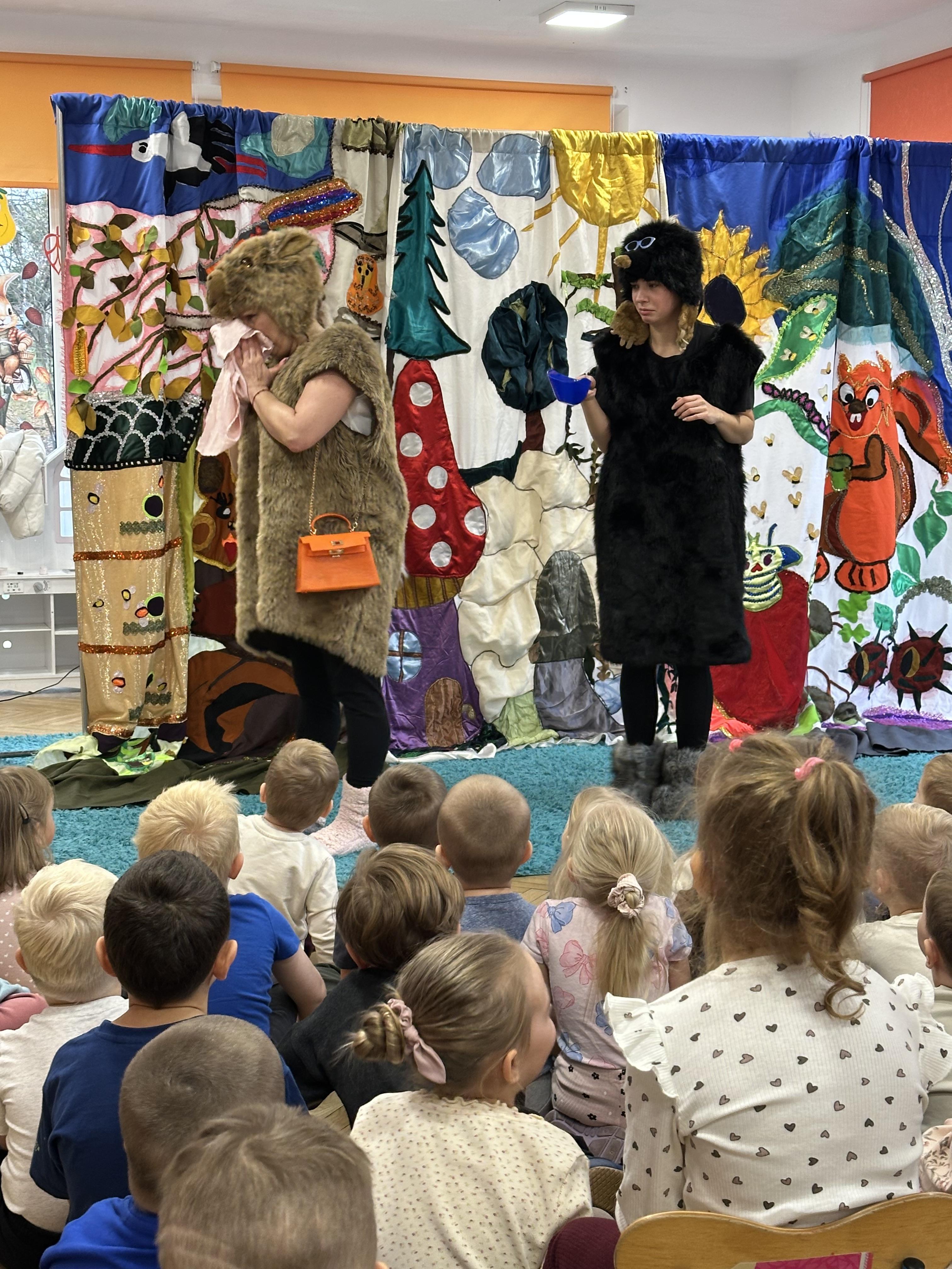 Dzisiaj nasze przedszkole odwiedził Teatrzyk Kanon z Krakowa ze spektaklem "Na łące i na polanie", który opowiadał o przygodach krecika Czesia i sarenki Grażynki. Spektakl przypomniał dzieciom o takich wartościach jak przyjaźń, dobroć i prawdomówność, a także pokazał, jak ważne jest zachowanie kultury osobistej. W roli negatywnej pojawiała się dziewczynka Mariolka, która plotkowała.