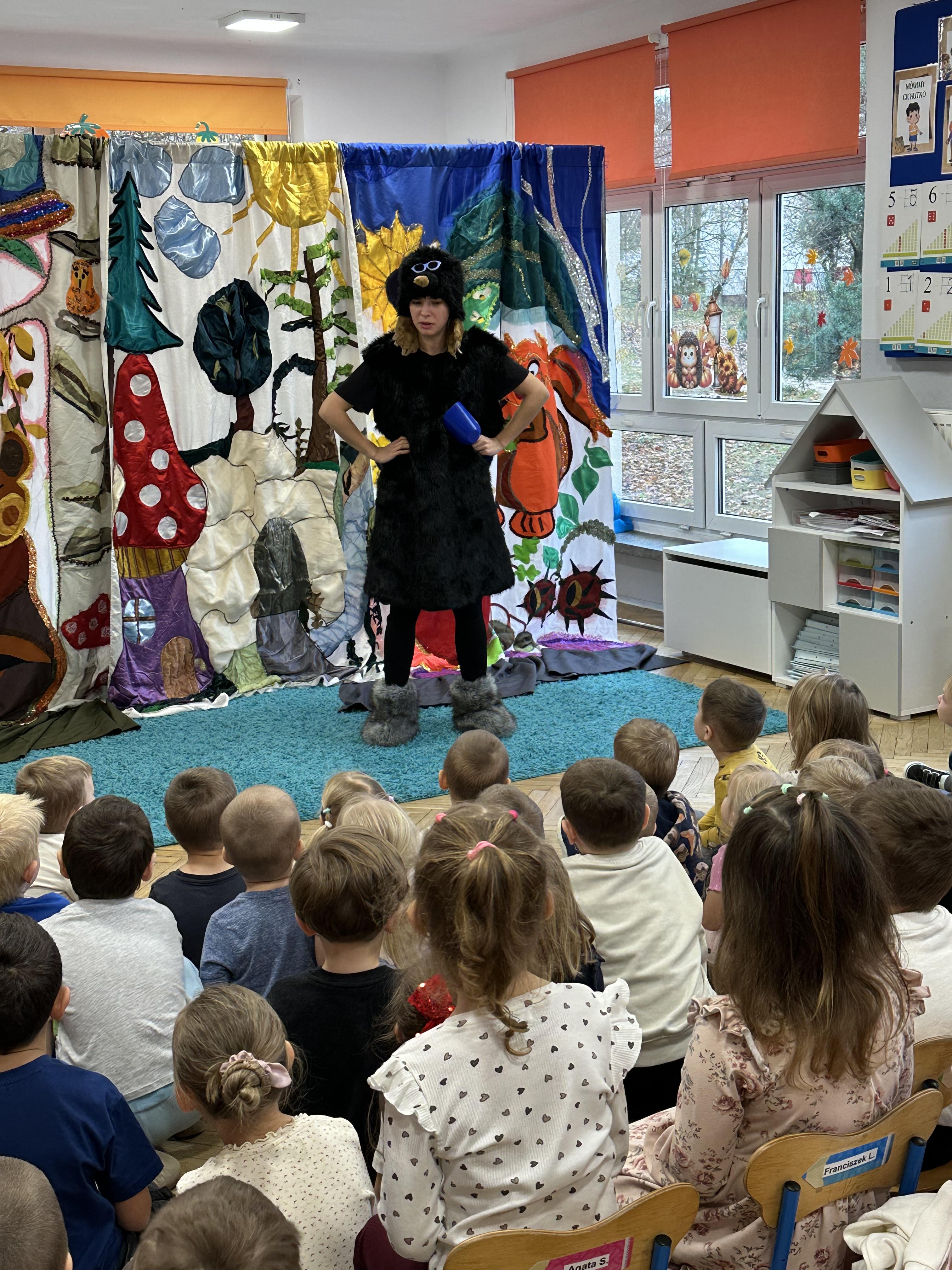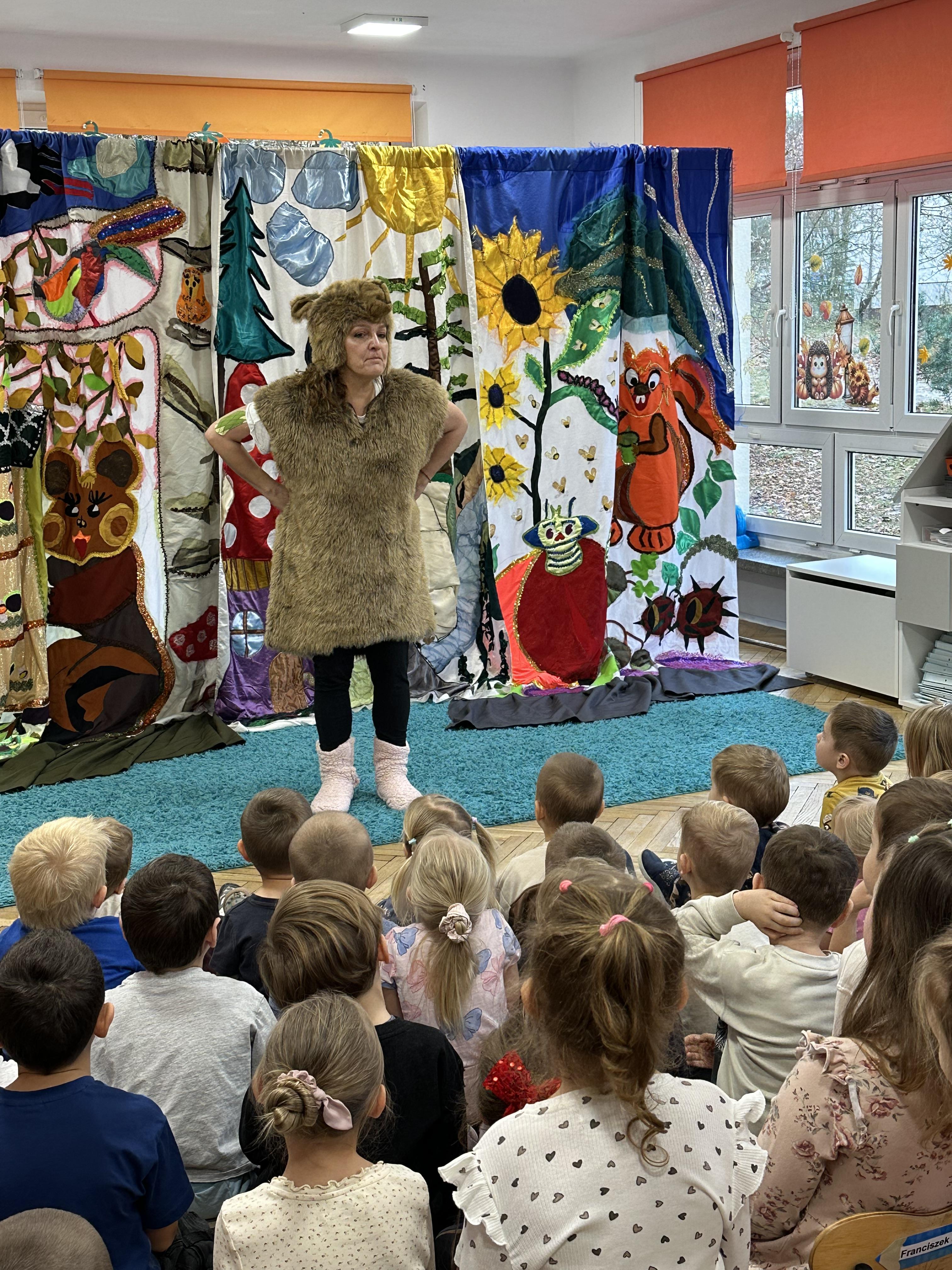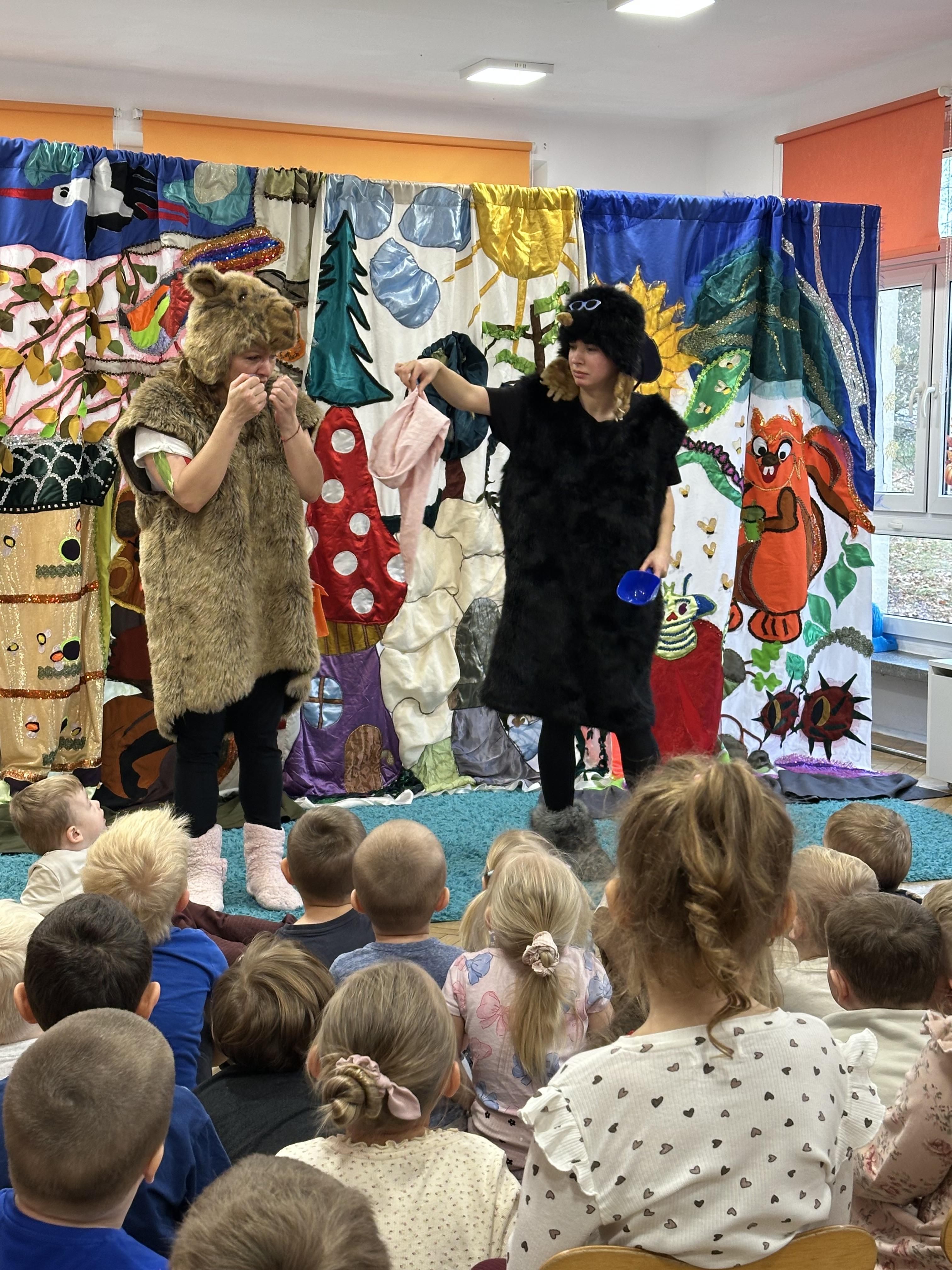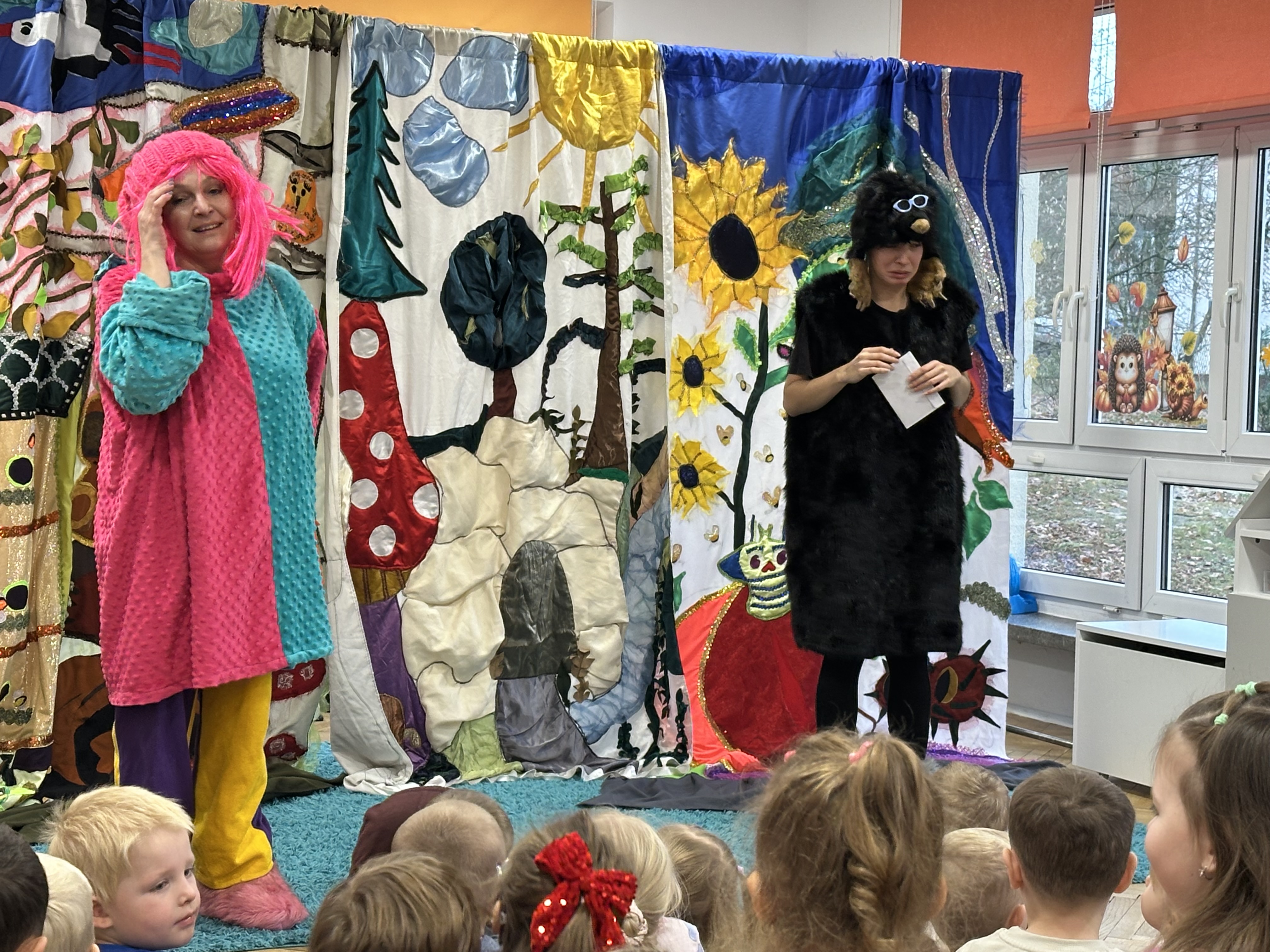 Dzisiaj nasze przedszkole odwiedził Teatrzyk Kanon z Krakowa ze spektaklem "Na łące i na polanie", który opowiadał o przygodach krecika Czesia i sarenki Grażynki. Spektakl przypomniał dzieciom o takich wartościach jak przyjaźń, dobroć i prawdomówność, a także pokazał, jak ważne jest zachowanie kultury osobistej. W roli negatywnej pojawiała się dziewczynka Mariolka, która plotkowała.