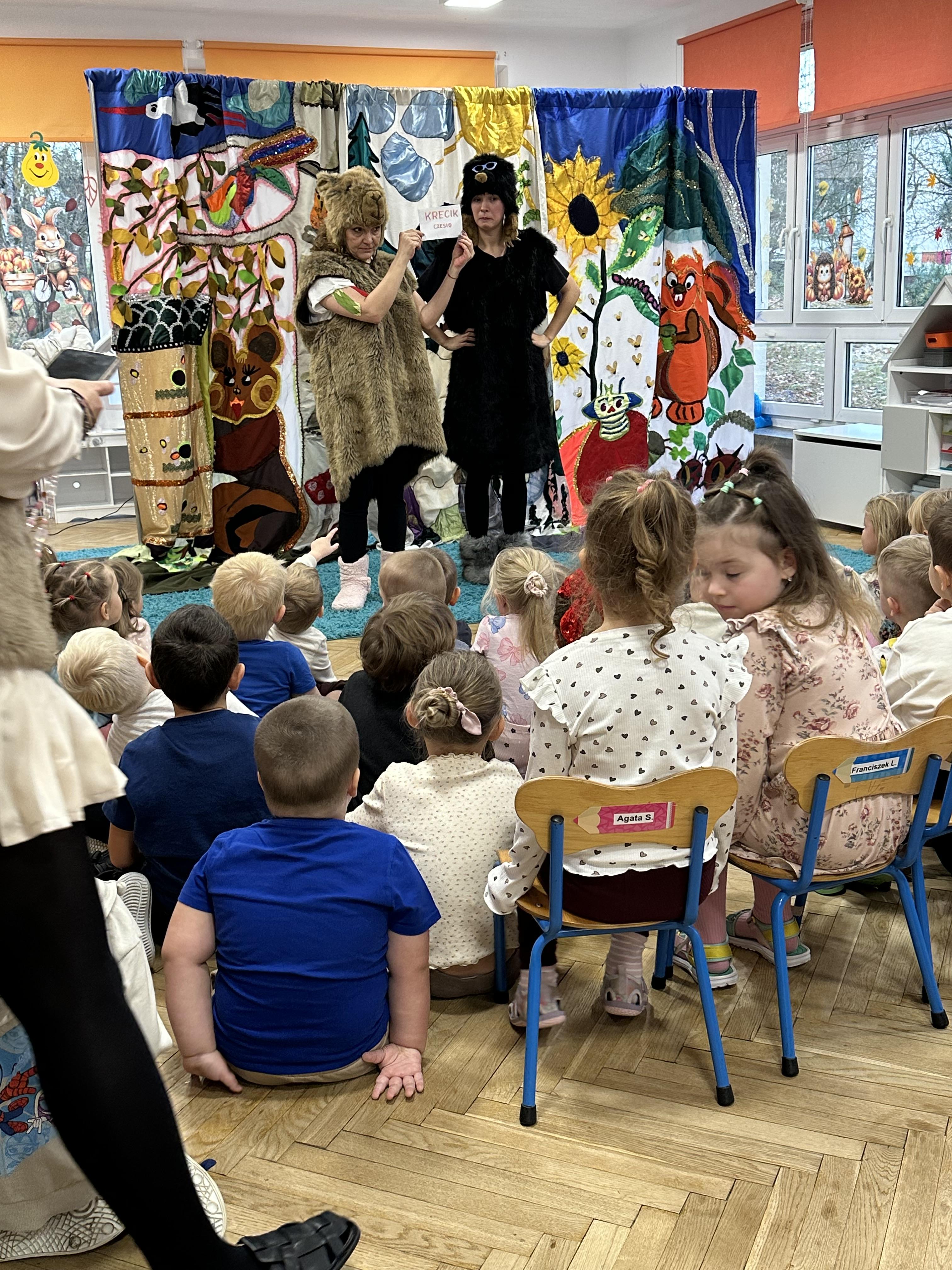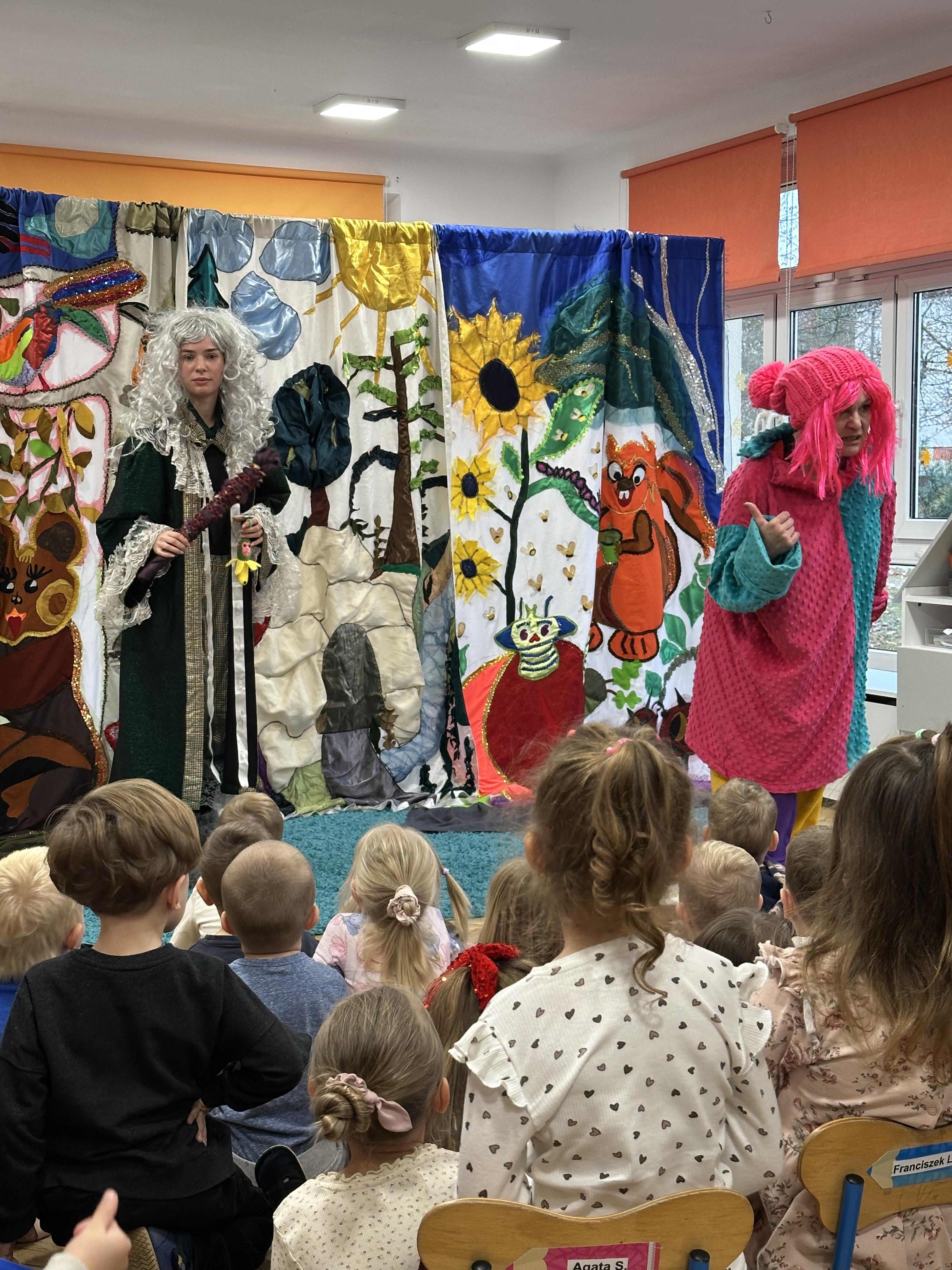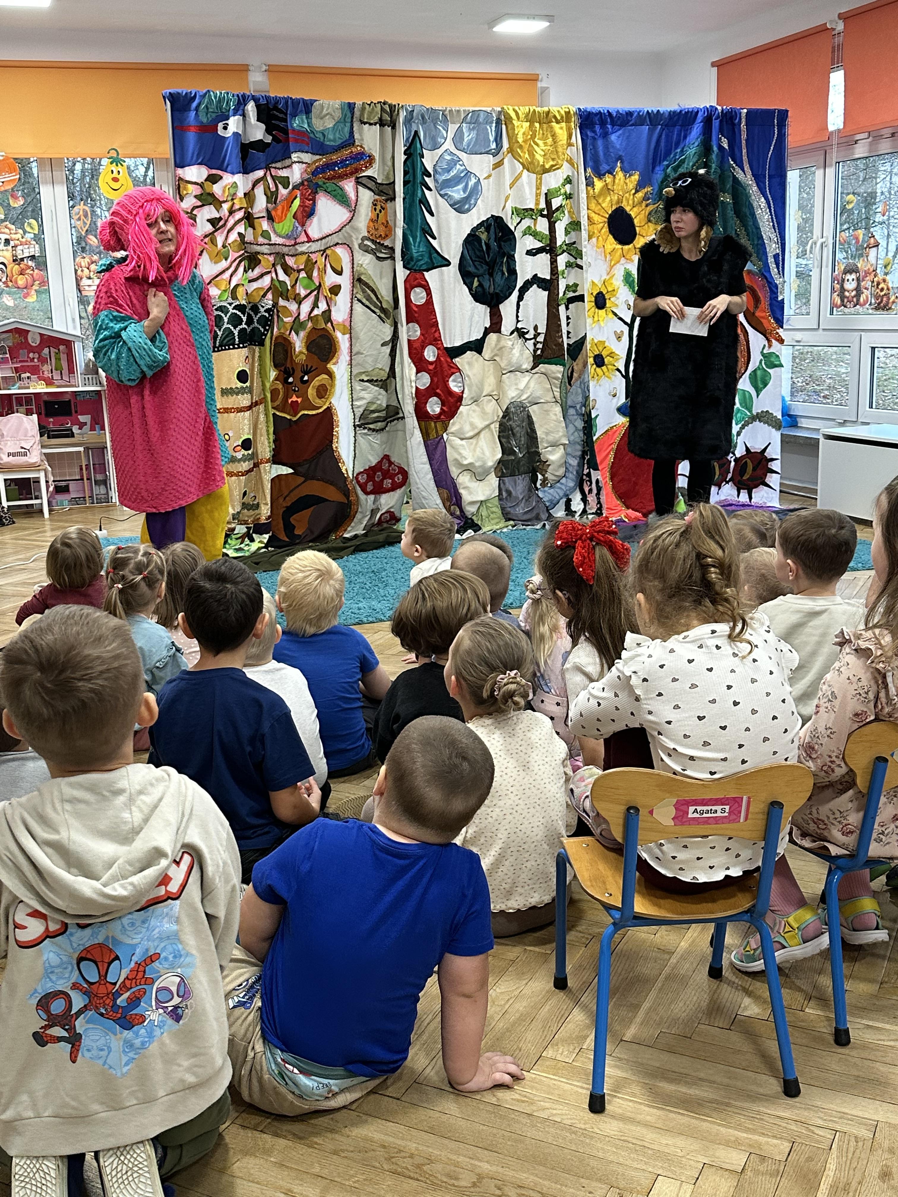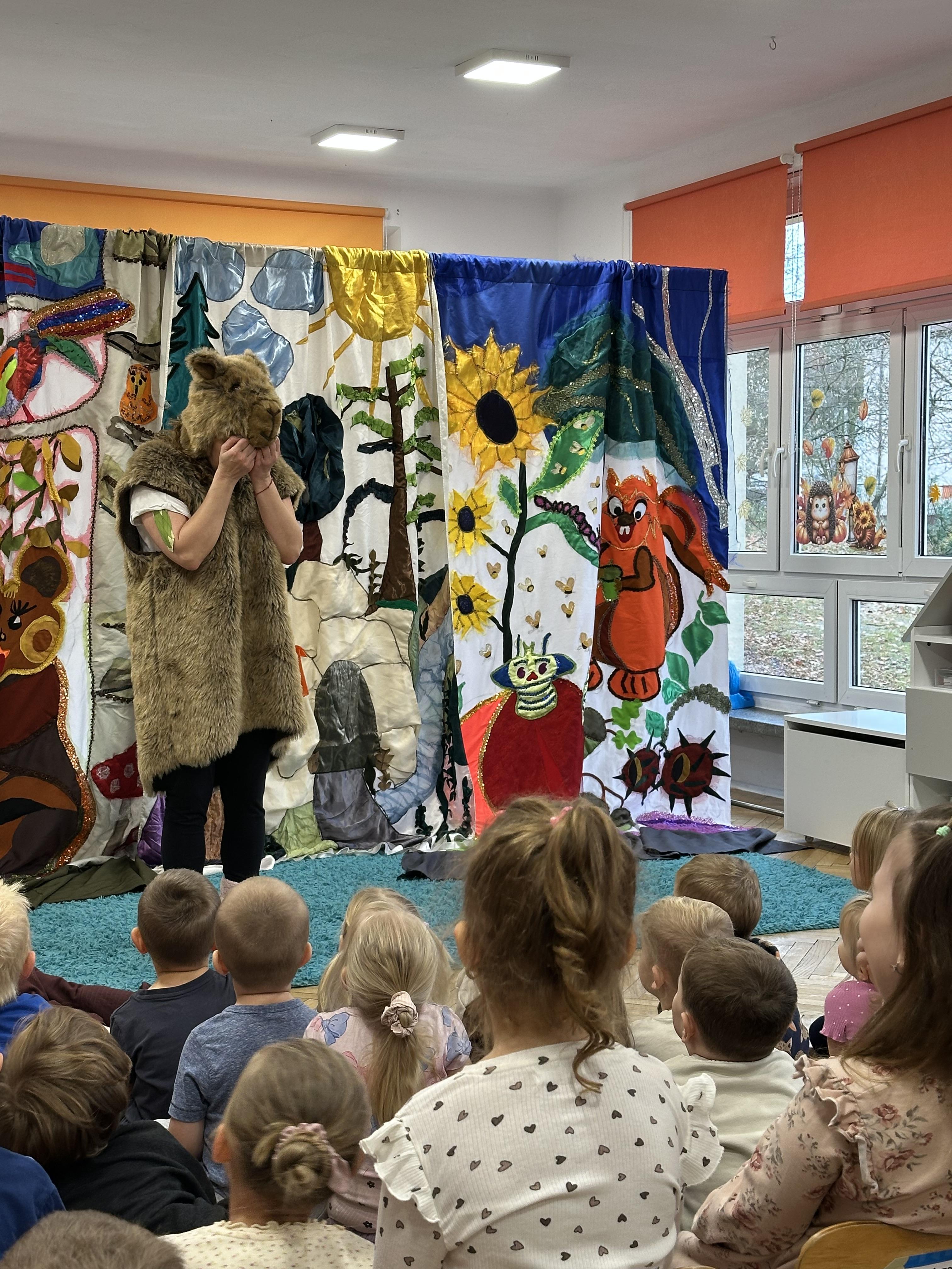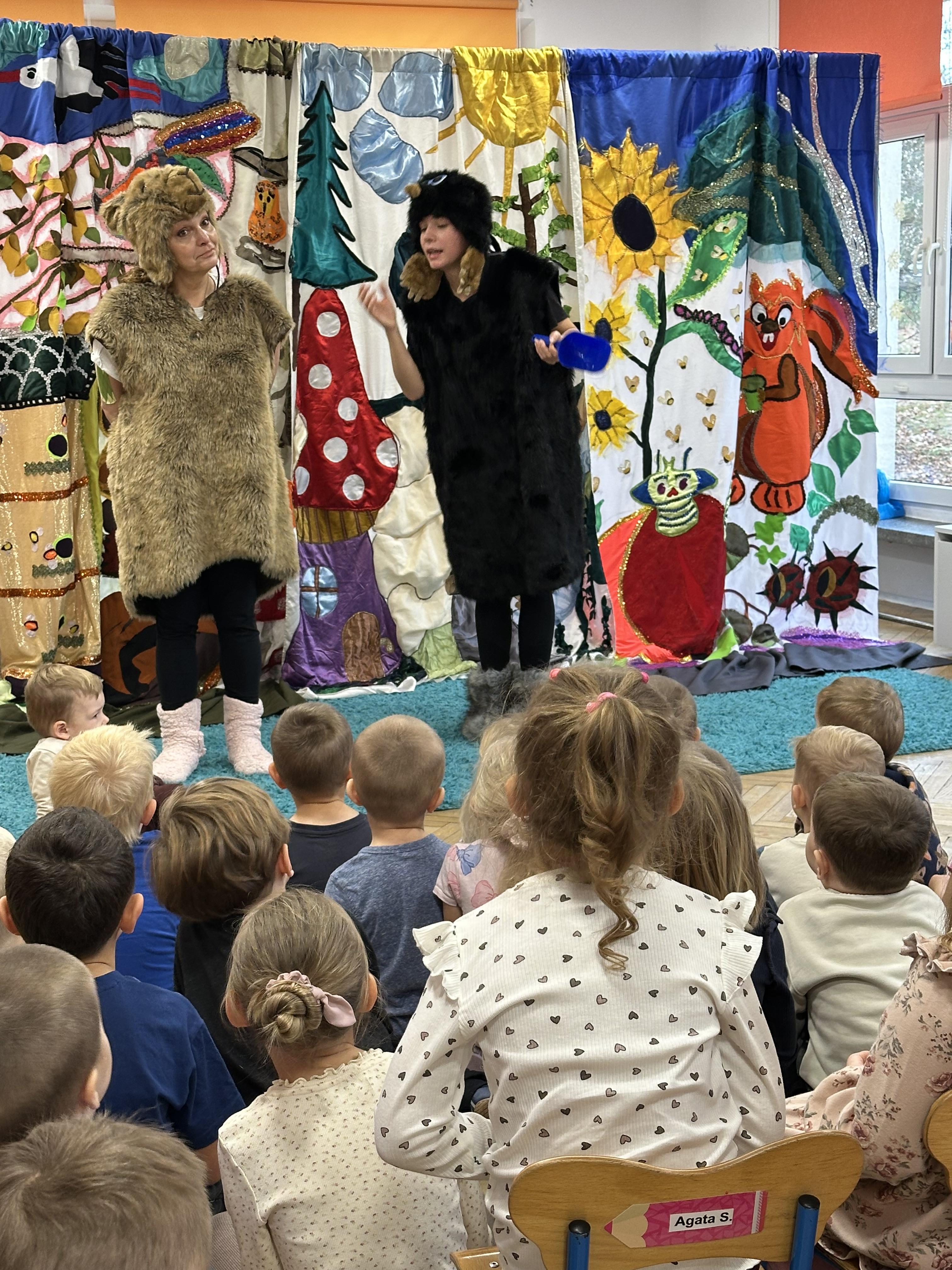 Dzisiaj nasze przedszkole odwiedził Teatrzyk Kanon z Krakowa ze spektaklem "Na łące i na polanie", który opowiadał o przygodach krecika Czesia i sarenki Grażynki. Spektakl przypomniał dzieciom o takich wartościach jak przyjaźń, dobroć i prawdomówność, a także pokazał, jak ważne jest zachowanie kultury osobistej. W roli negatywnej pojawiała się dziewczynka Mariolka, która plotkowała.