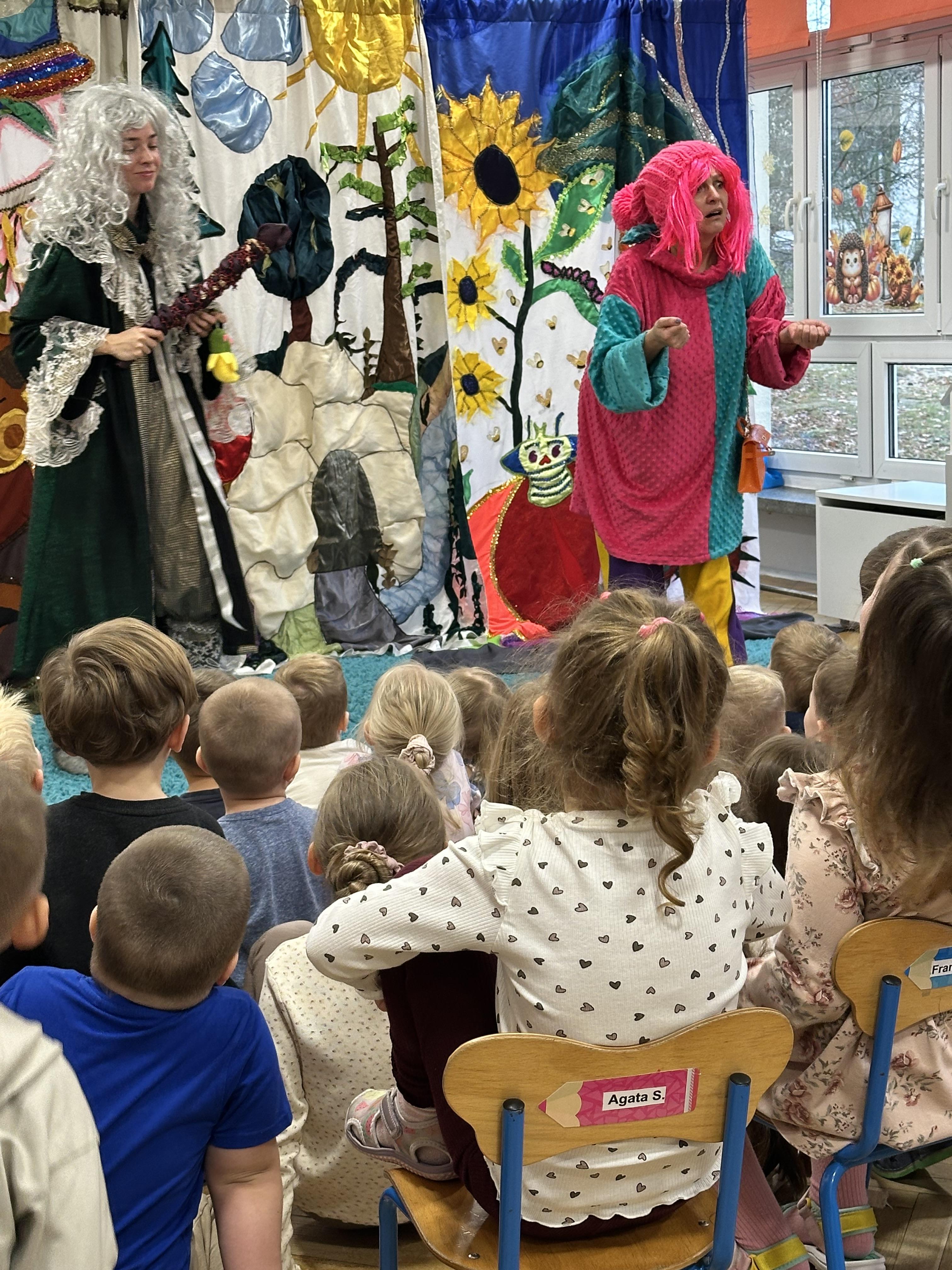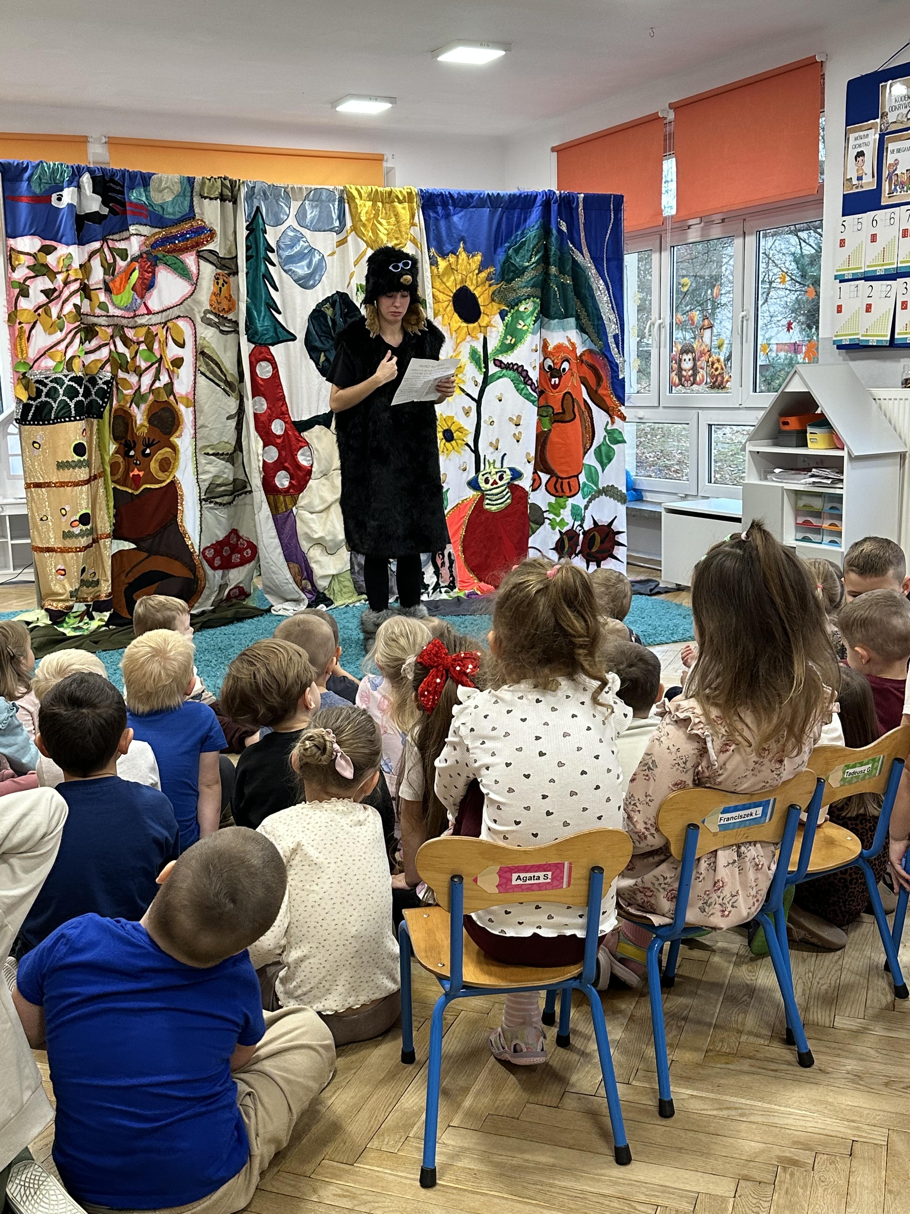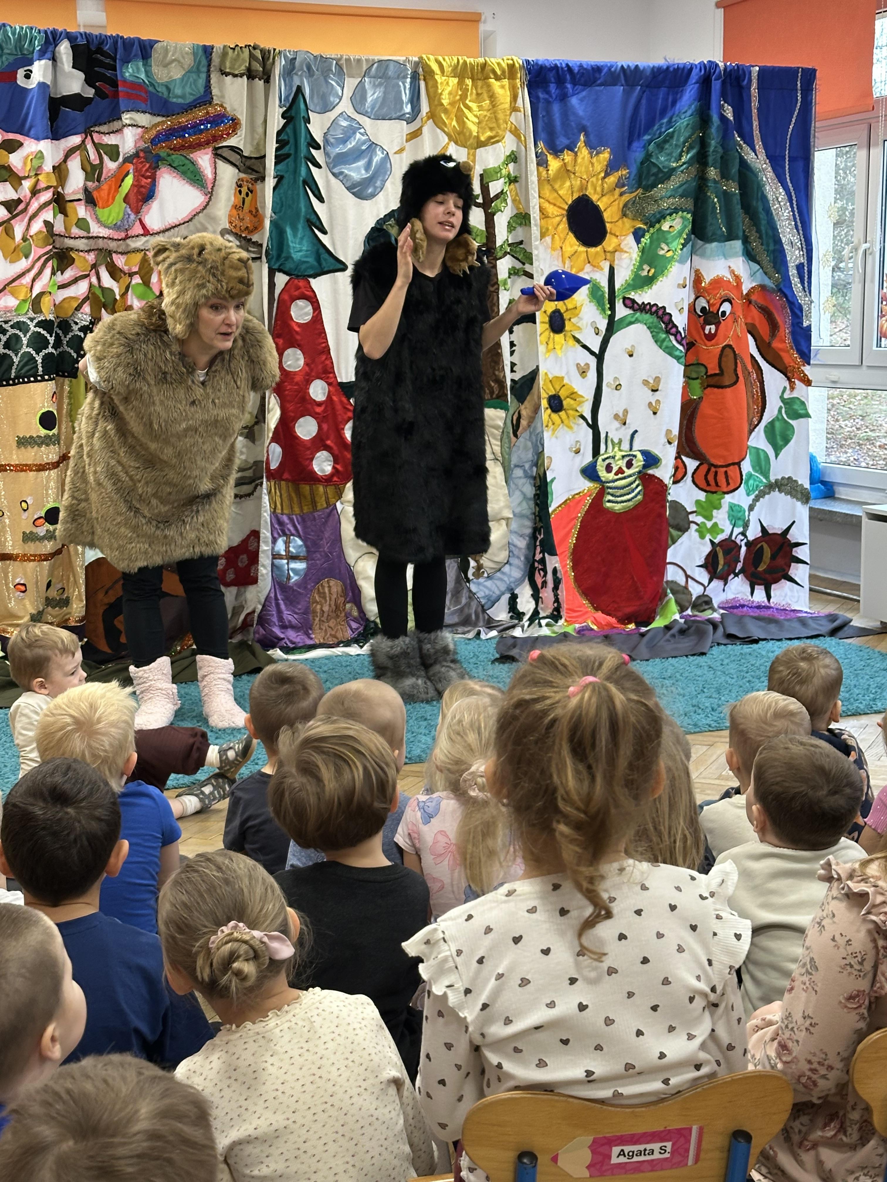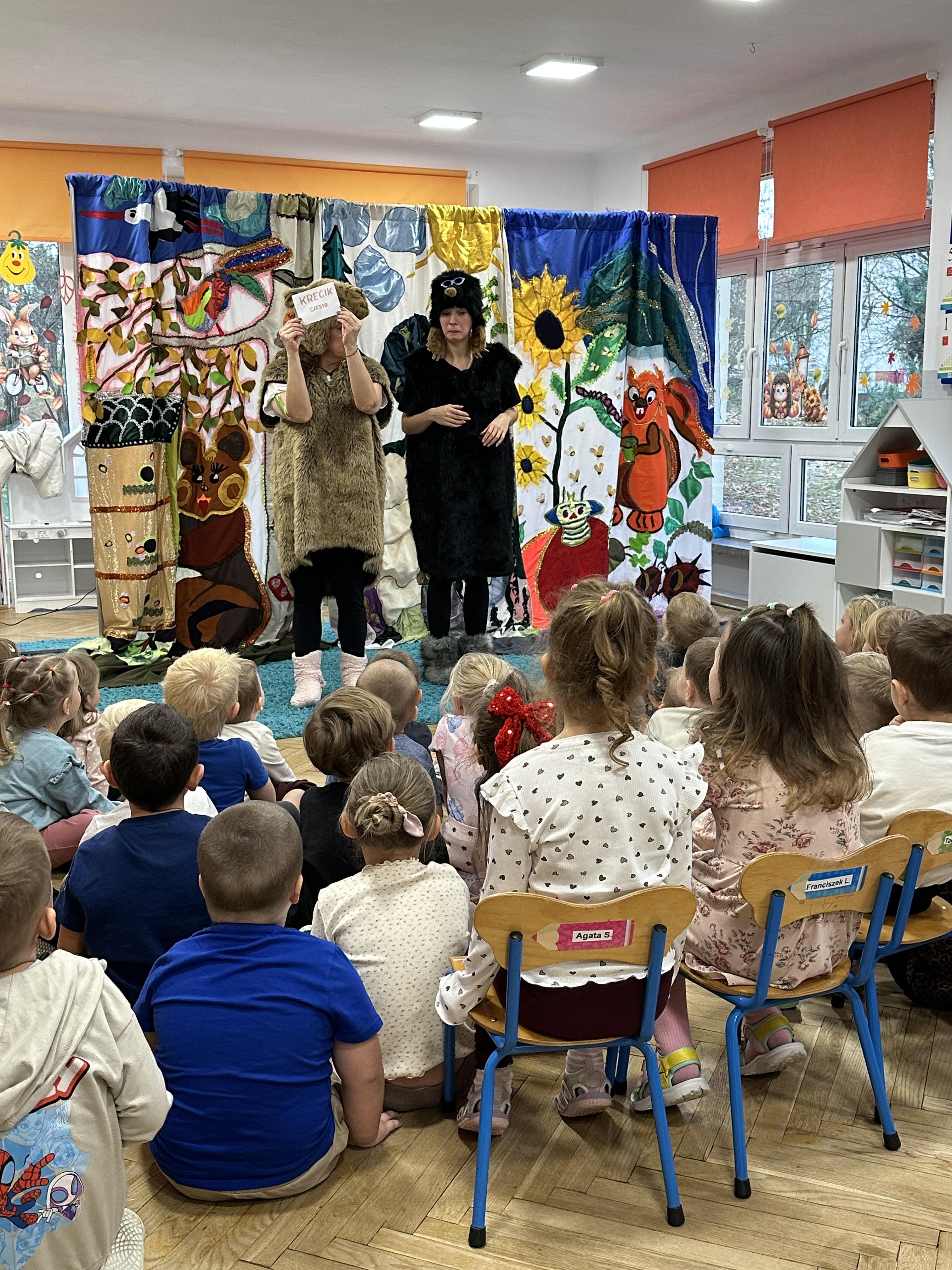 Dzisiaj nasze przedszkole odwiedził Teatrzyk Kanon z Krakowa ze spektaklem "Na łące i na polanie", który opowiadał o przygodach krecika Czesia i sarenki Grażynki. Spektakl przypomniał dzieciom o takich wartościach jak przyjaźń, dobroć i prawdomówność, a także pokazał, jak ważne jest zachowanie kultury osobistej. W roli negatywnej pojawiała się dziewczynka Mariolka, która plotkowała.