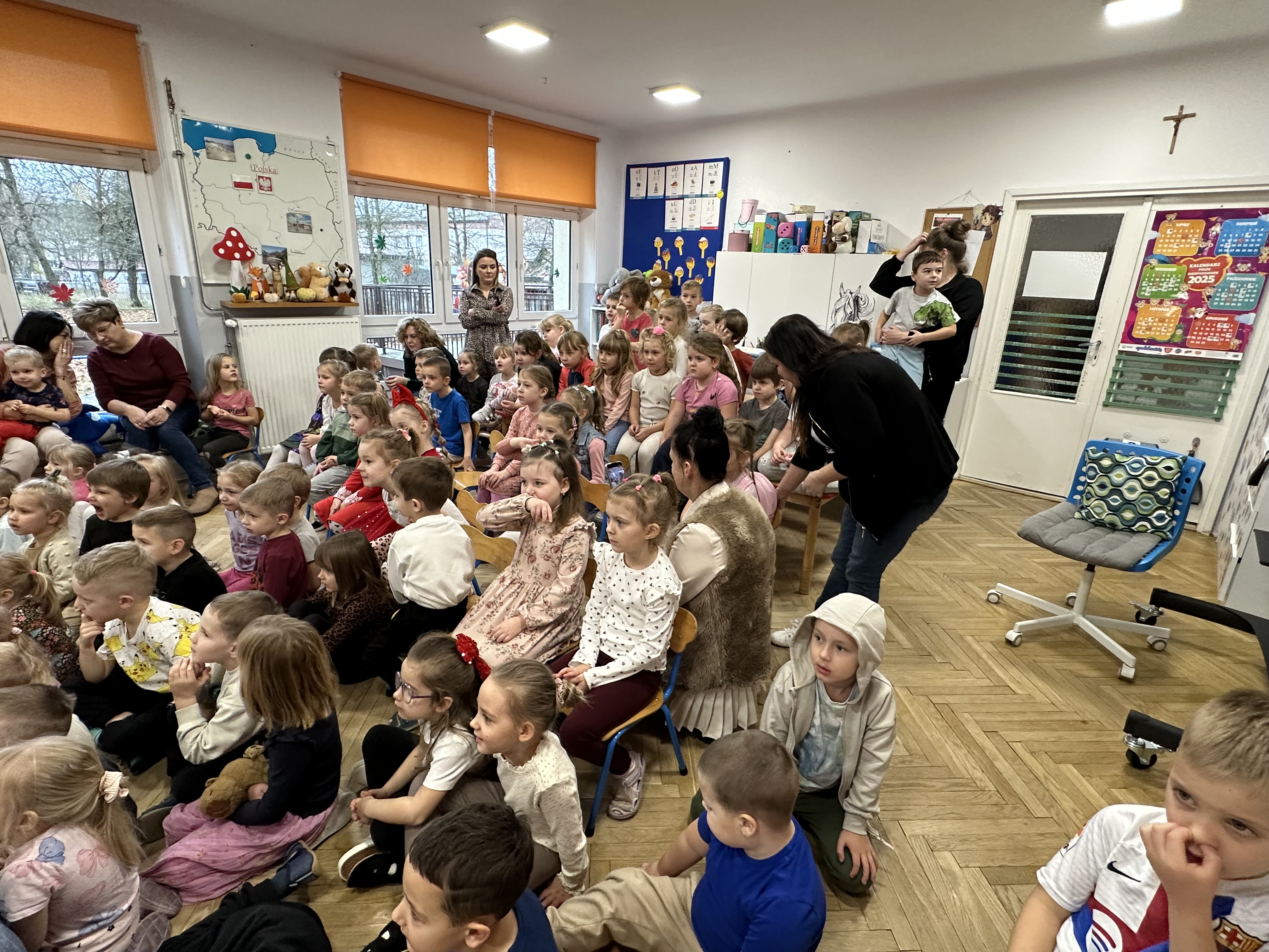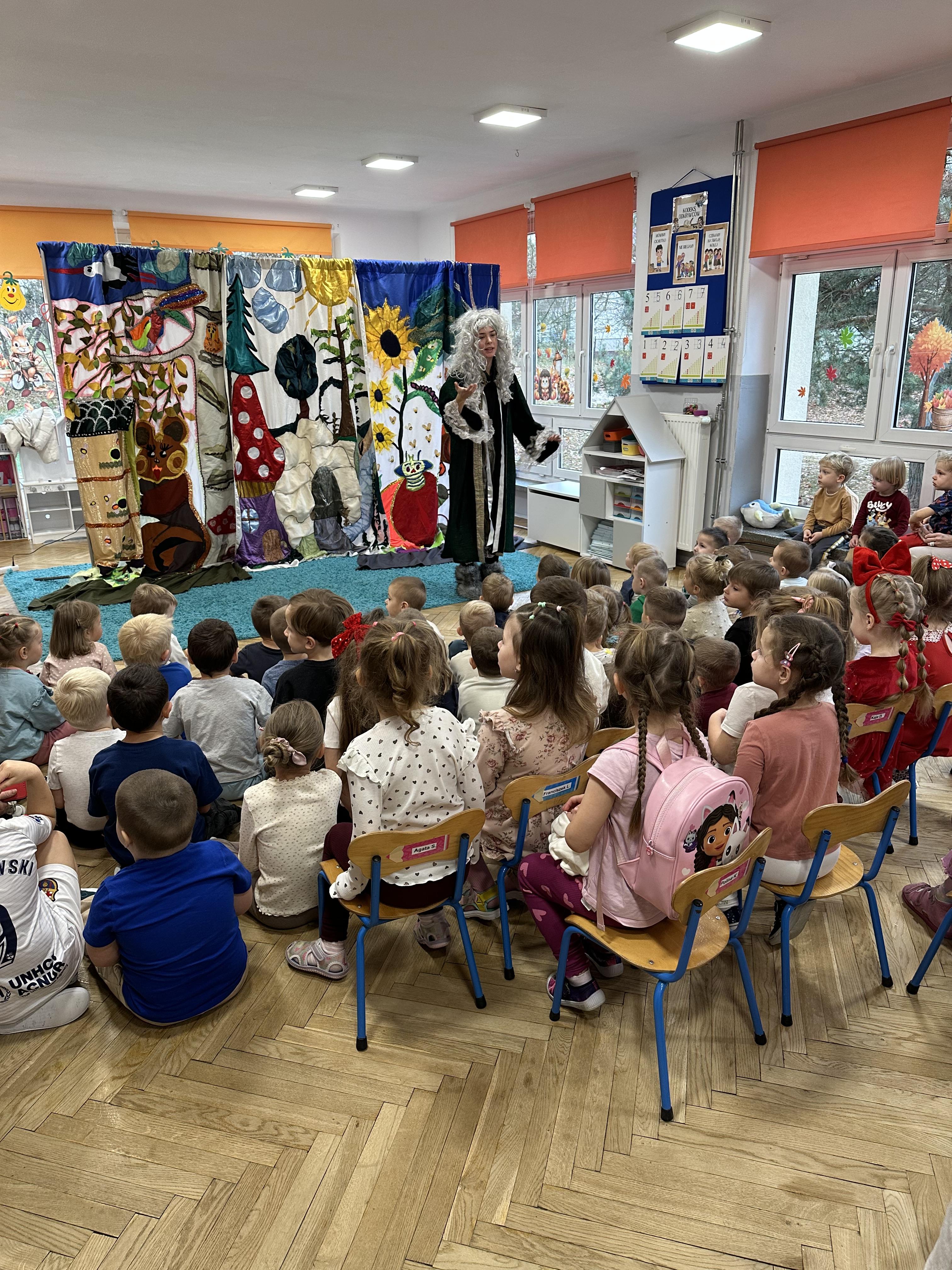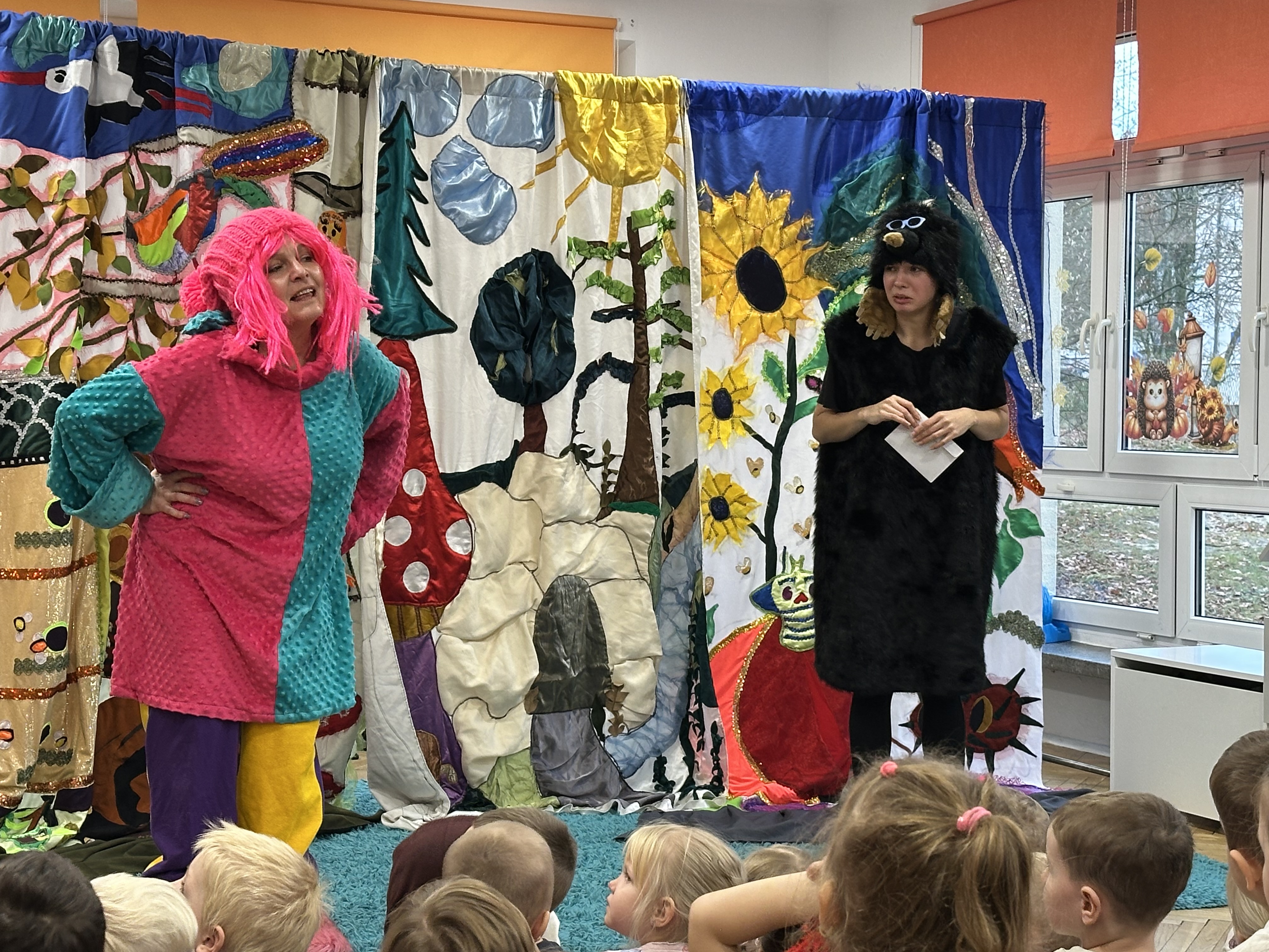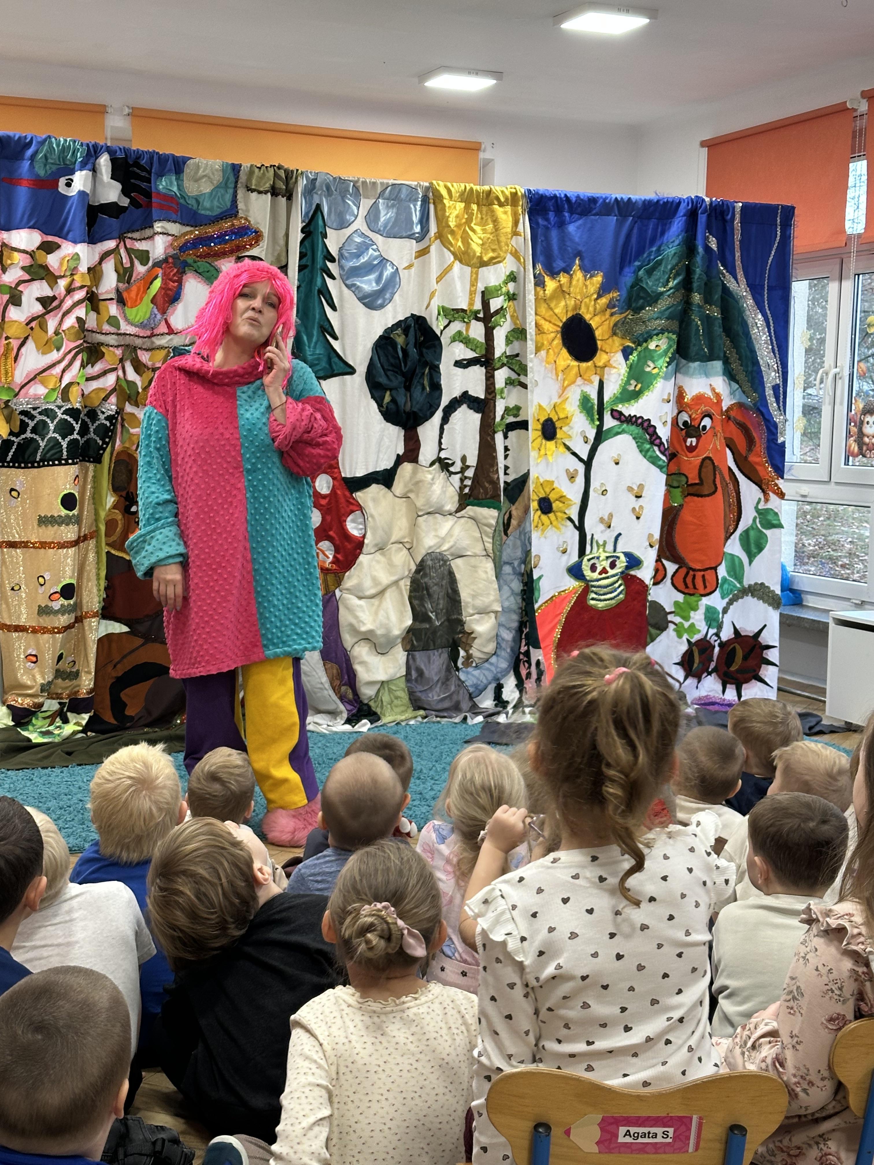 Dzisiaj nasze przedszkole odwiedził Teatrzyk Kanon z Krakowa ze spektaklem "Na łące i na polanie", który opowiadał o przygodach krecika Czesia i sarenki Grażynki. Spektakl przypomniał dzieciom o takich wartościach jak przyjaźń, dobroć i prawdomówność, a także pokazał, jak ważne jest zachowanie kultury osobistej. W roli negatywnej pojawiała się dziewczynka Mariolka, która plotkowała.