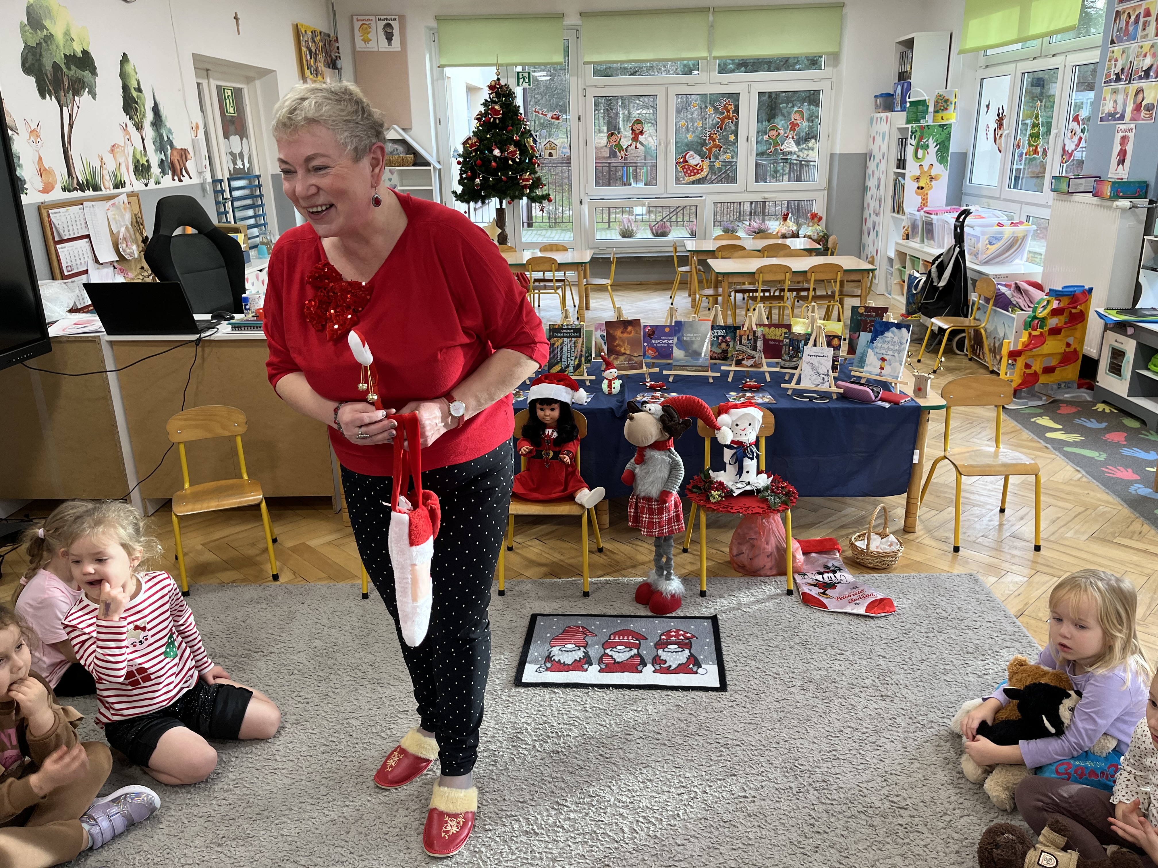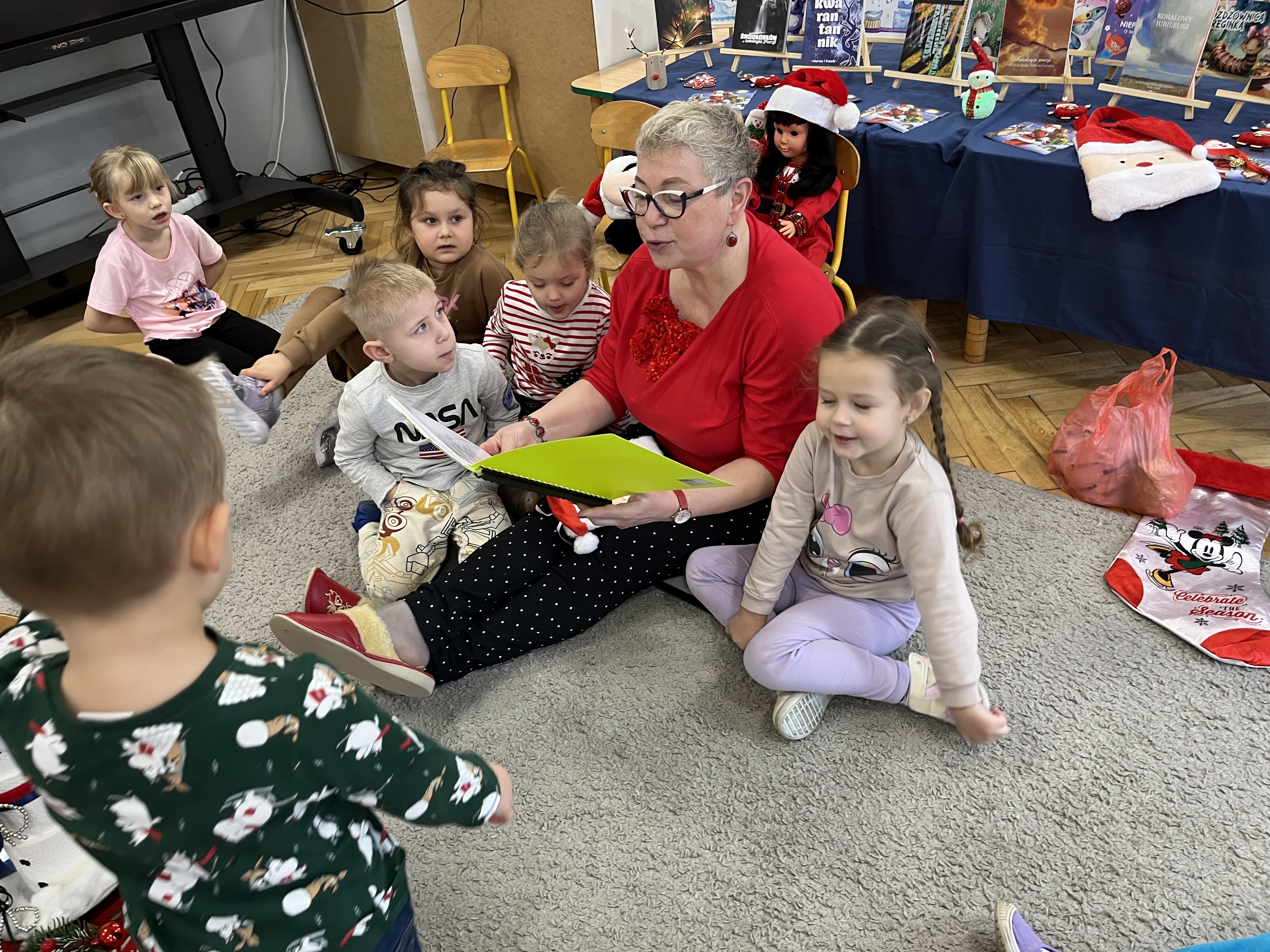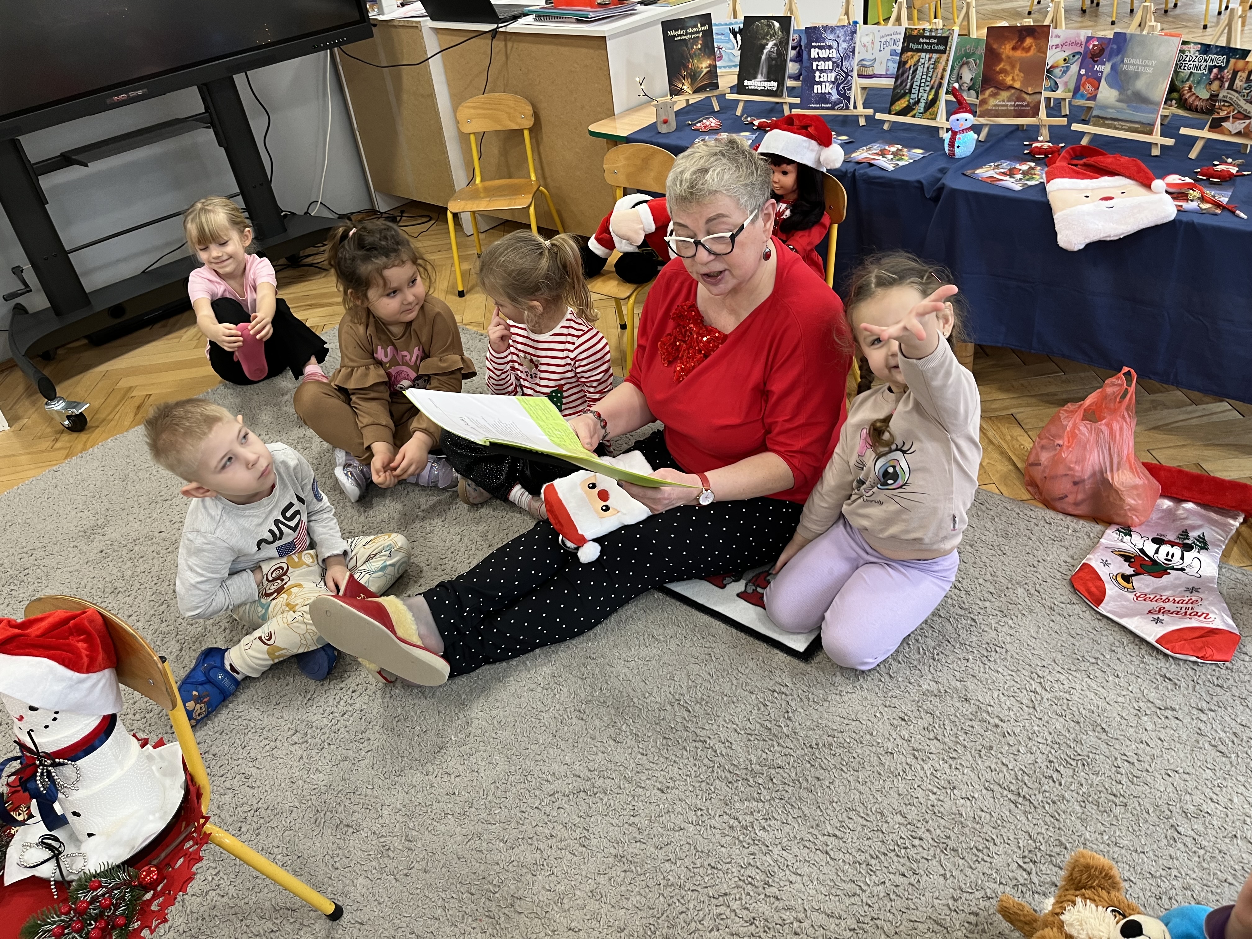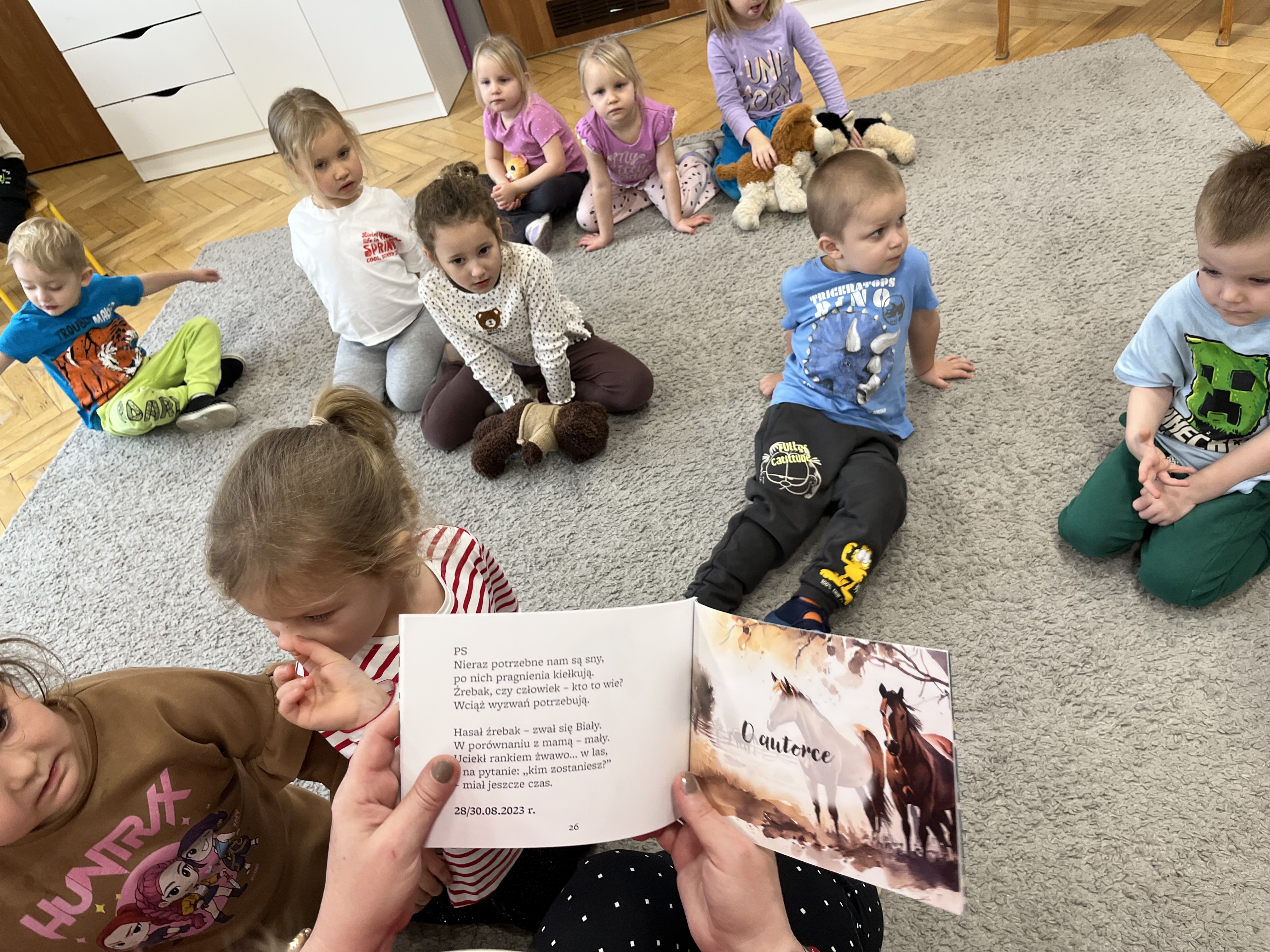 W naszym przedszkolu odbyło się wyjątkowe wydarzenie! Odwiedziła nas Pani Helena Gleń – autorka bajek, wierszy i książek edukacyjnych dla dzieci. Przedszkolaki miały okazję poznać prawdziwą pisarkę, zobaczyć jej książki oraz dowiedzieć się, jak powstają opowieści. Podczas spotkania dzieci z zainteresowaniem słuchały czytanych przez autorkę wierszy, a następnie jednej wybranej bajki, która szczególnie pobudziła ich wyobraźnię. Przedszkolaki aktywnie uczestniczyły w rozmowie, dzieliły się swoimi spostrzeżeniami i zadawały pytania. Było to bardzo inspirujące i pełne magii spotkanie, które zachęciło najmłodszych do sięgania po książki i odkrywania świata literatury.