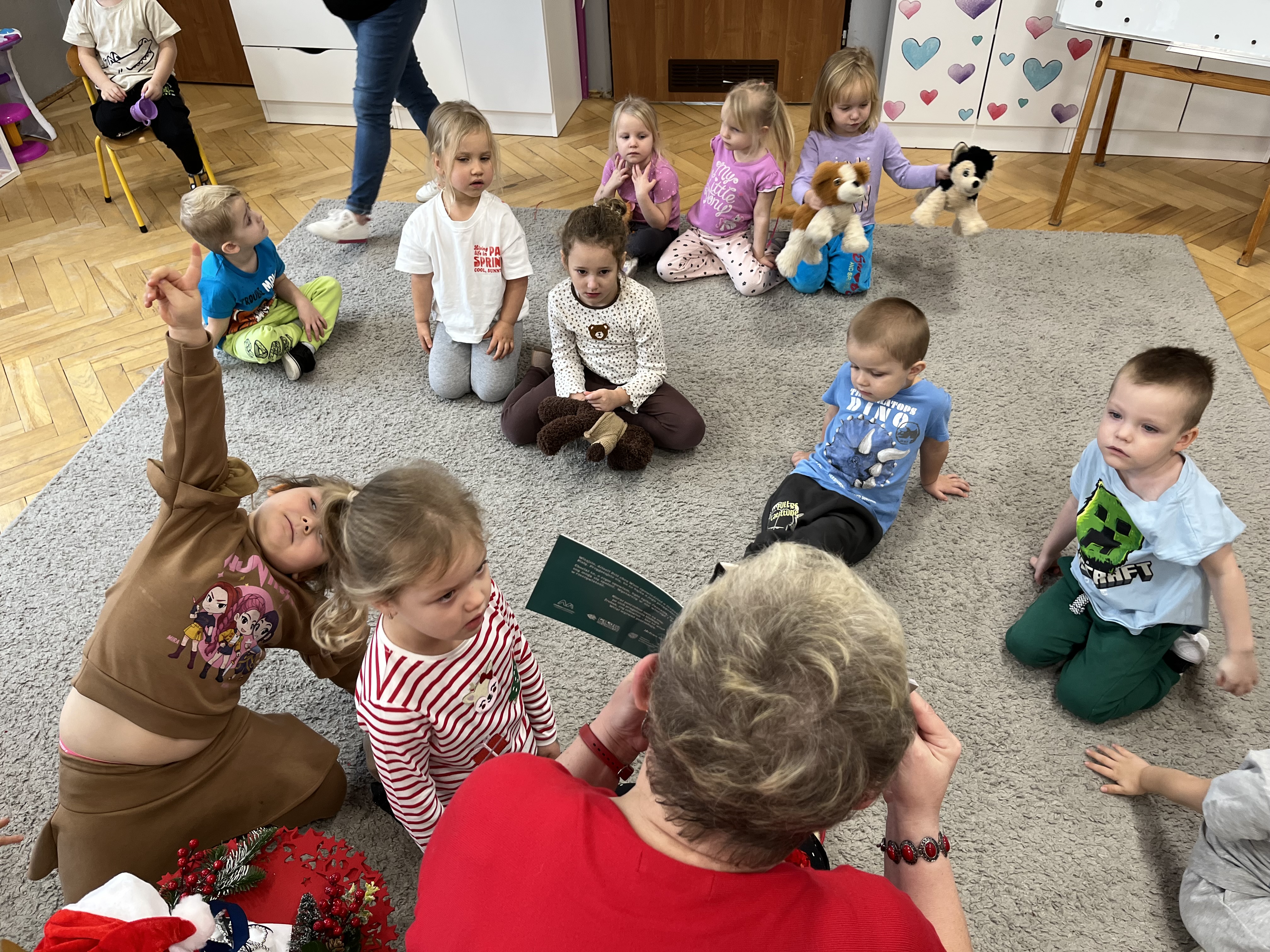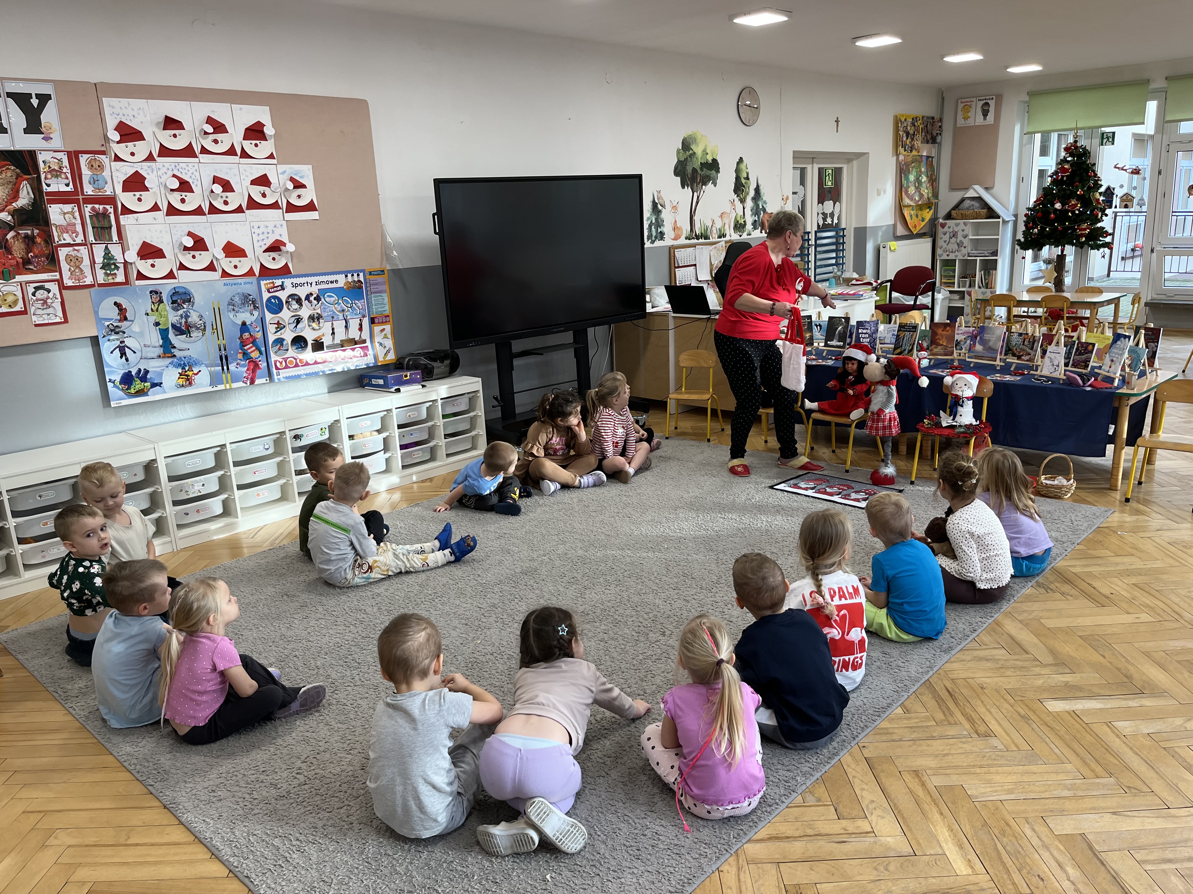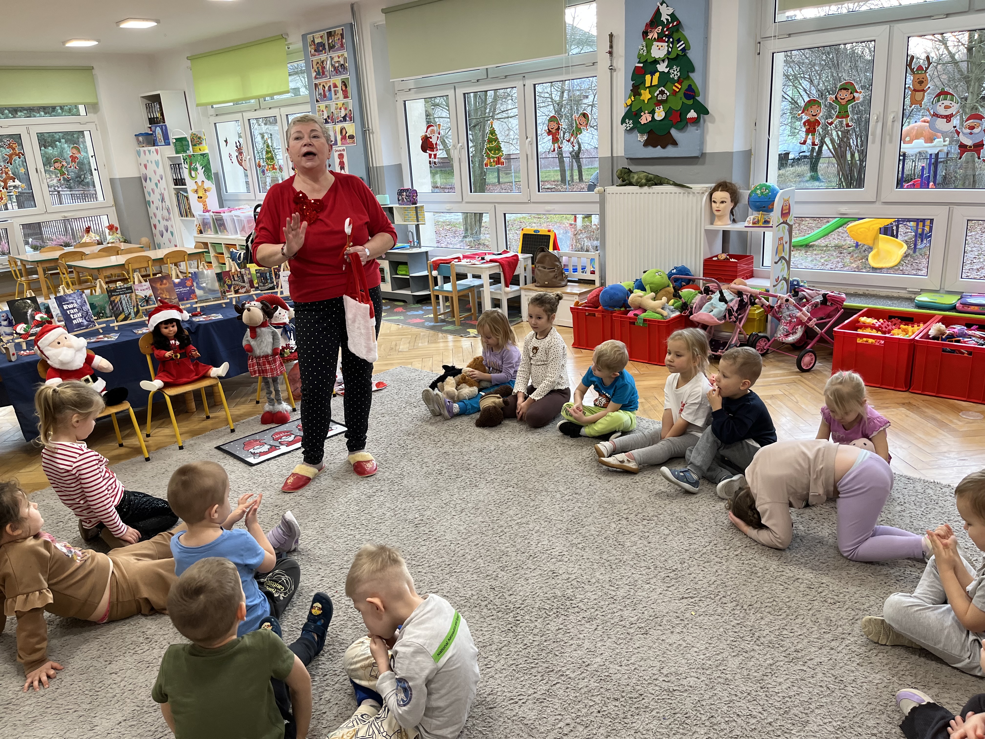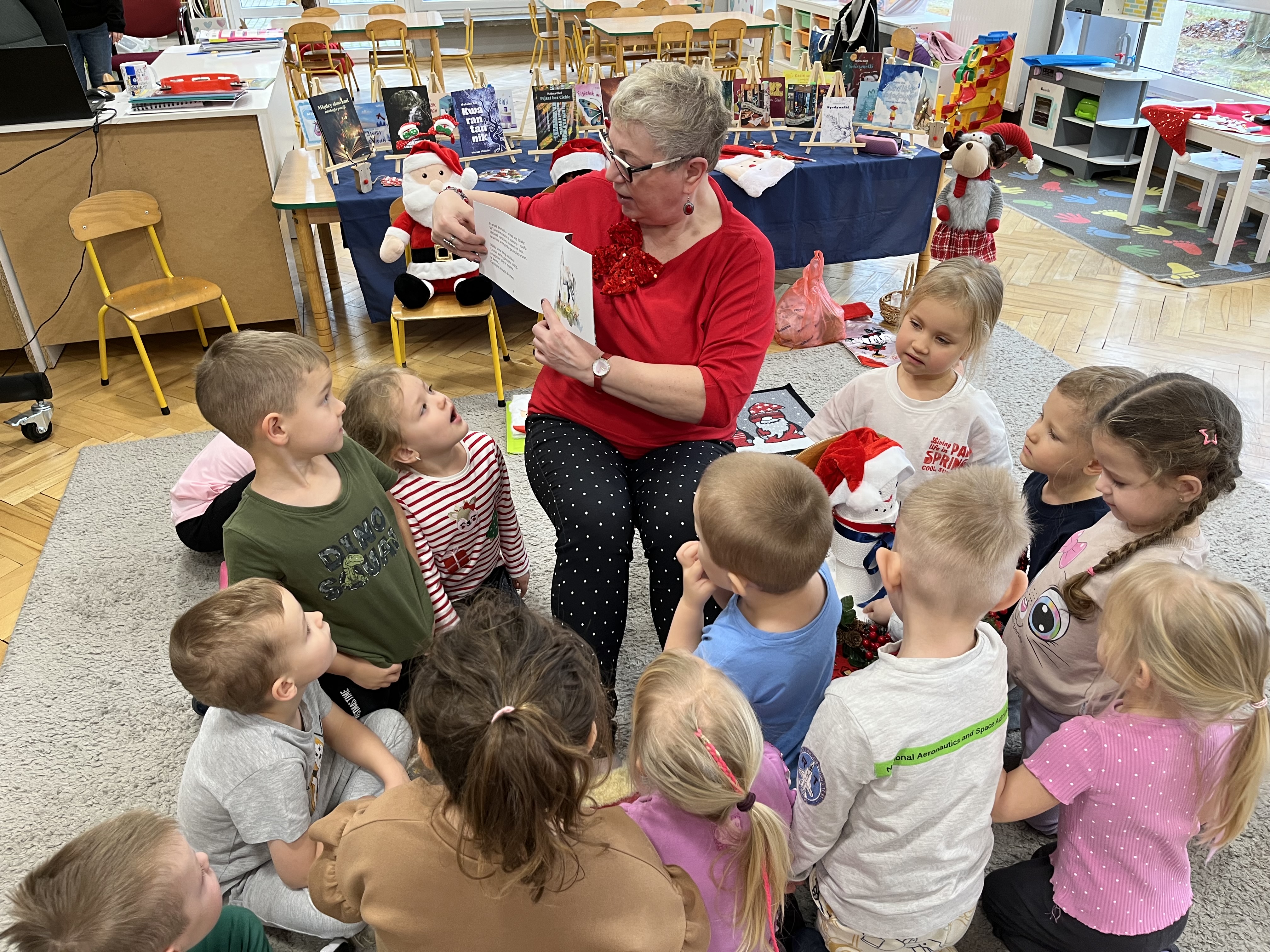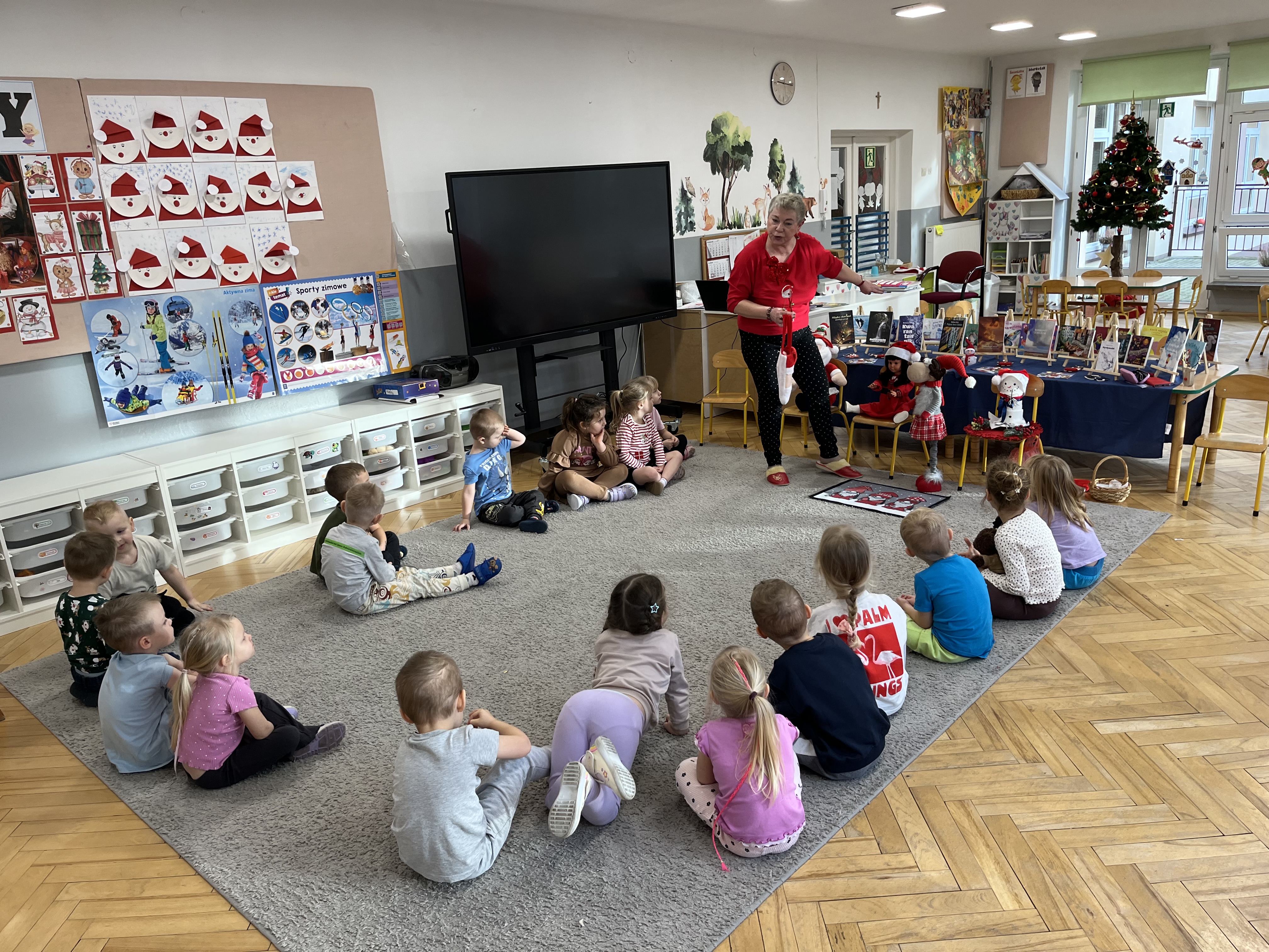 W naszym przedszkolu odbyło się wyjątkowe wydarzenie! Odwiedziła nas Pani Helena Gleń – autorka bajek, wierszy i książek edukacyjnych dla dzieci. Przedszkolaki miały okazję poznać prawdziwą pisarkę, zobaczyć jej książki oraz dowiedzieć się, jak powstają opowieści. Podczas spotkania dzieci z zainteresowaniem słuchały czytanych przez autorkę wierszy, a następnie jednej wybranej bajki, która szczególnie pobudziła ich wyobraźnię. Przedszkolaki aktywnie uczestniczyły w rozmowie, dzieliły się swoimi spostrzeżeniami i zadawały pytania. Było to bardzo inspirujące i pełne magii spotkanie, które zachęciło najmłodszych do sięgania po książki i odkrywania świata literatury.