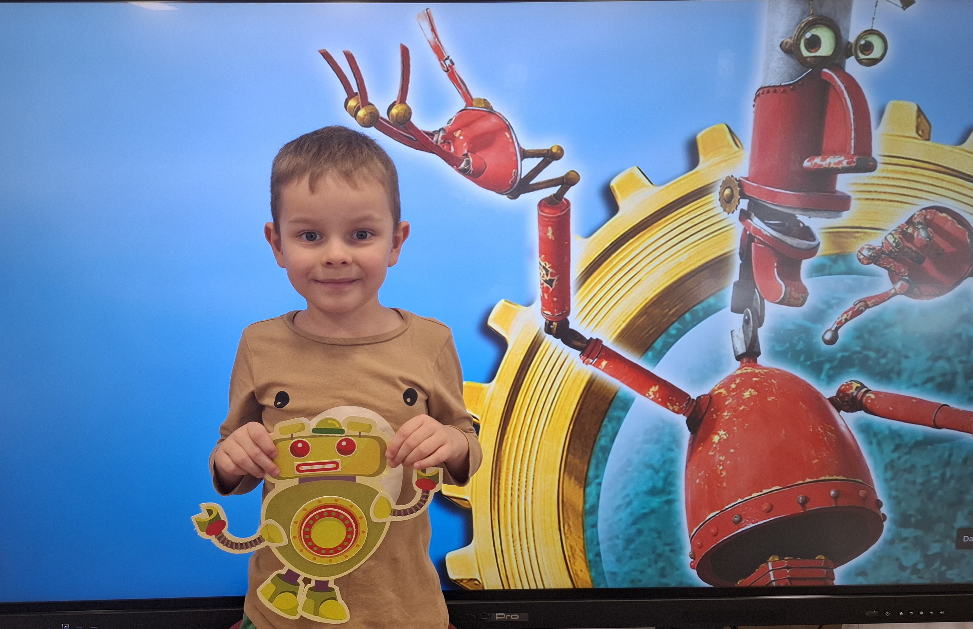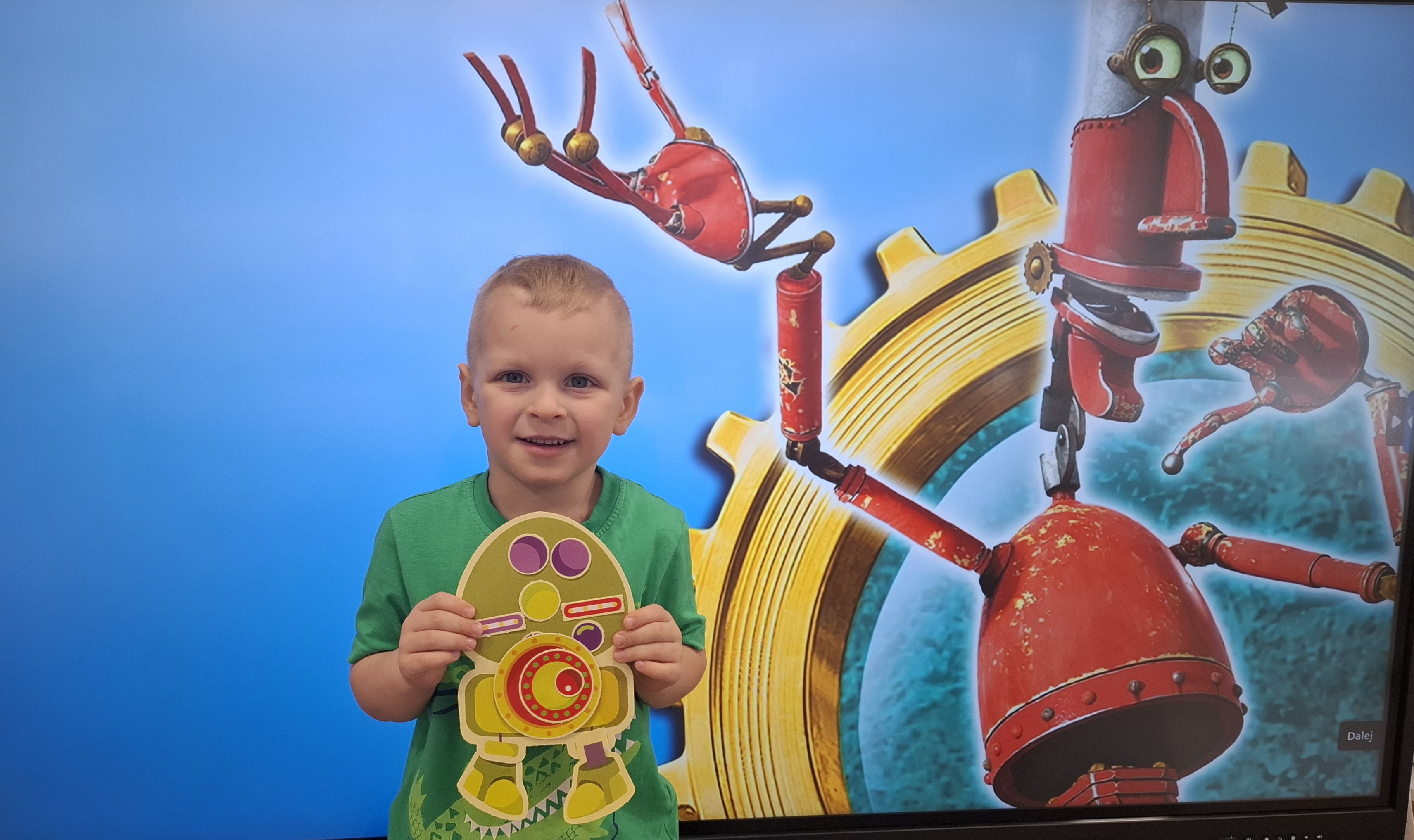W minionym tygodniu dzieci poznawały temat robotów i wynalazków. Czytaliśmy opowiadanie „Co to ten robot?”, oglądaliśmy dawne i współczesne telefony oraz ćwiczyliśmy znajomość numeru alarmowego. Przedszkolaki wykonały prace plastyczne „Mój robot”, brały udział w zabawach matematycznych oraz kreatywnych, ucząc się przy tym kodowania i rozwijając pomysłowość.