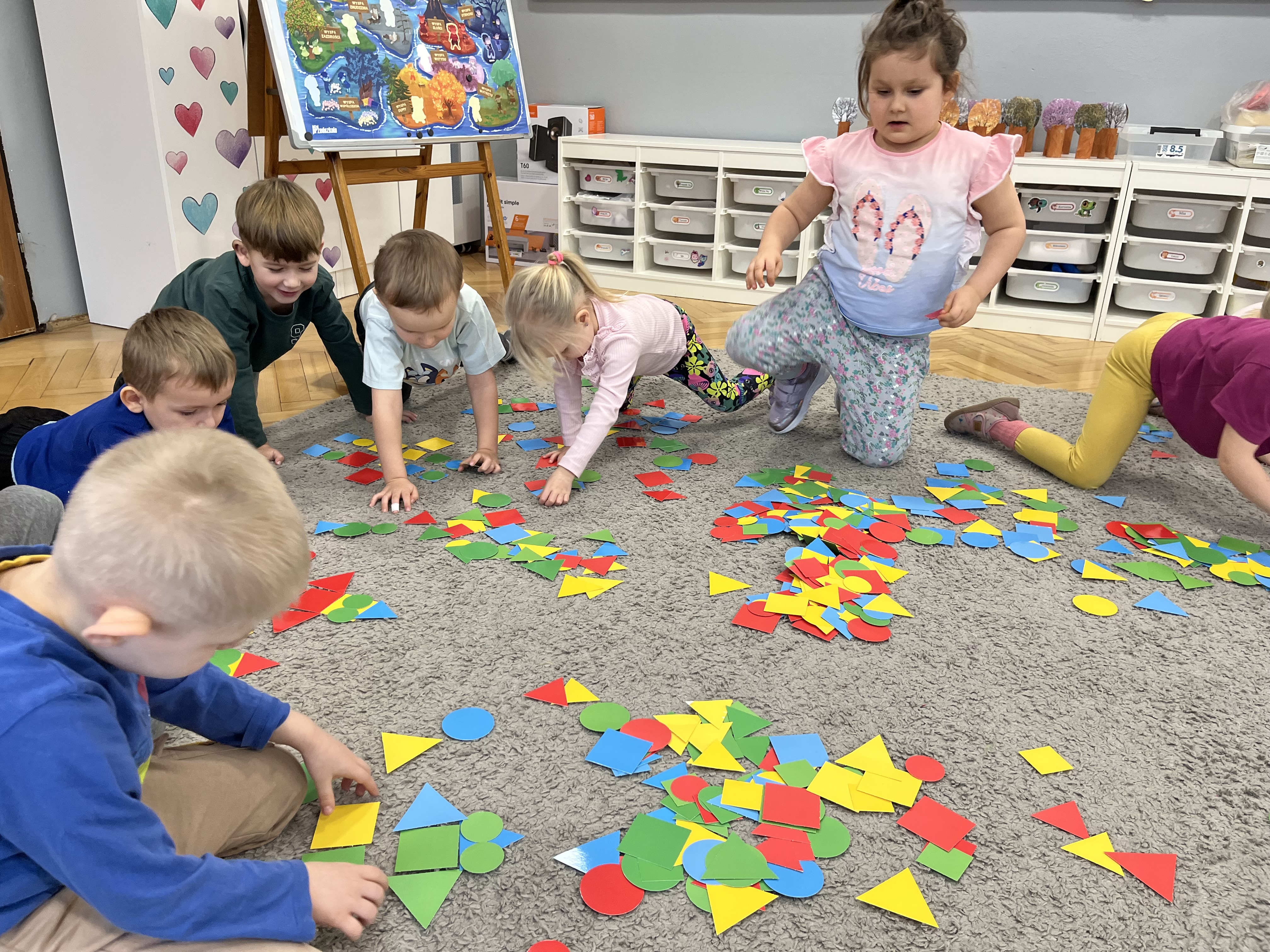 Dużo radości sprawiły także zajęcia plastyczne z figurami geometrycznymi oraz zabawa „Jestem wynalazcą”, podczas której dzieci mogły poczuć się jak prawdziwi twórcy. Tydzień zakończyliśmy wspólnym quizem podsumowującym zdobytą wiedzę.