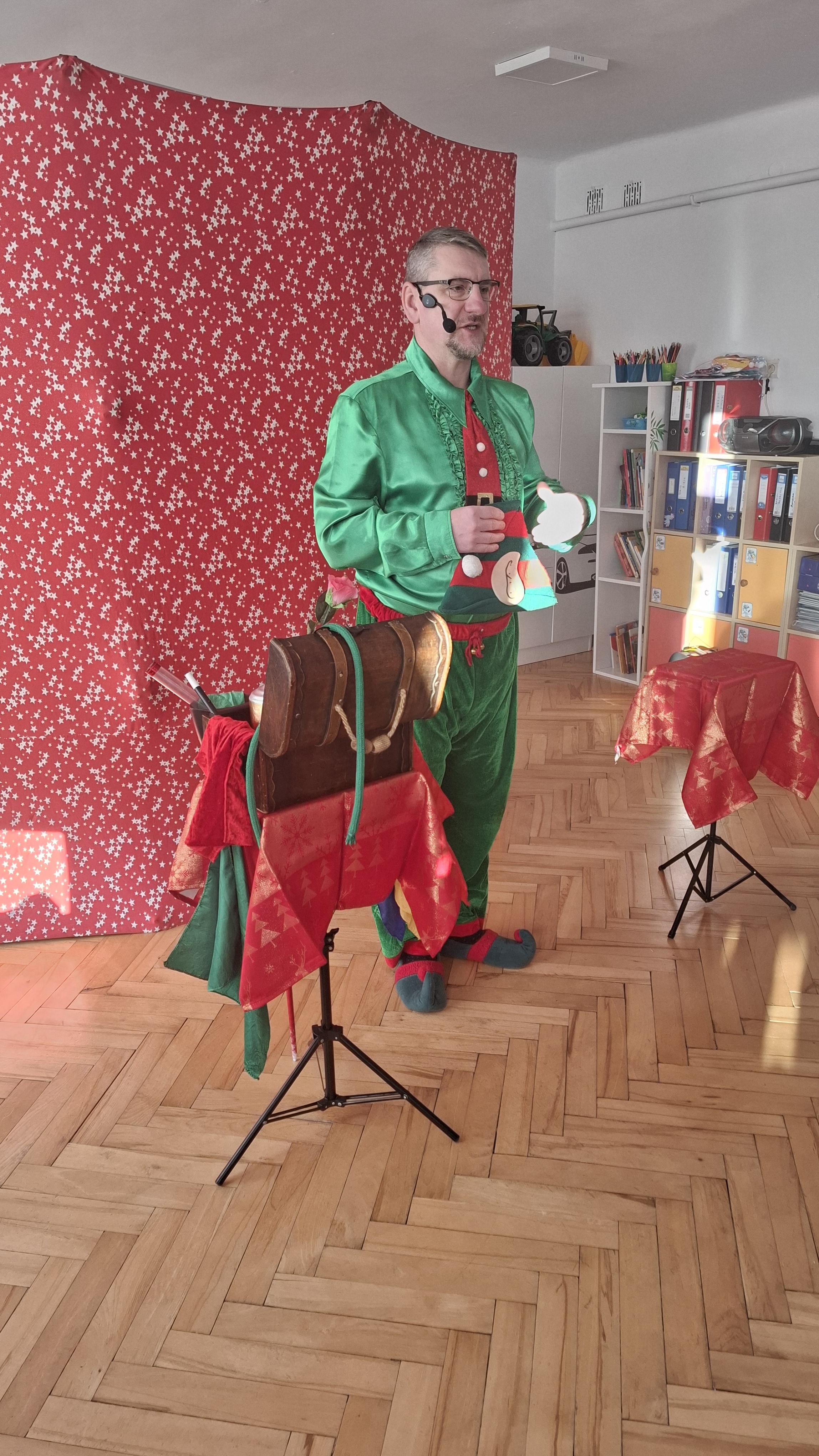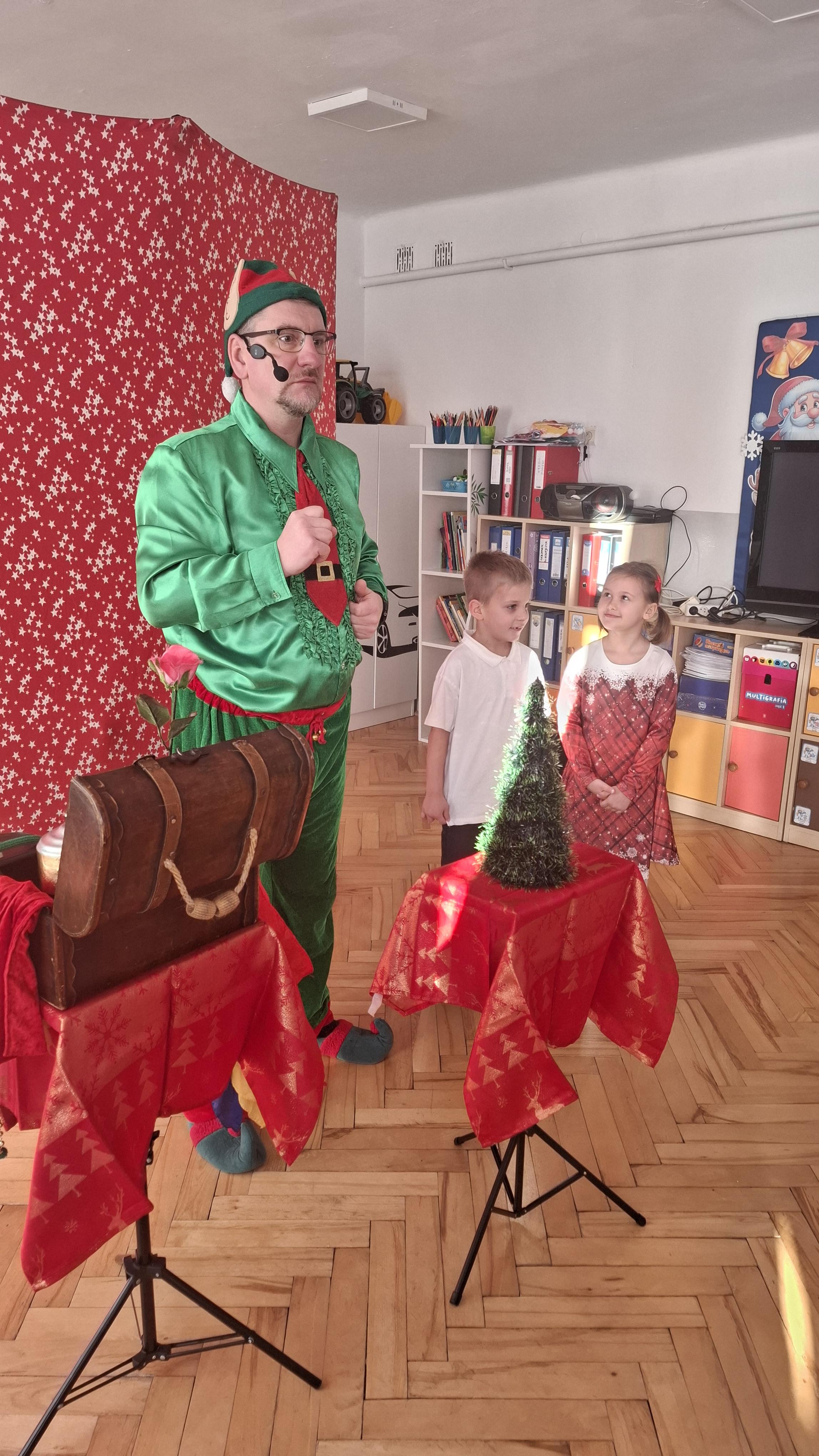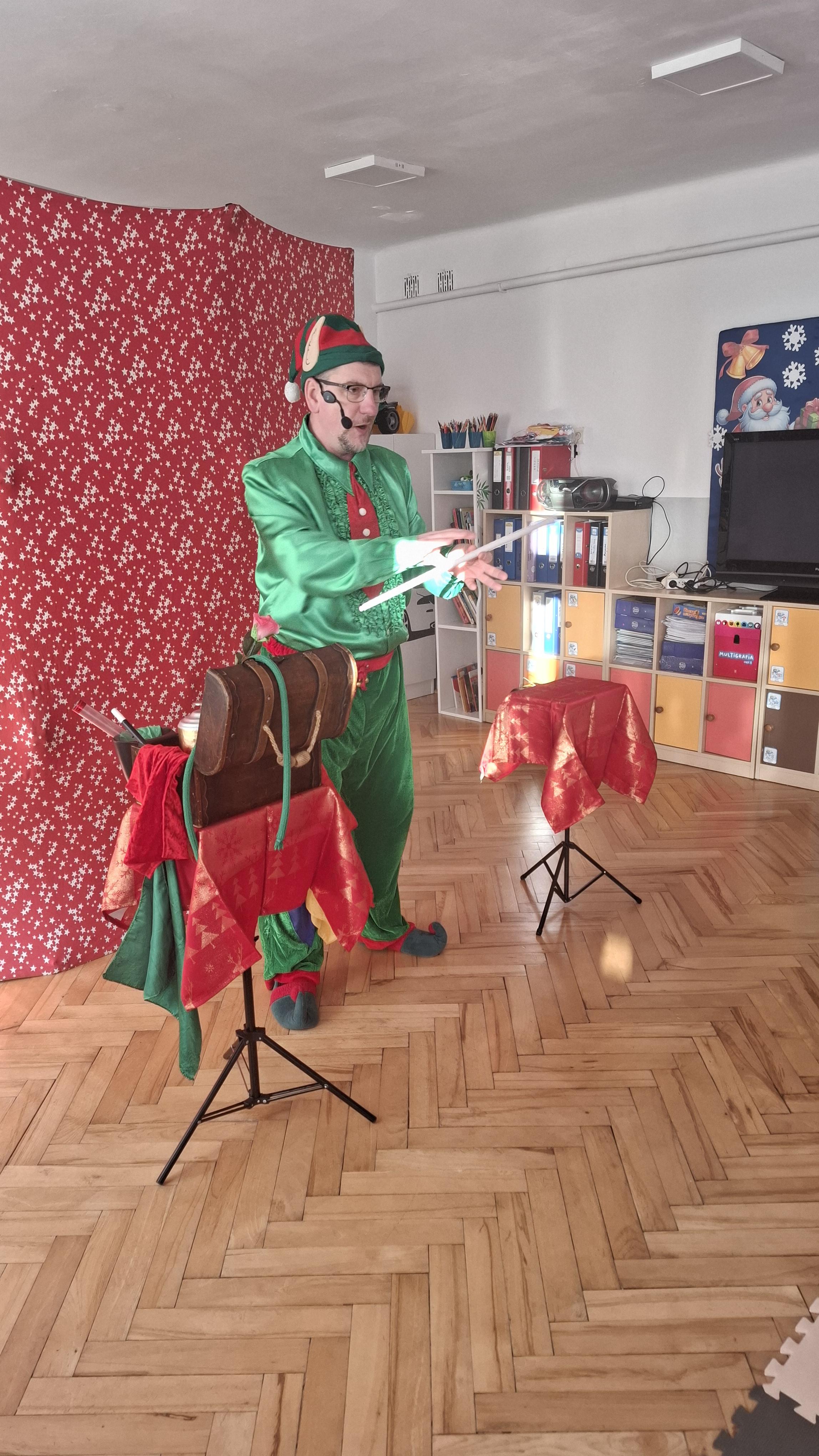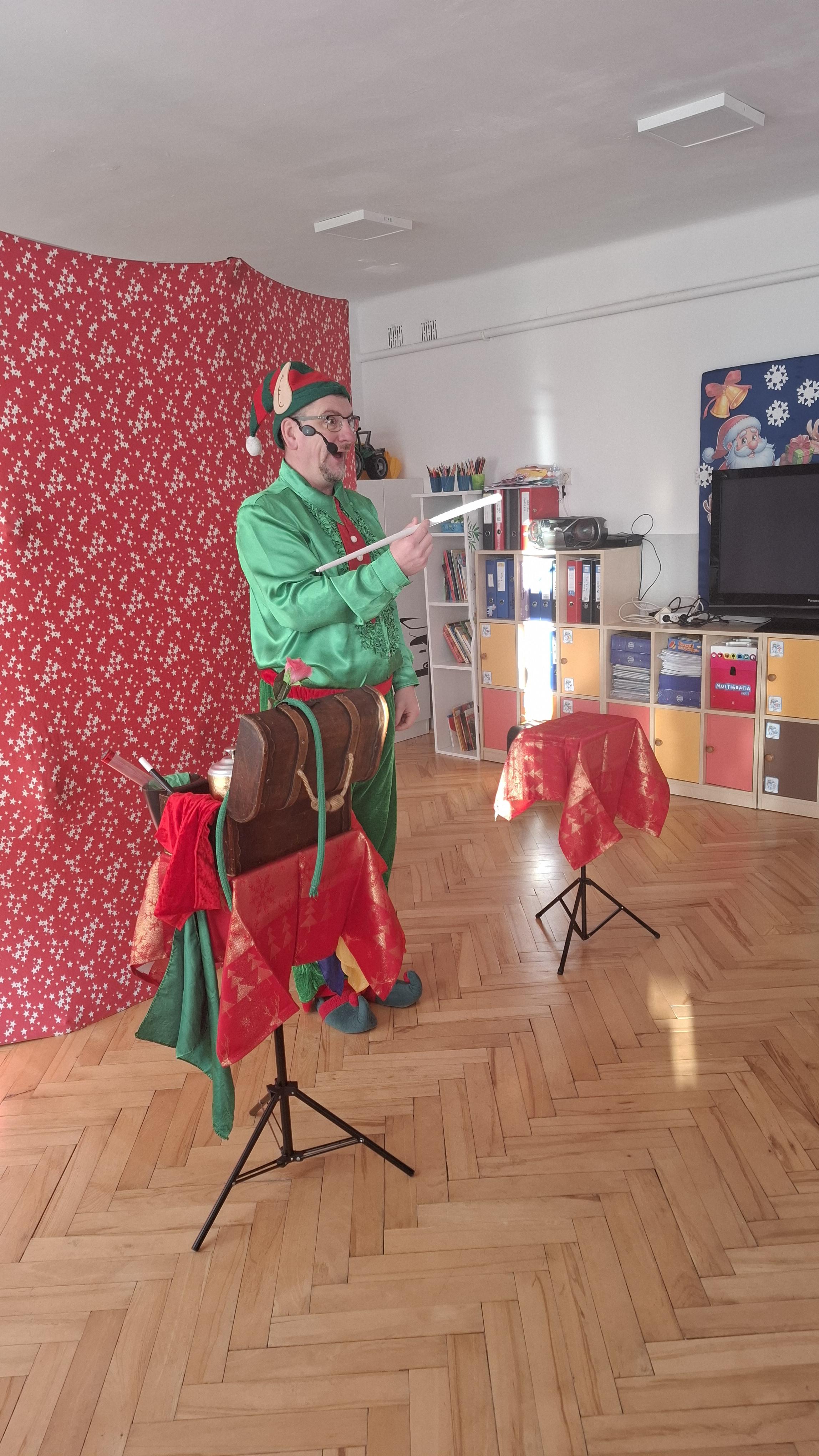 Gość specjalny zaprosił dzieci do świata czarów i dobrej zabawy. Podczas występu na scenie pojawiały się zaskakujące elementy związane z tematyką świąt. Magiczne sztuczki wzbudzały ogromne zainteresowanie i zachwyt wśród najmłodszych – przedmioty pojawiały się i znikały, barwne rekwizyty zmieniały swoje kształty, a całość przepełniona była tajemnicą i humorem.