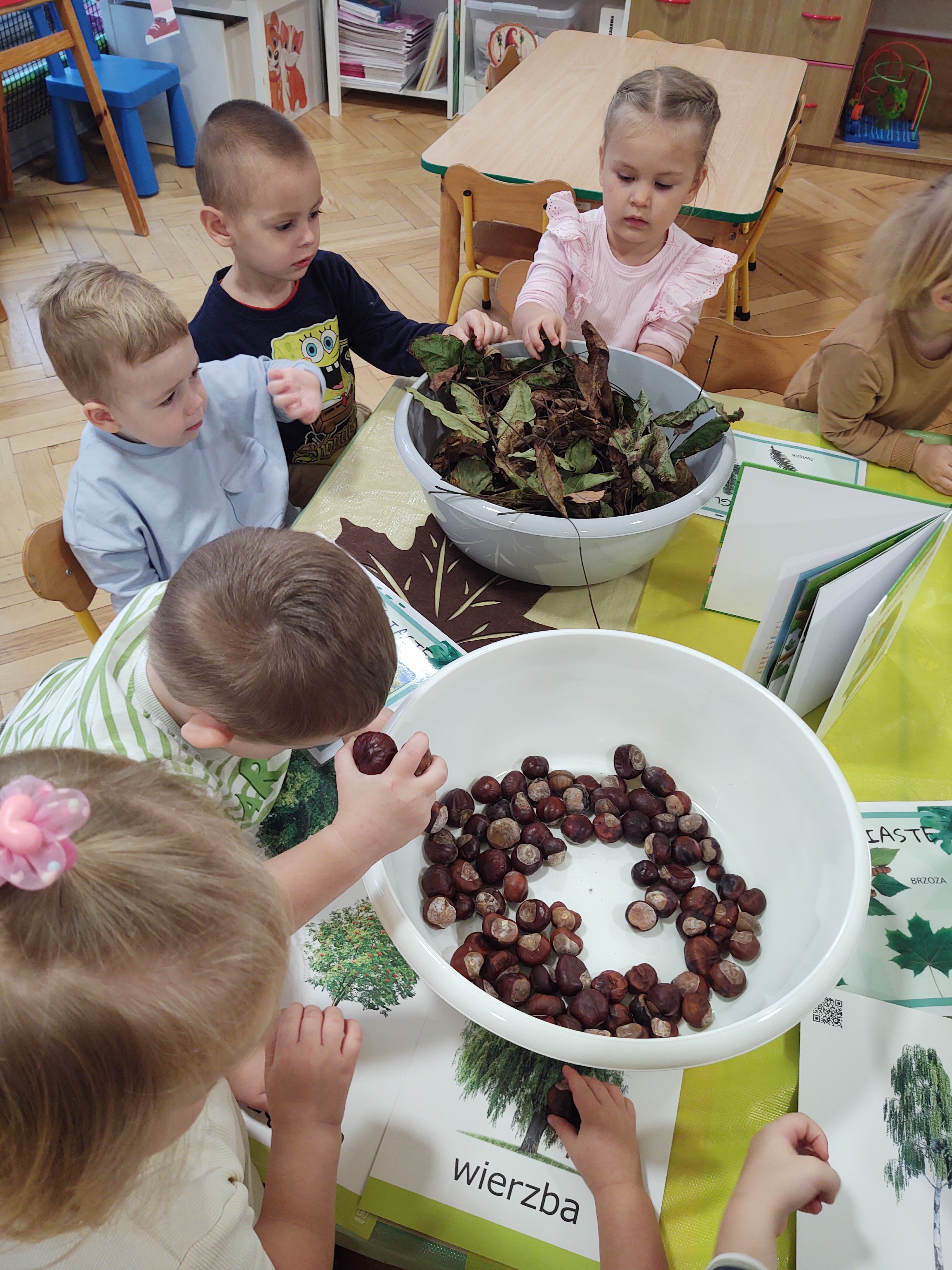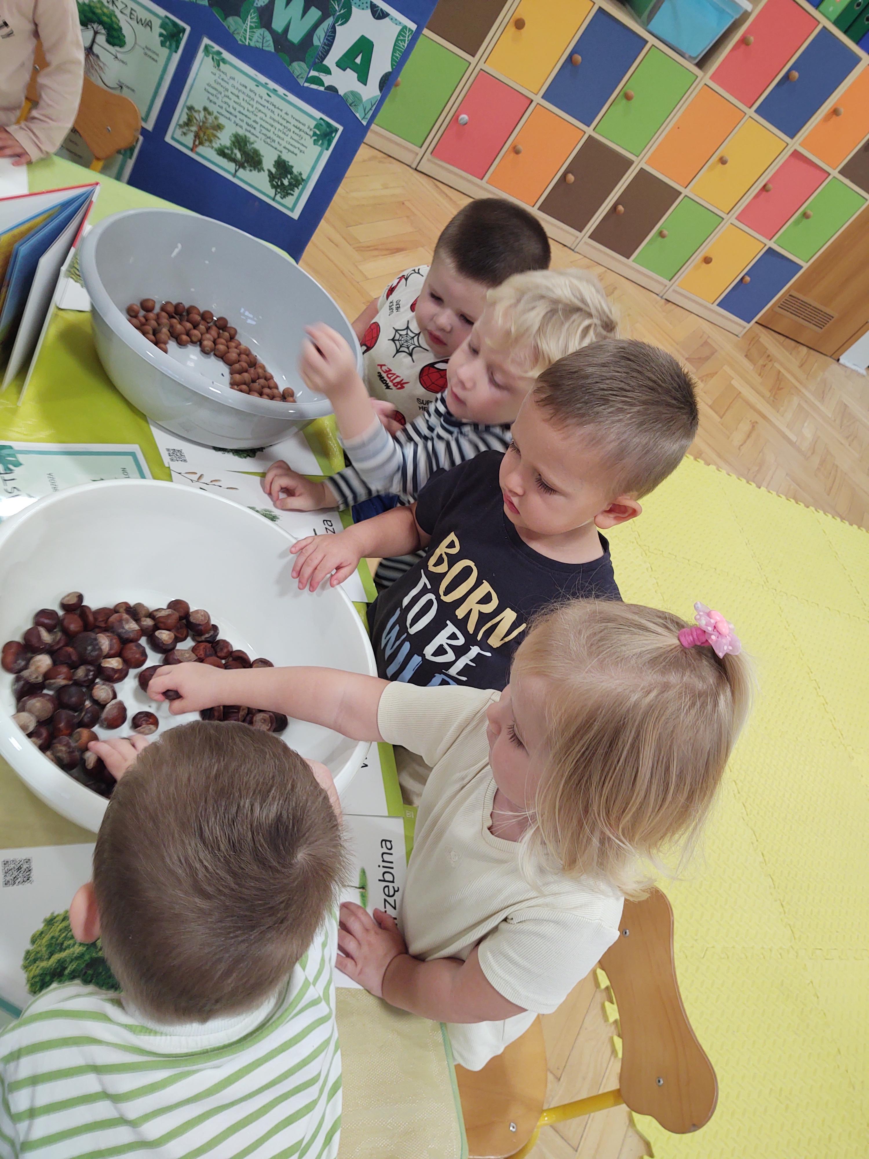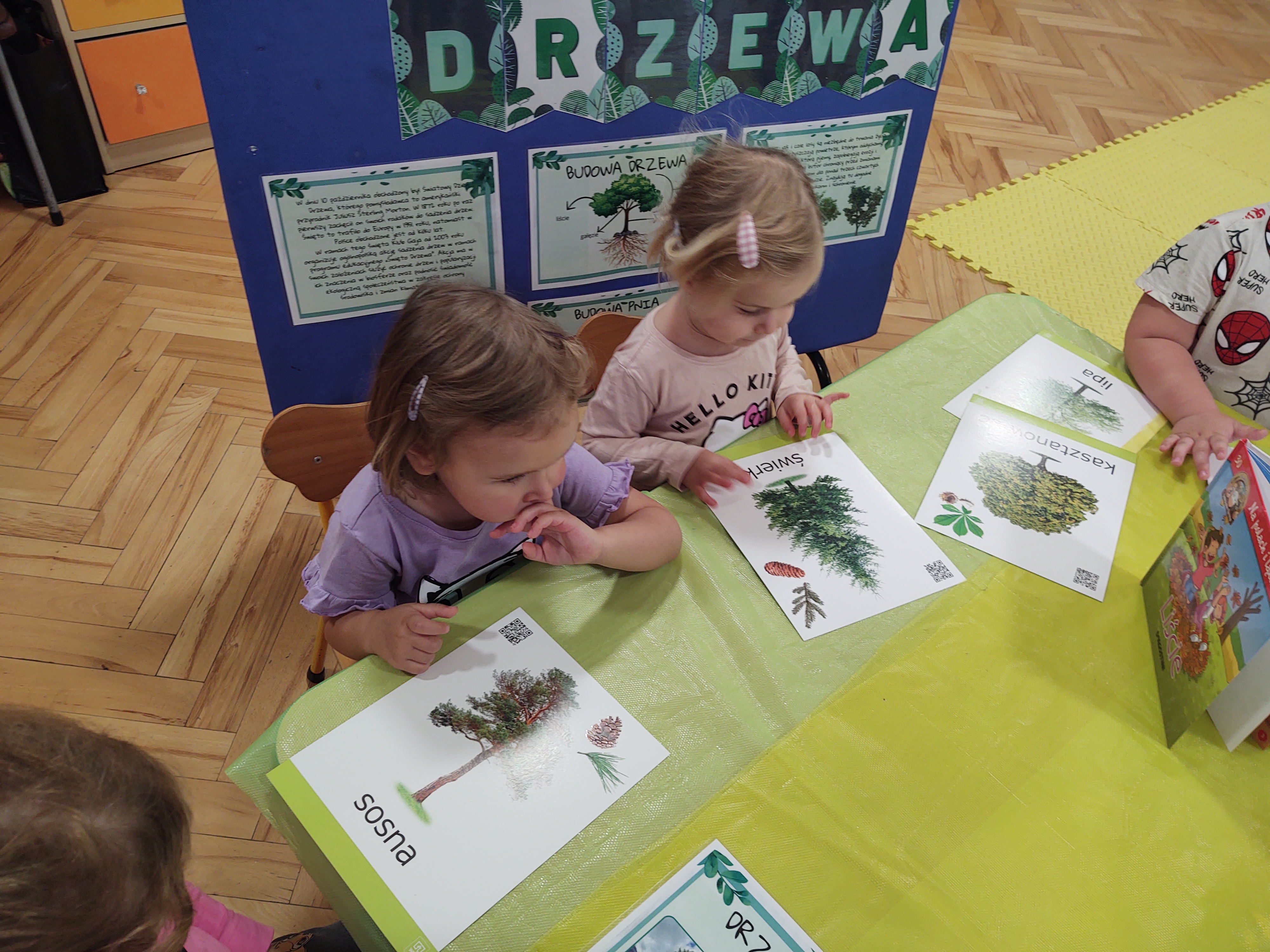 Dzieci poznały między innymi budowę drzewa, etapy jego wzrostu, nauczyły się odróżniać drzewa liściaste od iglastych, nazywać poszczególne drzewa i jego owoce- np. dąb- żołędzie, kasztanowiec- kasztany, jabłoń- jabłka itp.