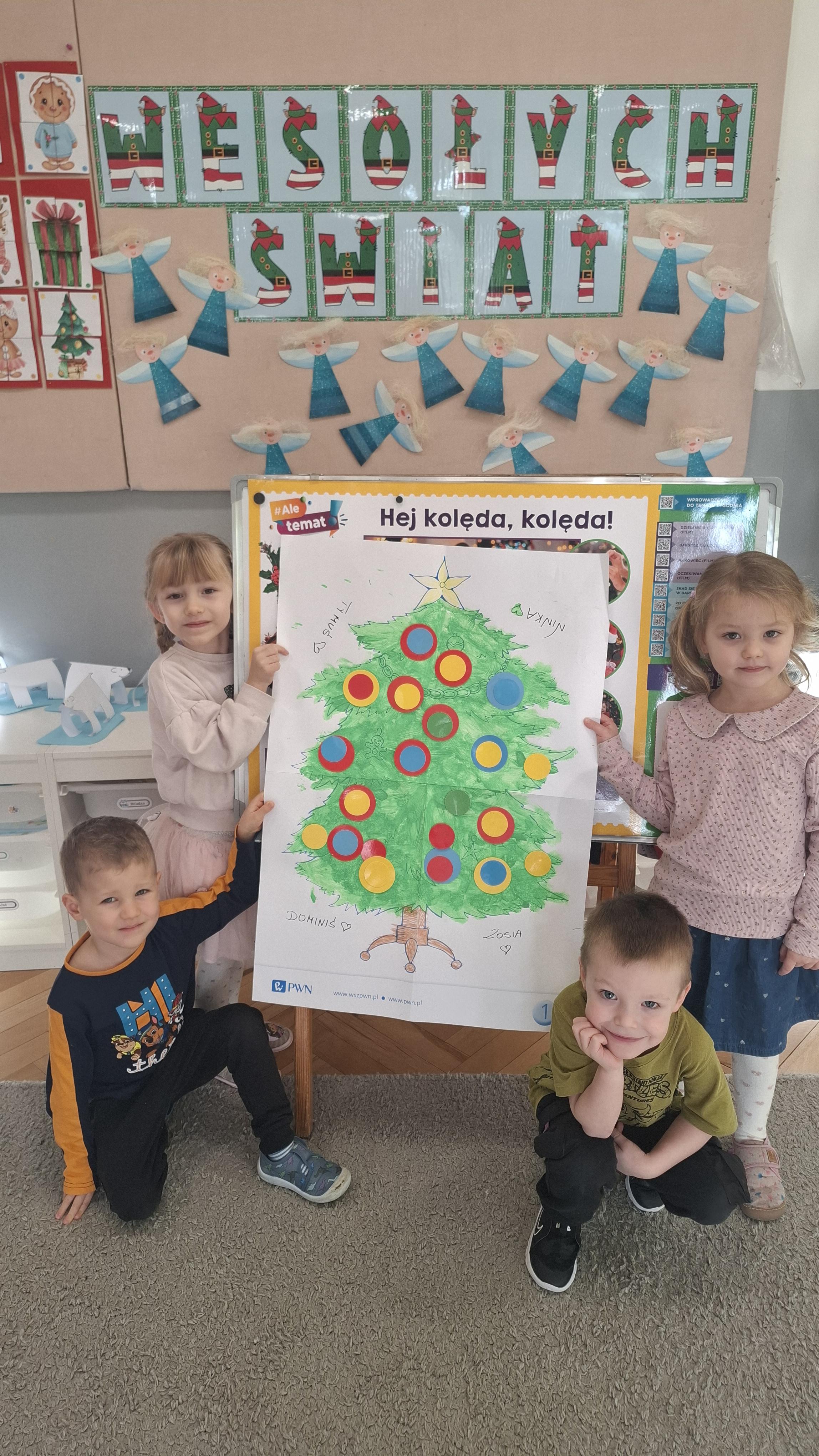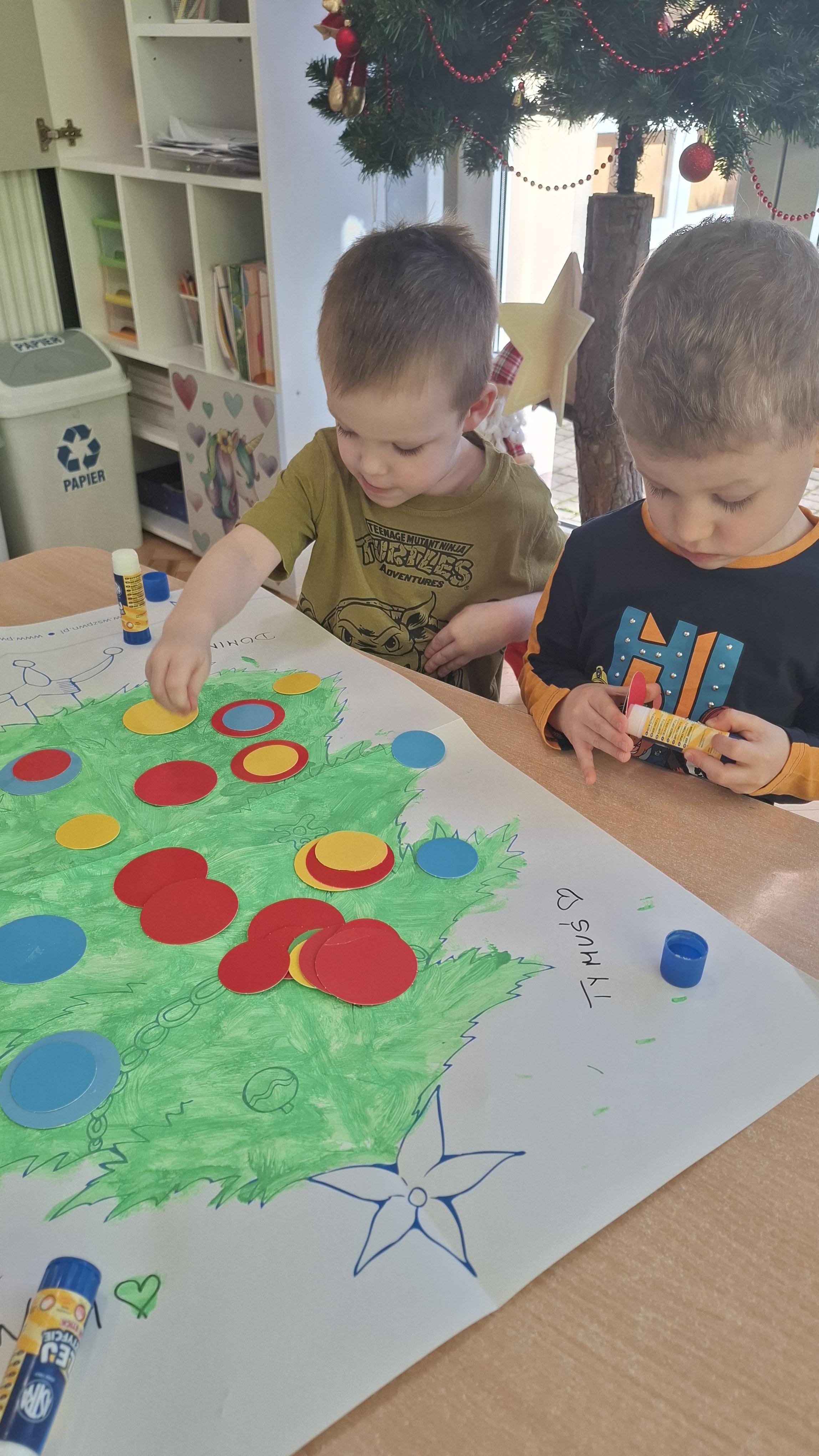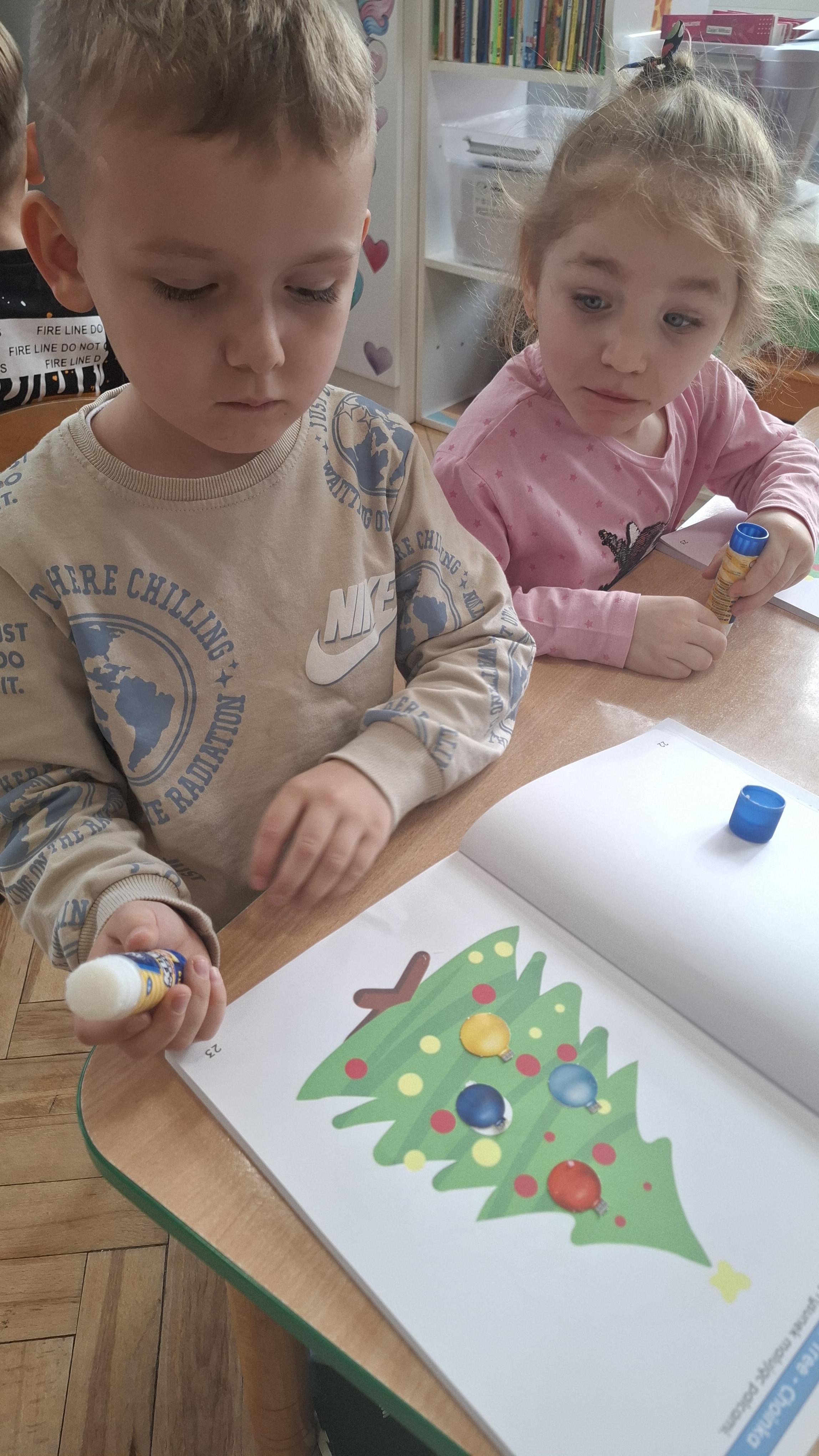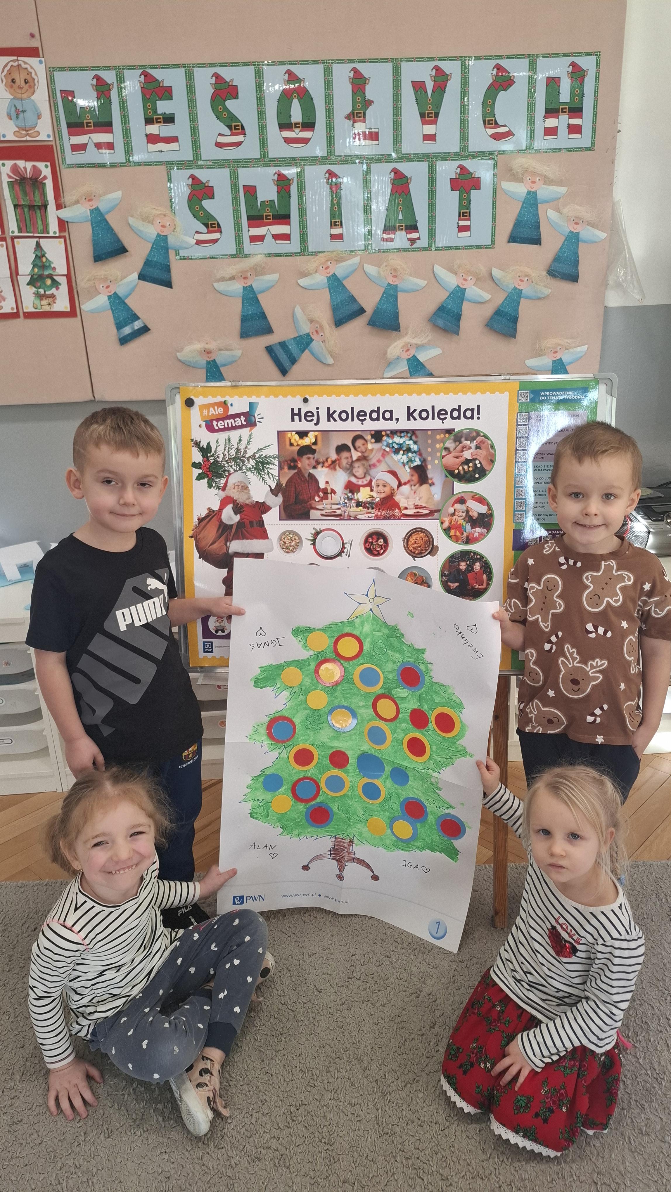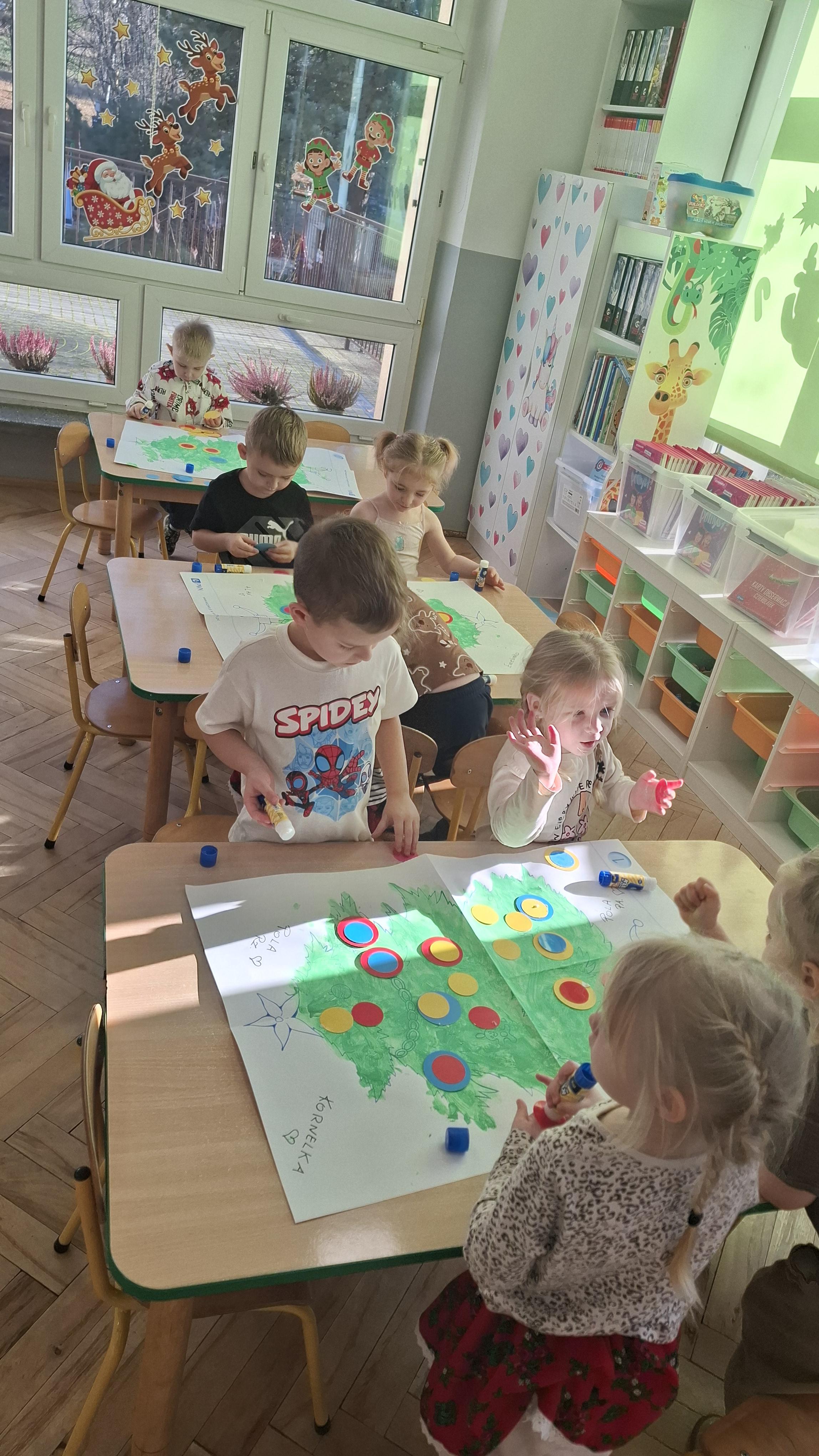 Świąteczne przygotowania to nie tylko tworzenie wyjątkowego wystroju, ale także liczne zajęcia i zabawy nawiązujące do tradycji bożonarodzeniowych. Przedszkolaki poznawały polskie zwyczaje świąteczne, rozmawiały o choince, stroikach, kolędach oraz o tym, jak wygląda Wigilia w ich domach. Dzięki temu dzieci mogły lepiej zrozumieć znaczenie tradycji oraz wartości takie jak bliskość, życzliwość i pomaganie innym.