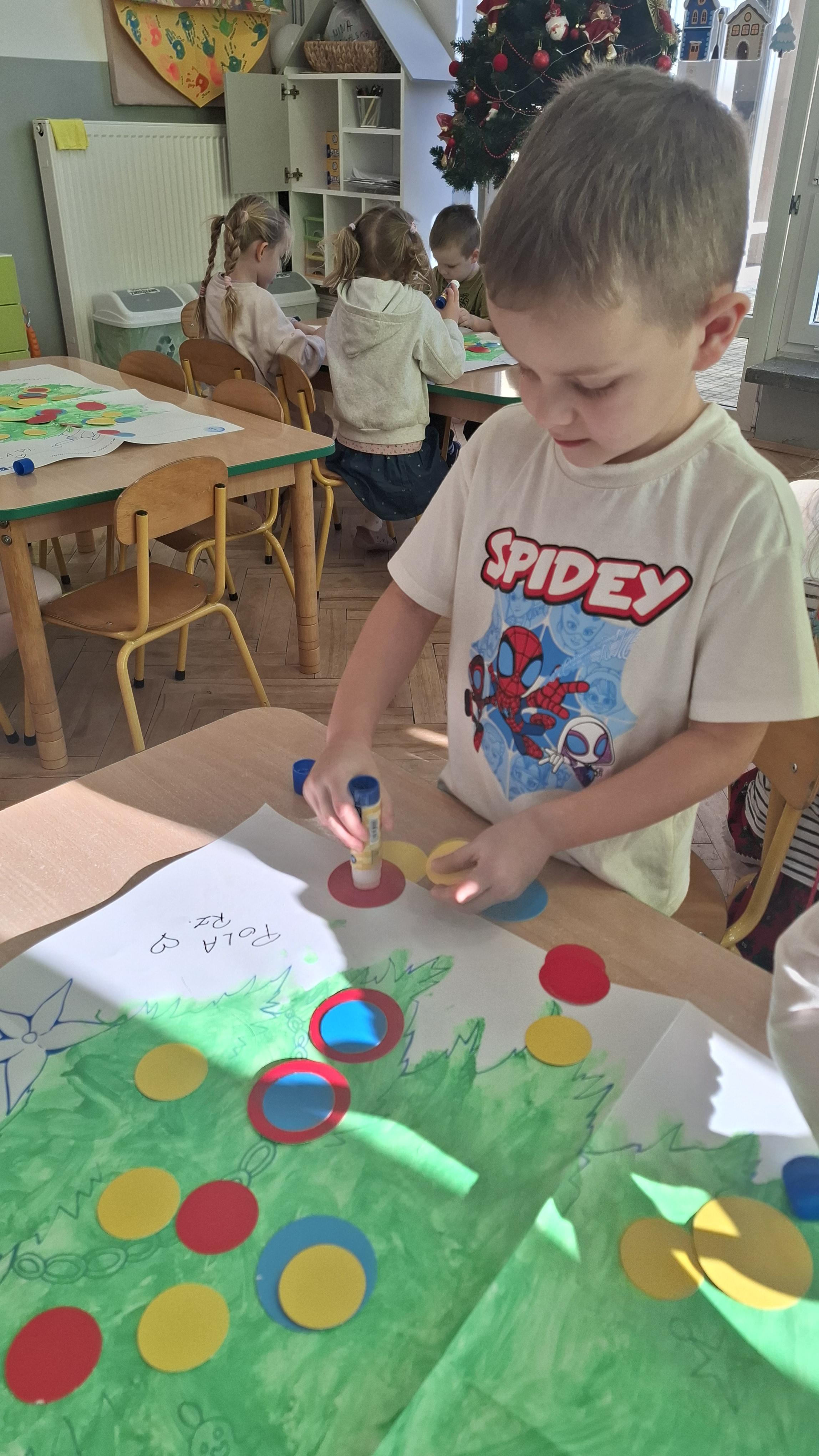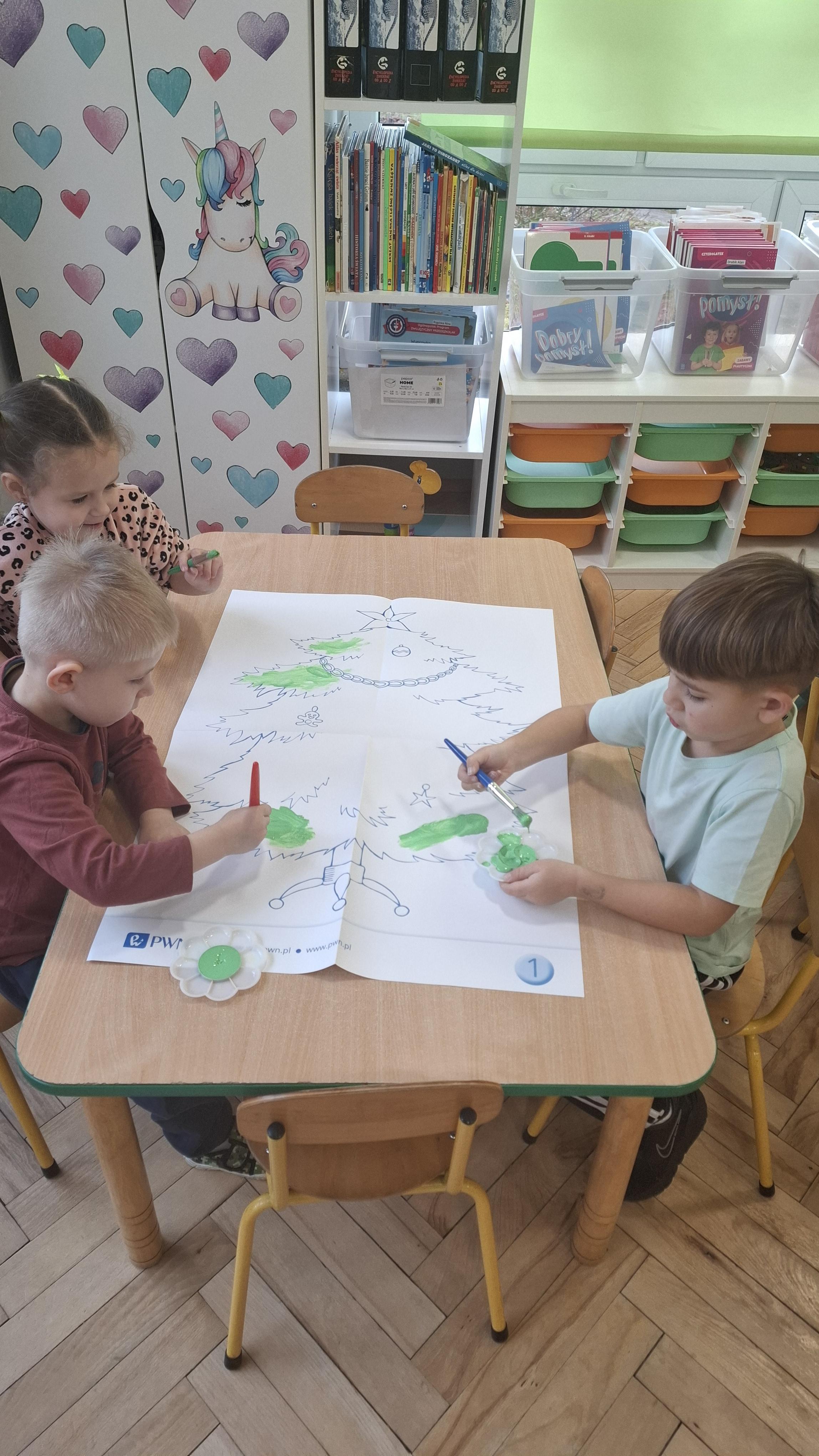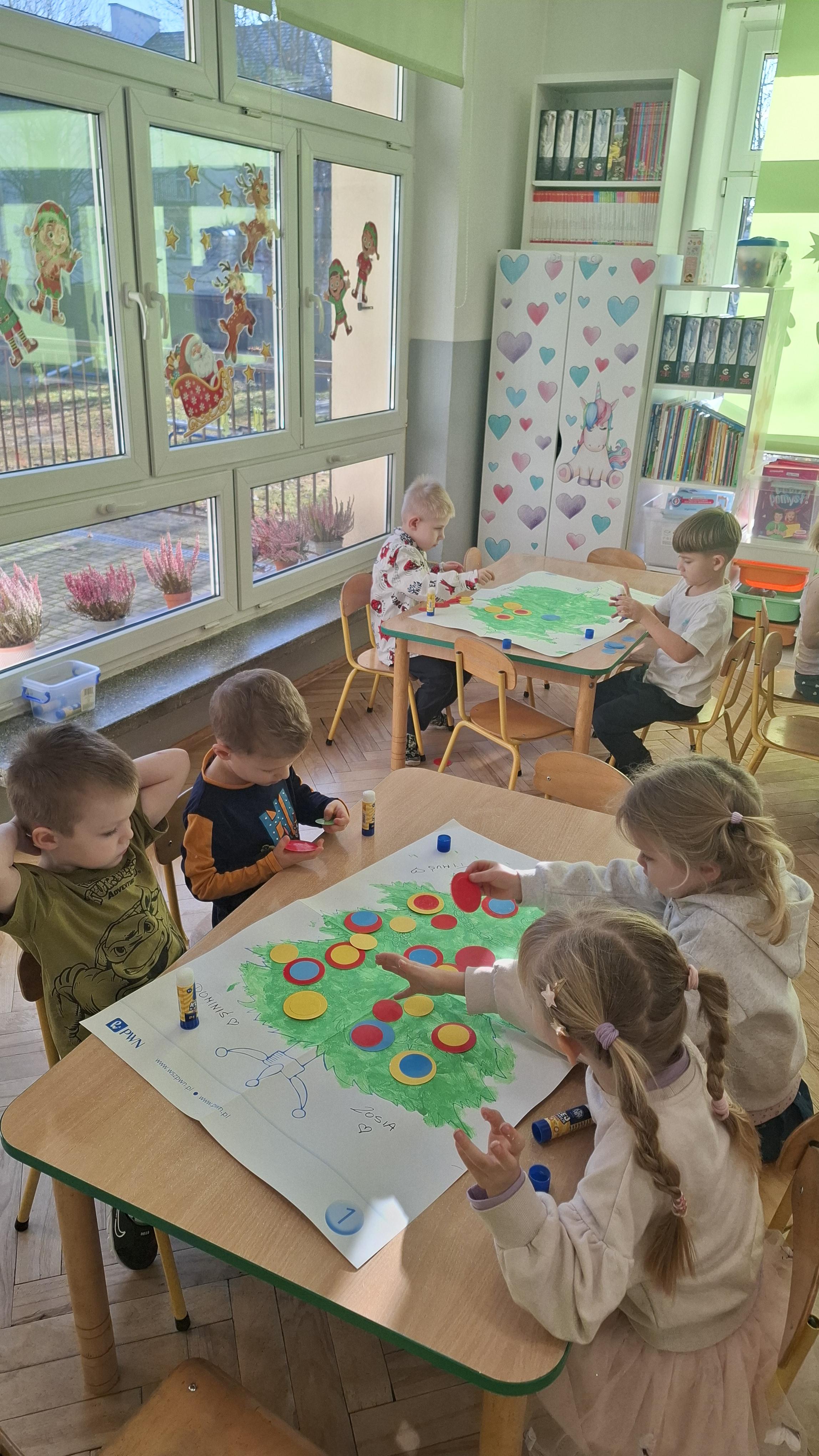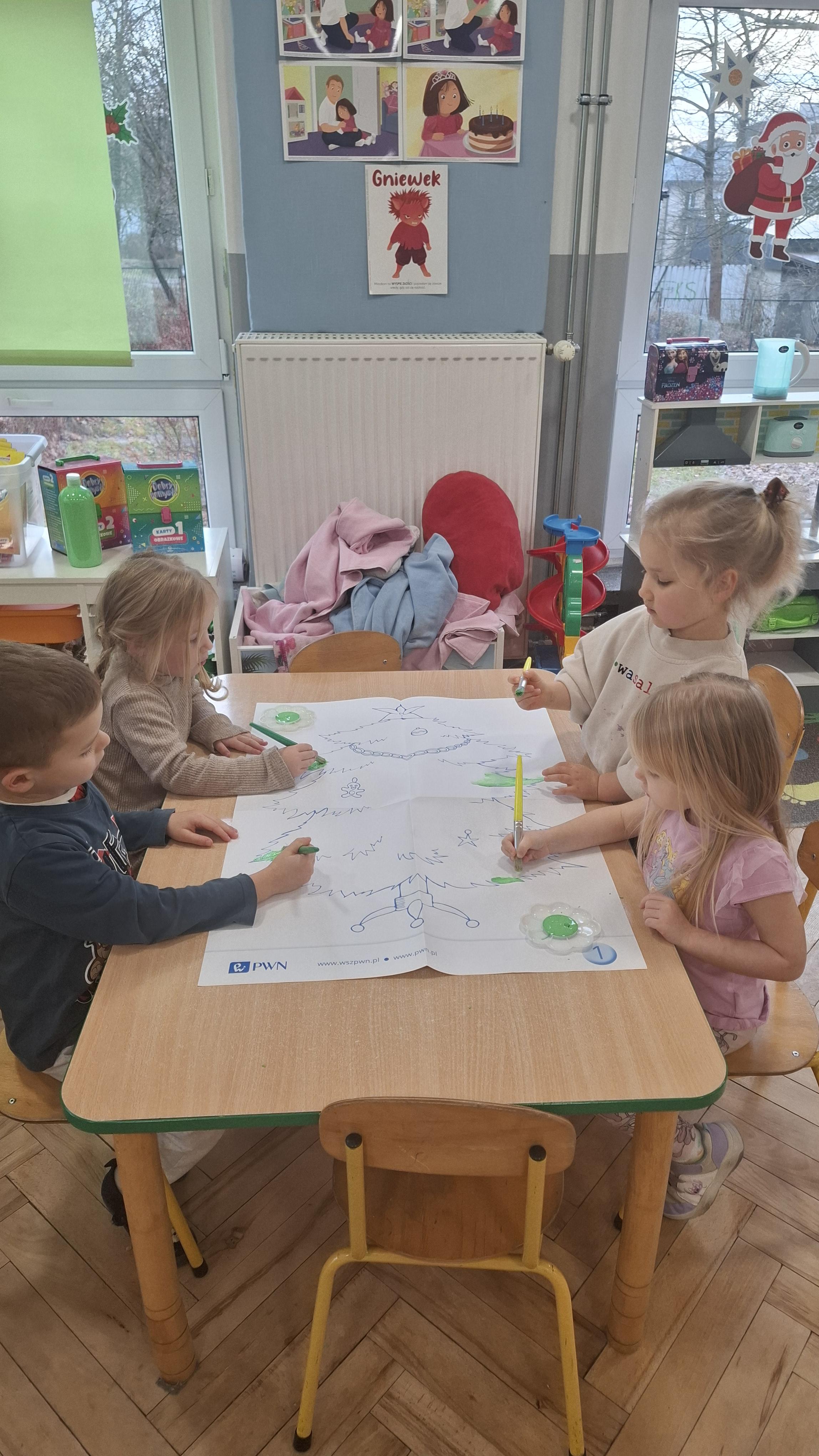Świąteczne przygotowania to nie tylko tworzenie wyjątkowego wystroju, ale także liczne zajęcia i zabawy nawiązujące do tradycji bożonarodzeniowych. Przedszkolaki poznawały polskie zwyczaje świąteczne, rozmawiały o choince, stroikach, kolędach oraz o tym, jak wygląda Wigilia w ich domach. Dzięki temu dzieci mogły lepiej zrozumieć znaczenie tradycji oraz wartości takie jak bliskość, życzliwość i pomaganie innym.