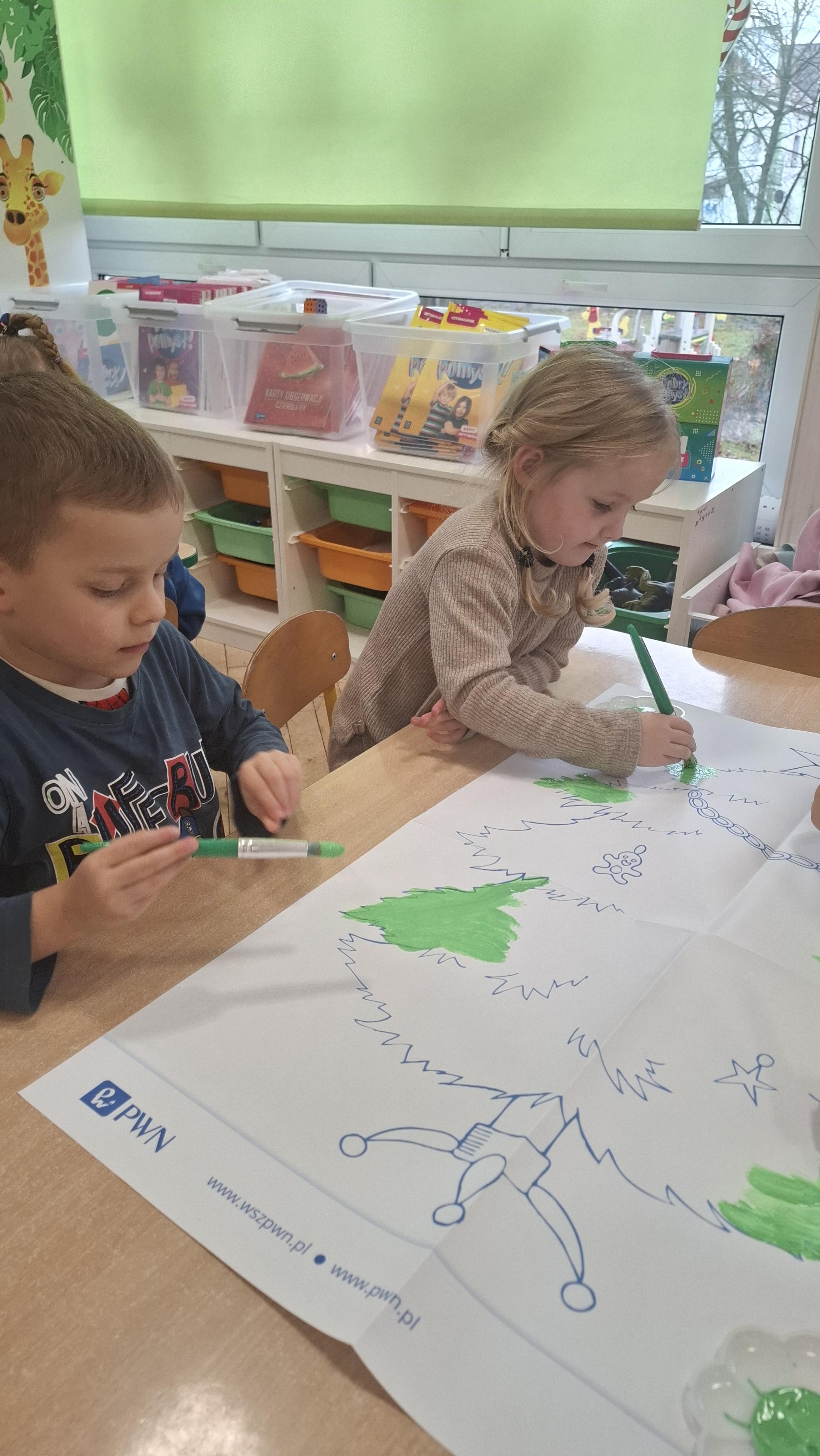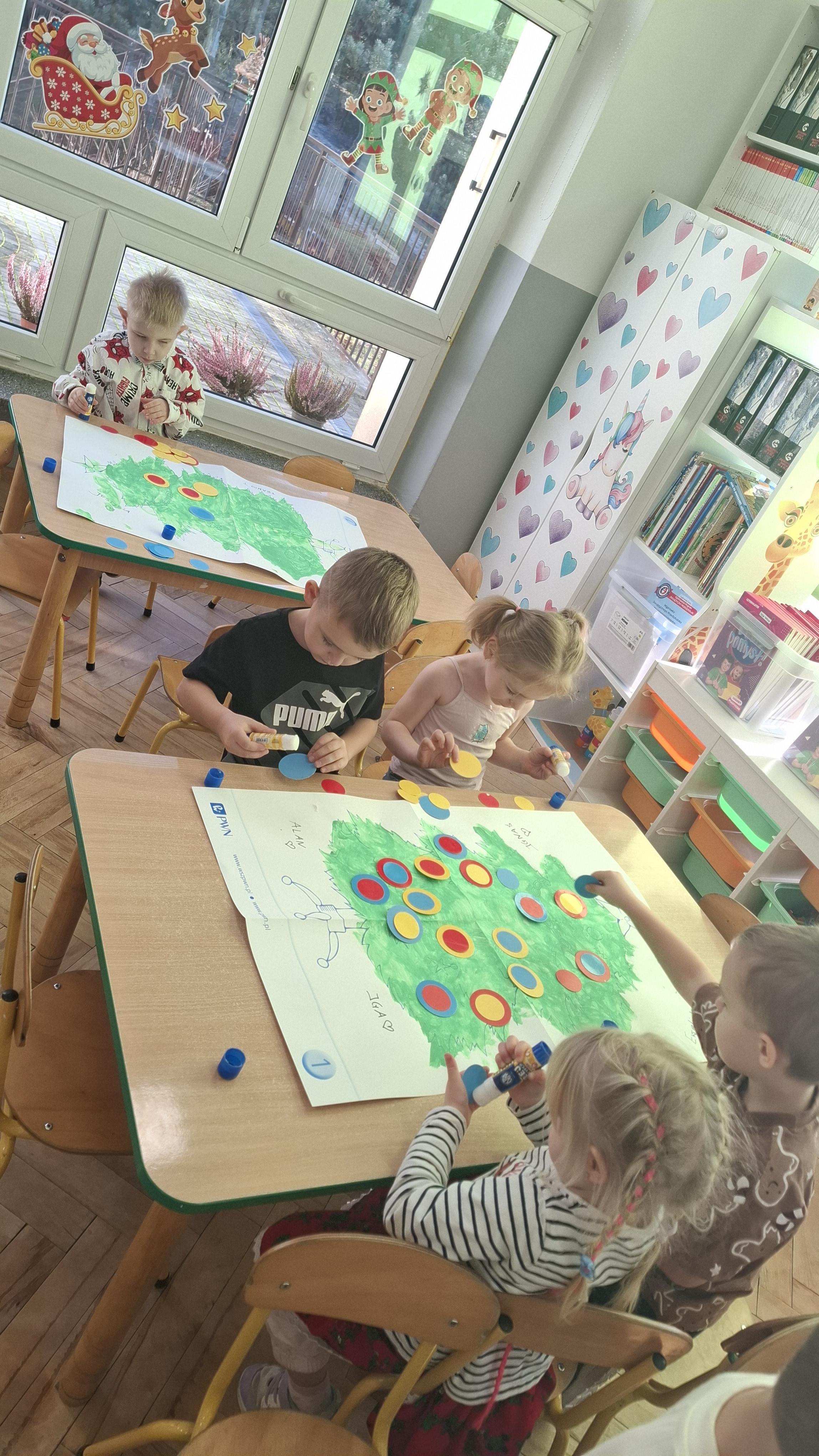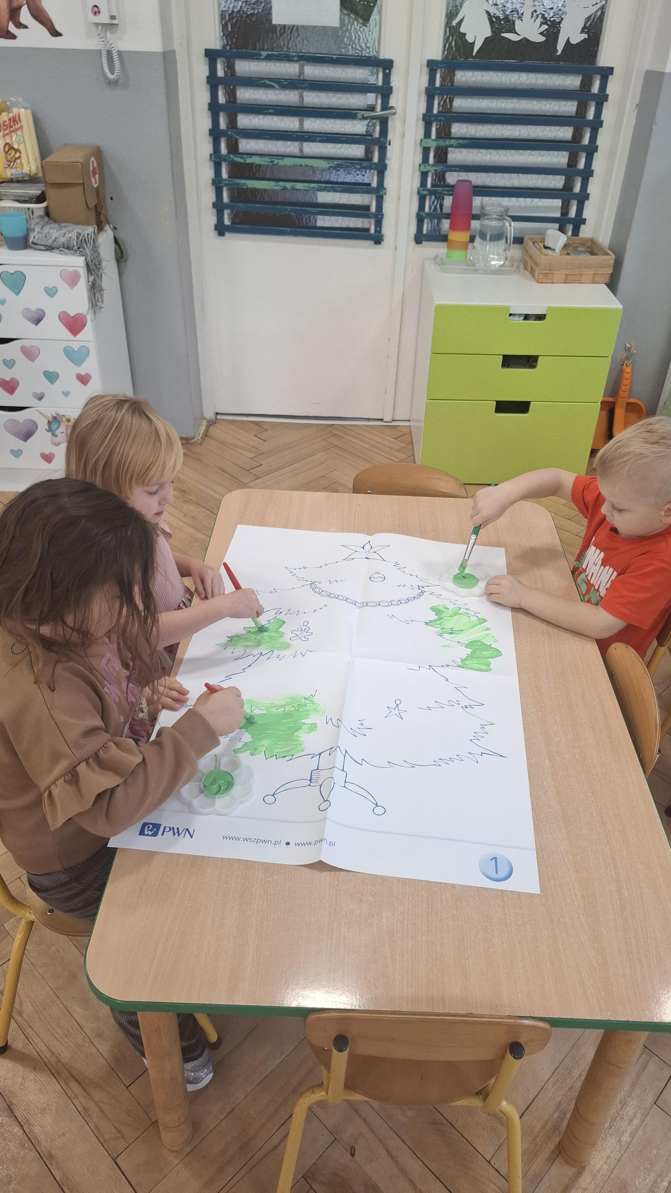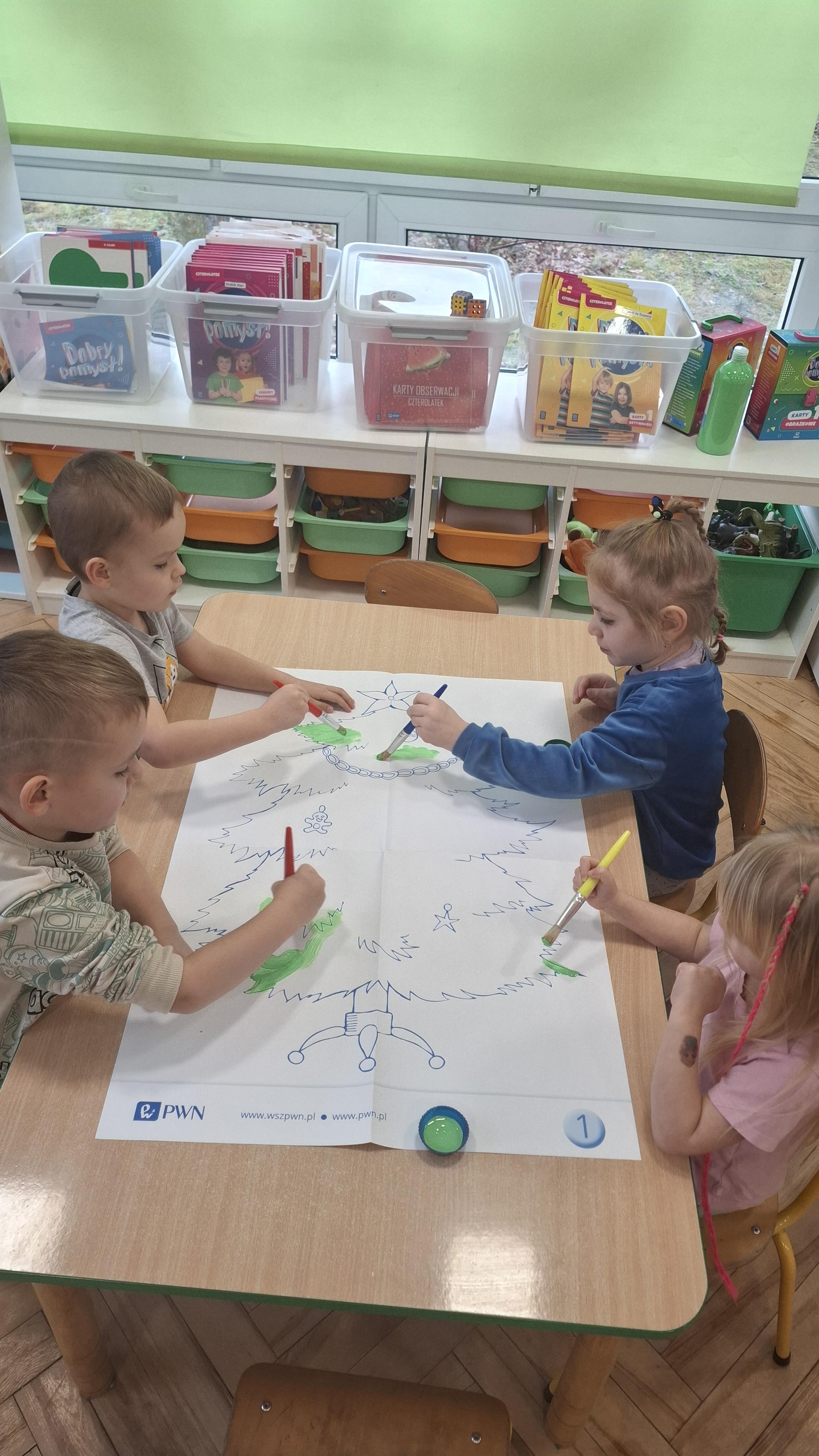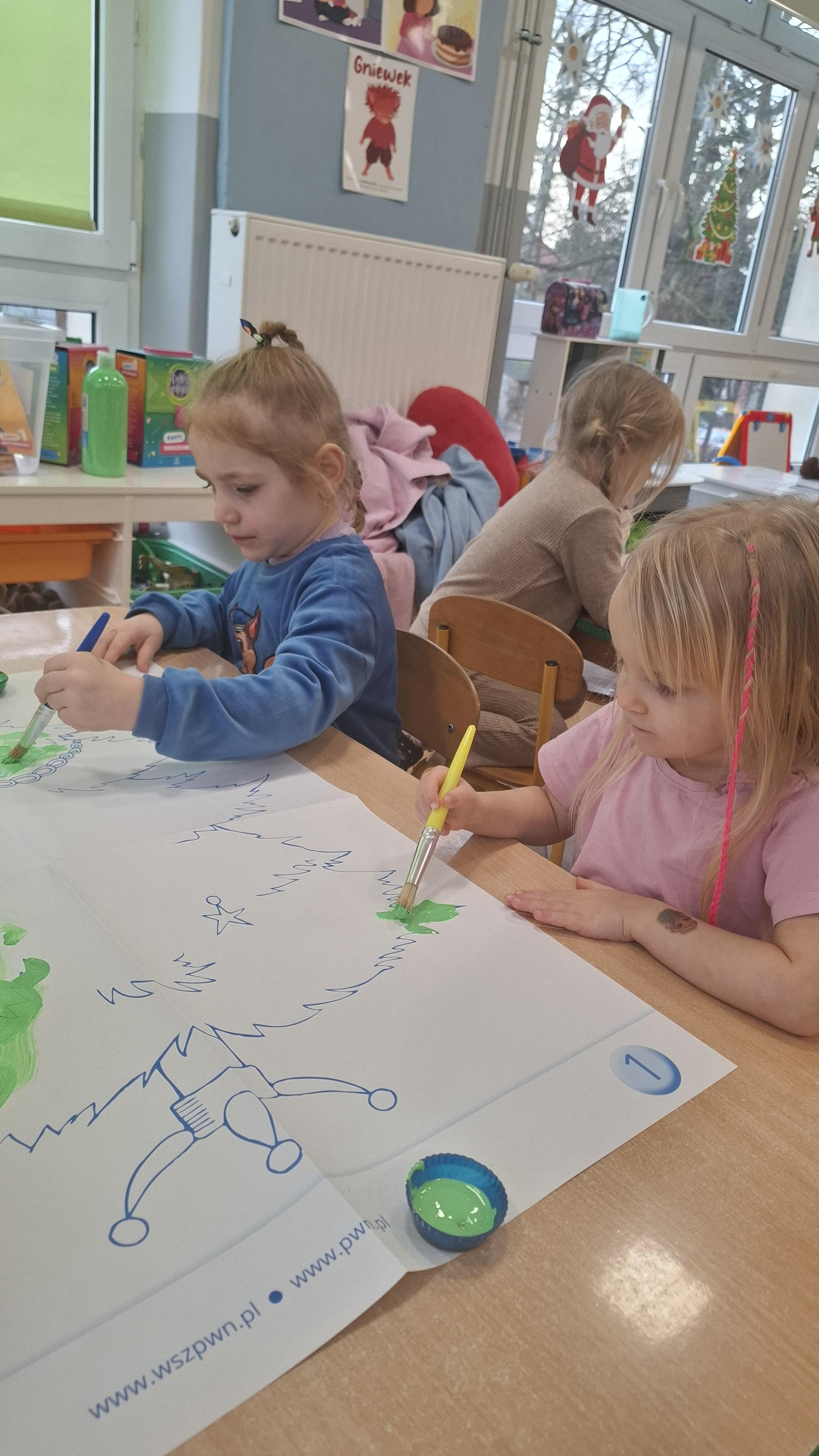 Świąteczne przygotowania to nie tylko tworzenie wyjątkowego wystroju, ale także liczne zajęcia i zabawy nawiązujące do tradycji bożonarodzeniowych. Przedszkolaki poznawały polskie zwyczaje świąteczne, rozmawiały o choince, stroikach, kolędach oraz o tym, jak wygląda Wigilia w ich domach. Dzięki temu dzieci mogły lepiej zrozumieć znaczenie tradycji oraz wartości takie jak bliskość, życzliwość i pomaganie innym.