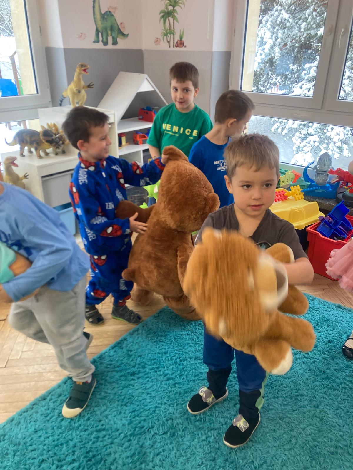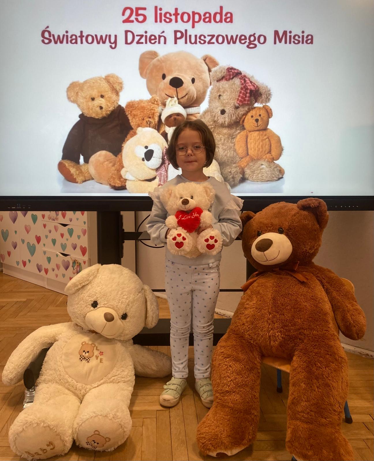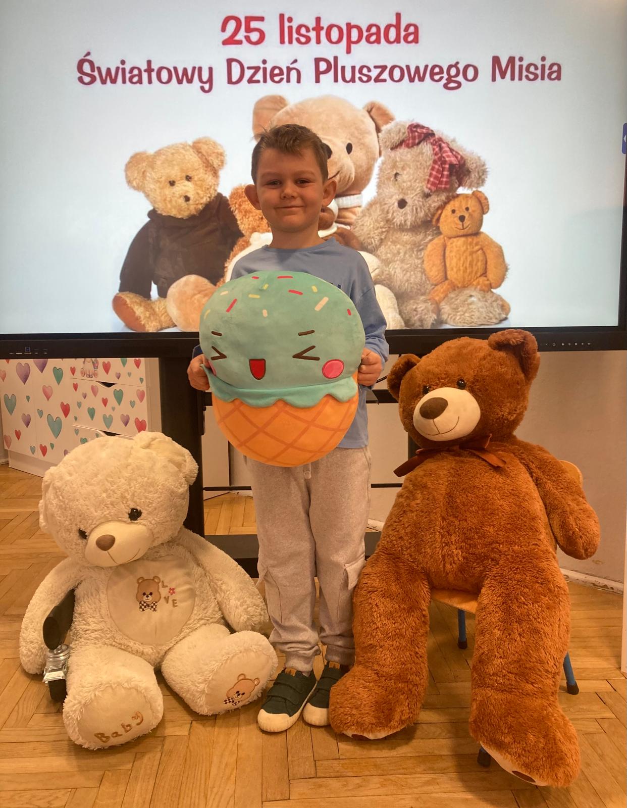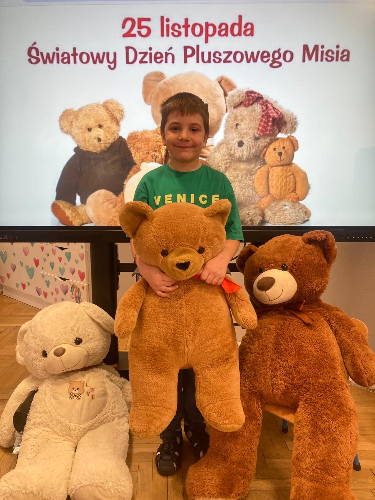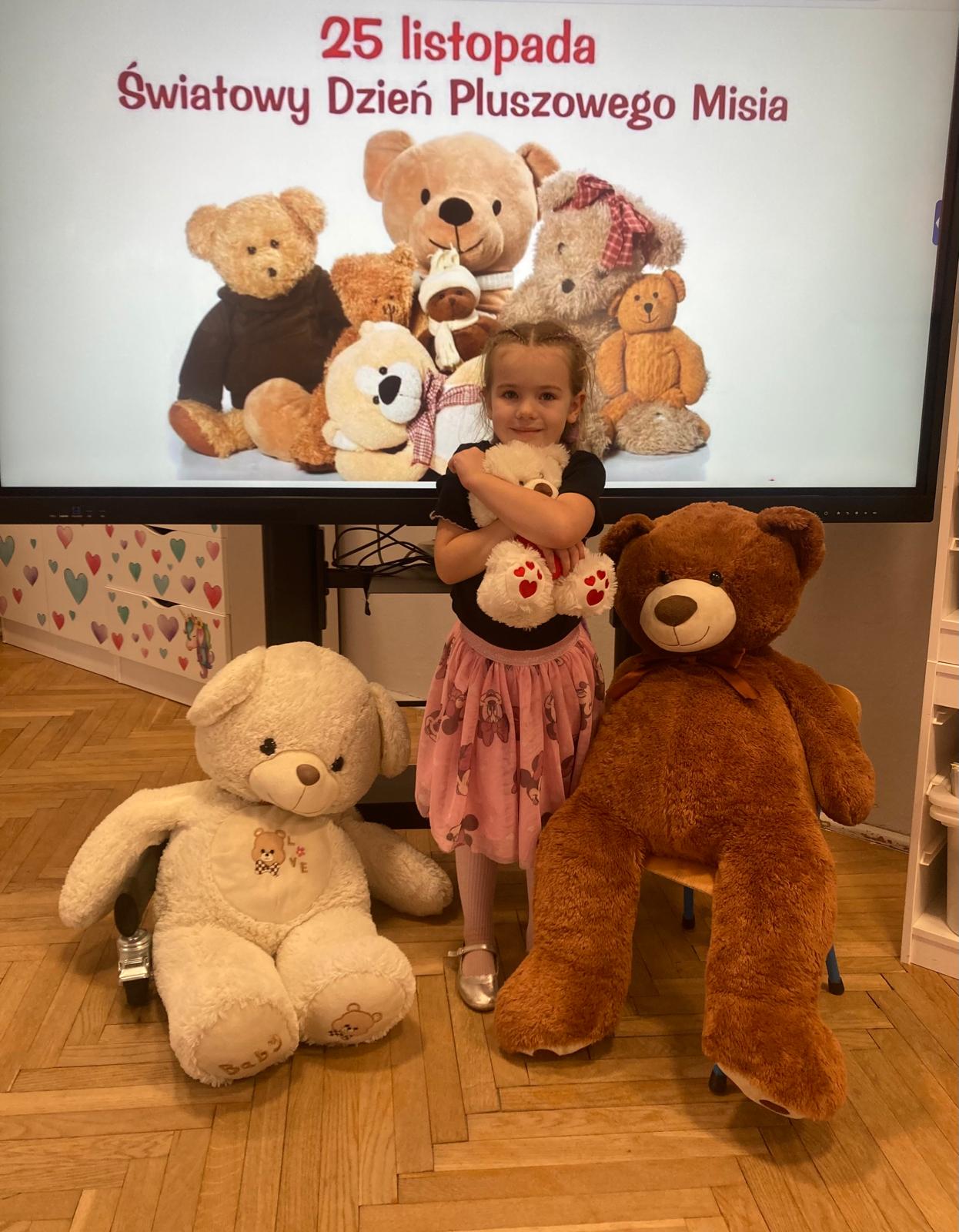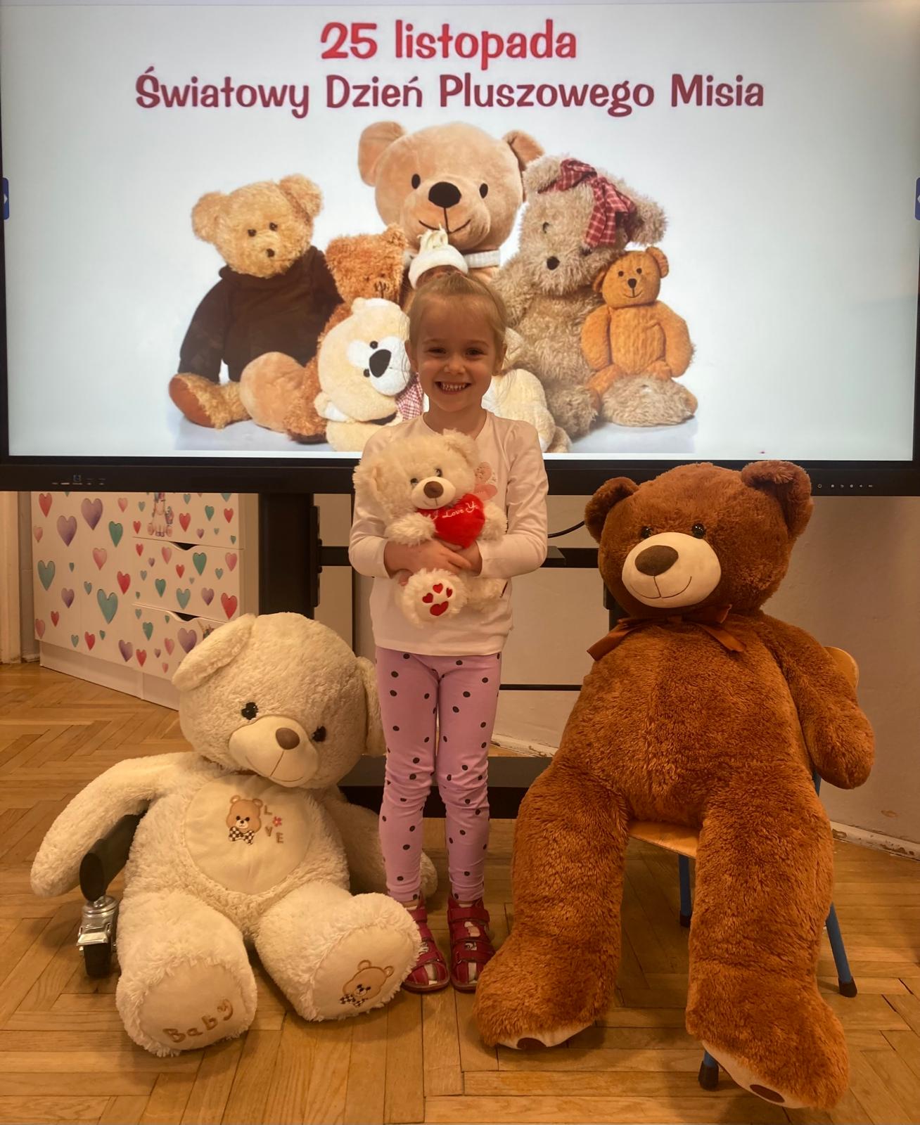 Dzisiaj do przedszkola dzieciaki przyniosły swoje przytualnki-misie.Pluszaki byly dziś przedmiotem zabaw.Był misiowa dyskoteka, szukanie "po śladzie misia" dzieci dotarly do misiowych niespodzianek.Z misiami utrwalaliśmy pojecia o przestrzeni: na, po,obok,za. Rozmawialiśmy o różnych misiach znanych dzieciom z bajek a także o tym czym miś jest dla dziecka. Badalismy misia sensorycznie-Jaki miś jest w dotyku? Misiowe zabawy uzupelniliśmy o słuchanie bajeczki w języku angielskim, osluchujac się z angiielska nazwą pluszaka"Teddy bear".Na koniec pamiątkowa fotografia a także praca plastyczna- kolorowanie dyplomu "Przyjaciel pluszowego misia". ??