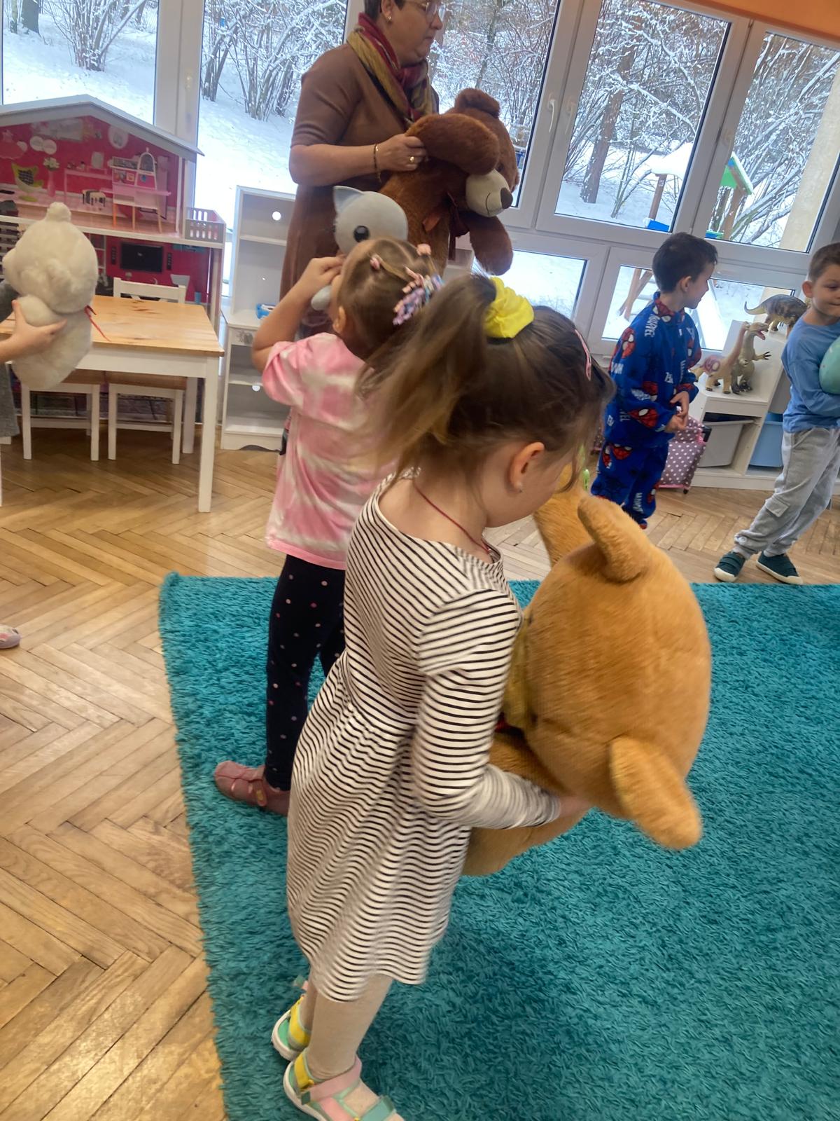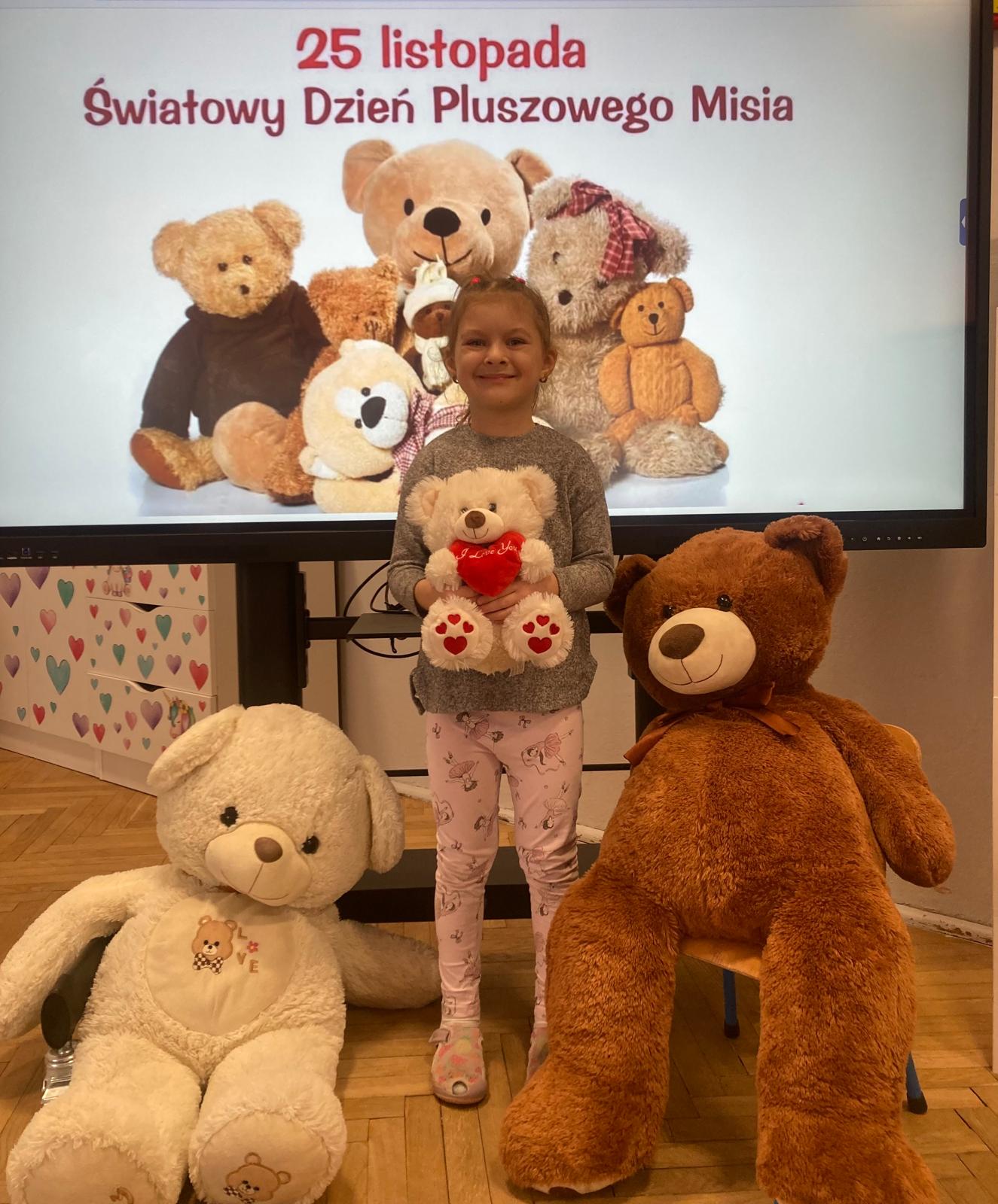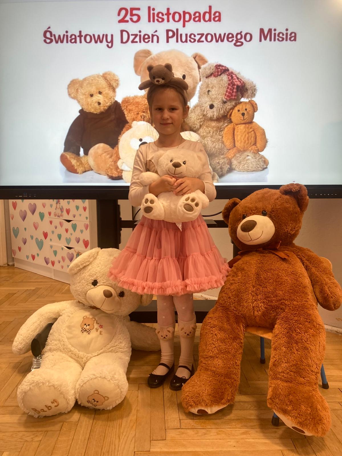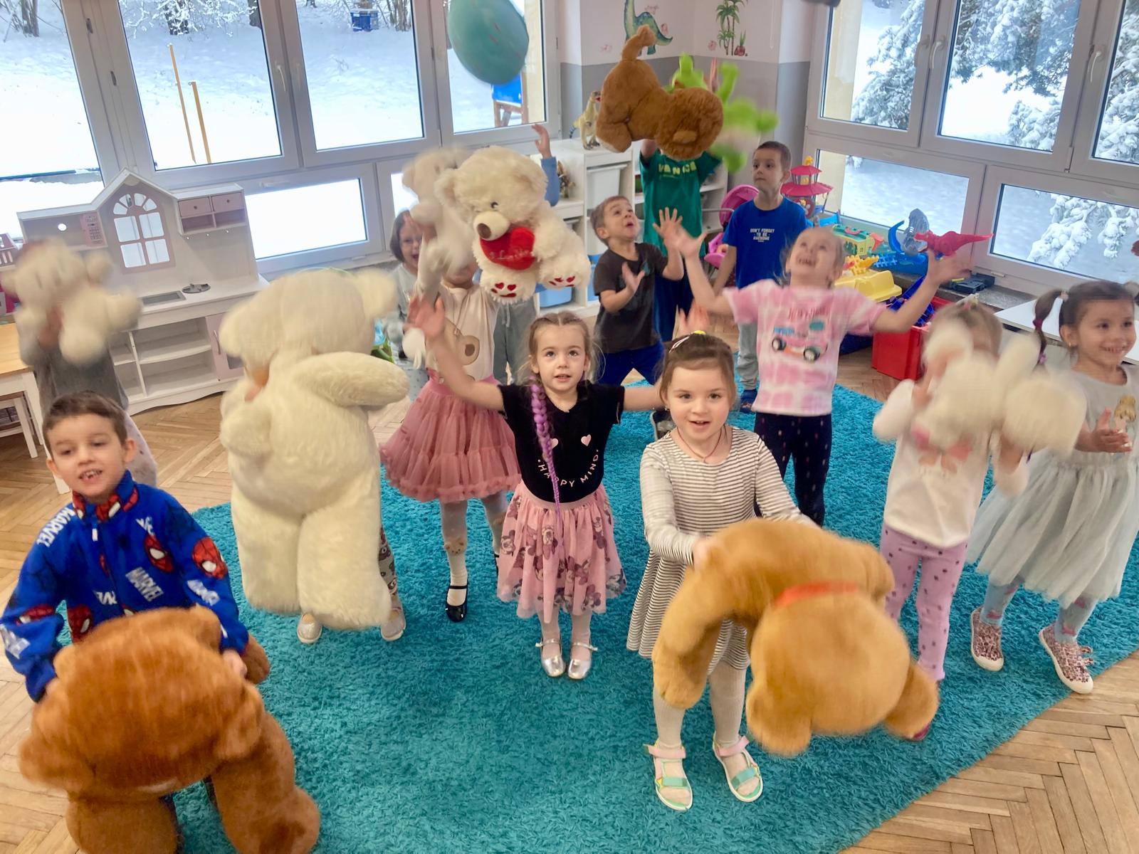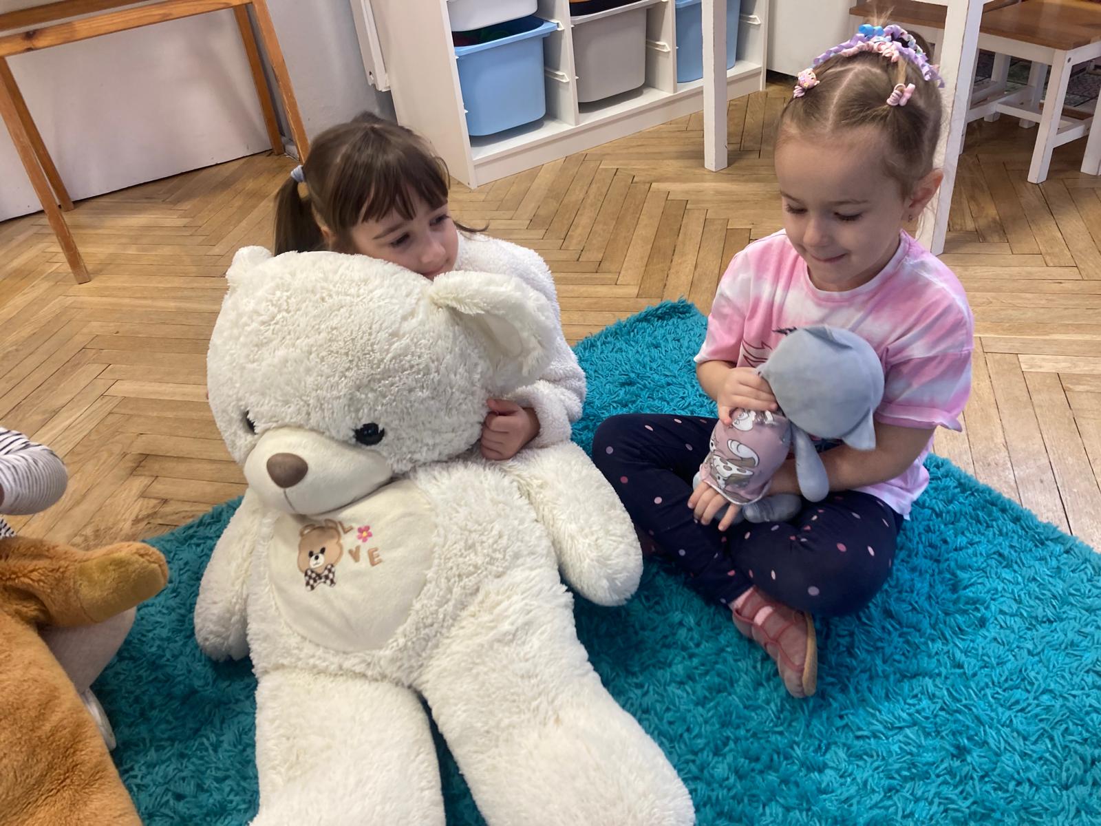 Dzisiaj do przedszkola dzieciaki przyniosły swoje przytualnki-misie.Pluszaki byly dziś przedmiotem zabaw.Był misiowa dyskoteka, szukanie "po śladzie misia" dzieci dotarly do misiowych niespodzianek.Z misiami utrwalaliśmy pojecia o przestrzeni: na, po,obok,za. Rozmawialiśmy o różnych misiach znanych dzieciom z bajek a także o tym czym miś jest dla dziecka. Badalismy misia sensorycznie-Jaki miś jest w dotyku? Misiowe zabawy uzupelniliśmy o słuchanie bajeczki w języku angielskim, osluchujac się z angiielska nazwą pluszaka"Teddy bear".Na koniec pamiątkowa fotografia a także praca plastyczna- kolorowanie dyplomu "Przyjaciel pluszowego misia". ??