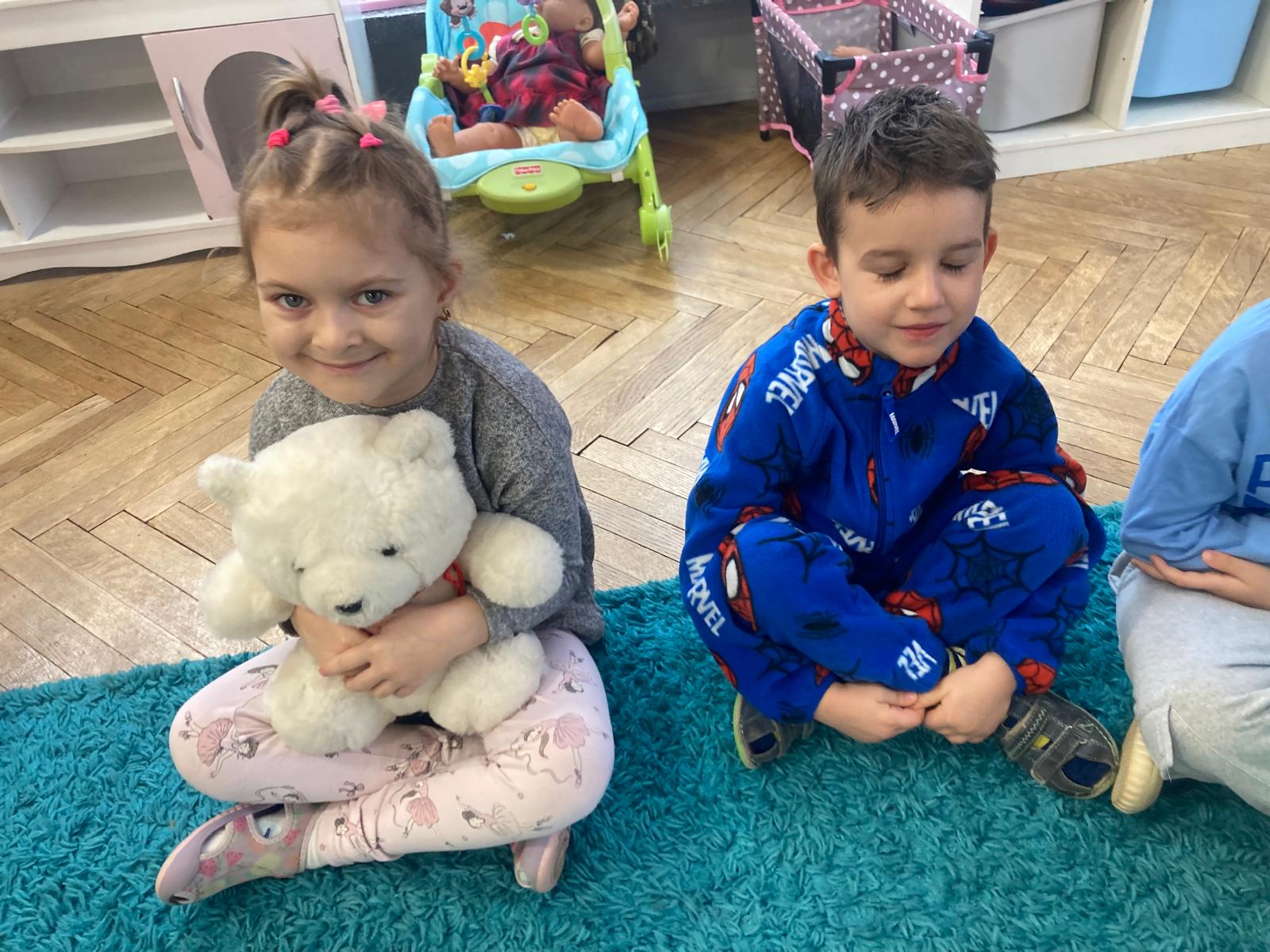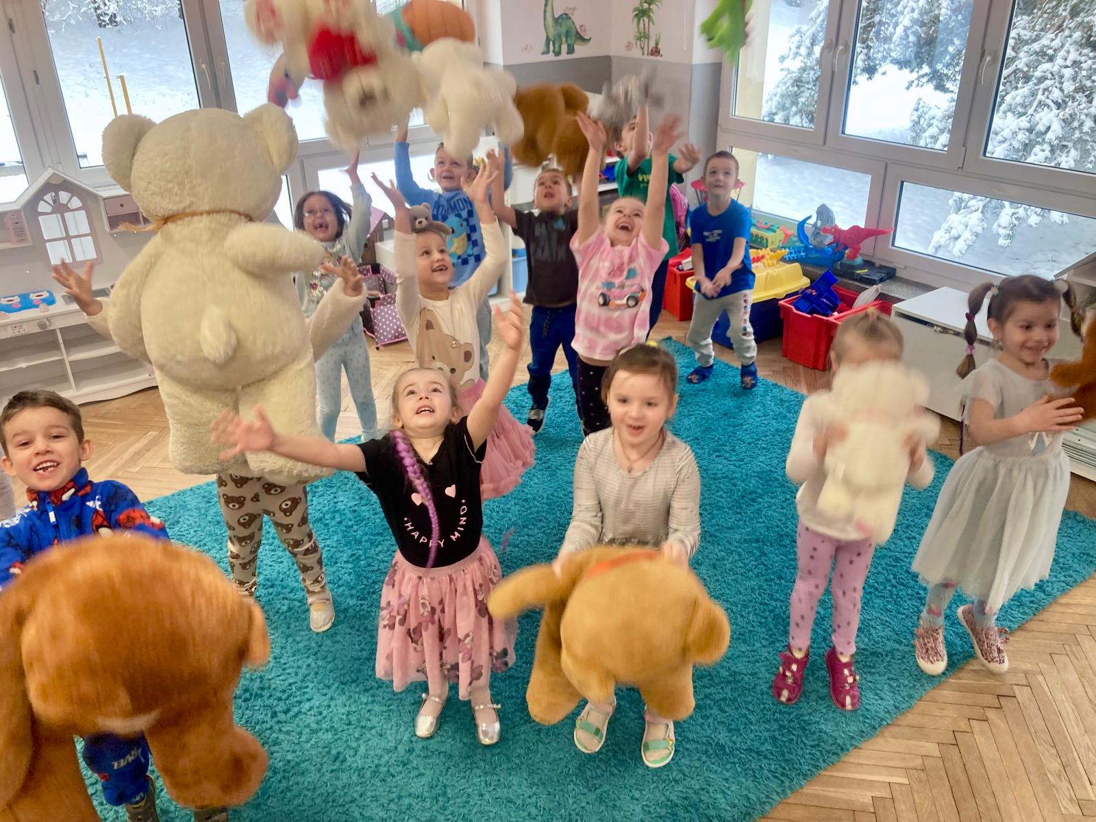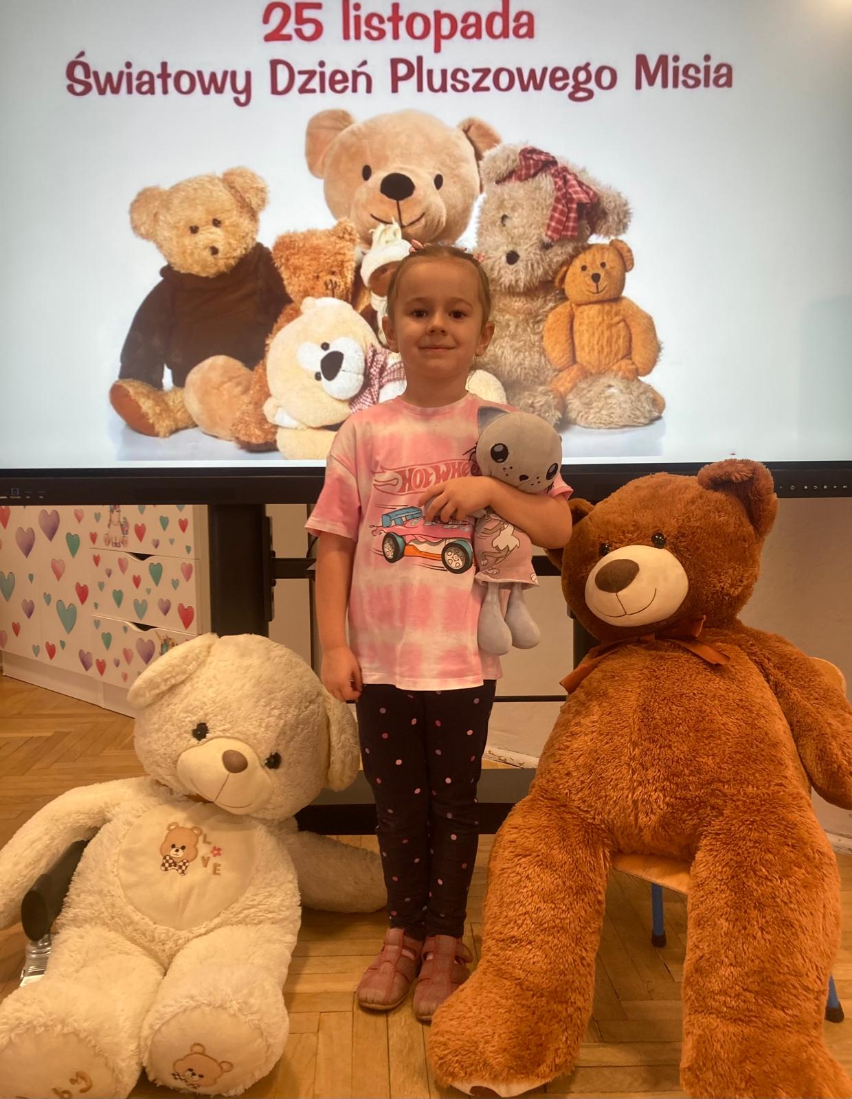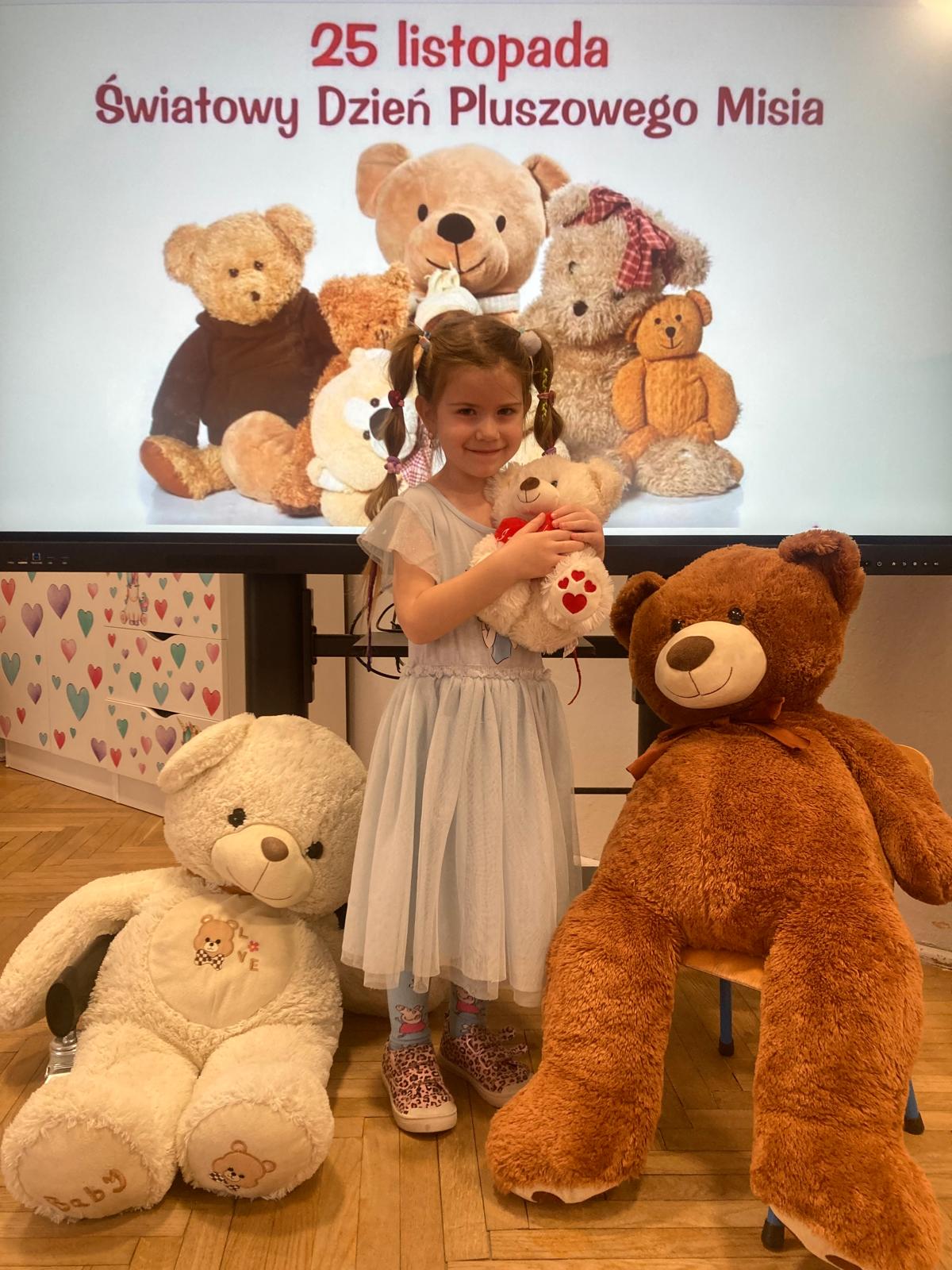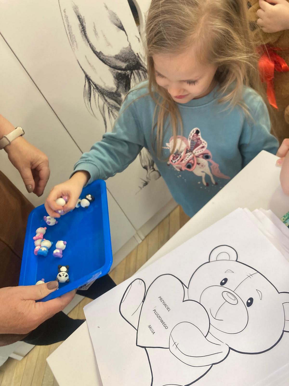 Dzisiaj do przedszkola dzieciaki przyniosły swoje przytualnki-misie.Pluszaki byly dziś przedmiotem zabaw.Był misiowa dyskoteka, szukanie "po śladzie misia" dzieci dotarly do misiowych niespodzianek.Z misiami utrwalaliśmy pojecia o przestrzeni: na, po,obok,za. Rozmawialiśmy o różnych misiach znanych dzieciom z bajek a także o tym czym miś jest dla dziecka. Badalismy misia sensorycznie-Jaki miś jest w dotyku? Misiowe zabawy uzupelniliśmy o słuchanie bajeczki w języku angielskim, osluchujac się z angiielska nazwą pluszaka"Teddy bear".Na koniec pamiątkowa fotografia a także praca plastyczna- kolorowanie dyplomu "Przyjaciel pluszowego misia". ??