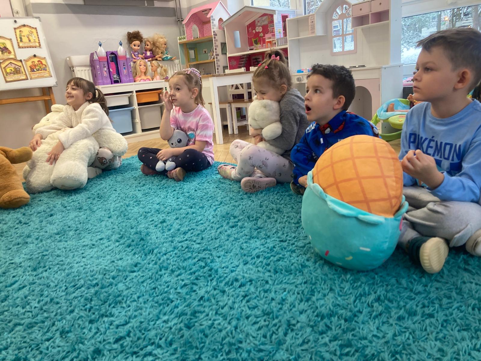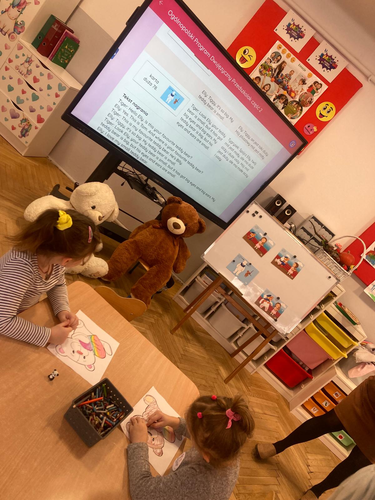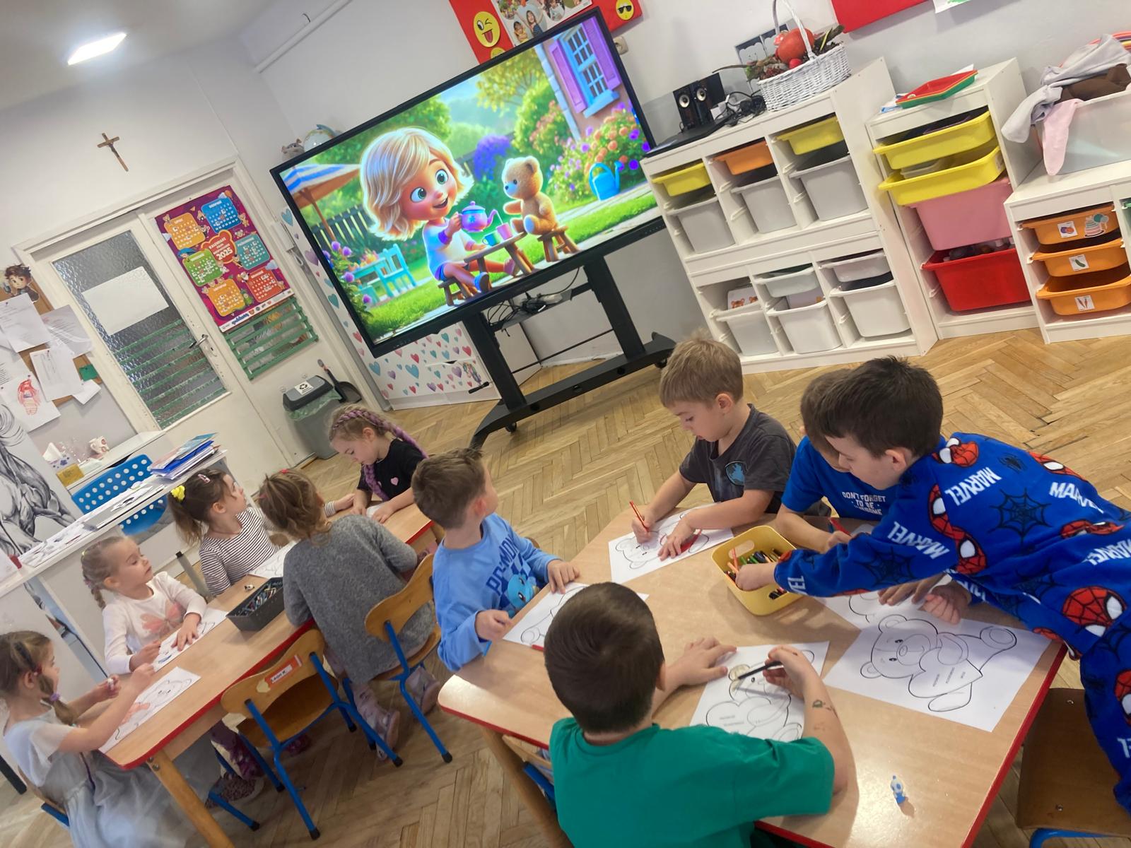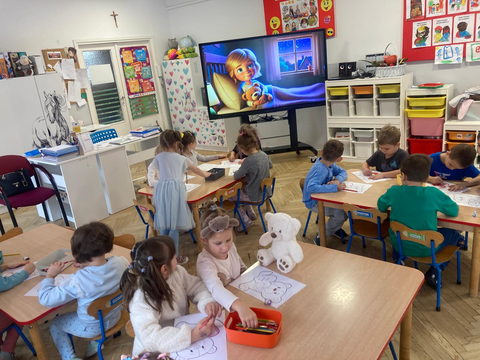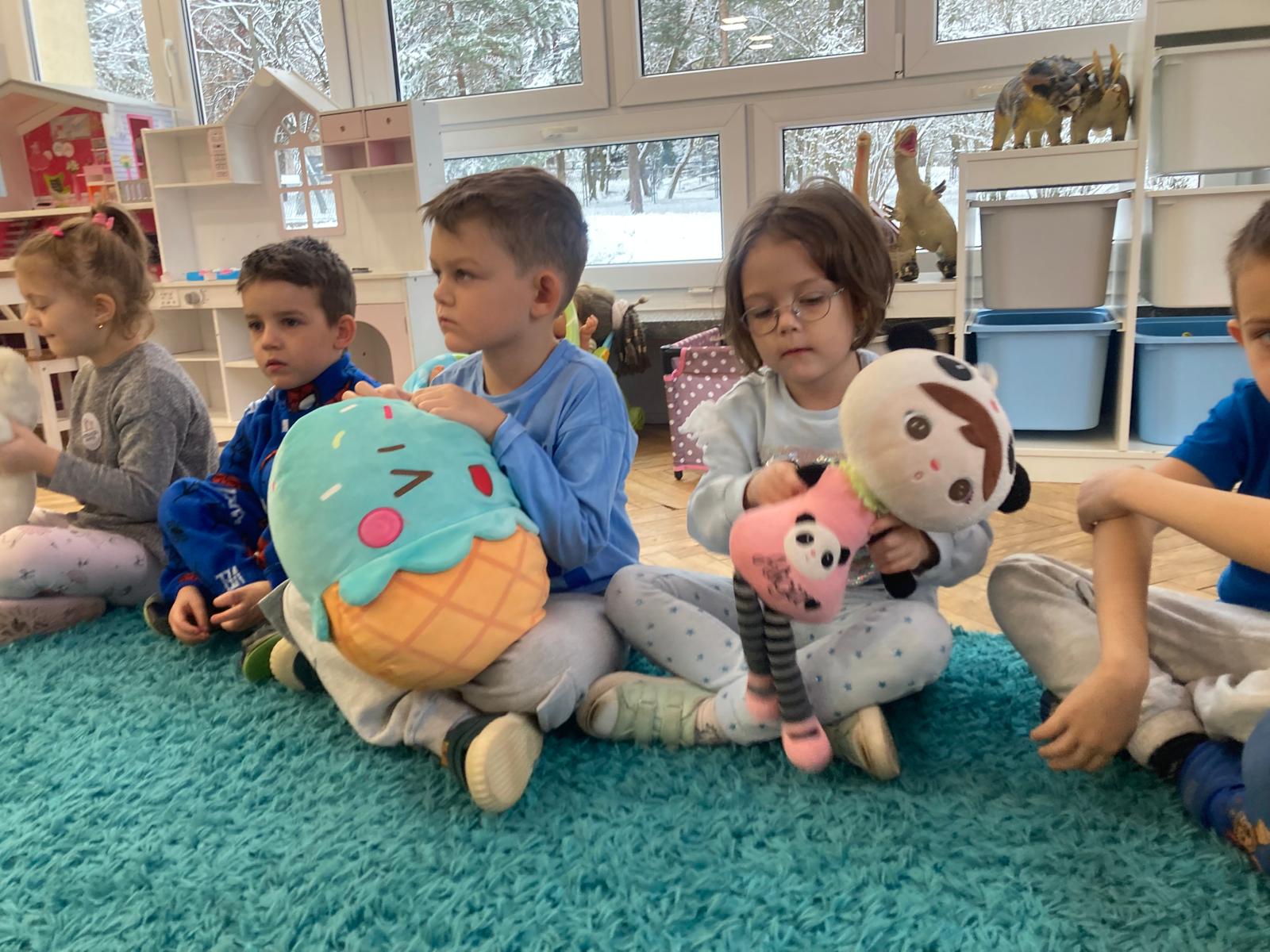 Dzisiaj do przedszkola dzieciaki przyniosły swoje przytualnki-misie.Pluszaki byly dziś przedmiotem zabaw.Był misiowa dyskoteka, szukanie "po śladzie misia" dzieci dotarly do misiowych niespodzianek.Z misiami utrwalaliśmy pojecia o przestrzeni: na, po,obok,za. Rozmawialiśmy o różnych misiach znanych dzieciom z bajek a także o tym czym miś jest dla dziecka. Badalismy misia sensorycznie-Jaki miś jest w dotyku? Misiowe zabawy uzupelniliśmy o słuchanie bajeczki w języku angielskim, osluchujac się z angiielska nazwą pluszaka"Teddy bear".Na koniec pamiątkowa fotografia a także praca plastyczna- kolorowanie dyplomu "Przyjaciel pluszowego misia". ??