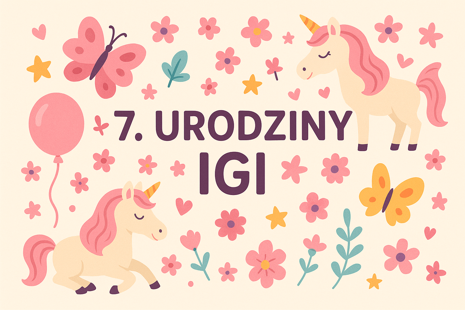 Z okazji Twoich 7. urodzin życzymy Ci dużo radości, uśmiechu każdego dnia, wielu wspaniałych przygód i spełnienia wszystkich marzeń – tych małych i dużych.