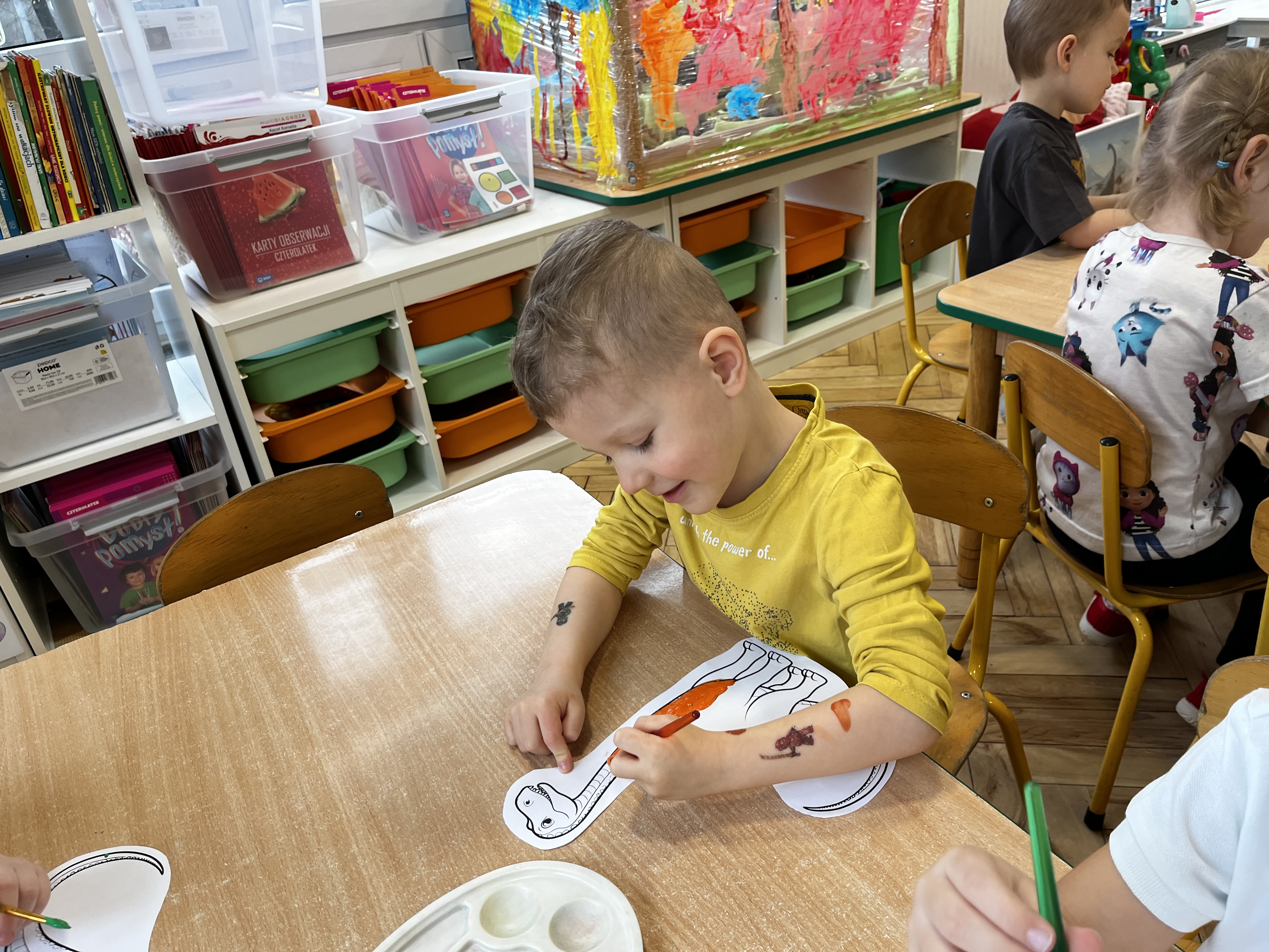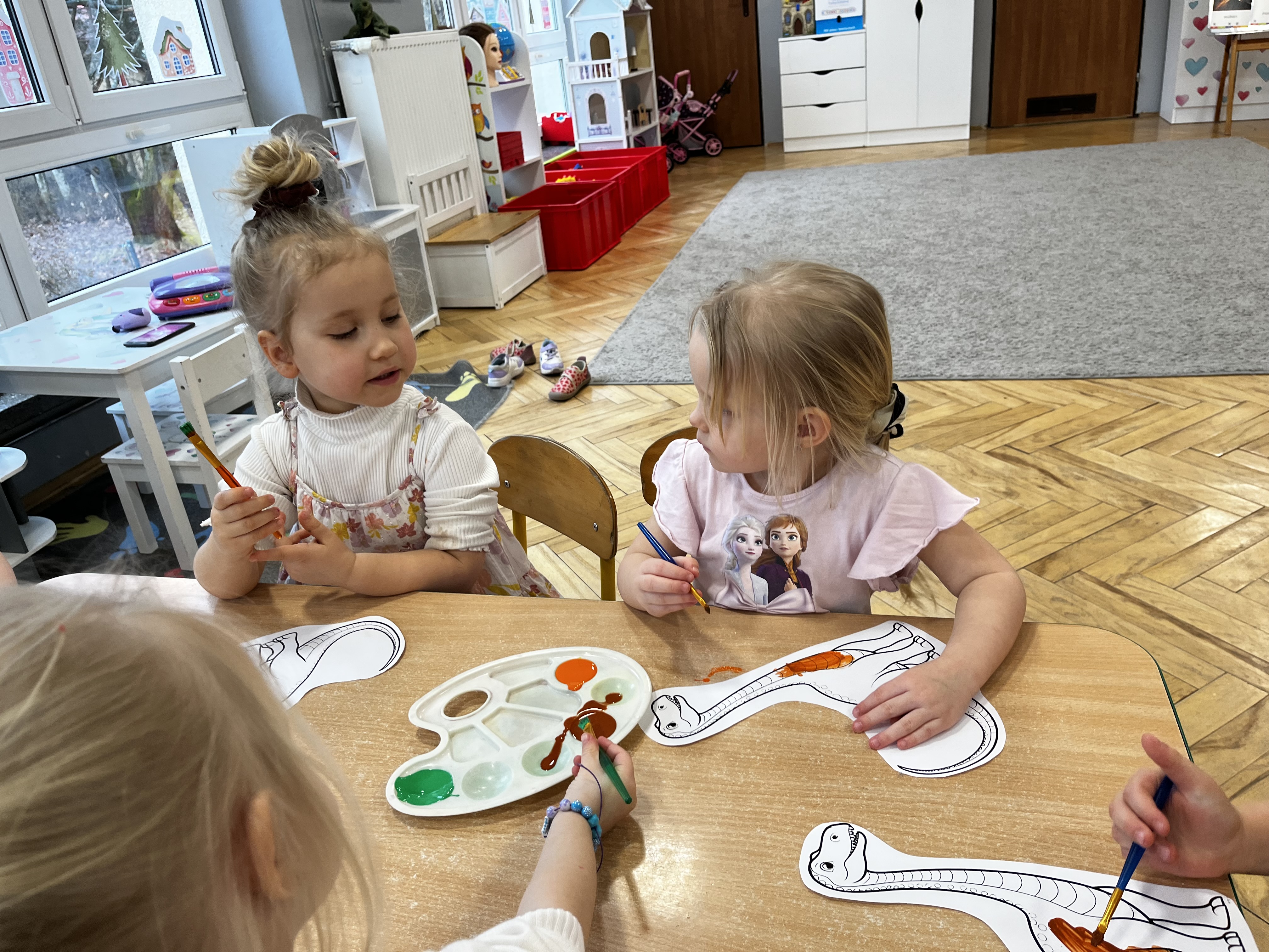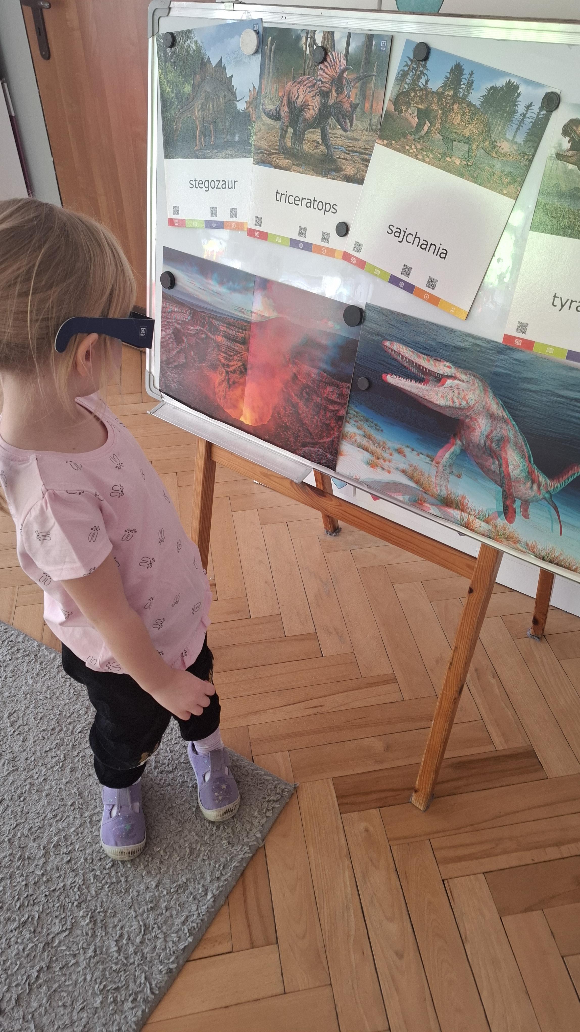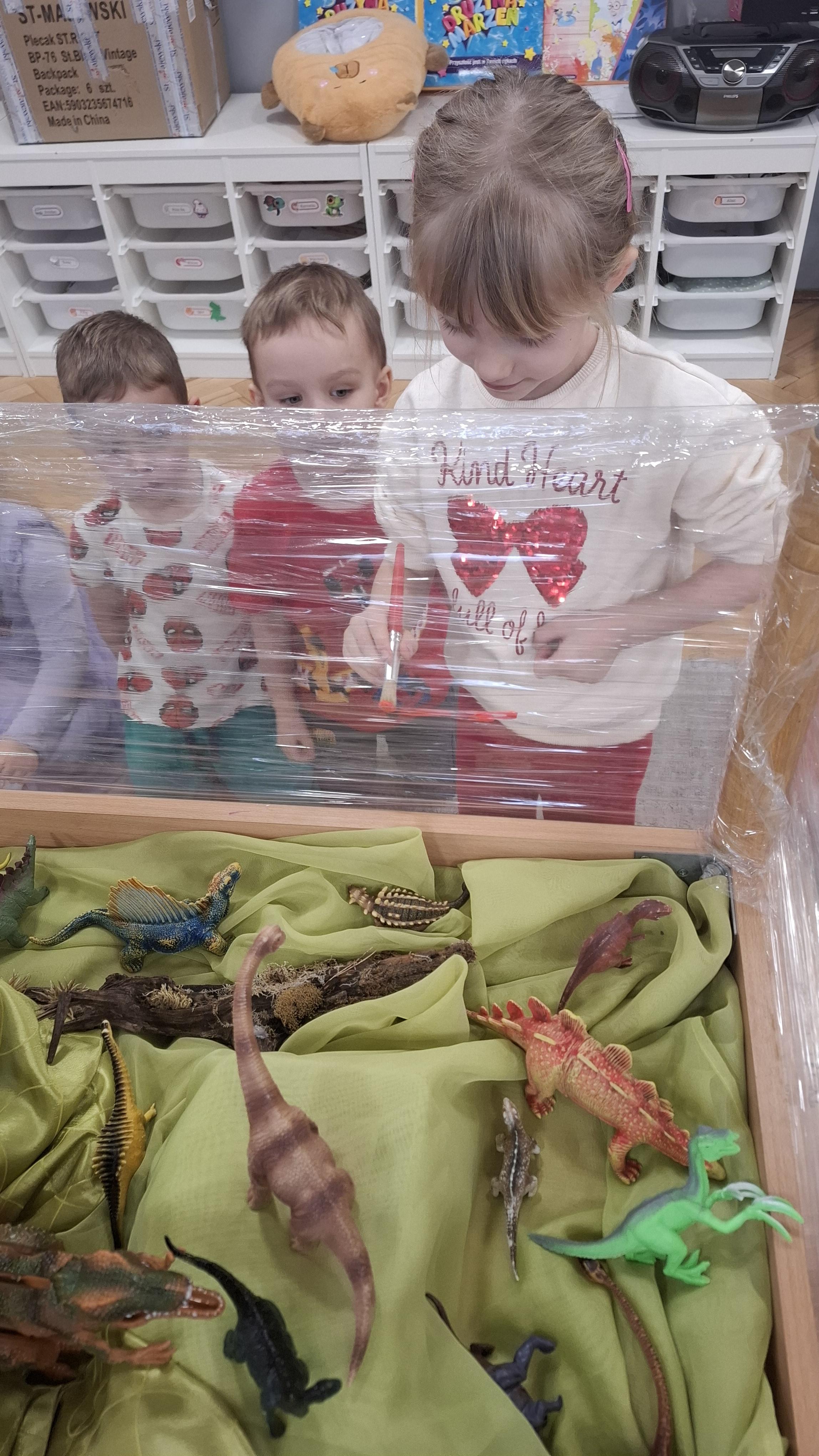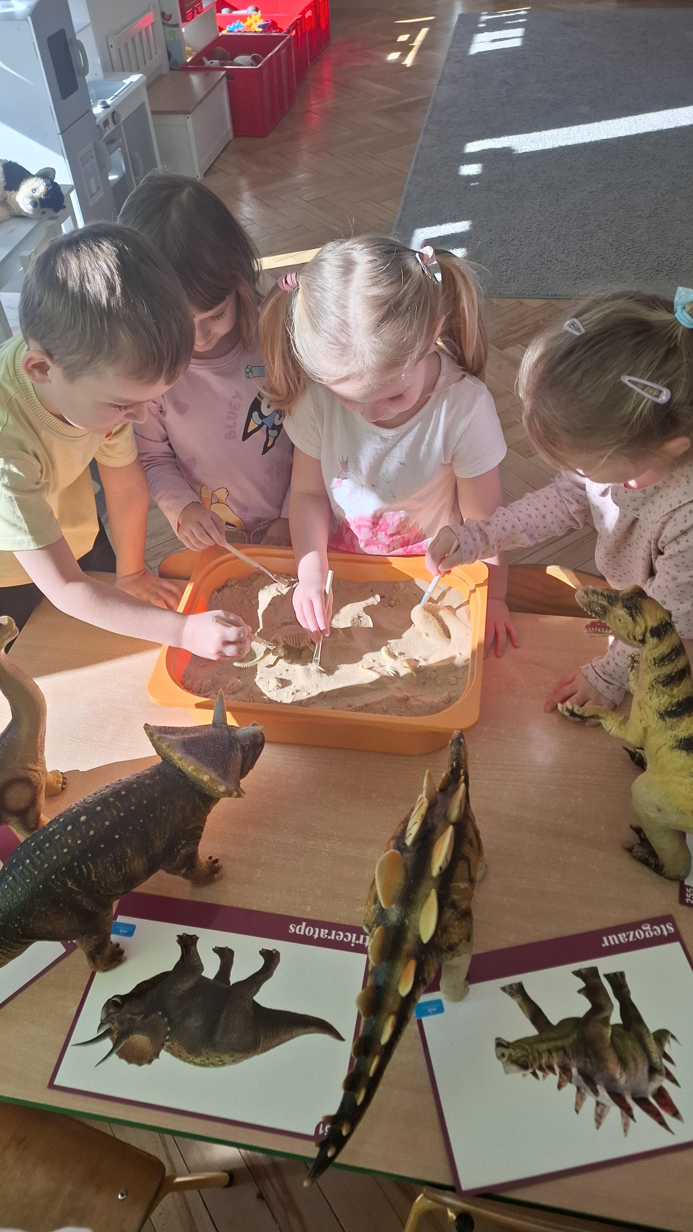 Tydzień rozpoczęliśmy od wysłuchania opowiadania W. Kosteckiej „Czy to jest smok?”, dzięki któremu dzieci dowiedziały się, kim jest paleontolog i czym się zajmuje. Poznały również miejsce, w którym przechowuje się odnalezione skarby przeszłości – muzeum.