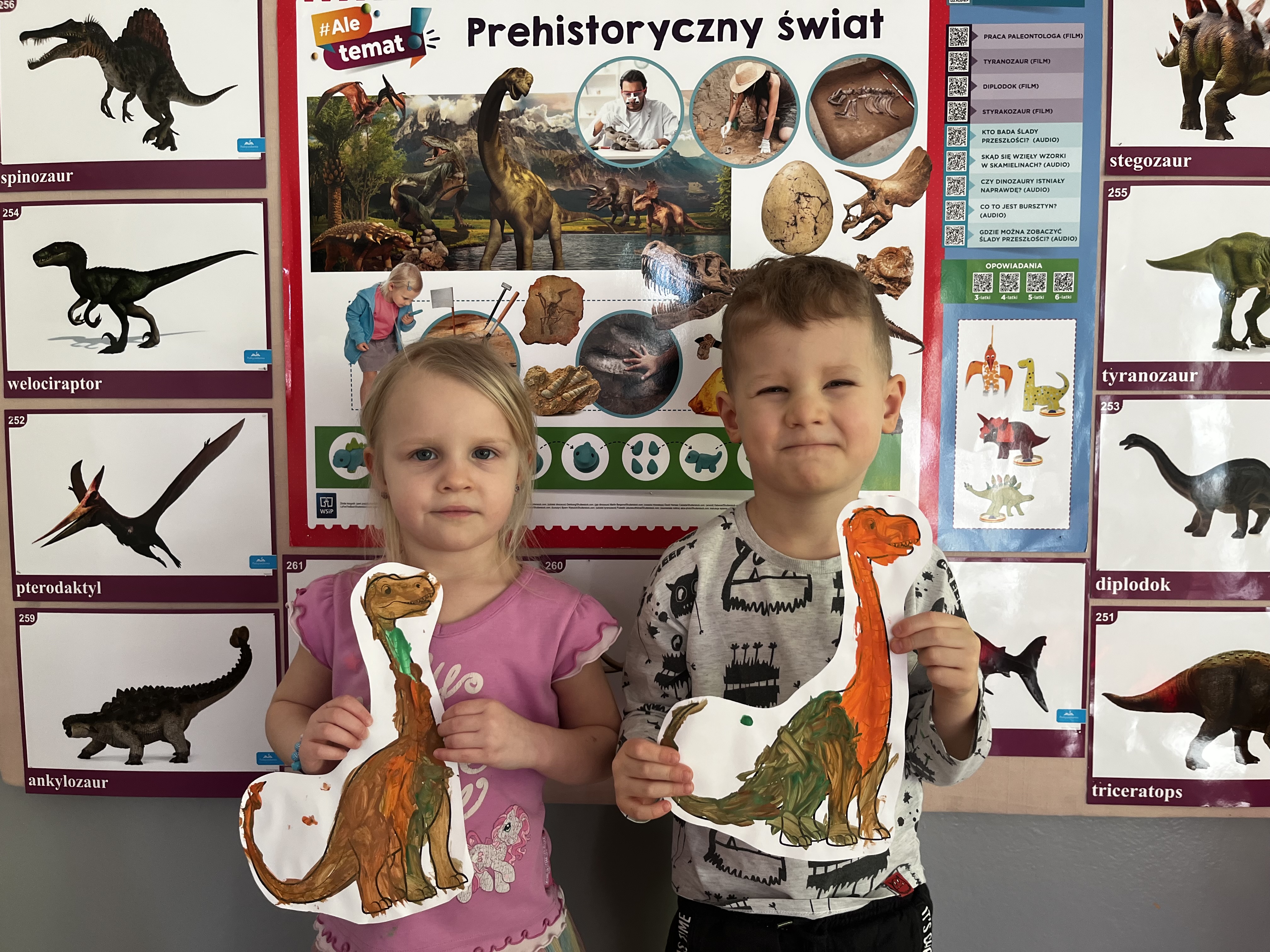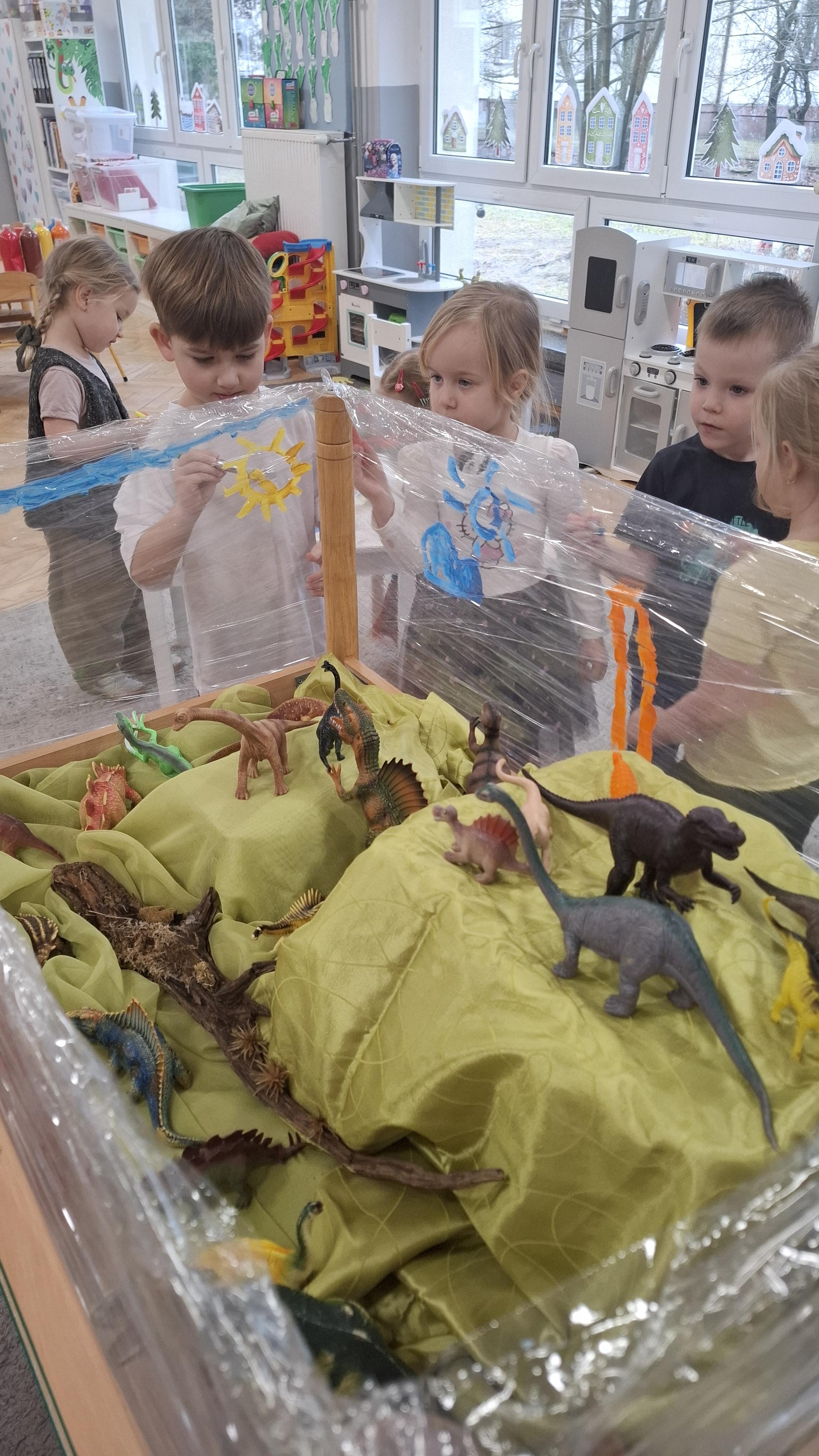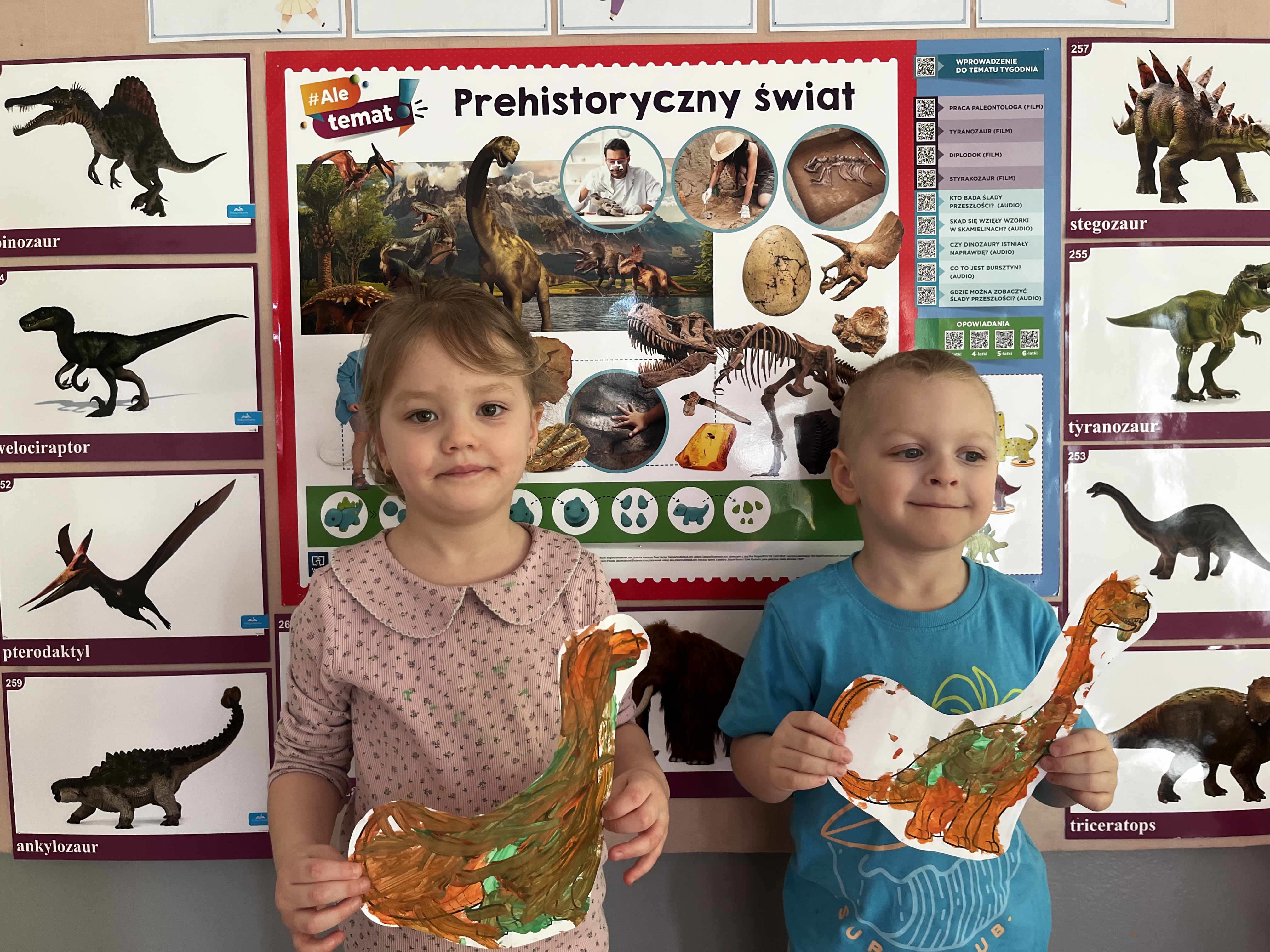 W minionym tygodniu wybraliśmy się z dziećmi w niezwykłą podróż do bardzo odległej przeszłości. Przedszkolaki miały okazję dowiedzieć się, jak wyglądał świat miliony lat temu. Tematy związane z prehistorią wzbudziły w nich ogromne zainteresowanie i wiele pytań. Ta tajemnicza przeszłość stała się dla nich inspiracją do poznawania nowych informacji.