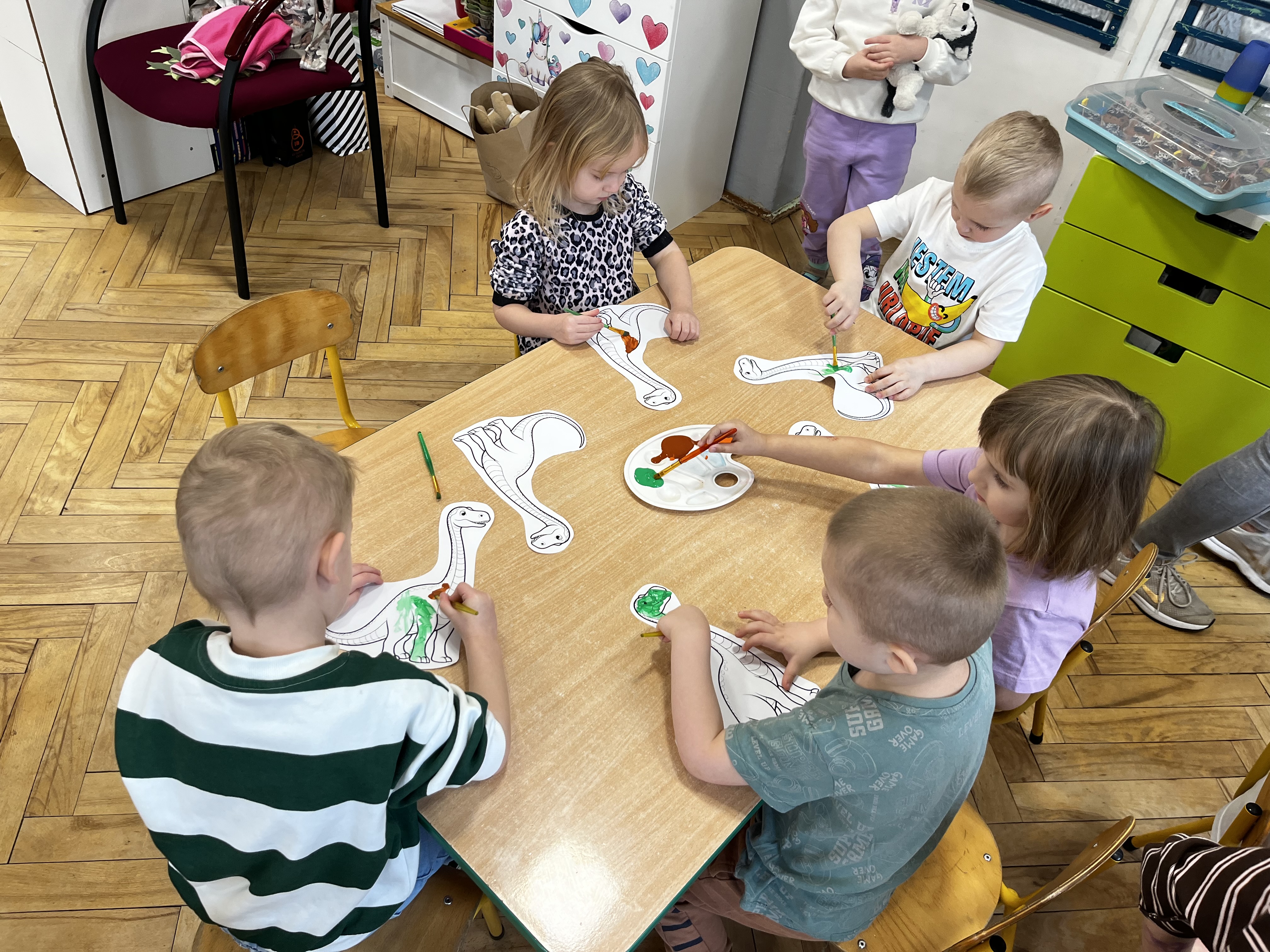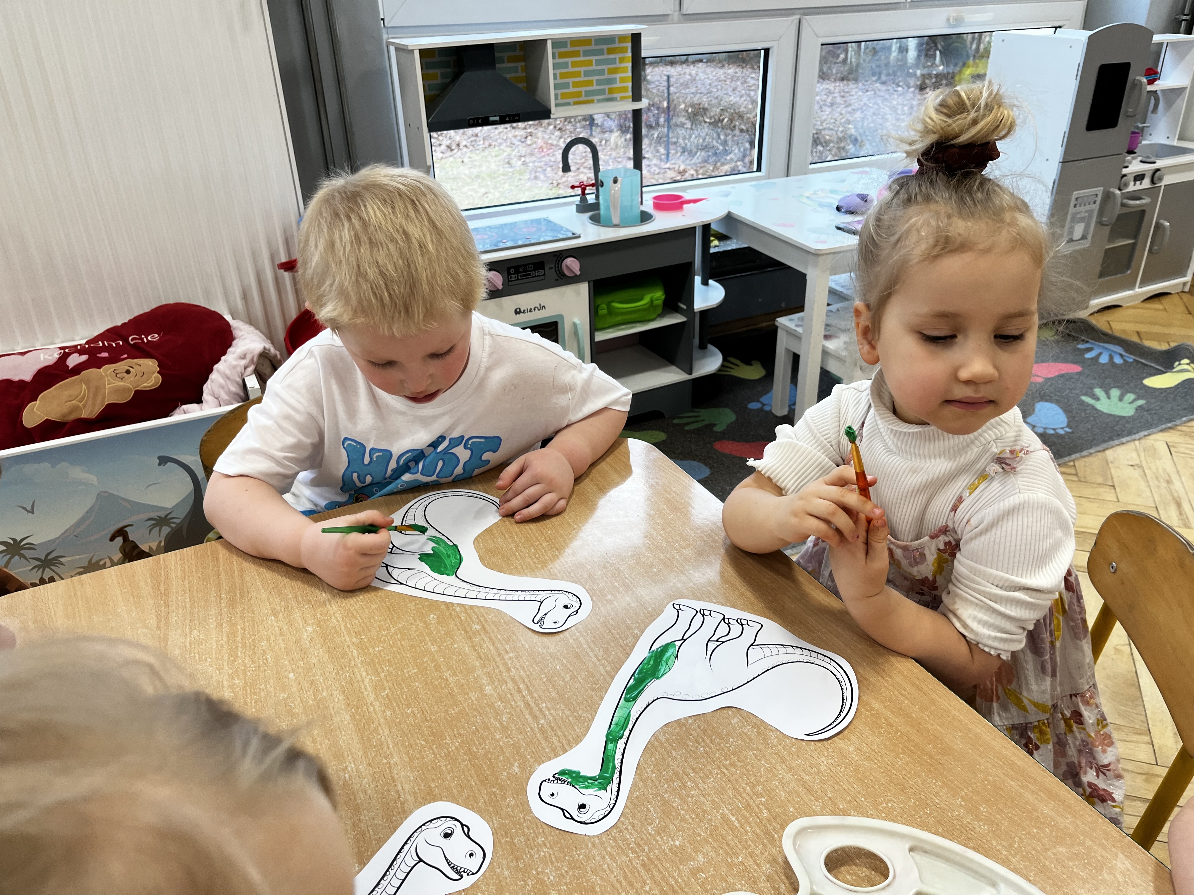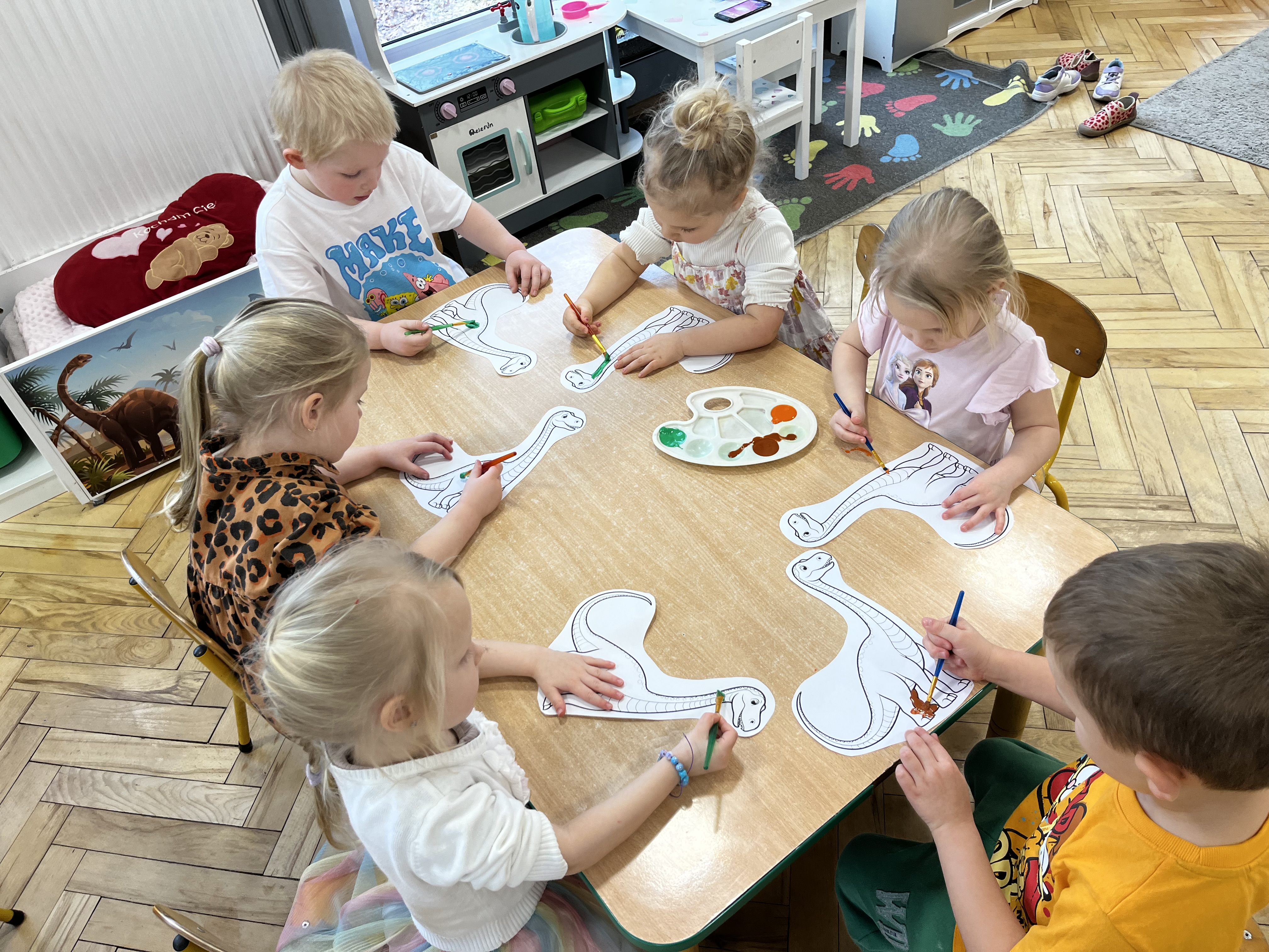 W minionym tygodniu wybraliśmy się z dziećmi w niezwykłą podróż do bardzo odległej przeszłości. Przedszkolaki miały okazję dowiedzieć się, jak wyglądał świat miliony lat temu. Tematy związane z prehistorią wzbudziły w nich ogromne zainteresowanie i wiele pytań. Ta tajemnicza przeszłość stała się dla nich inspiracją do poznawania nowych informacji.