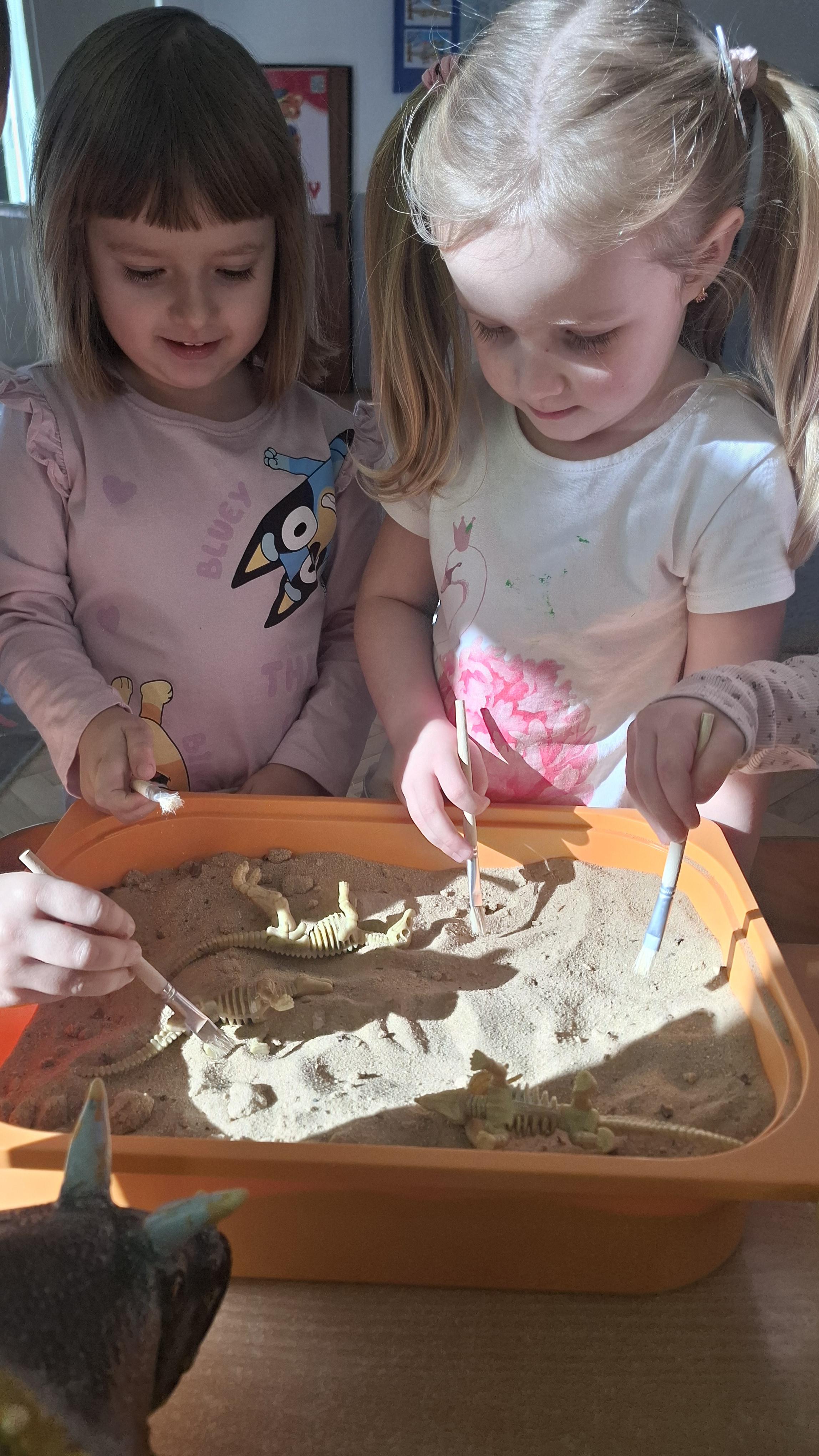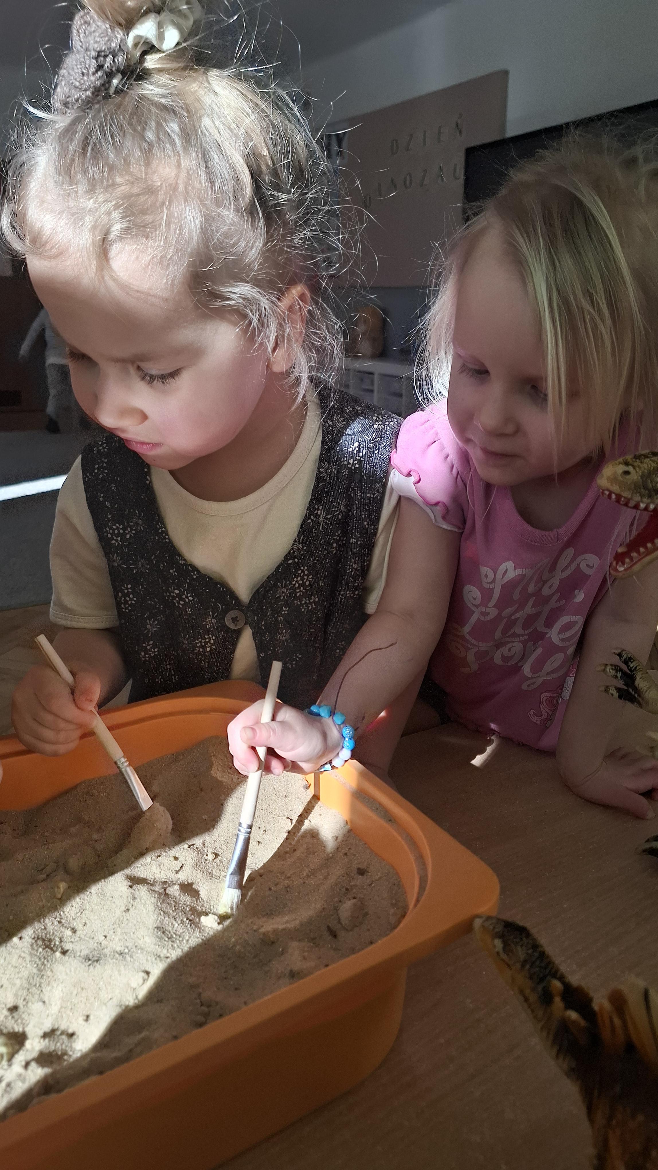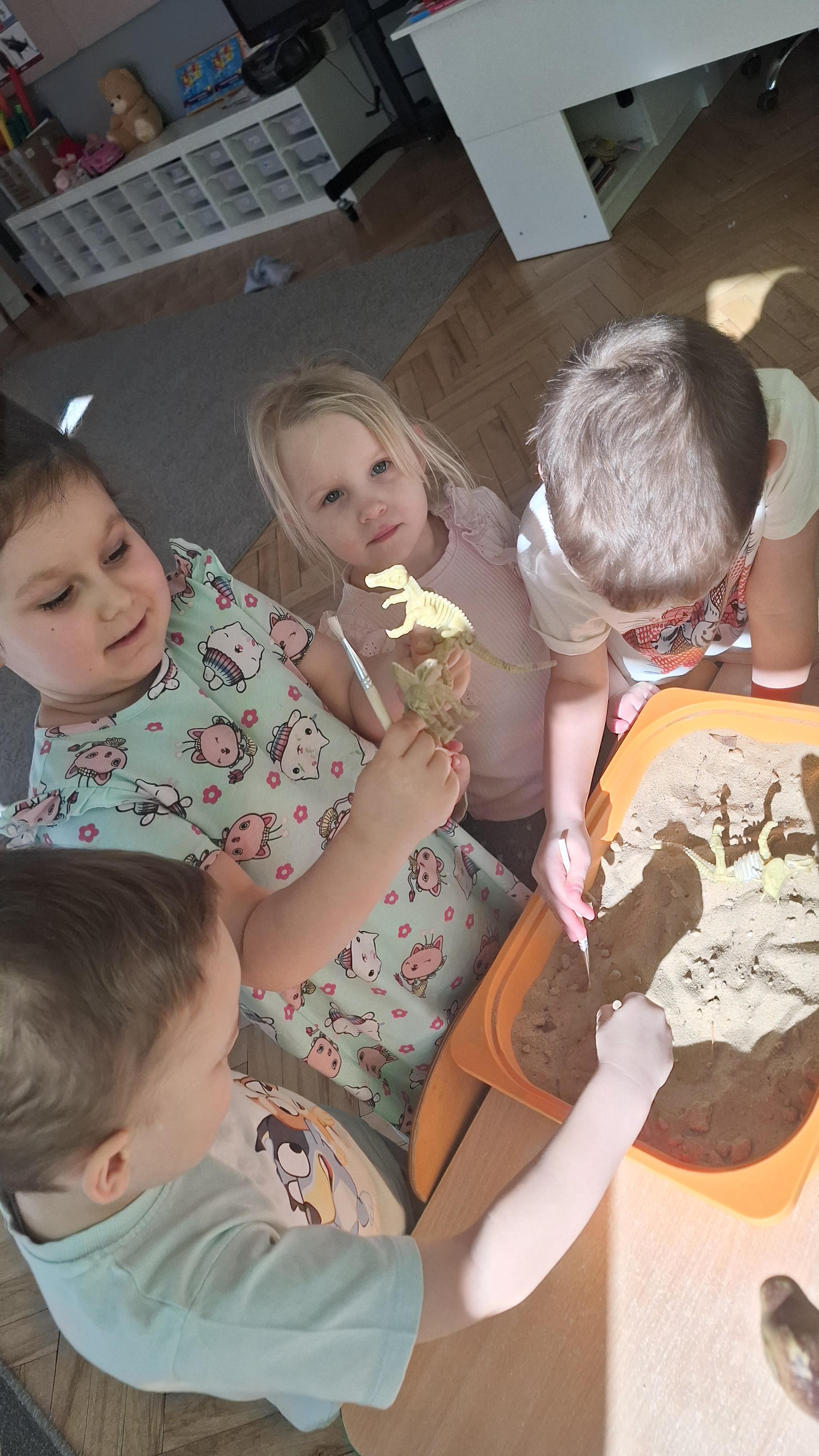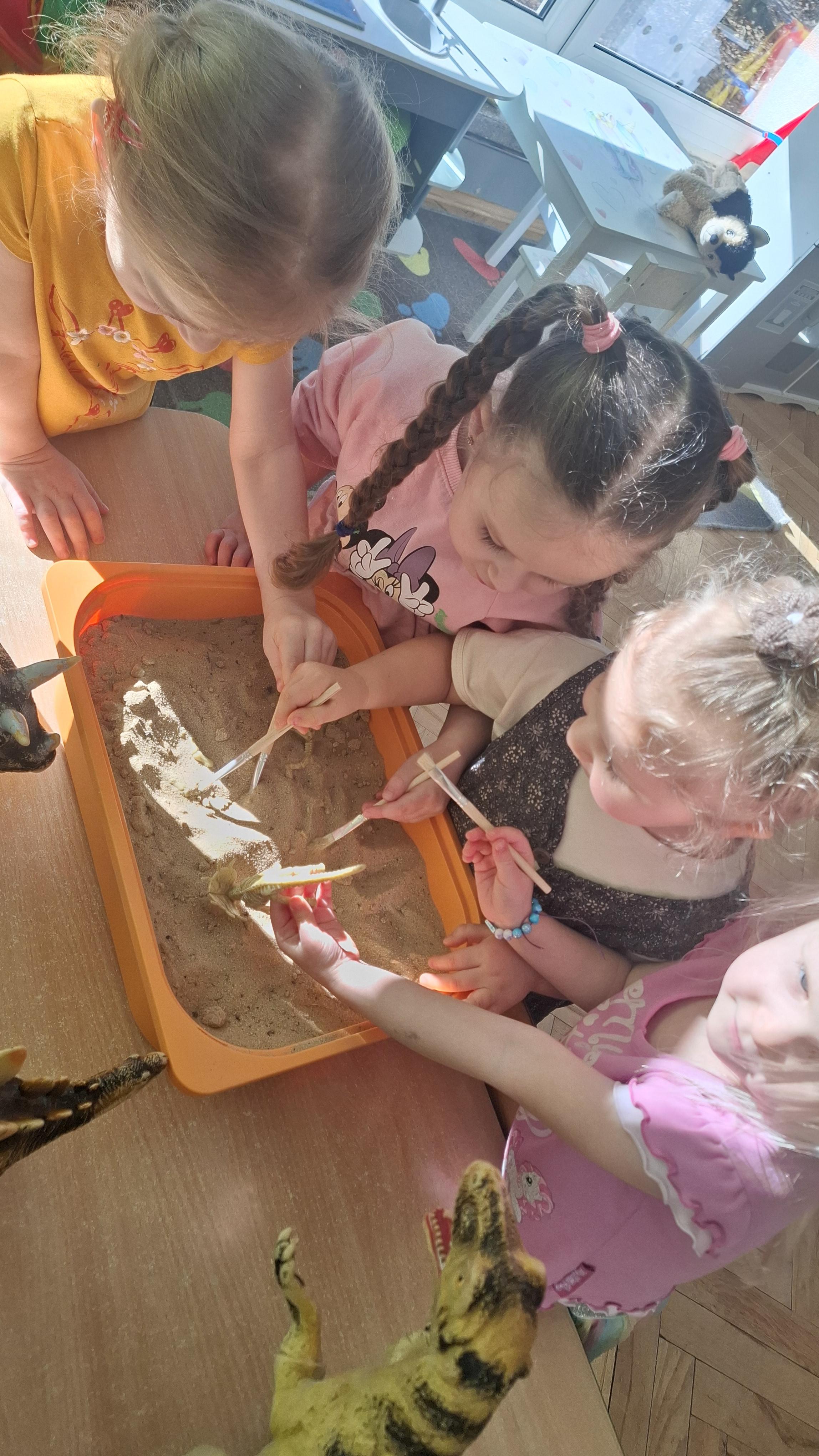 Dużym zainteresowaniem cieszył się eksperyment polegający na odkrywaniu „skarbów” ukrytych w pustynnym piasku. Był on punktem wyjścia do rozmowy o śladach przeszłości. Podczas zabawy „Epoka lodowcowa” dzieci poznały zwierzęta, które żyły dawno temu, takie jak mamut czy tygrys szablozębny, i dowiedziały się, że były one przodkami współczesnych gatunków.