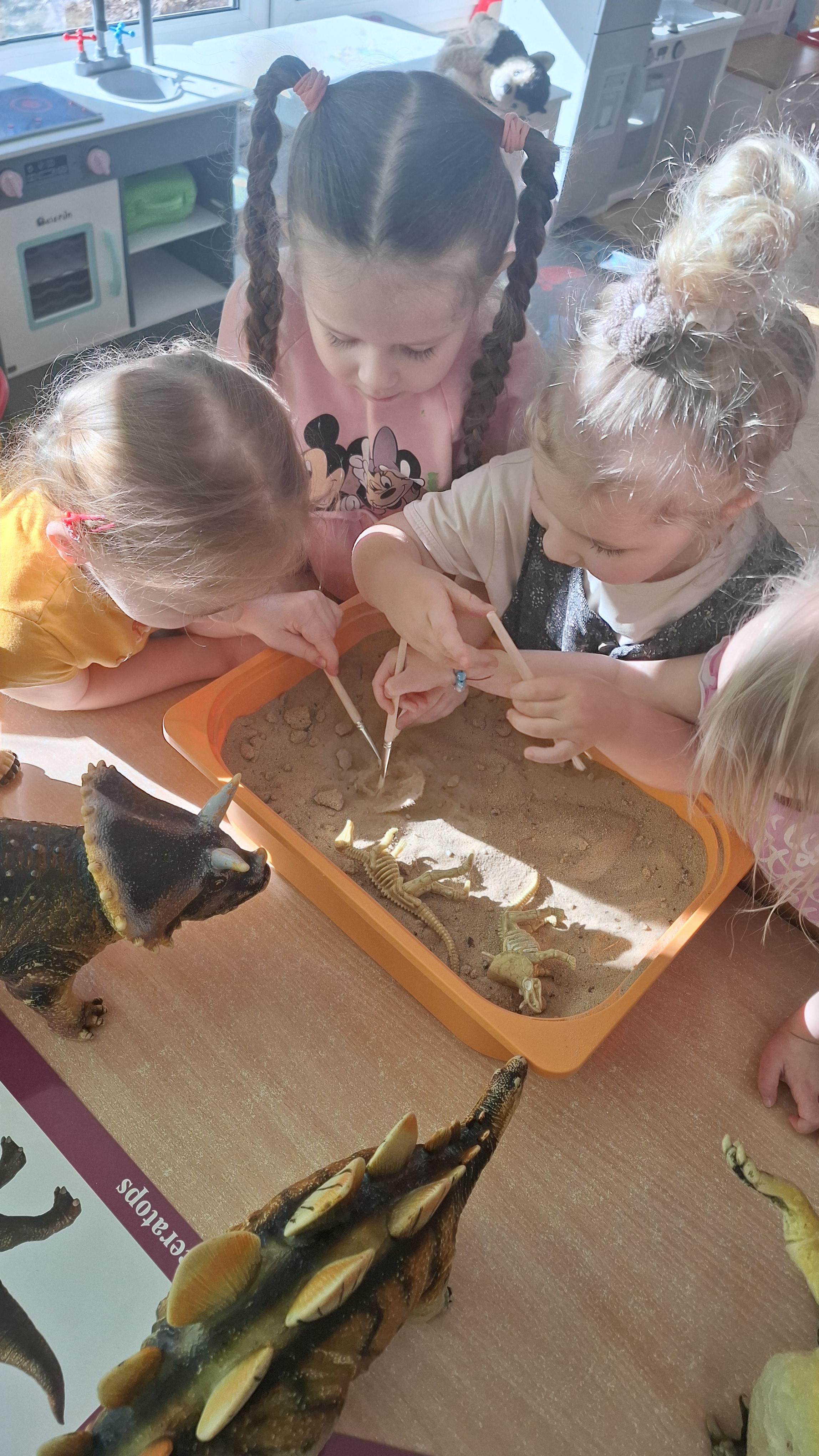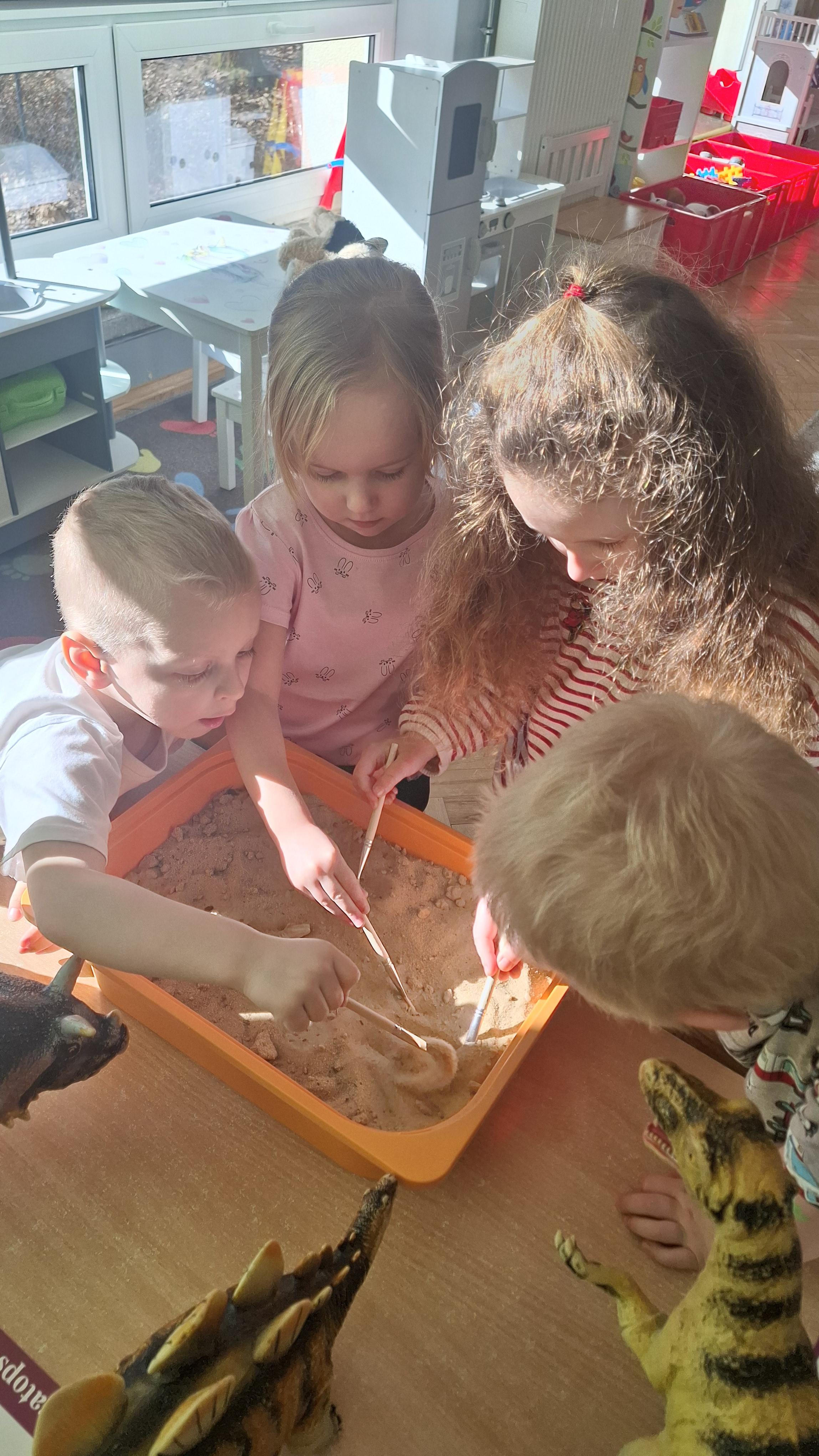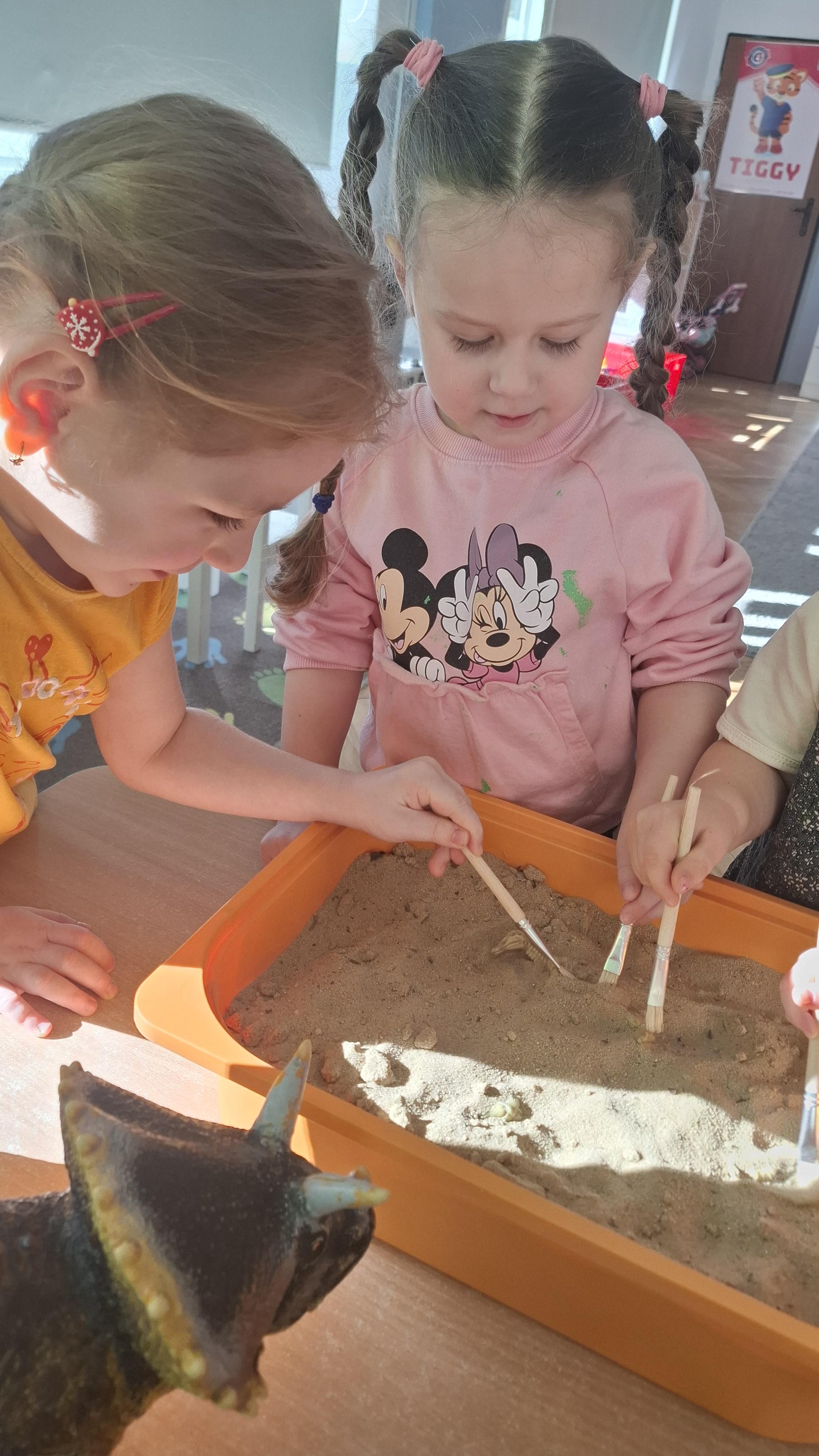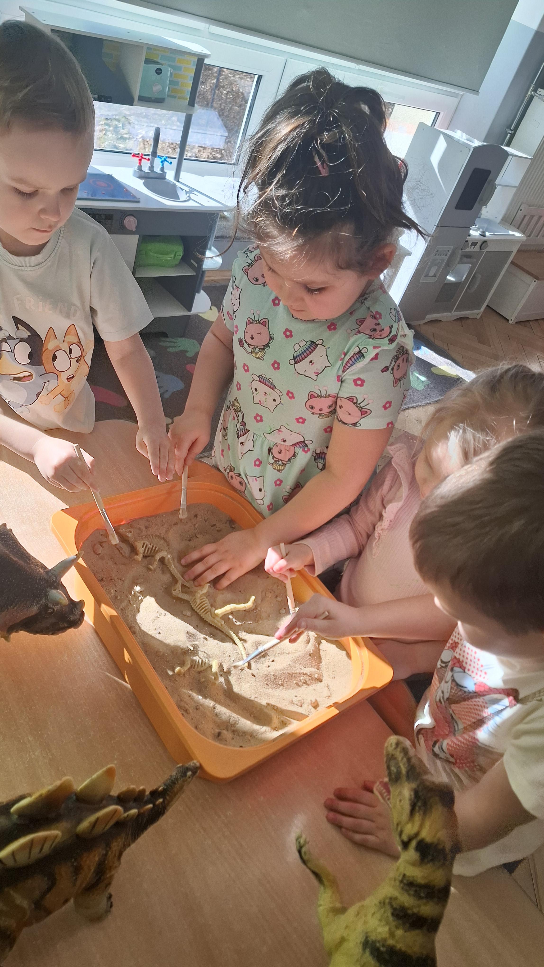 Dużym zainteresowaniem cieszył się eksperyment polegający na odkrywaniu „skarbów” ukrytych w pustynnym piasku. Był on punktem wyjścia do rozmowy o śladach przeszłości. Podczas zabawy „Epoka lodowcowa” dzieci poznały zwierzęta, które żyły dawno temu, takie jak mamut czy tygrys szablozębny, i dowiedziały się, że były one przodkami współczesnych gatunków.
