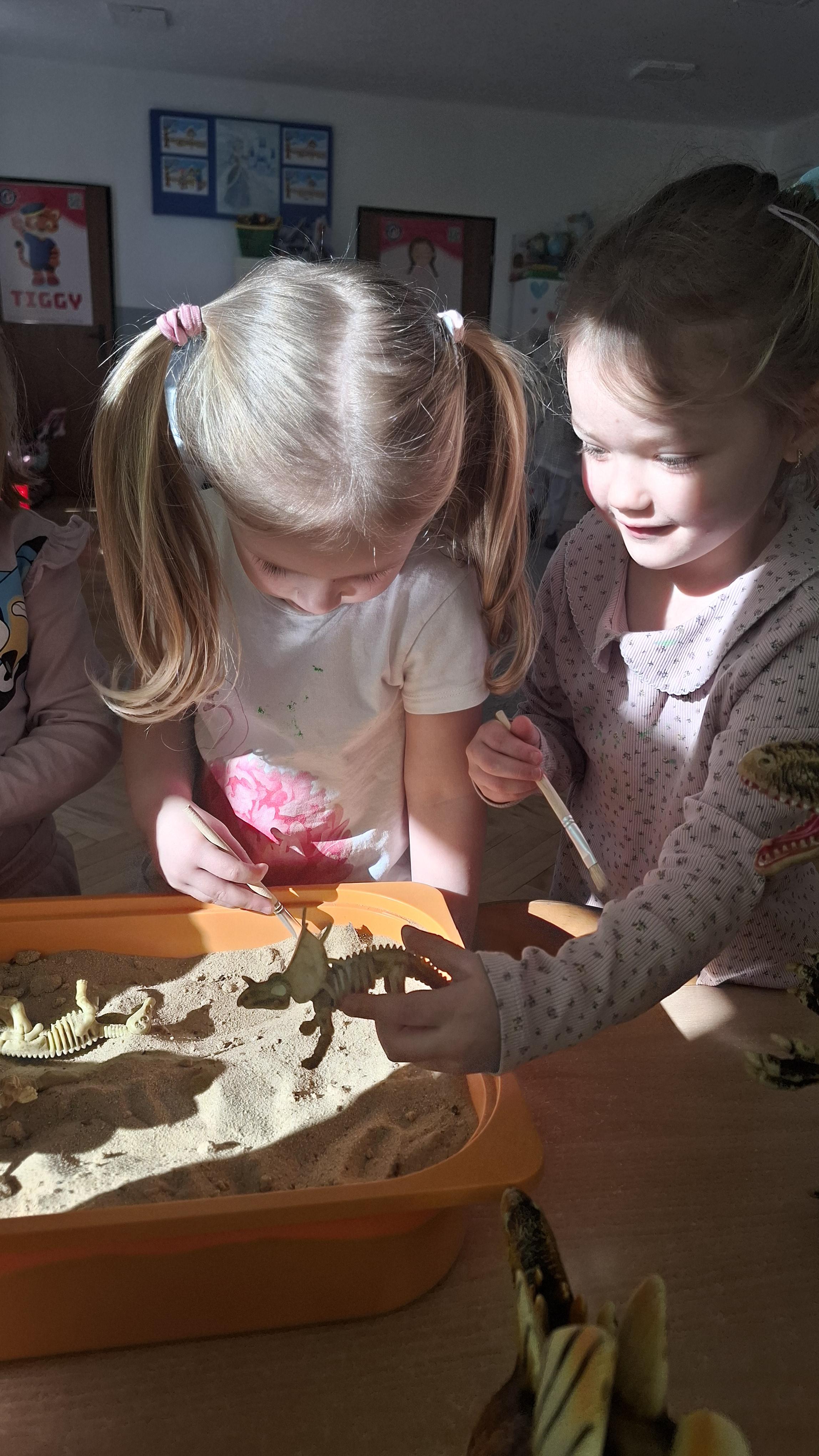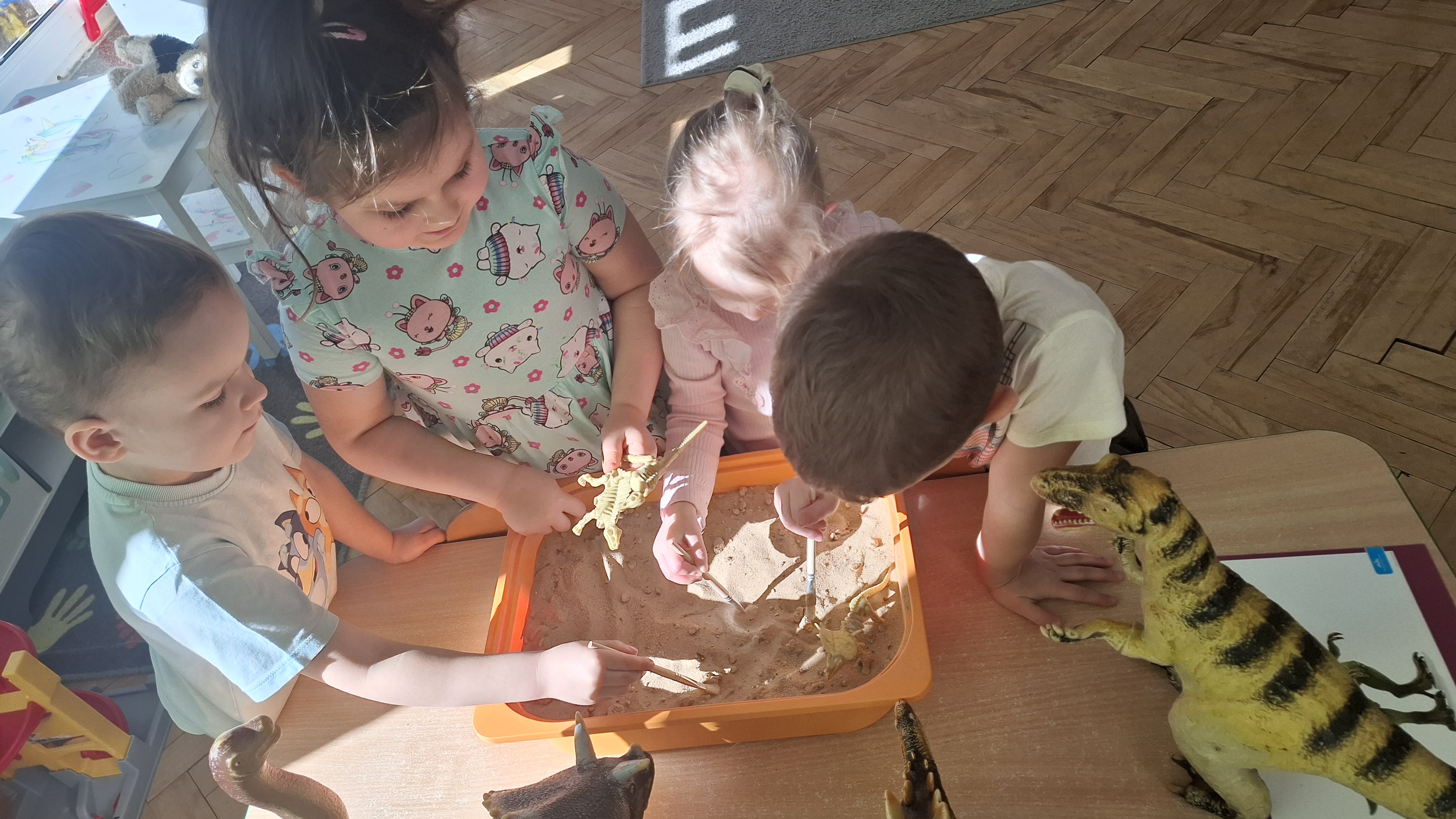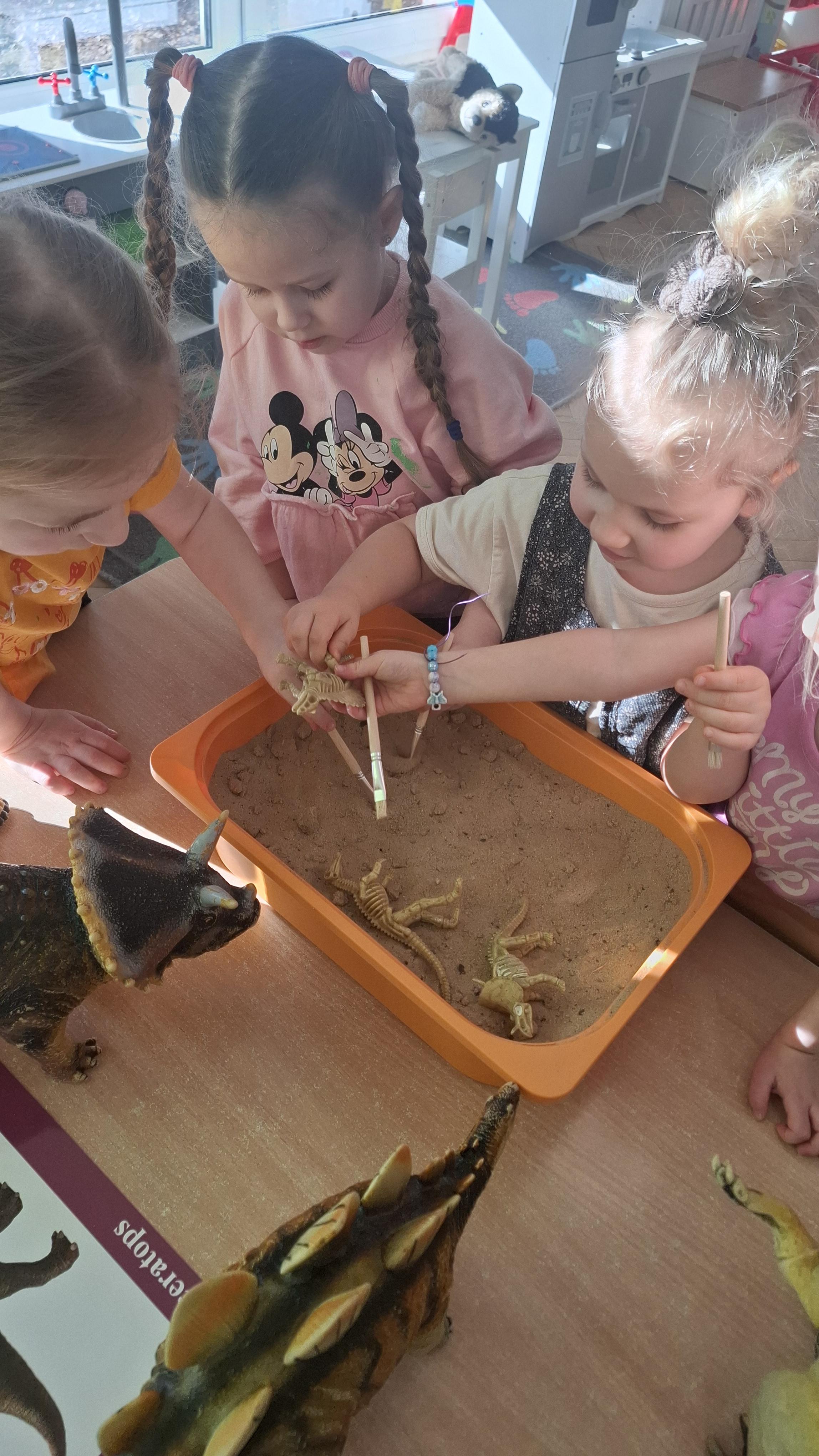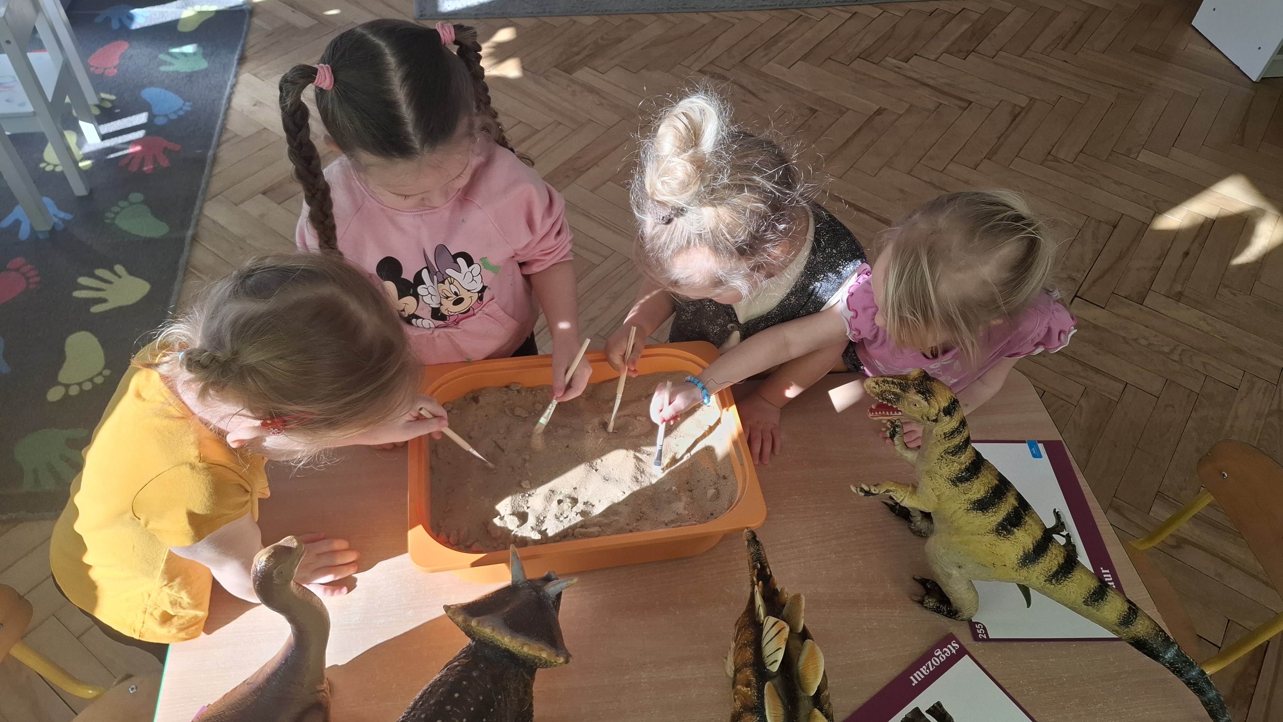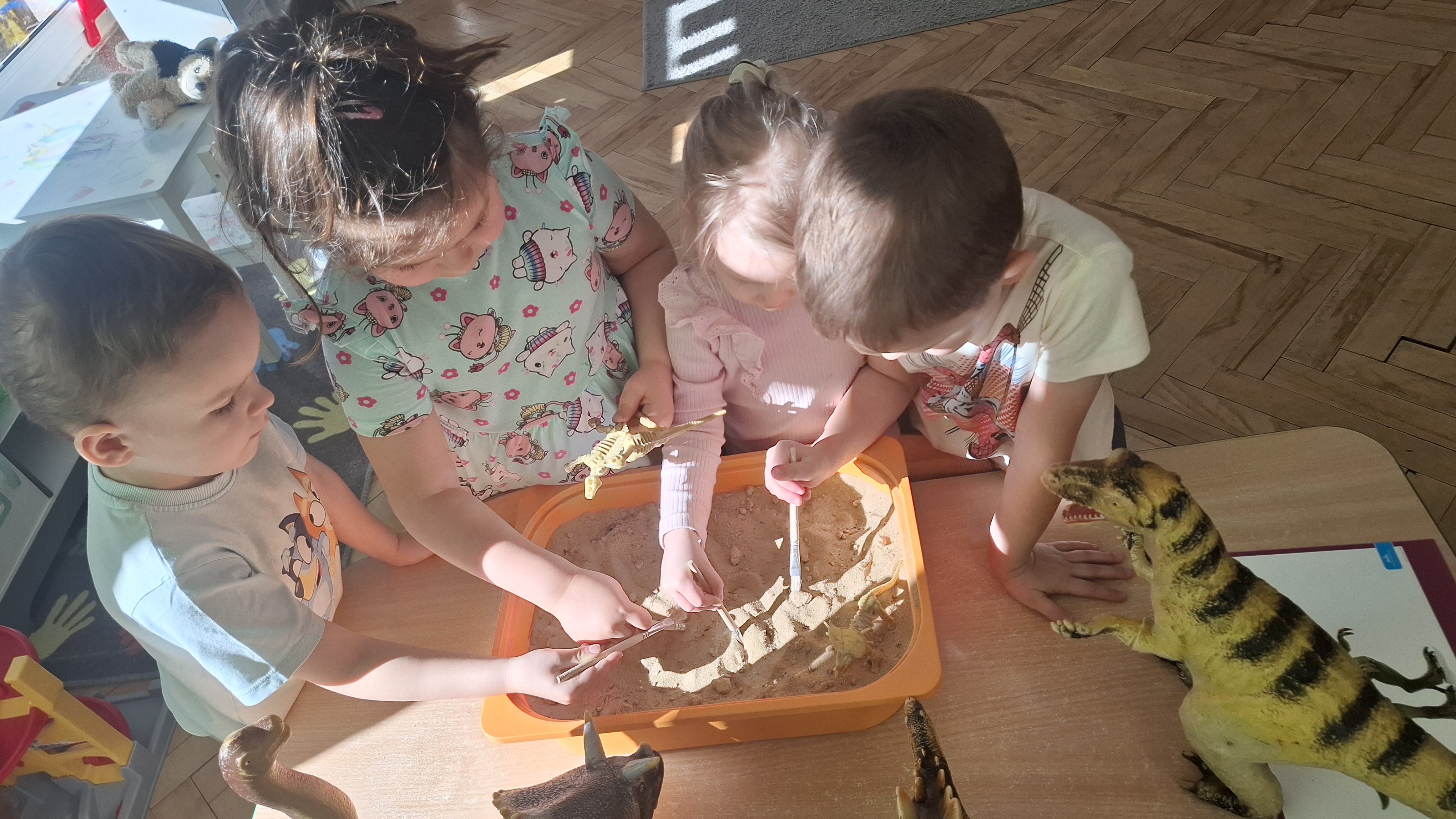 Dużym zainteresowaniem cieszył się eksperyment polegający na odkrywaniu „skarbów” ukrytych w pustynnym piasku. Był on punktem wyjścia do rozmowy o śladach przeszłości. Podczas zabawy „Epoka lodowcowa” dzieci poznały zwierzęta, które żyły dawno temu, takie jak mamut czy tygrys szablozębny, i dowiedziały się, że były one przodkami współczesnych gatunków.