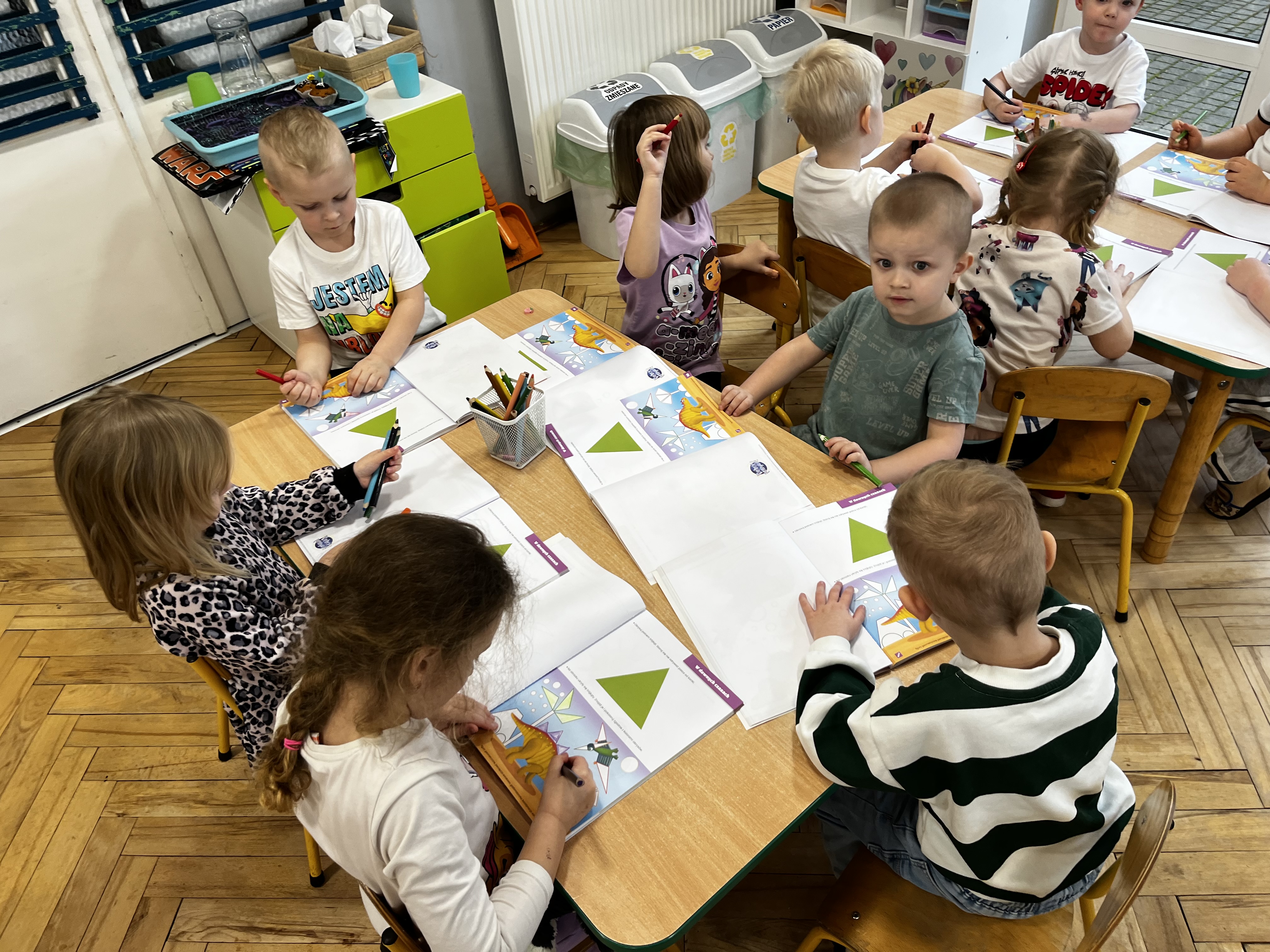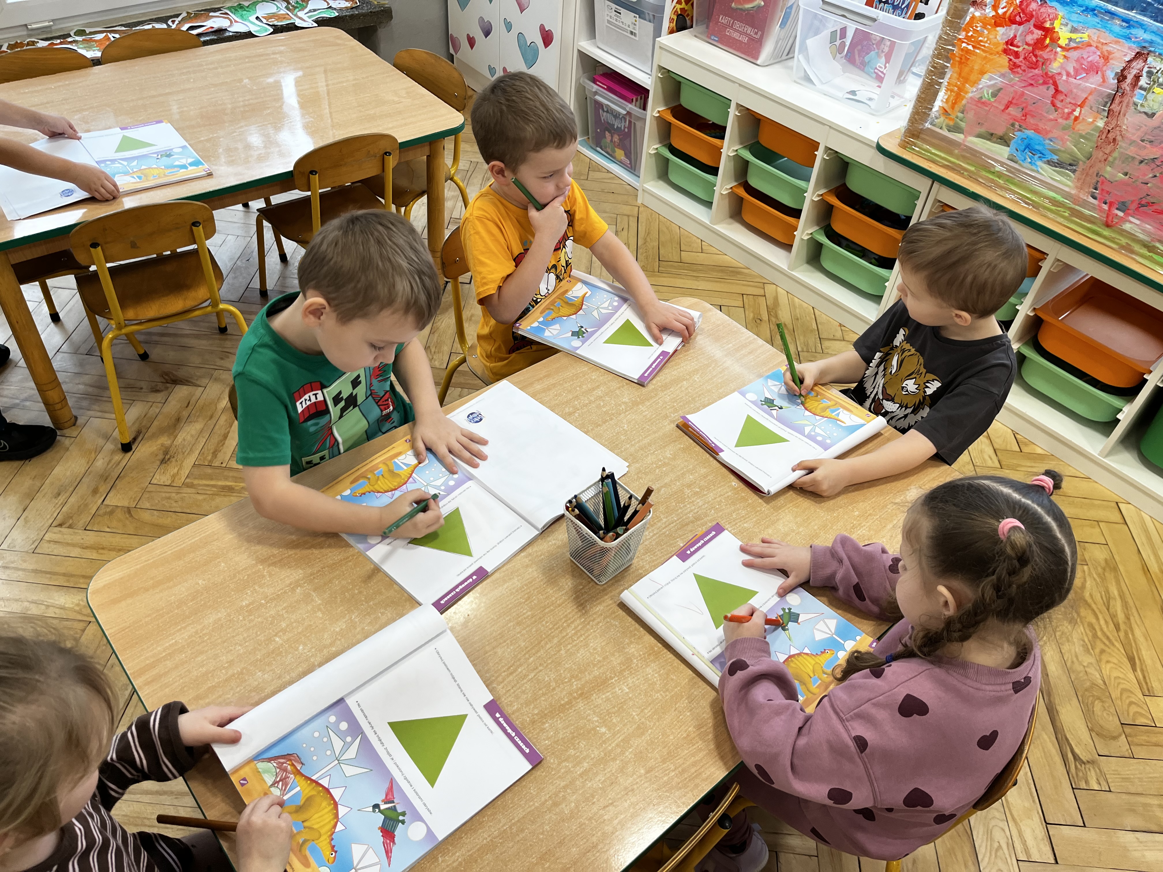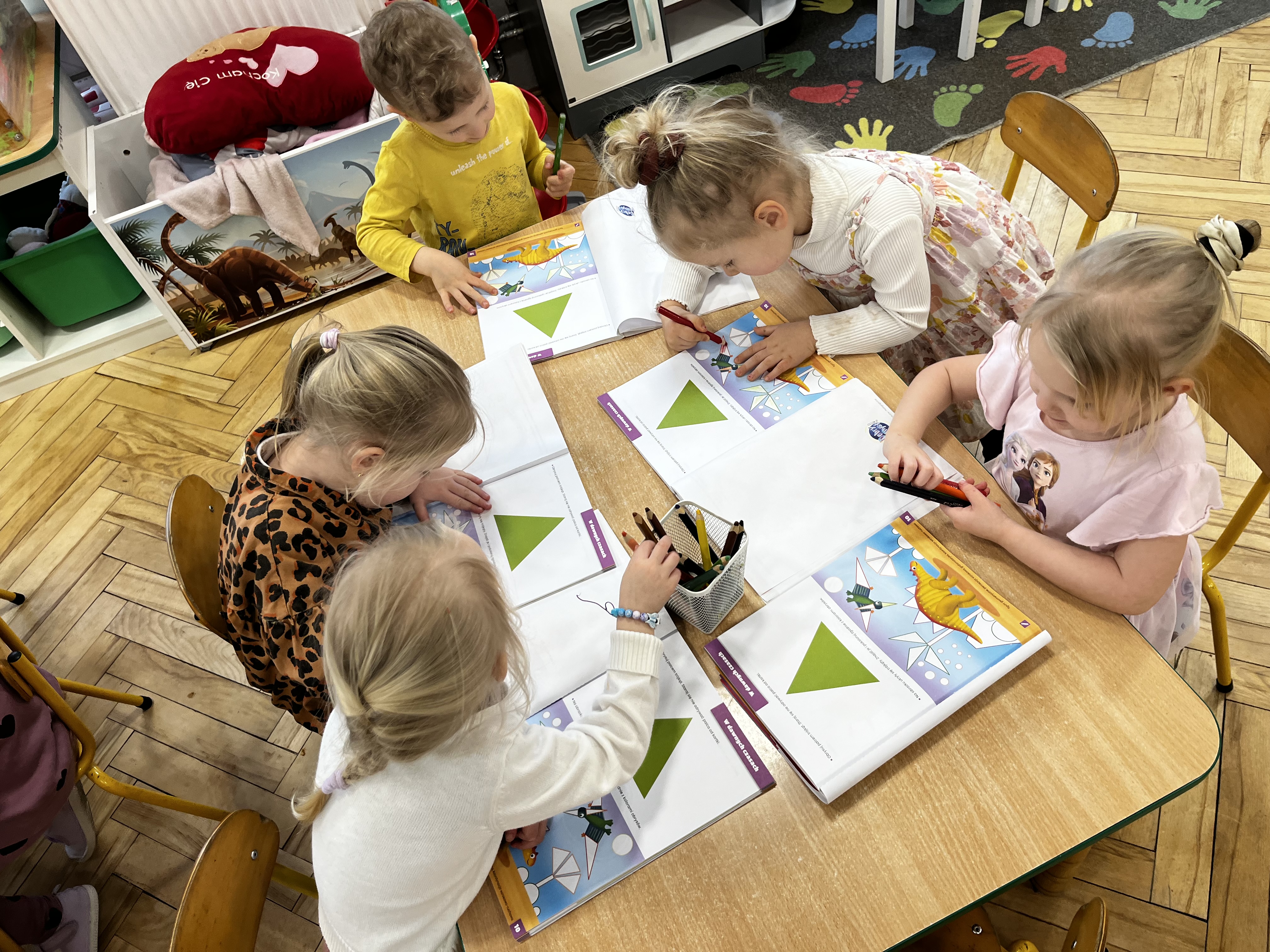 W trakcie zajęć utrwalaliśmy ważne umiejętności – przedszkolaki liczyły oraz klasyfikowały przedmioty według wielkości, a także poznały nową figurę geometryczną – trójkąt.