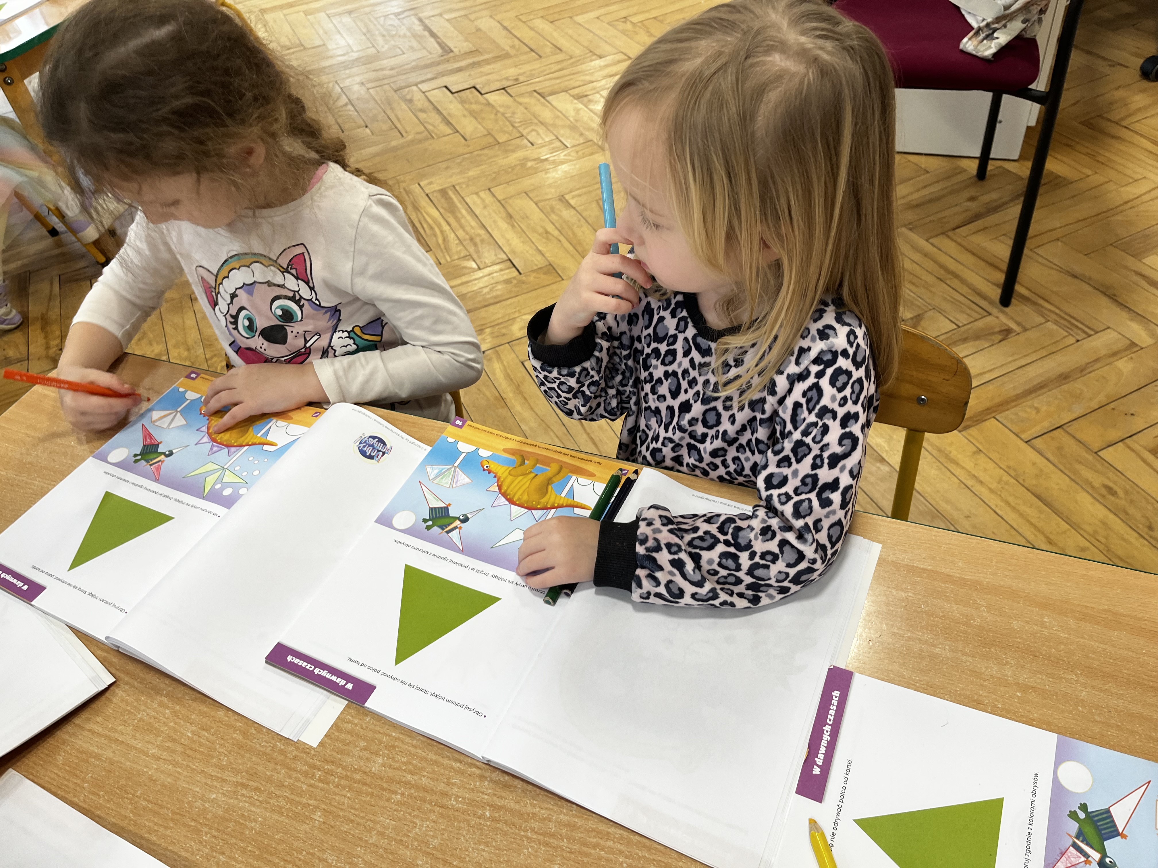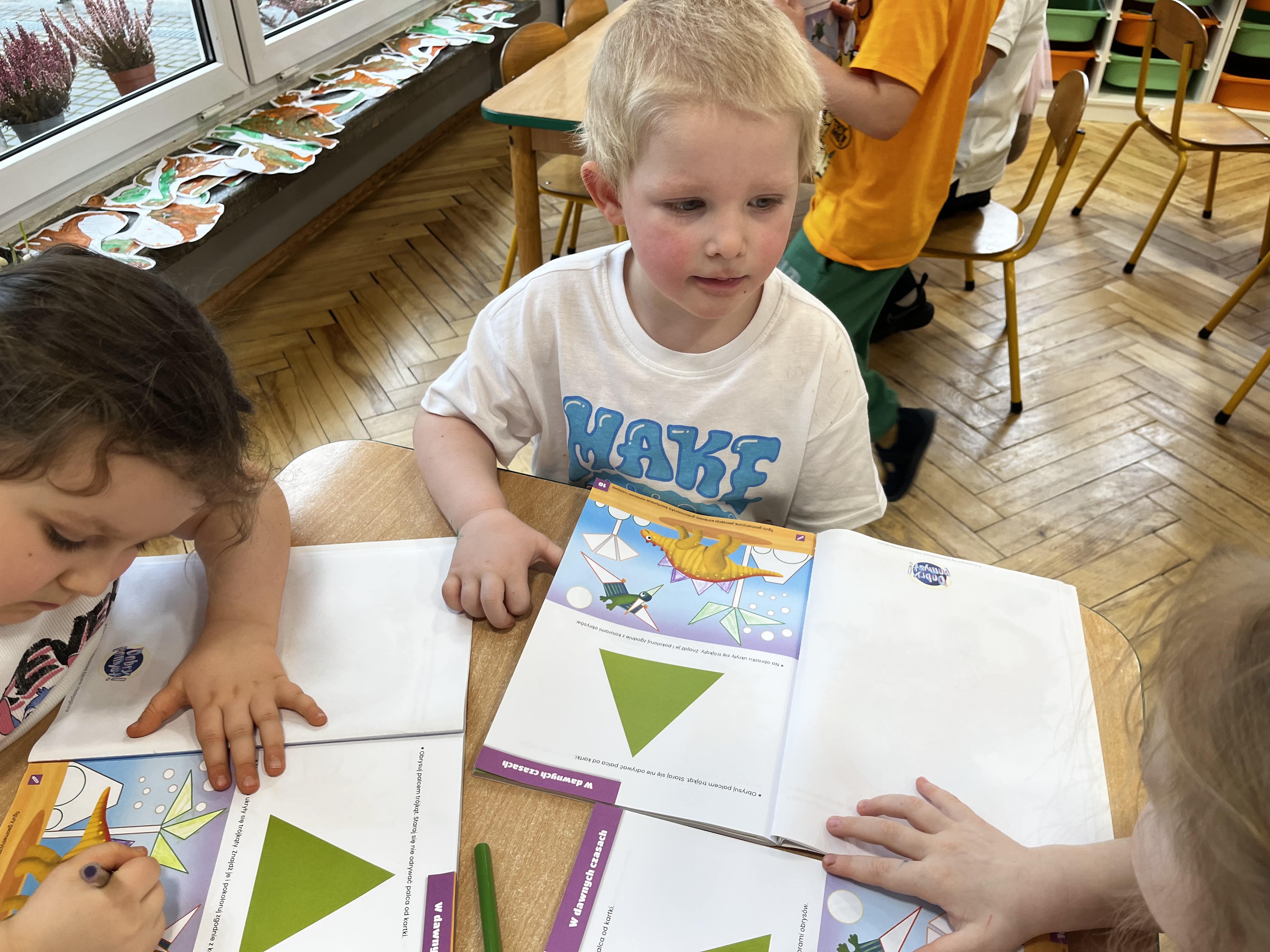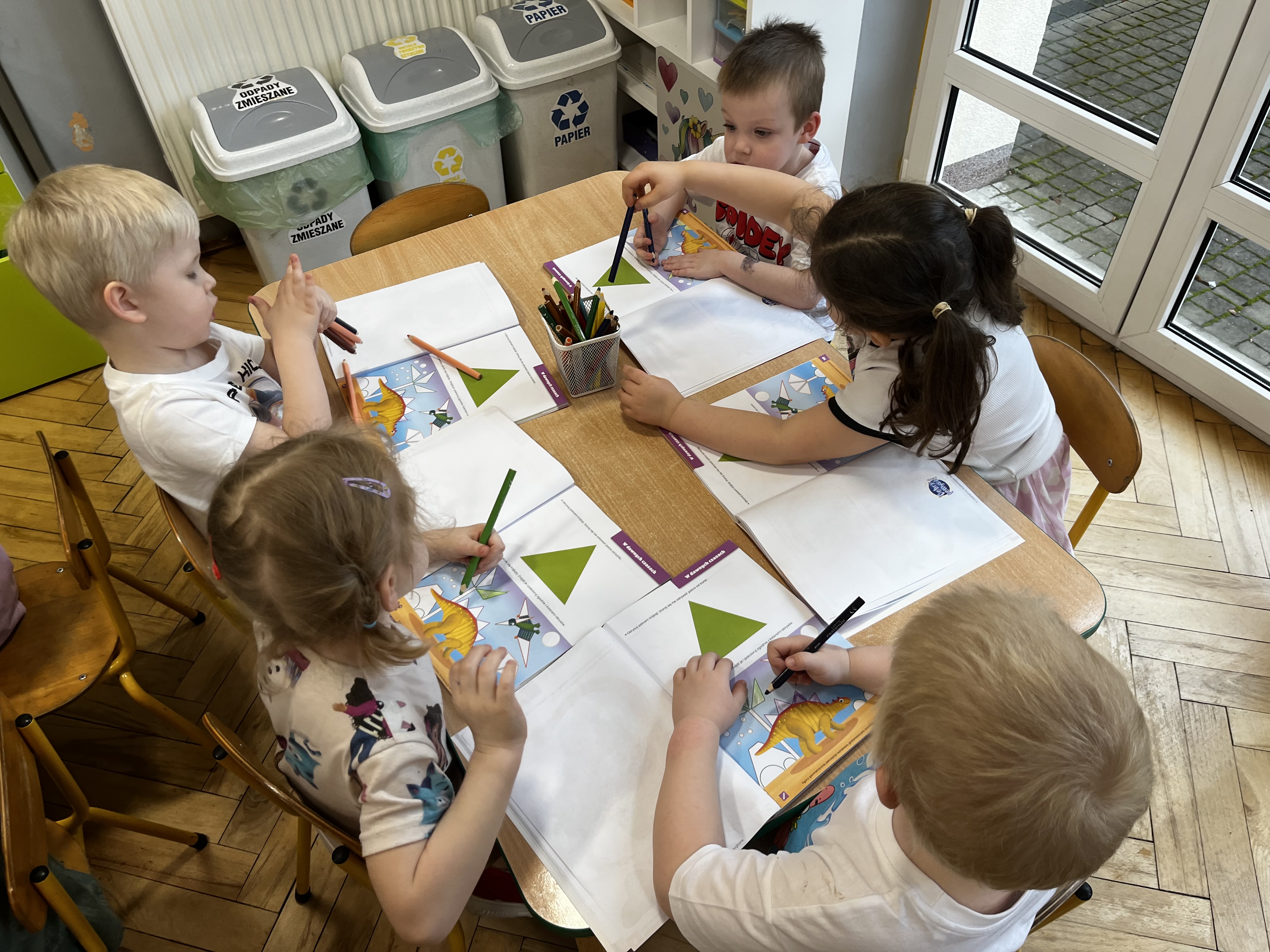 W trakcie zajęć utrwalaliśmy ważne umiejętności – przedszkolaki liczyły oraz klasyfikowały przedmioty według wielkości, a także poznały nową figurę geometryczną – trójkąt.