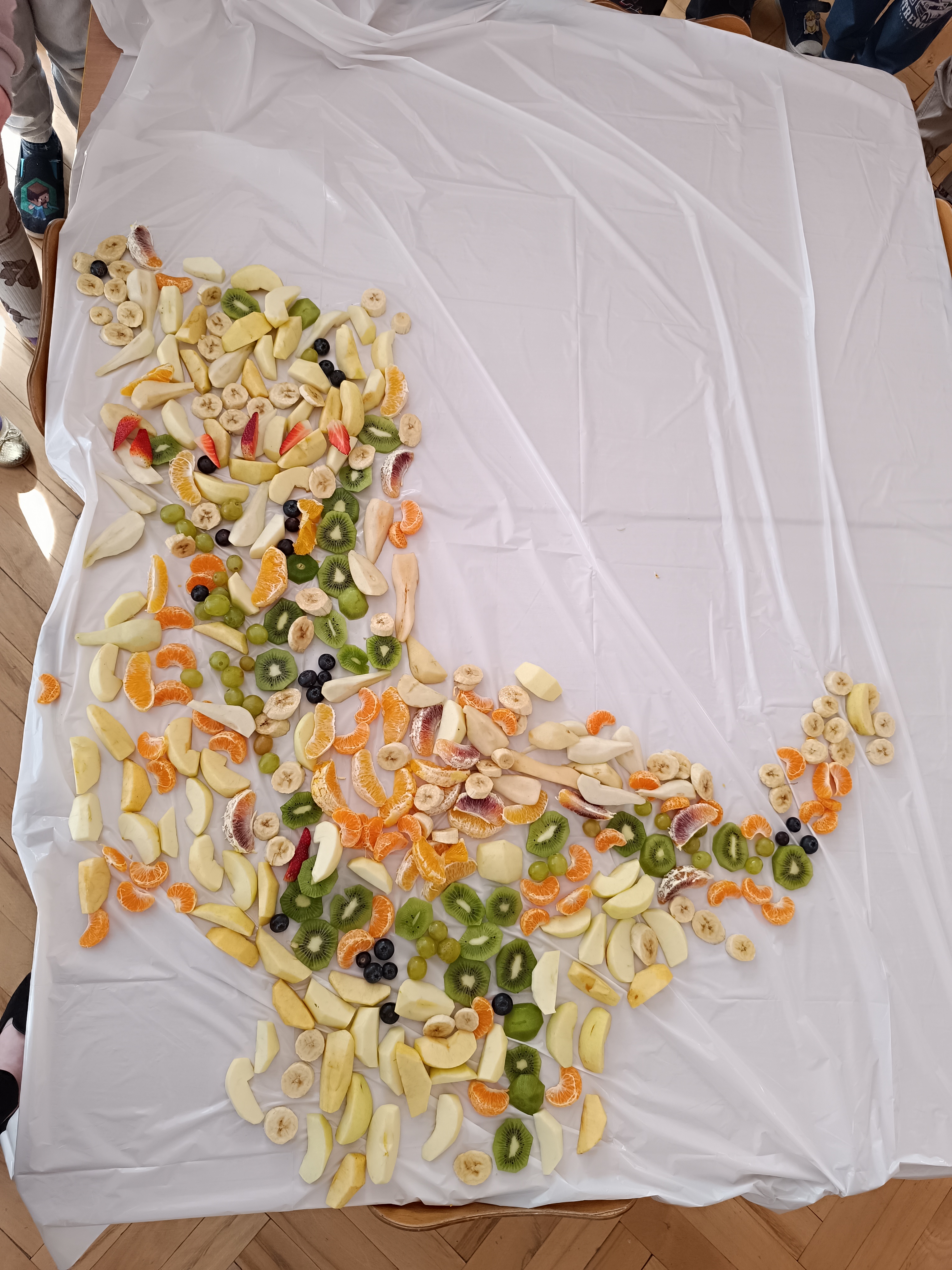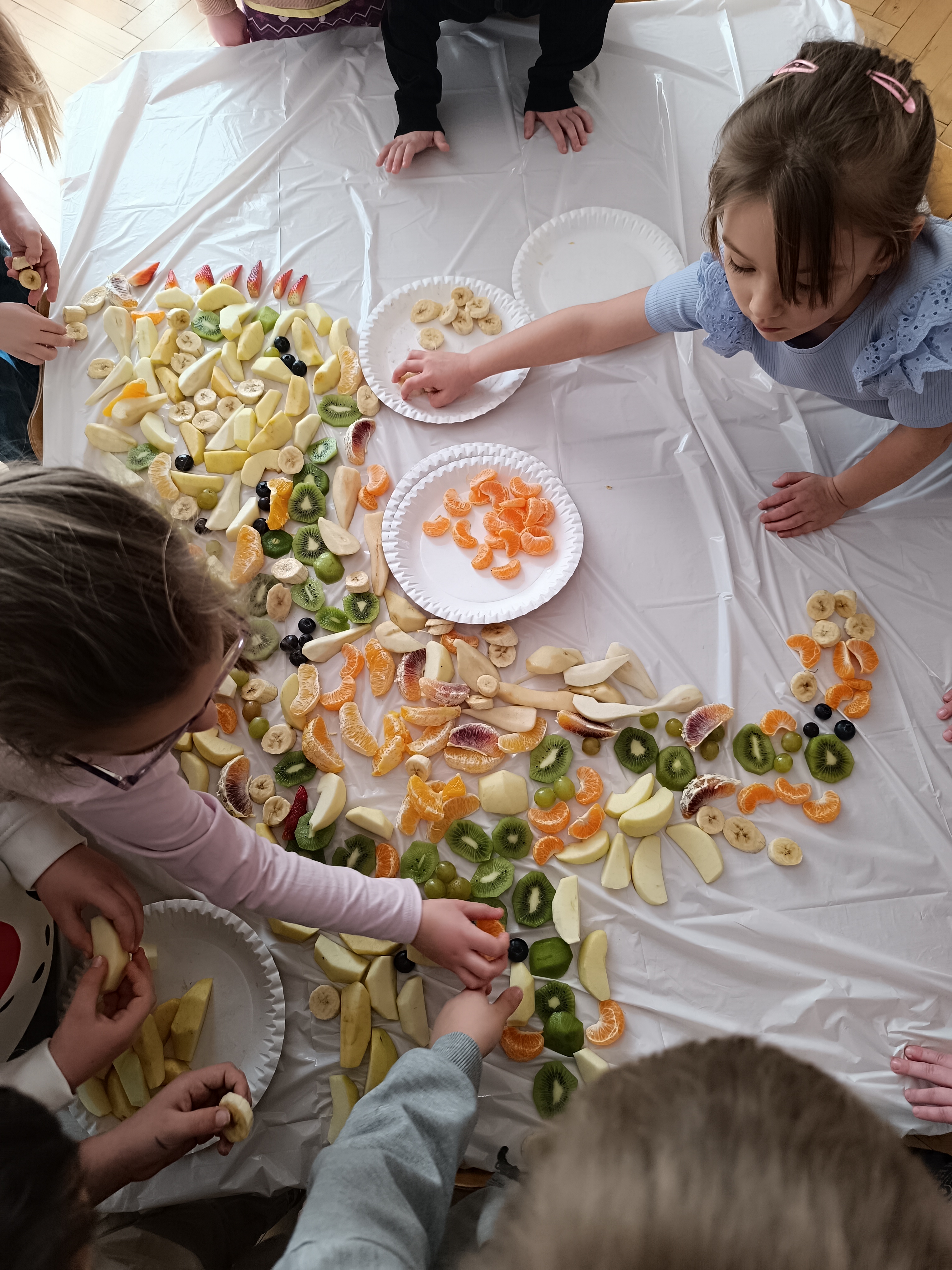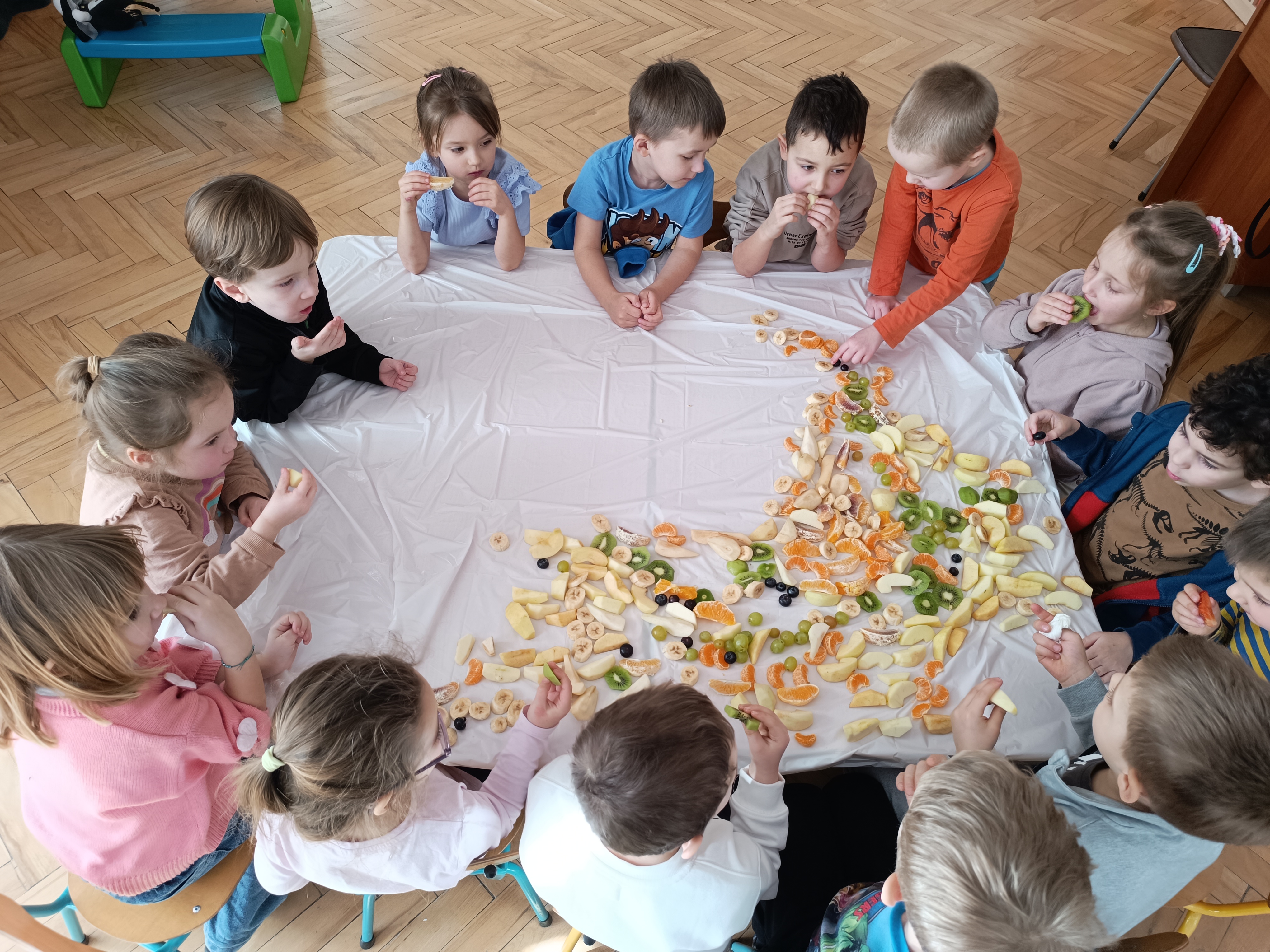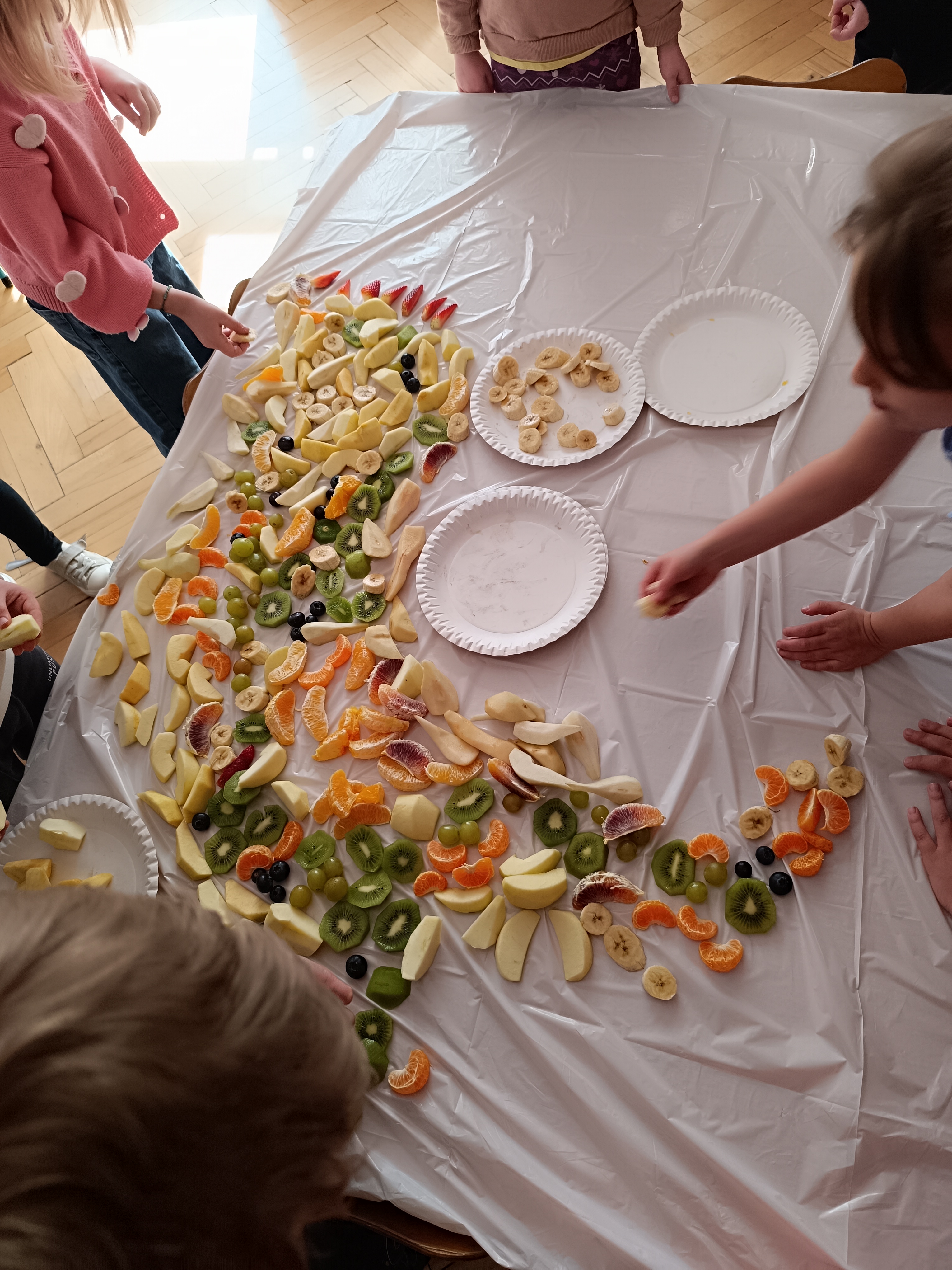 W piątek odbył się także Owocowy Dzień. Dzieci wspólnie ułożyły kolorowego dinozaura z owoców, rozwijając kreatywność i utrwalając zasady zdrowego odżywiania. Na zakończenie z apetytem zjadły przygotowaną kompozycję.