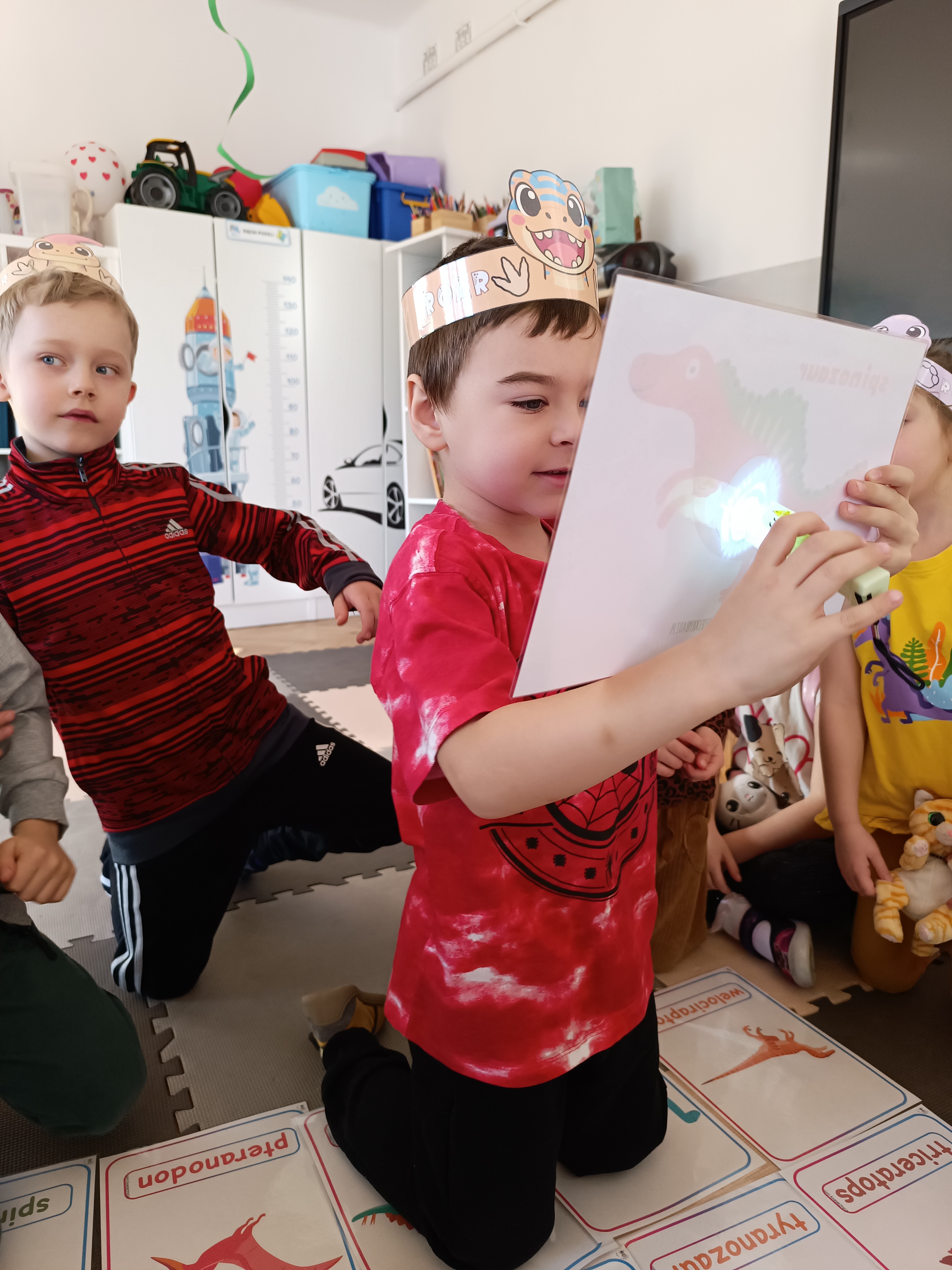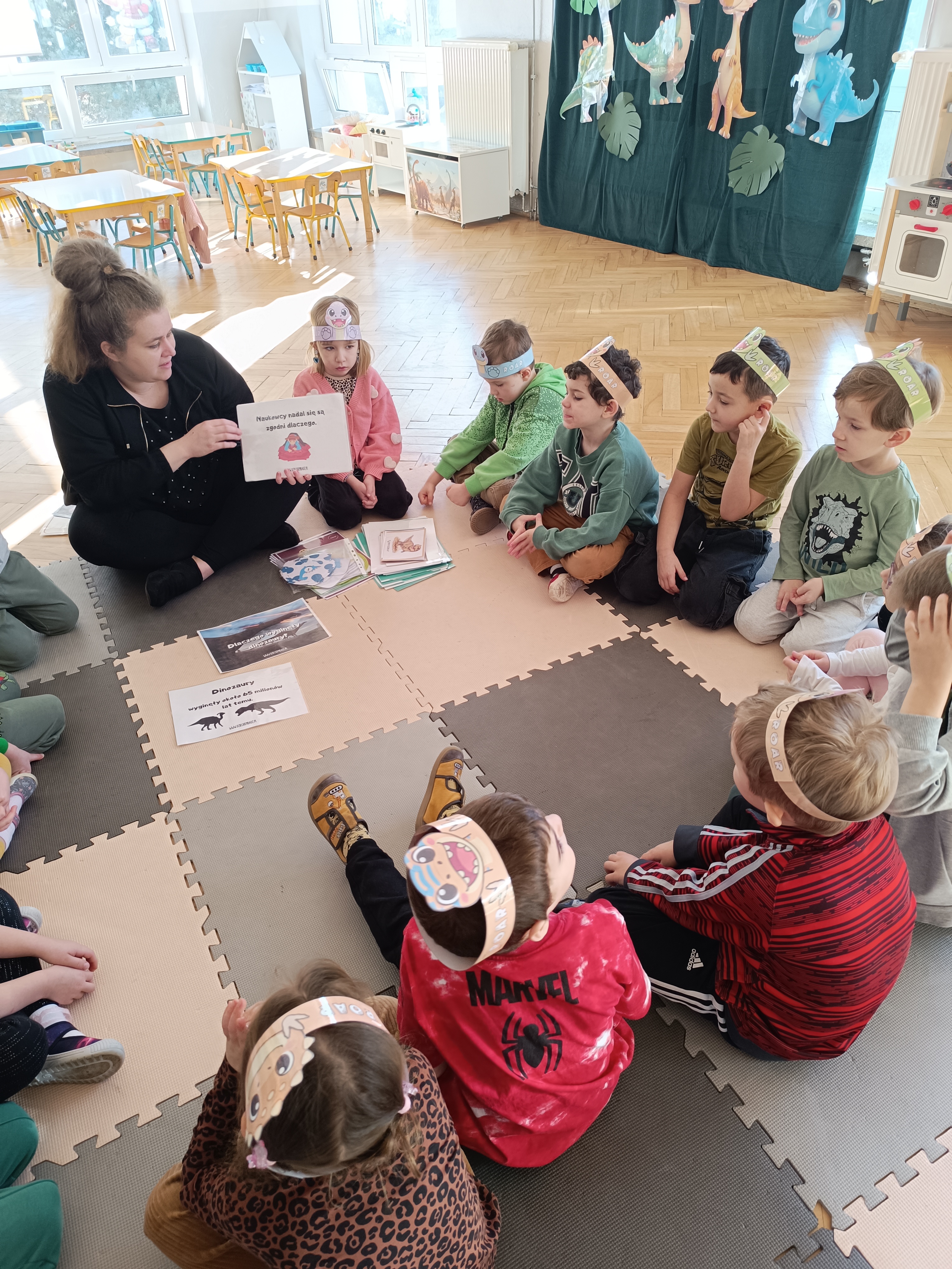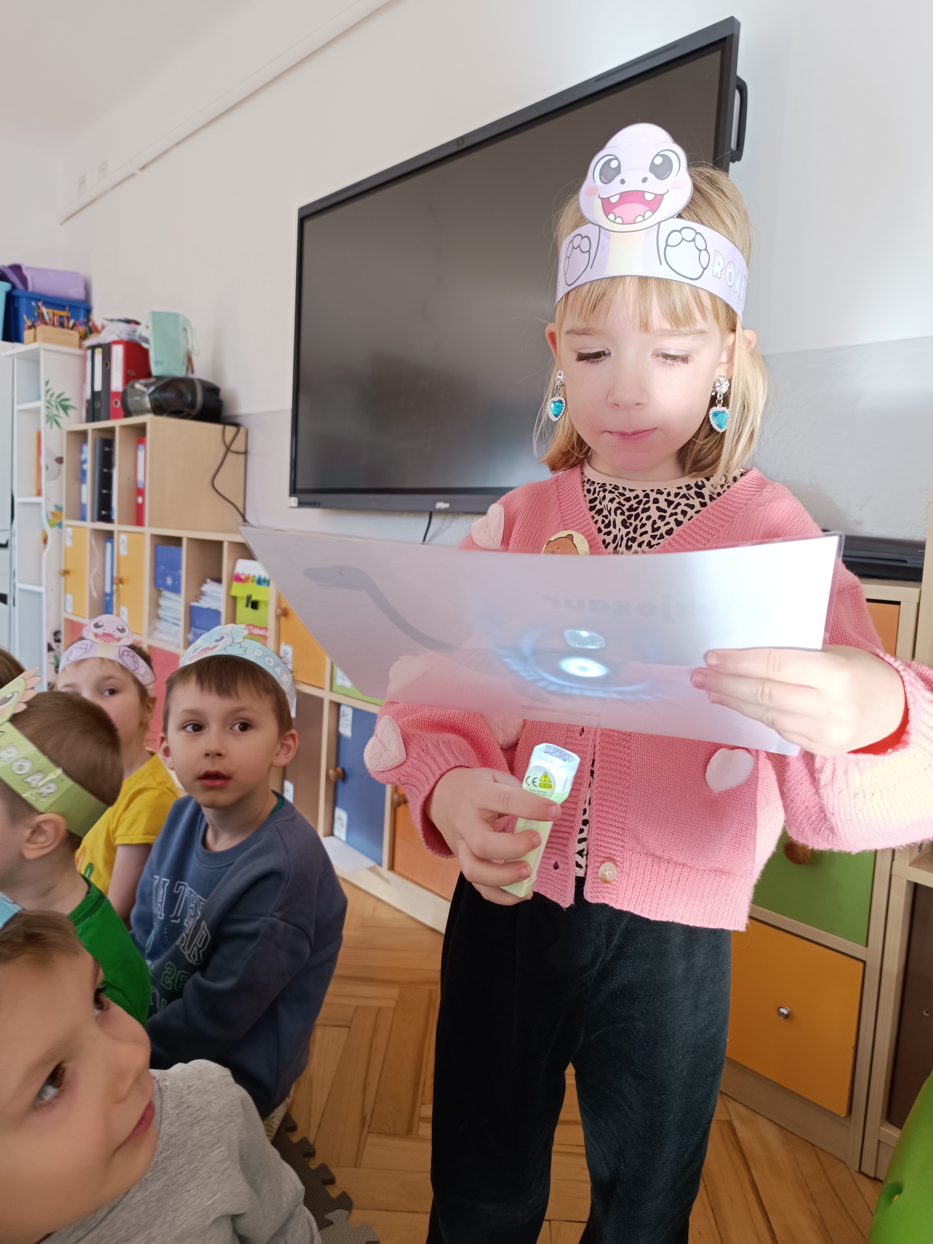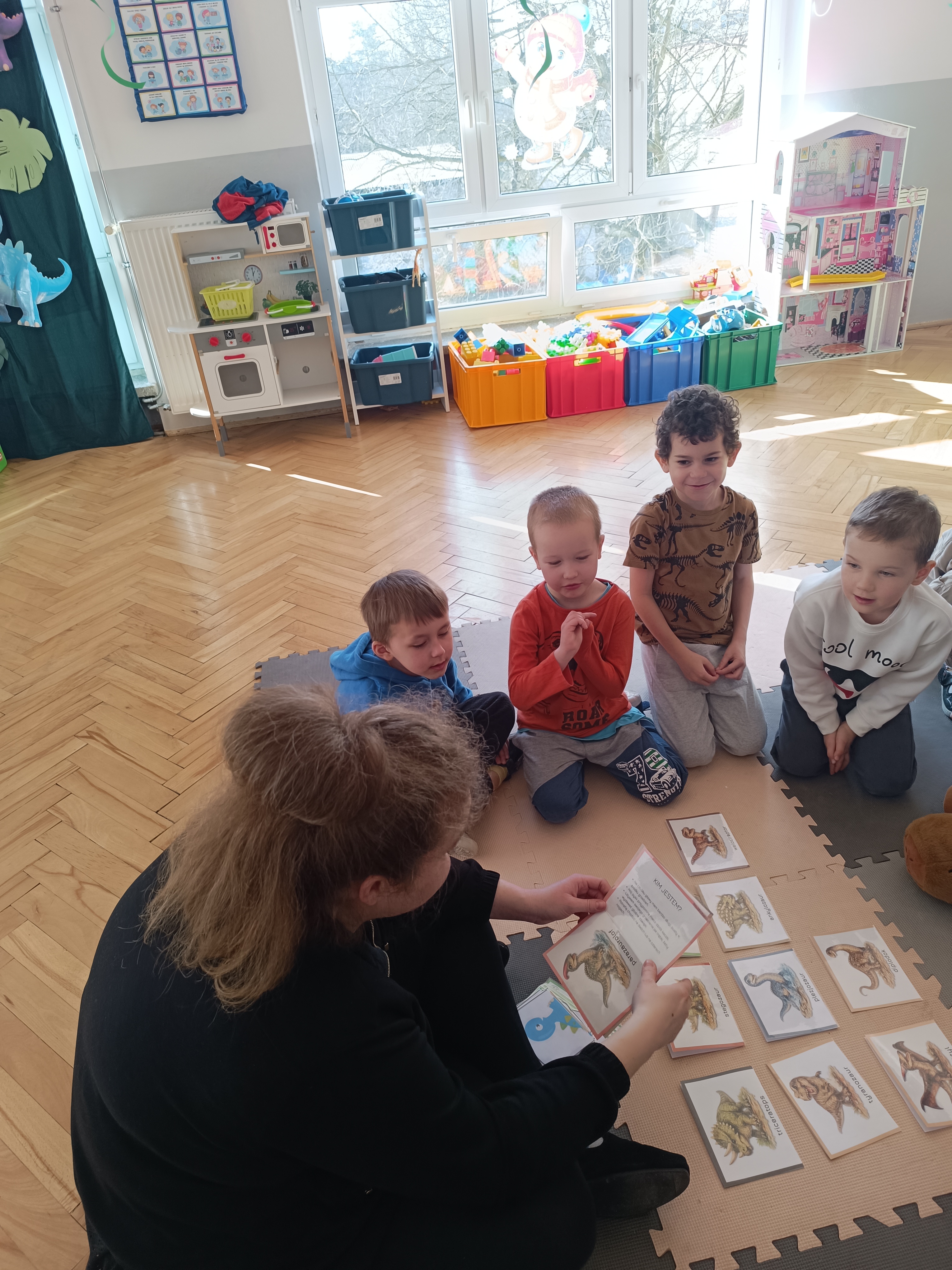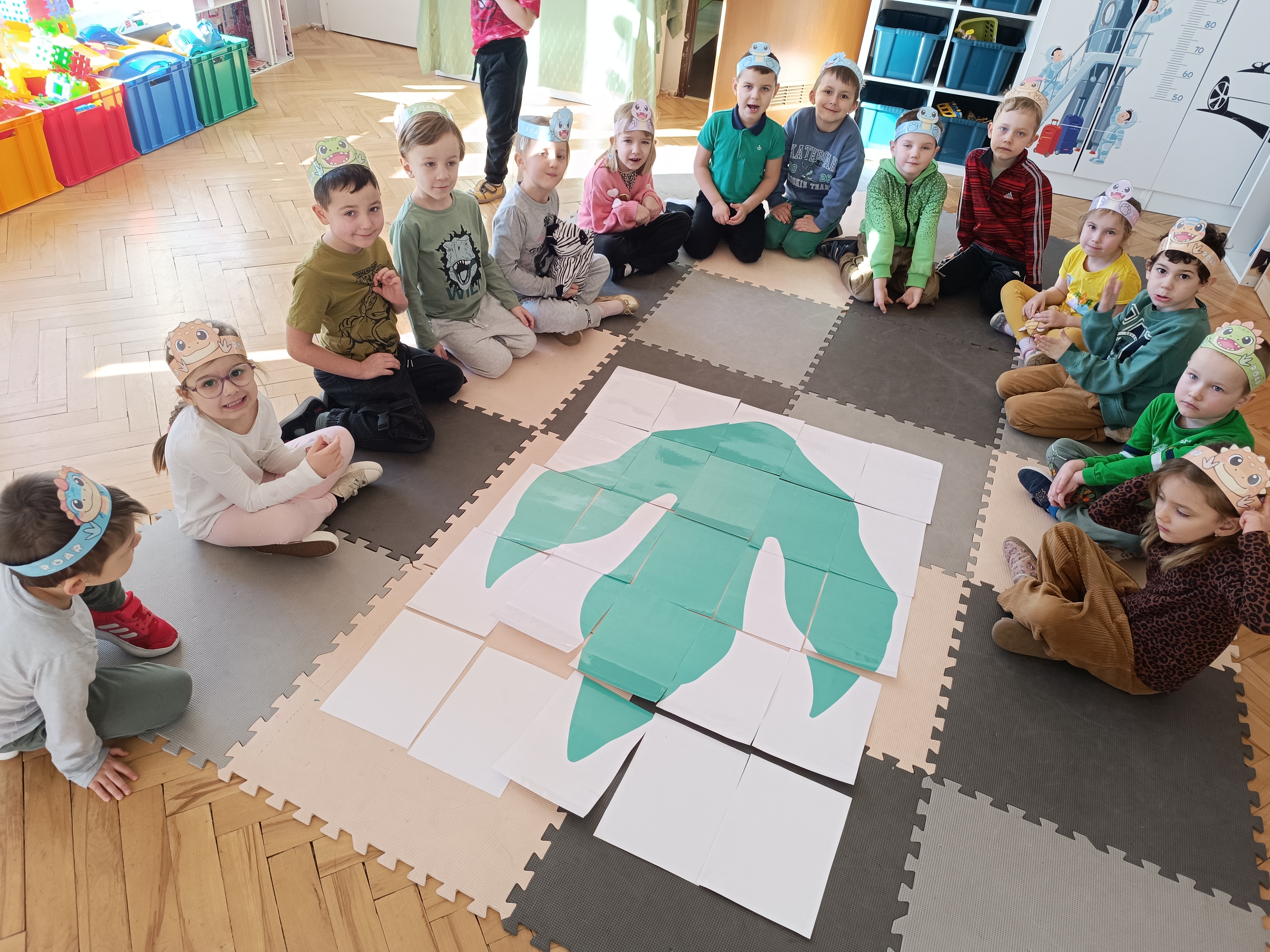Rozmawialiśmy o tym, jak kiedyś wyglądał świat – dzieci dowiedziały się, że nasza planeta zmieniała się przez miliony lat. Poznały również stworzenia z przeszłości, w szczególności dinozaury, które wzbudziły ogromne zainteresowanie.