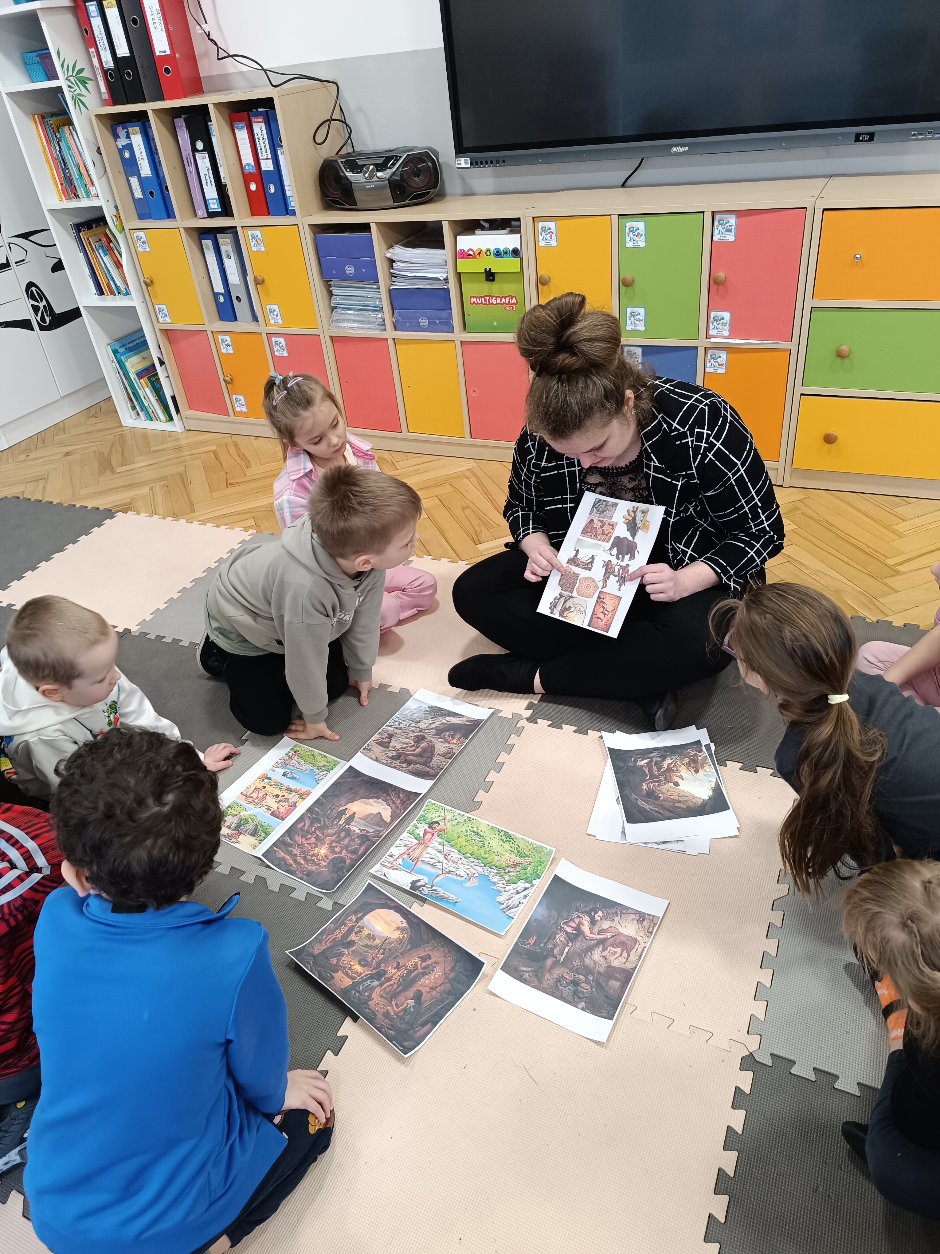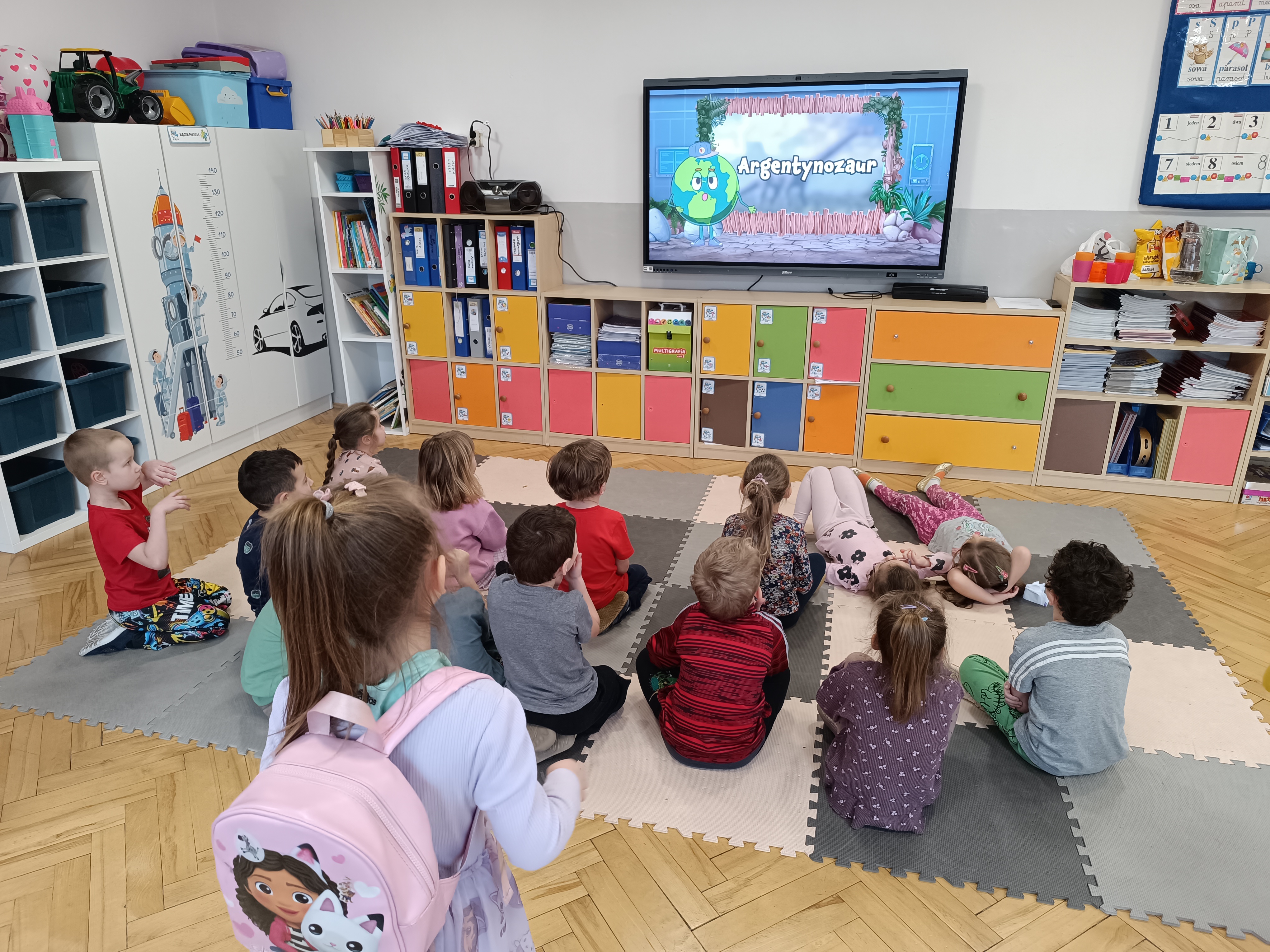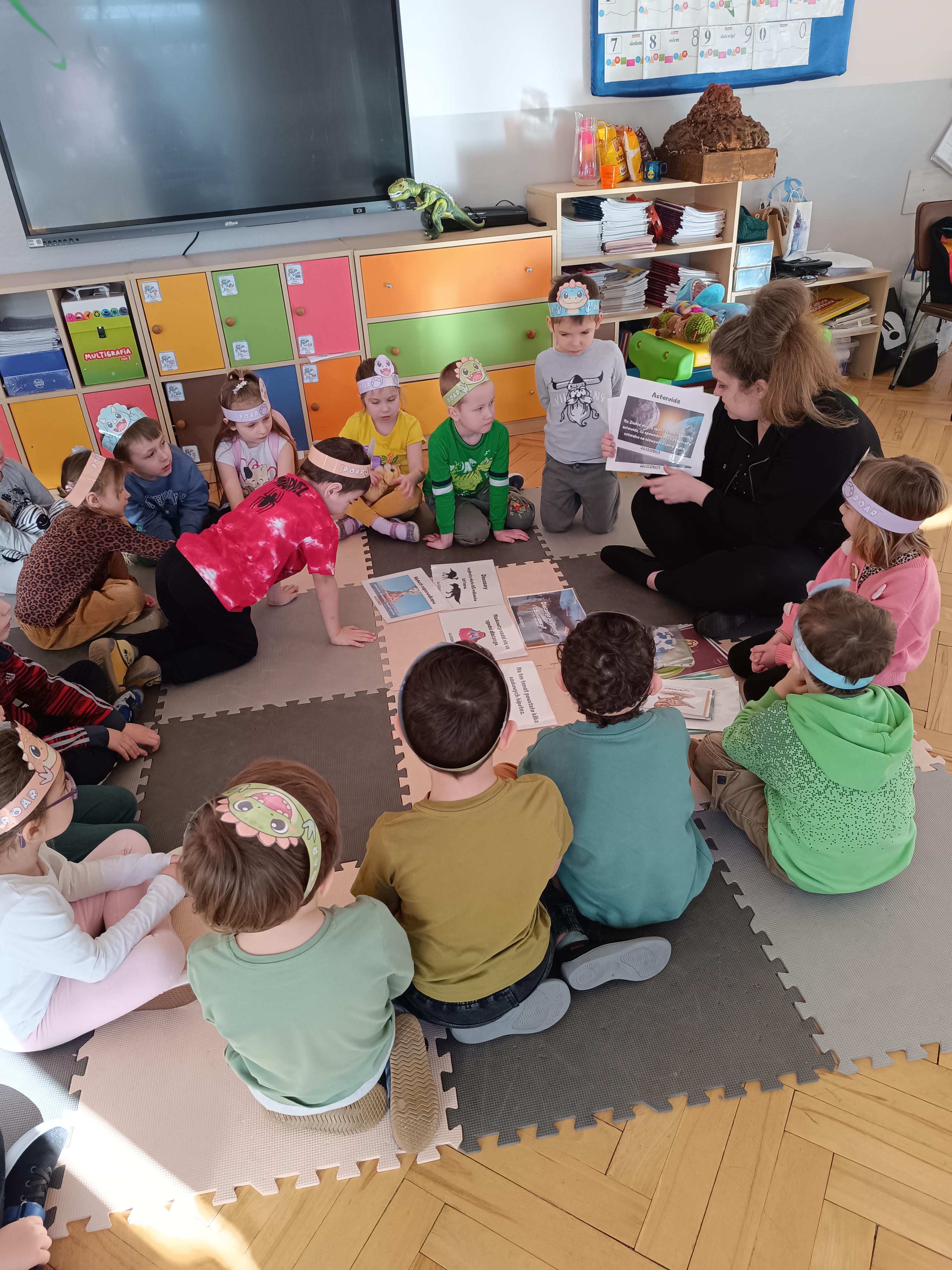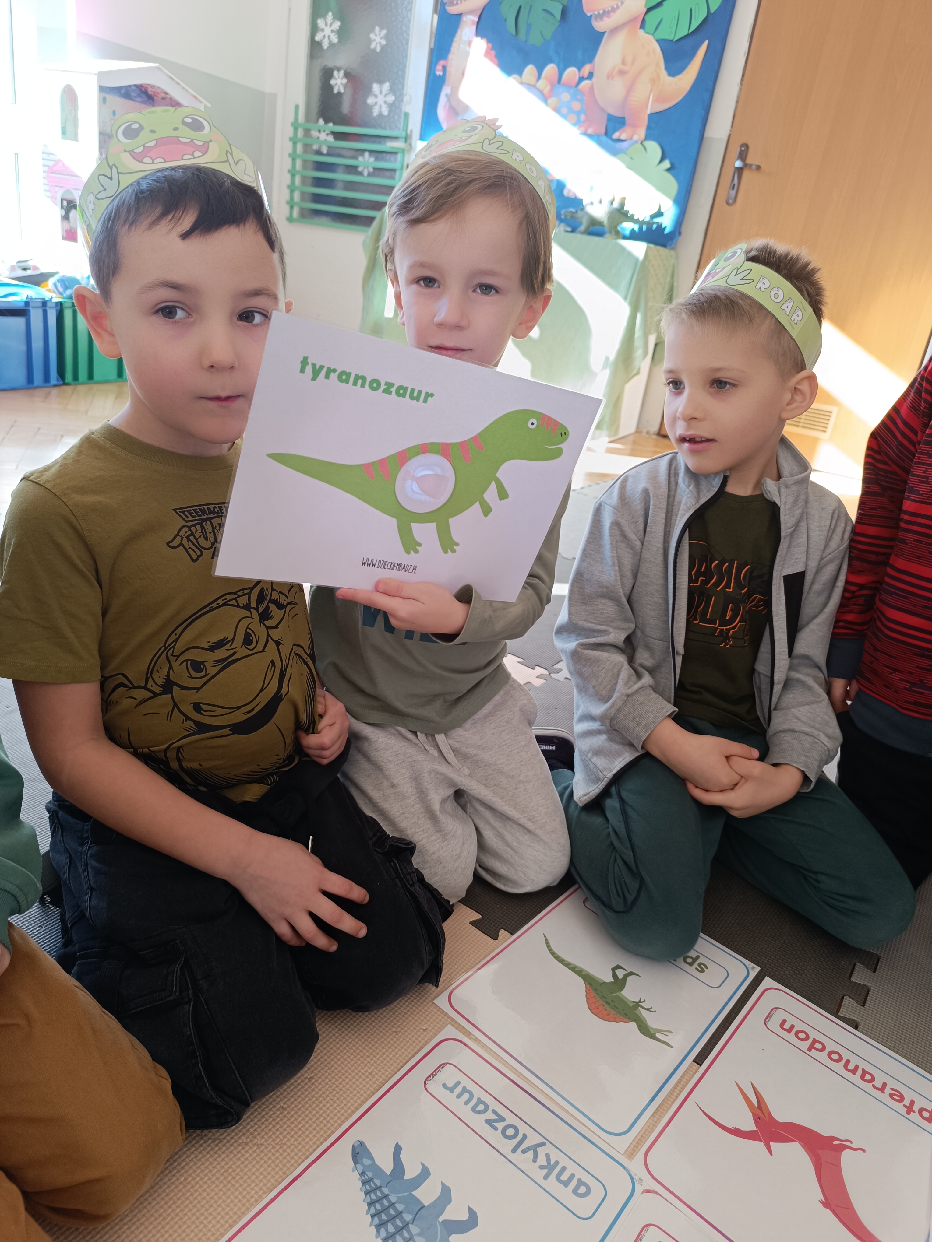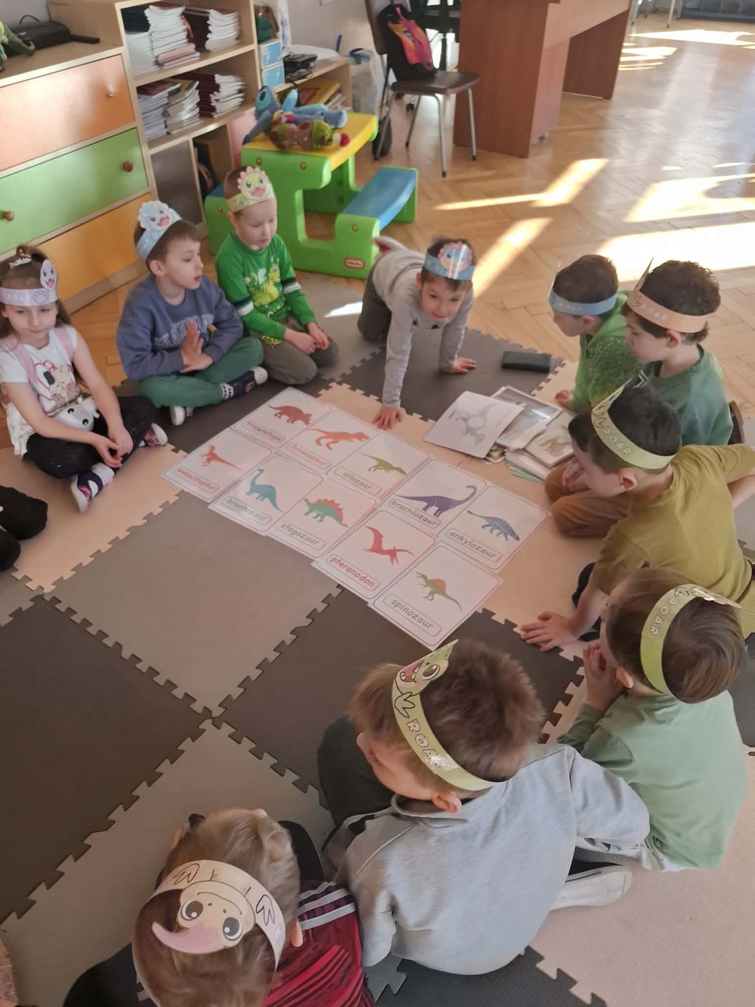 Rozmawialiśmy o tym, jak kiedyś wyglądał świat – dzieci dowiedziały się, że nasza planeta zmieniała się przez miliony lat. Poznały również stworzenia z przeszłości, w szczególności dinozaury, które wzbudziły ogromne zainteresowanie.