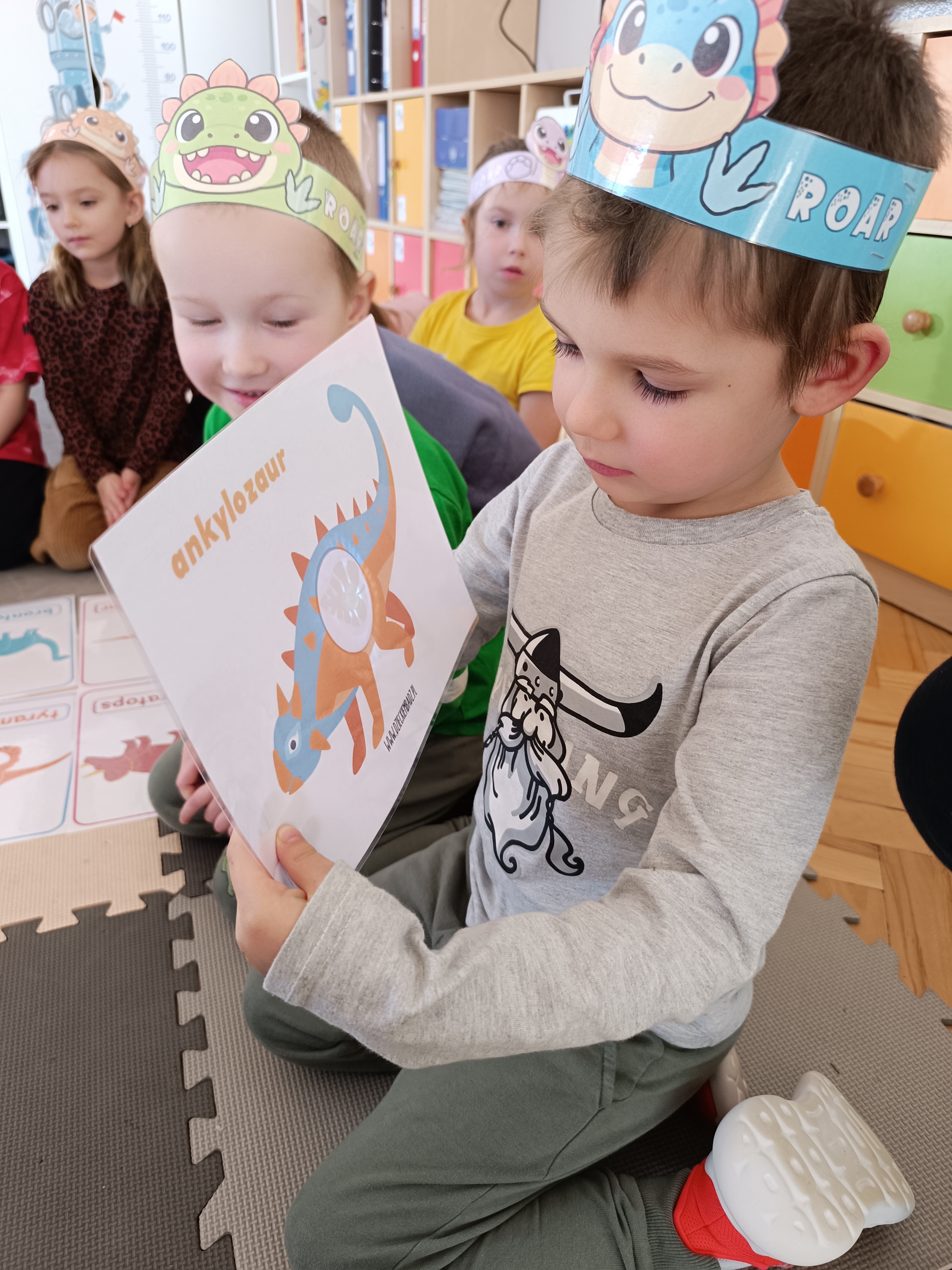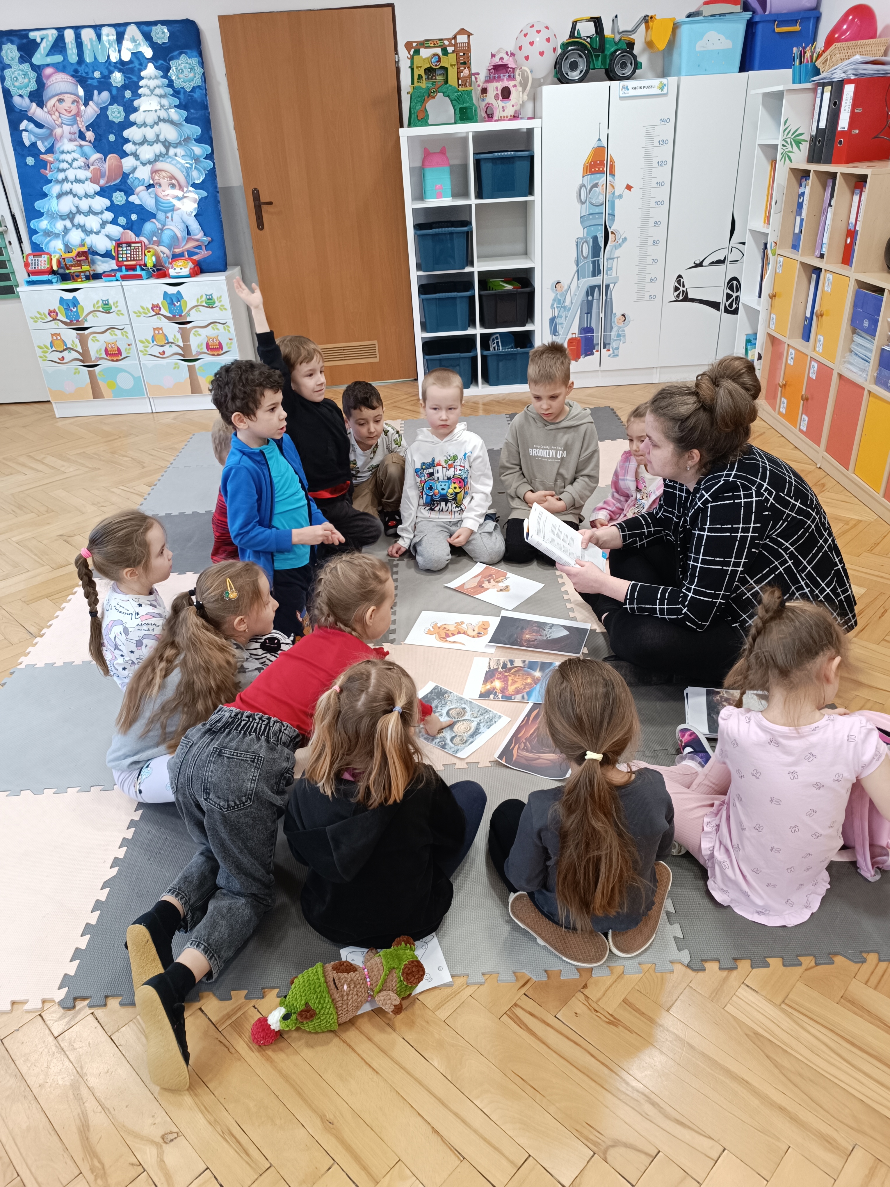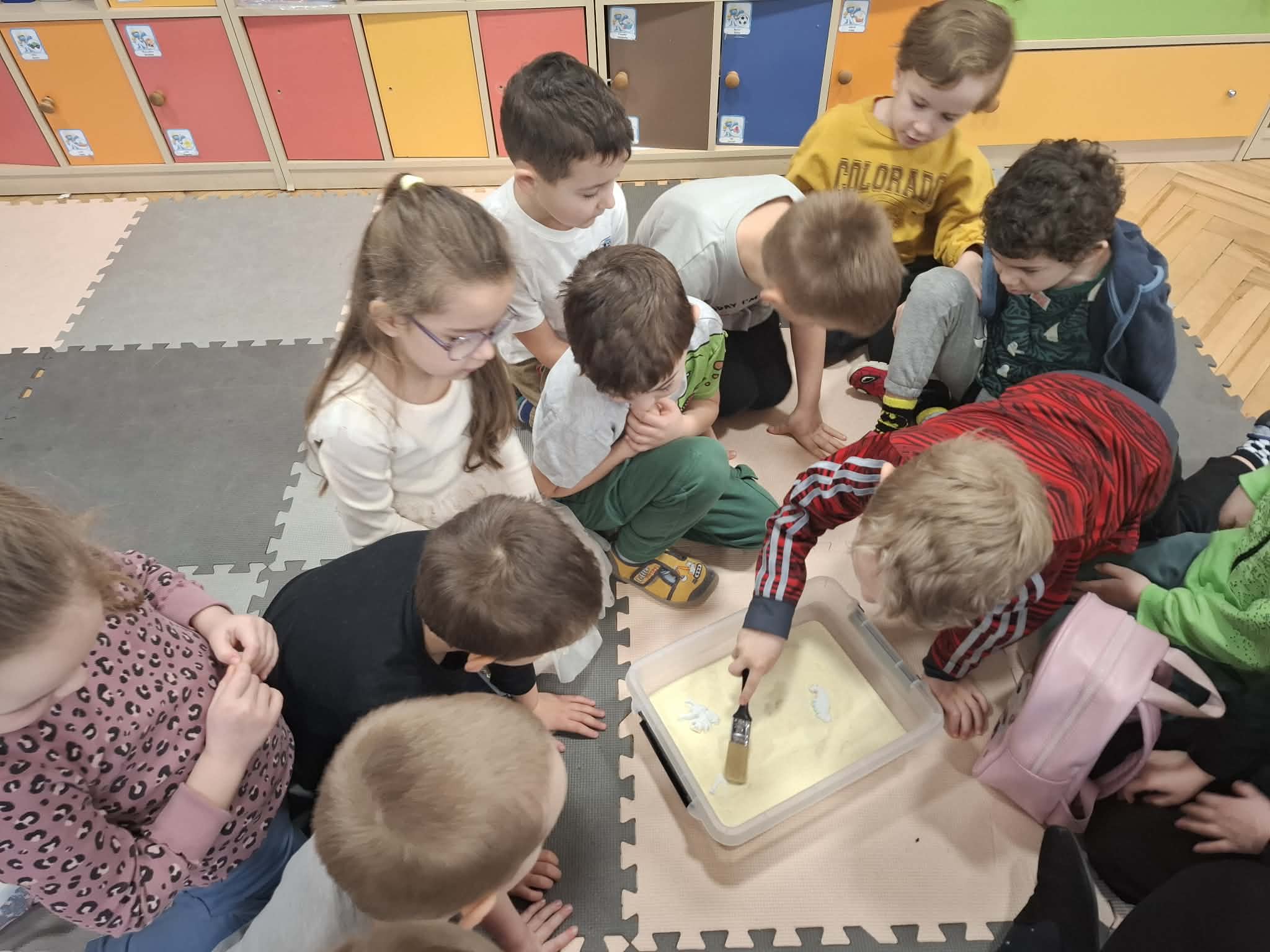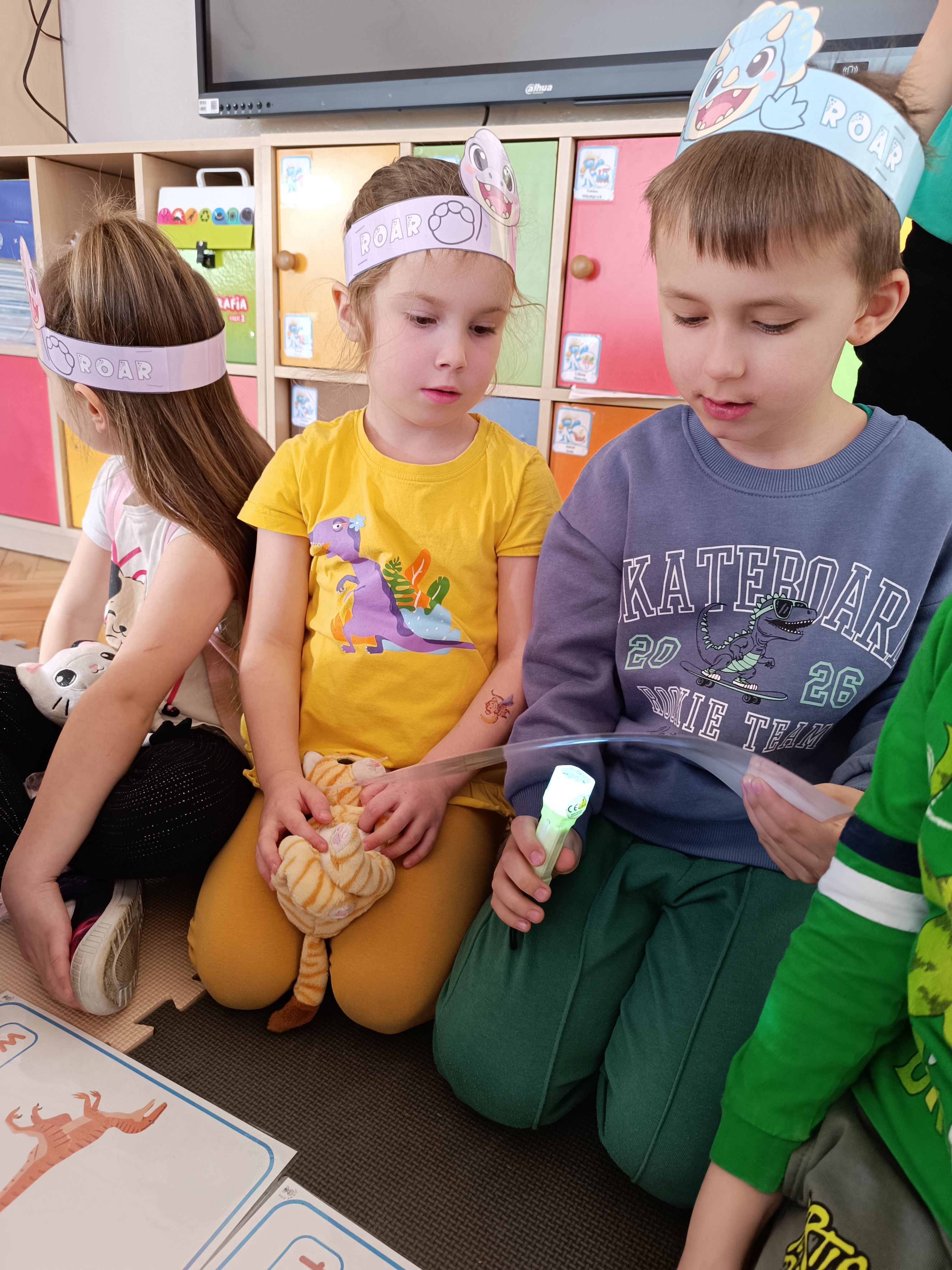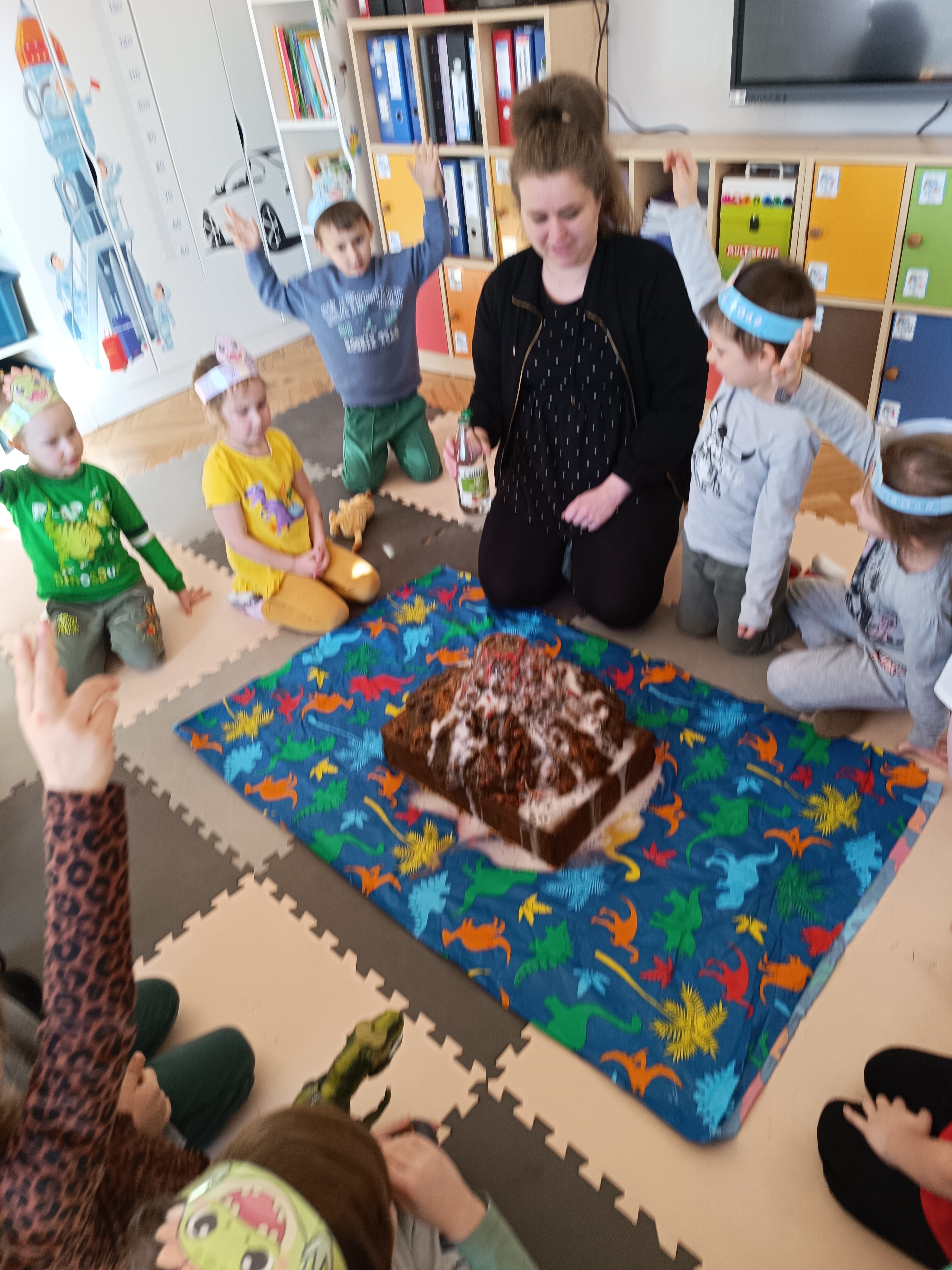 Rozmawialiśmy o tym, jak kiedyś wyglądał świat – dzieci dowiedziały się, że nasza planeta zmieniała się przez miliony lat. Poznały również stworzenia z przeszłości, w szczególności dinozaury, które wzbudziły ogromne zainteresowanie.