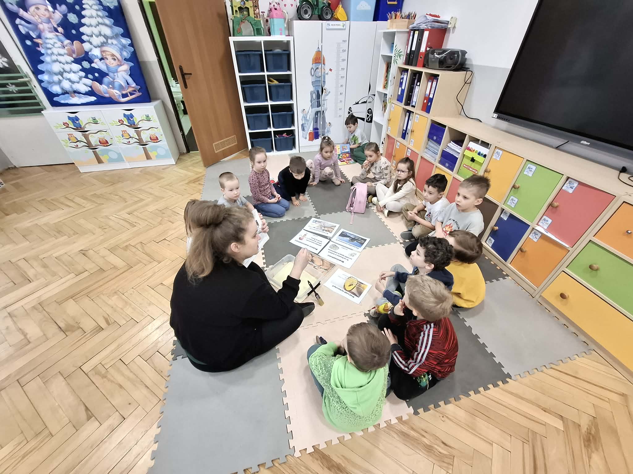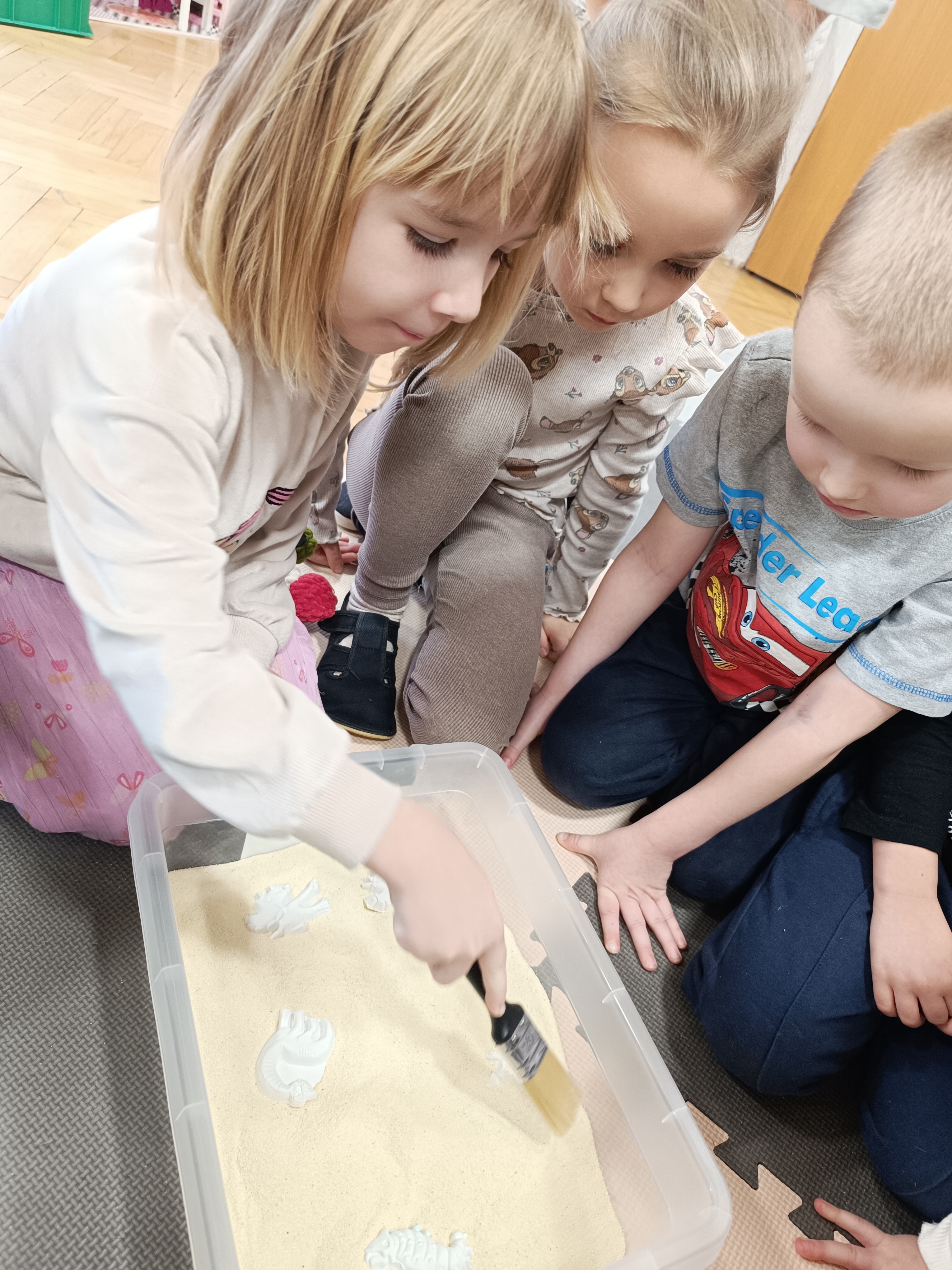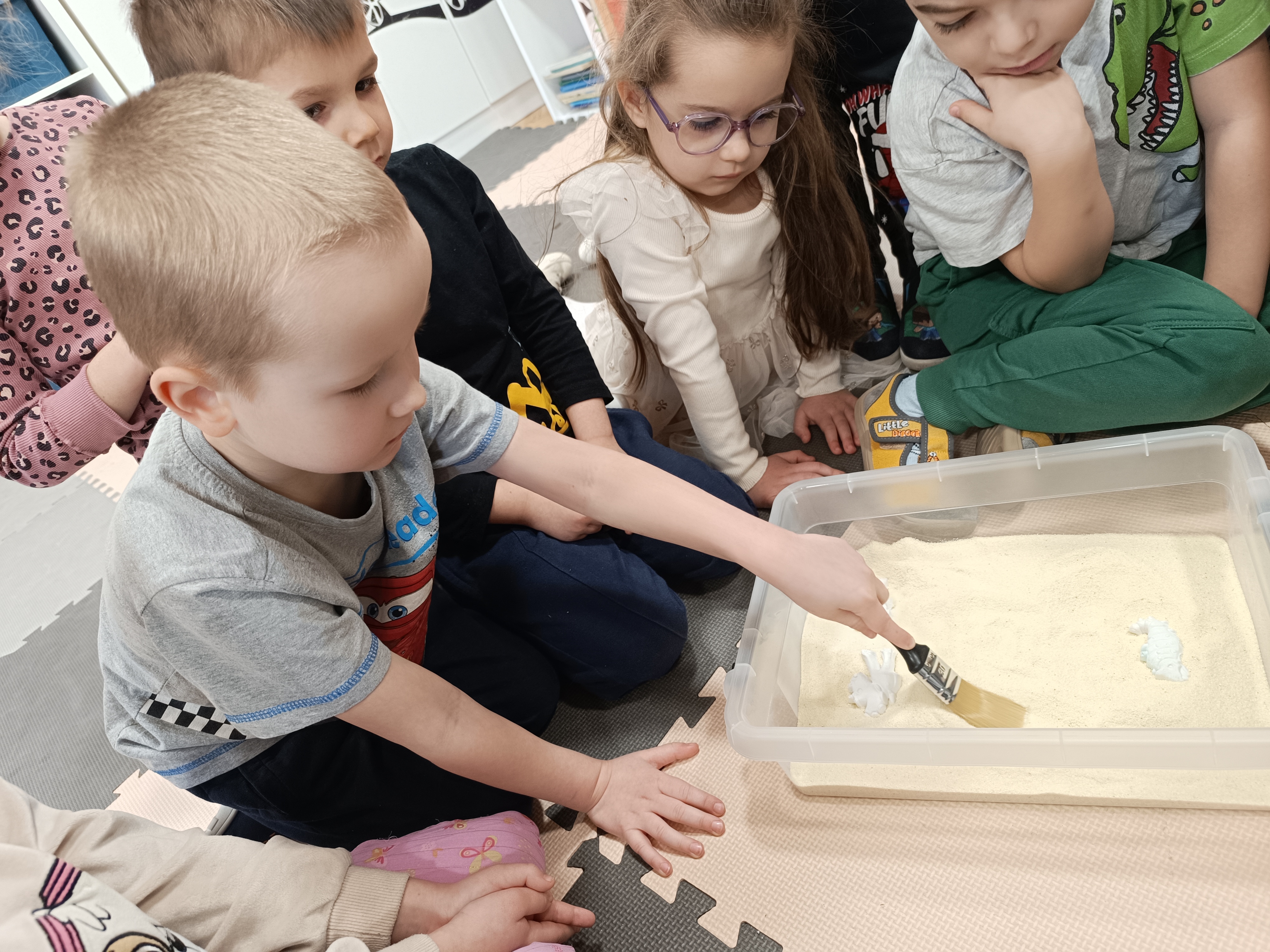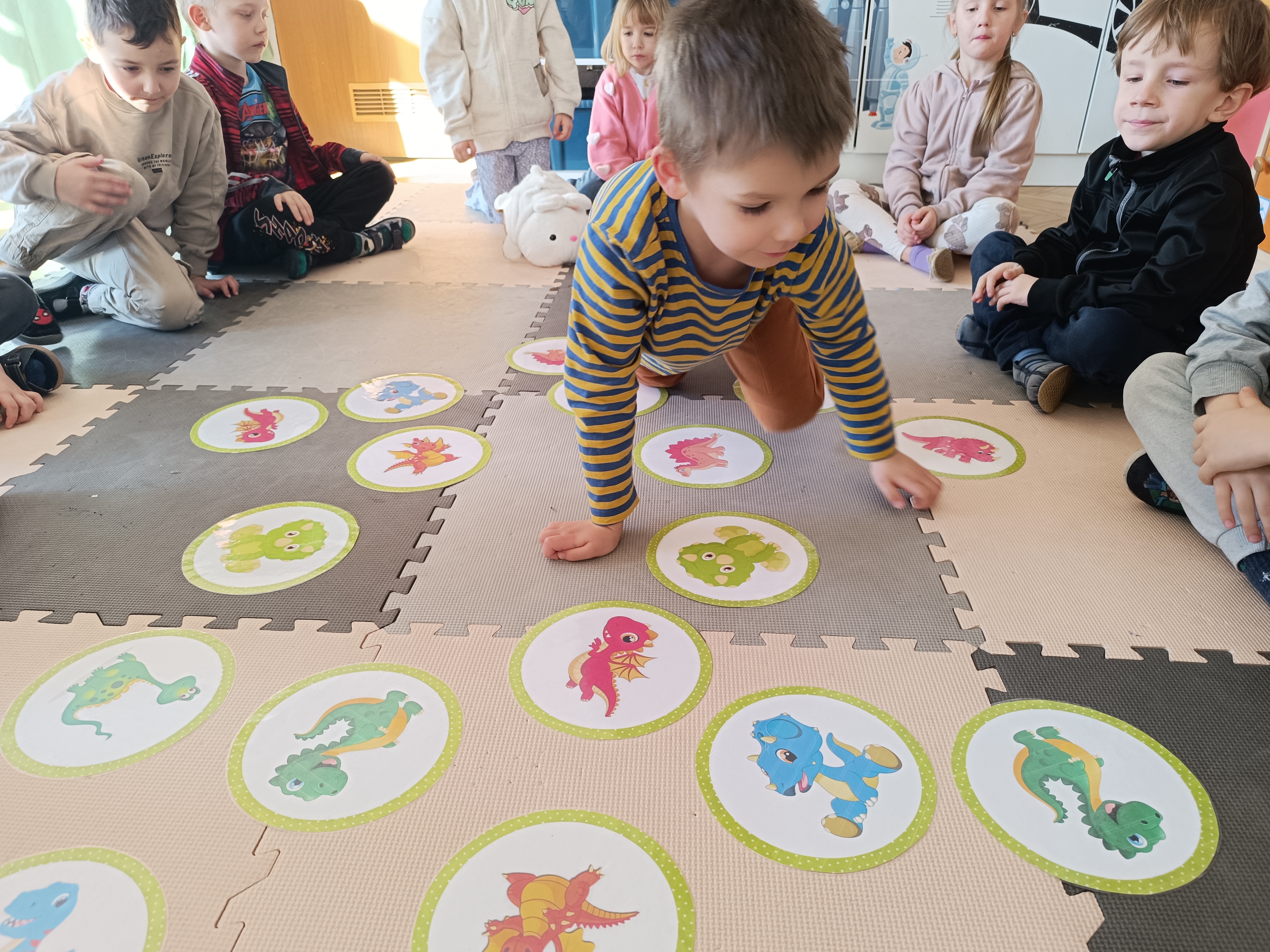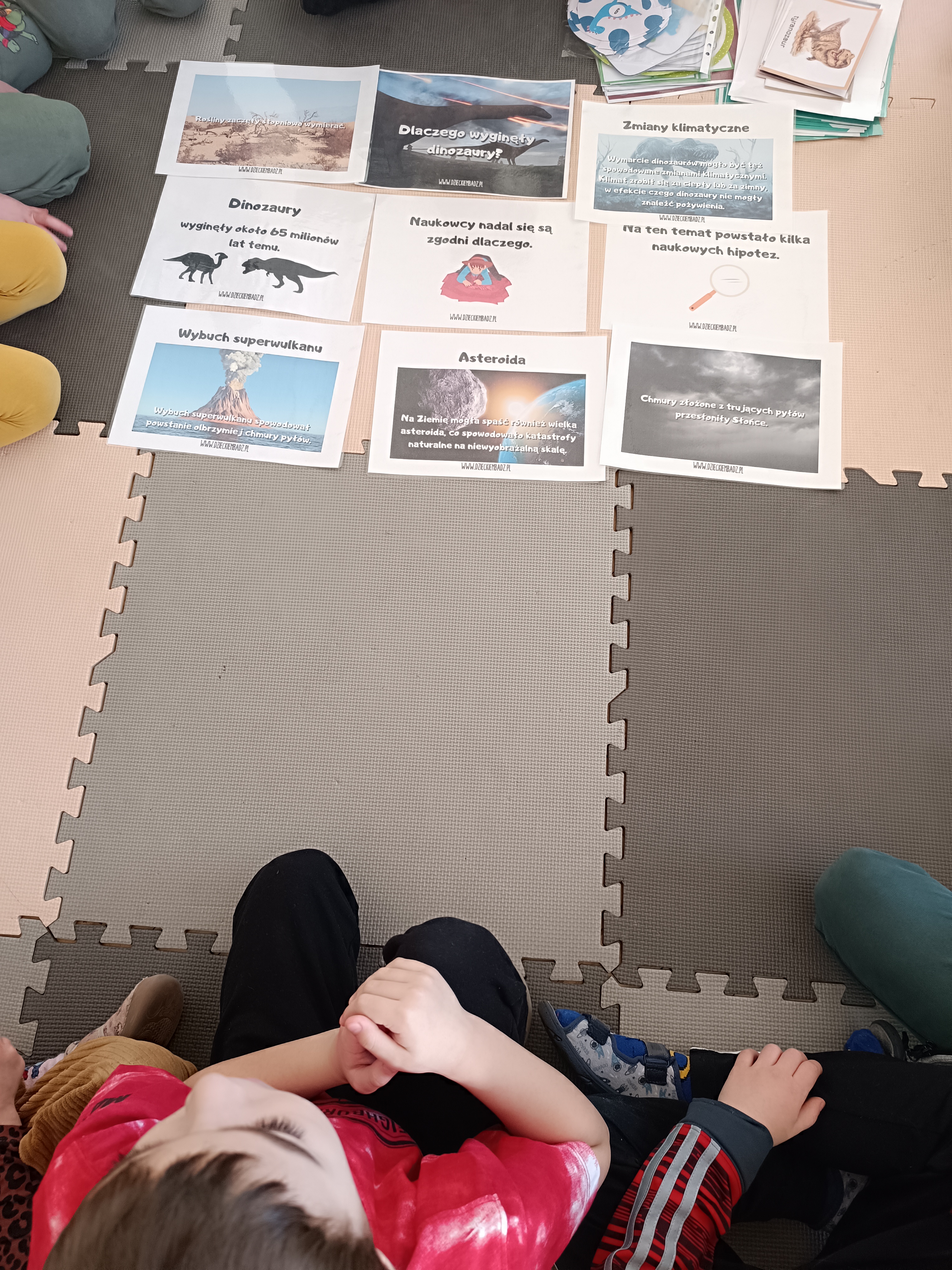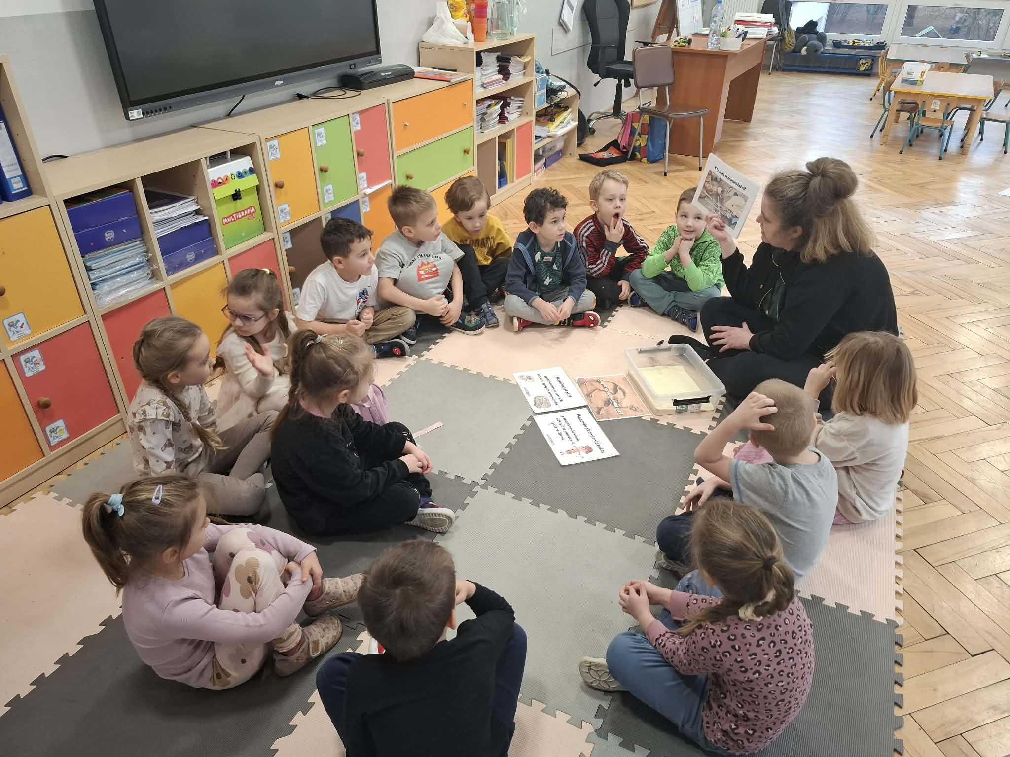 Rozmawialiśmy o tym, jak kiedyś wyglądał świat – dzieci dowiedziały się, że nasza planeta zmieniała się przez miliony lat. Poznały również stworzenia z przeszłości, w szczególności dinozaury, które wzbudziły ogromne zainteresowanie.