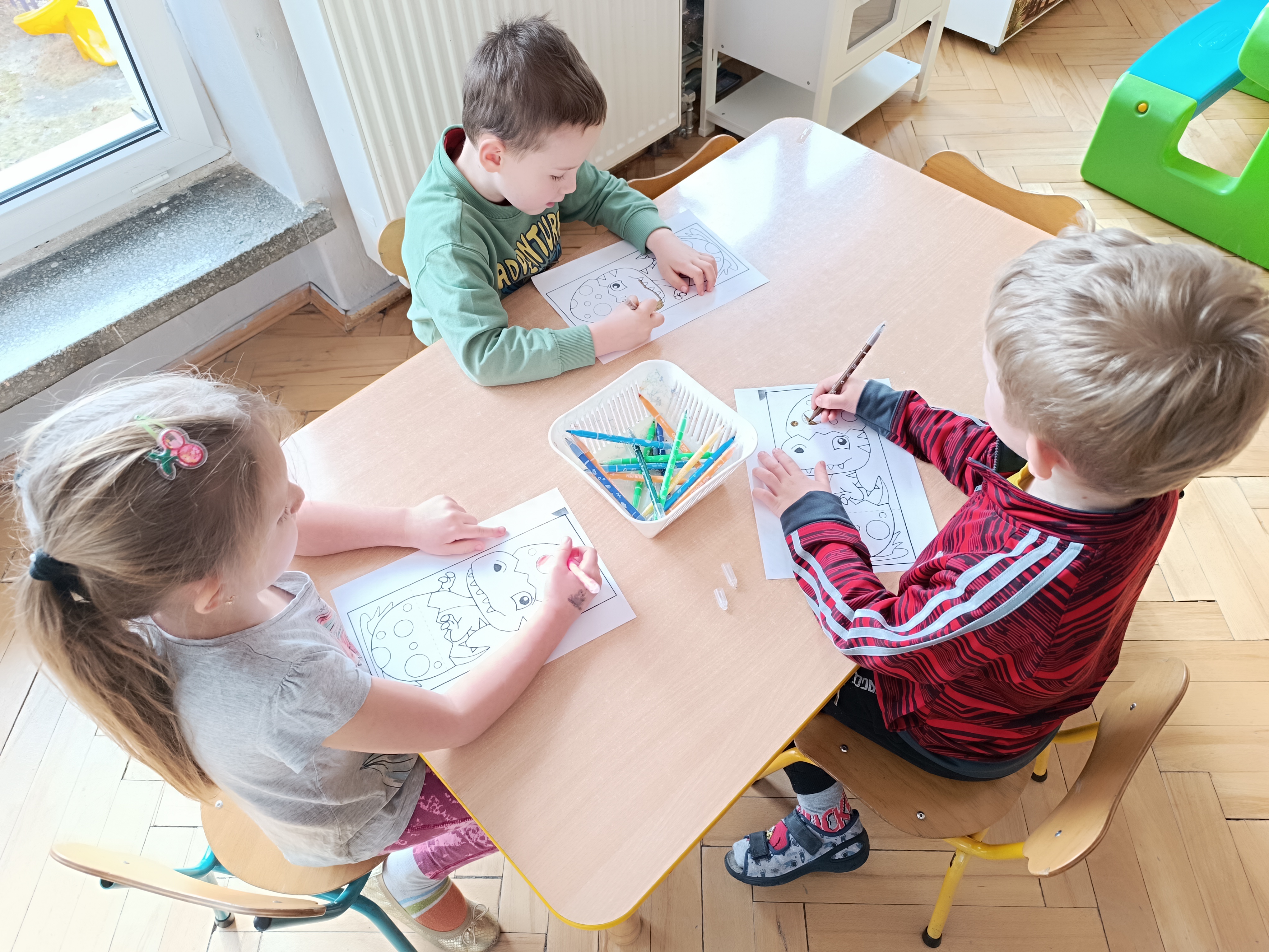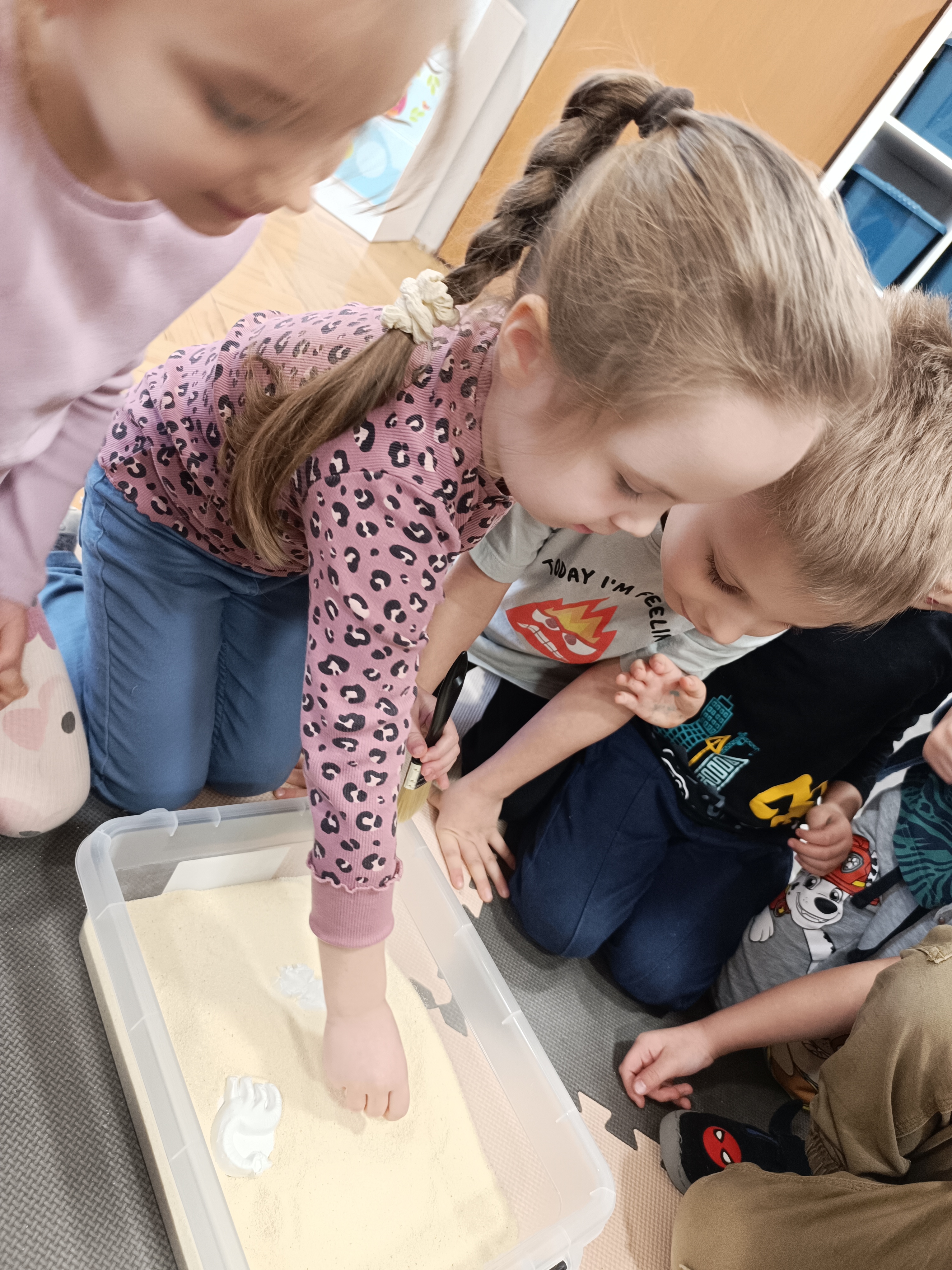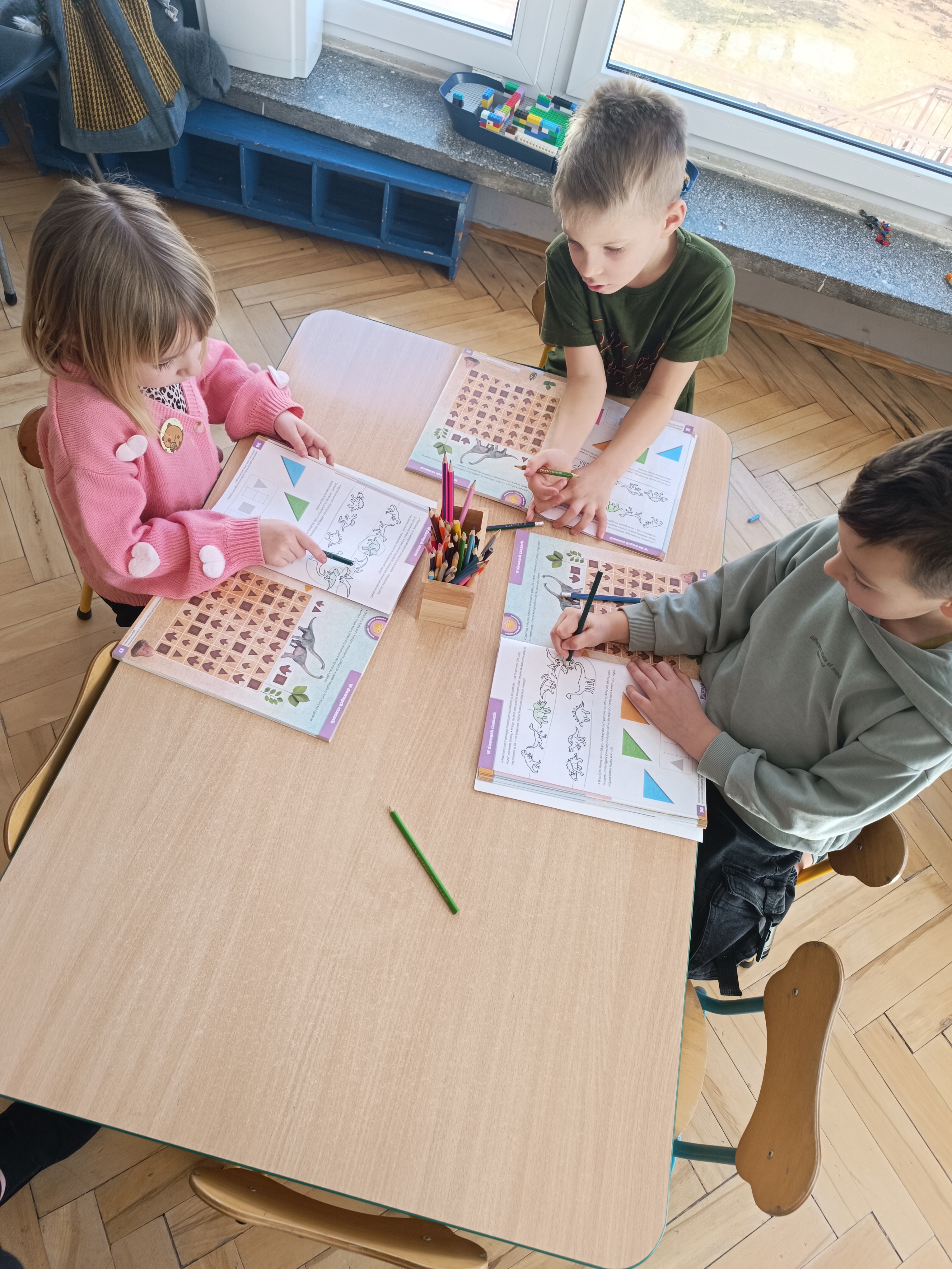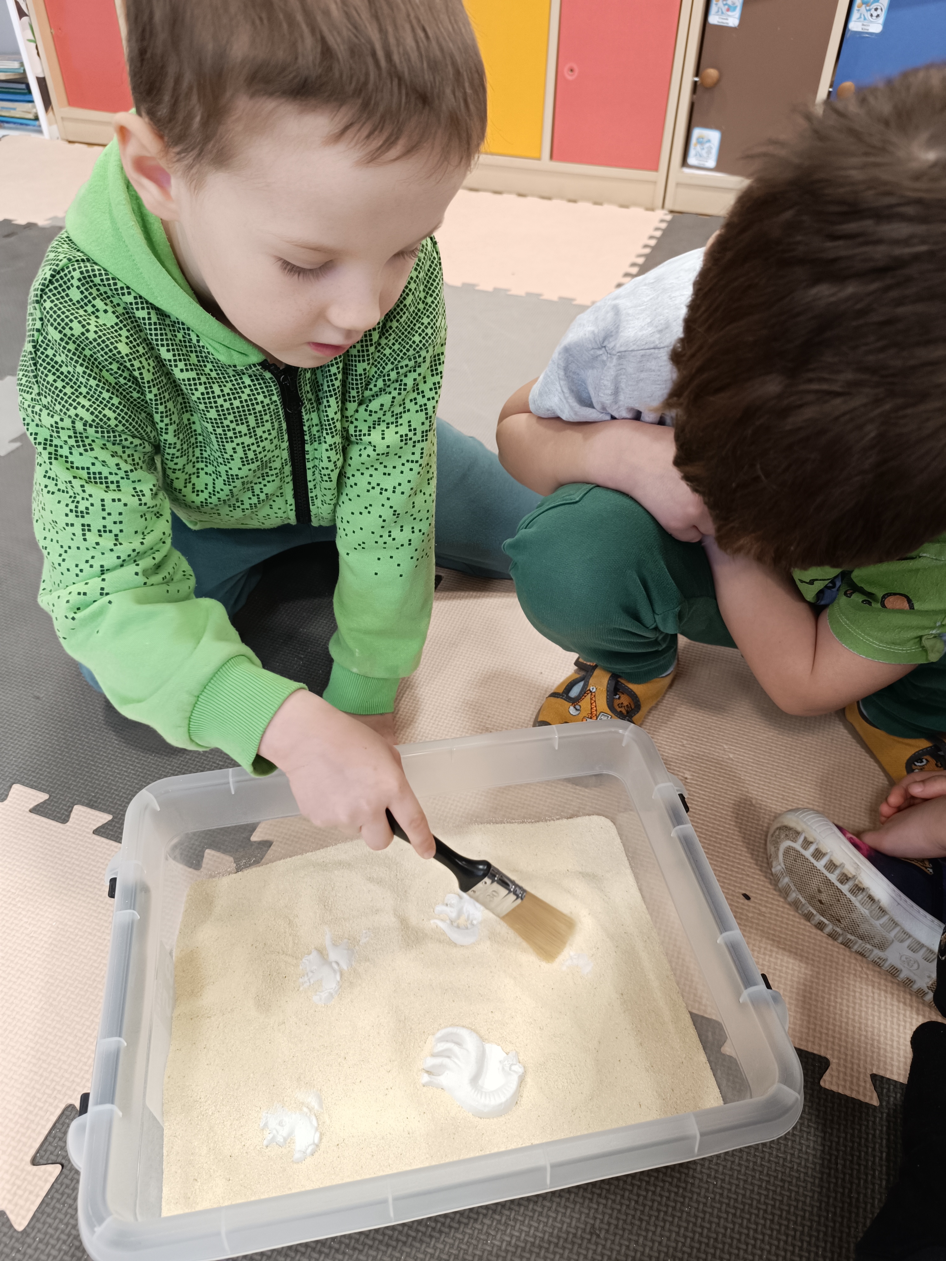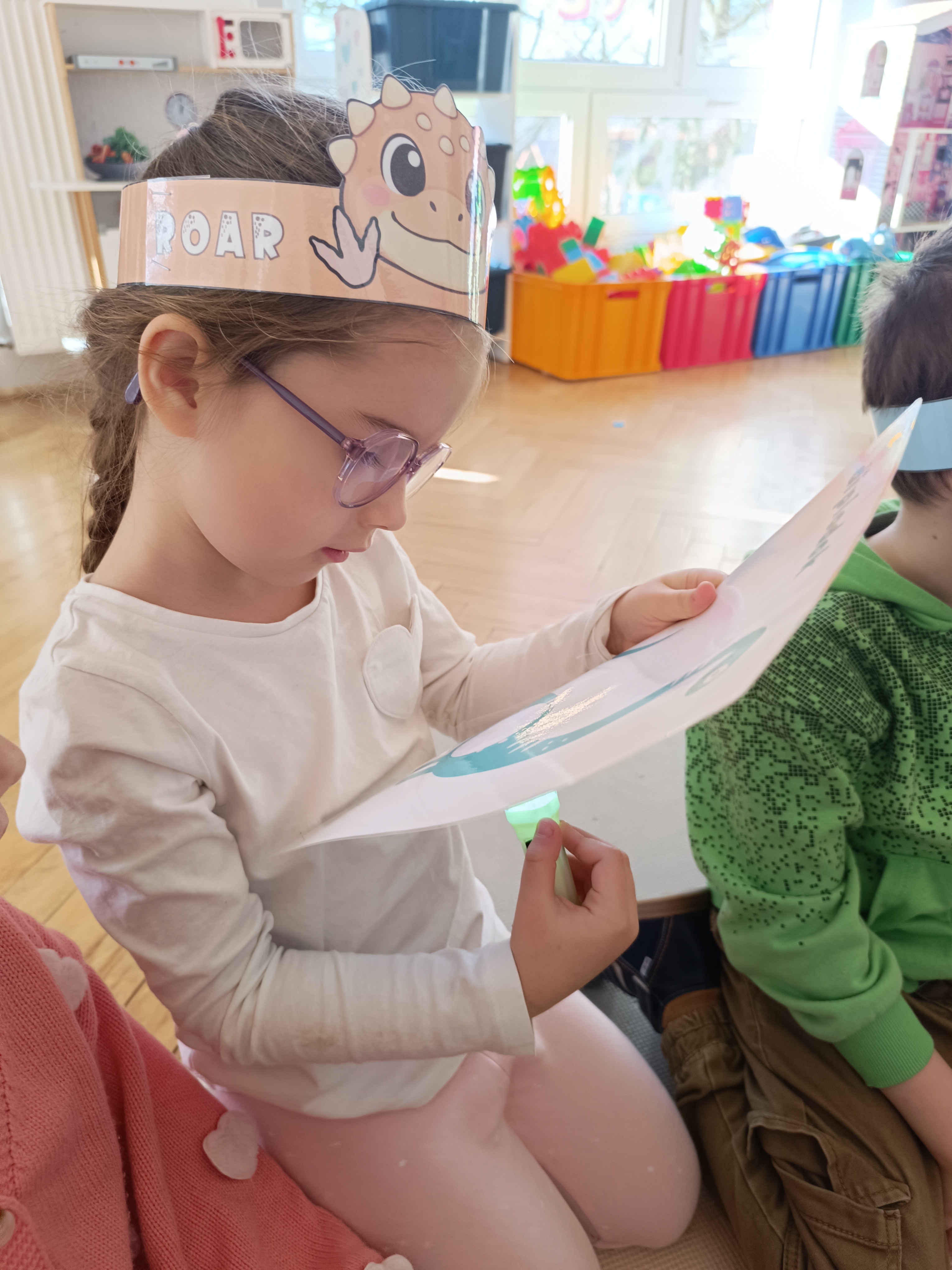 Rozmawialiśmy o tym, jak kiedyś wyglądał świat – dzieci dowiedziały się, że nasza planeta zmieniała się przez miliony lat. Poznały również stworzenia z przeszłości, w szczególności dinozaury, które wzbudziły ogromne zainteresowanie.