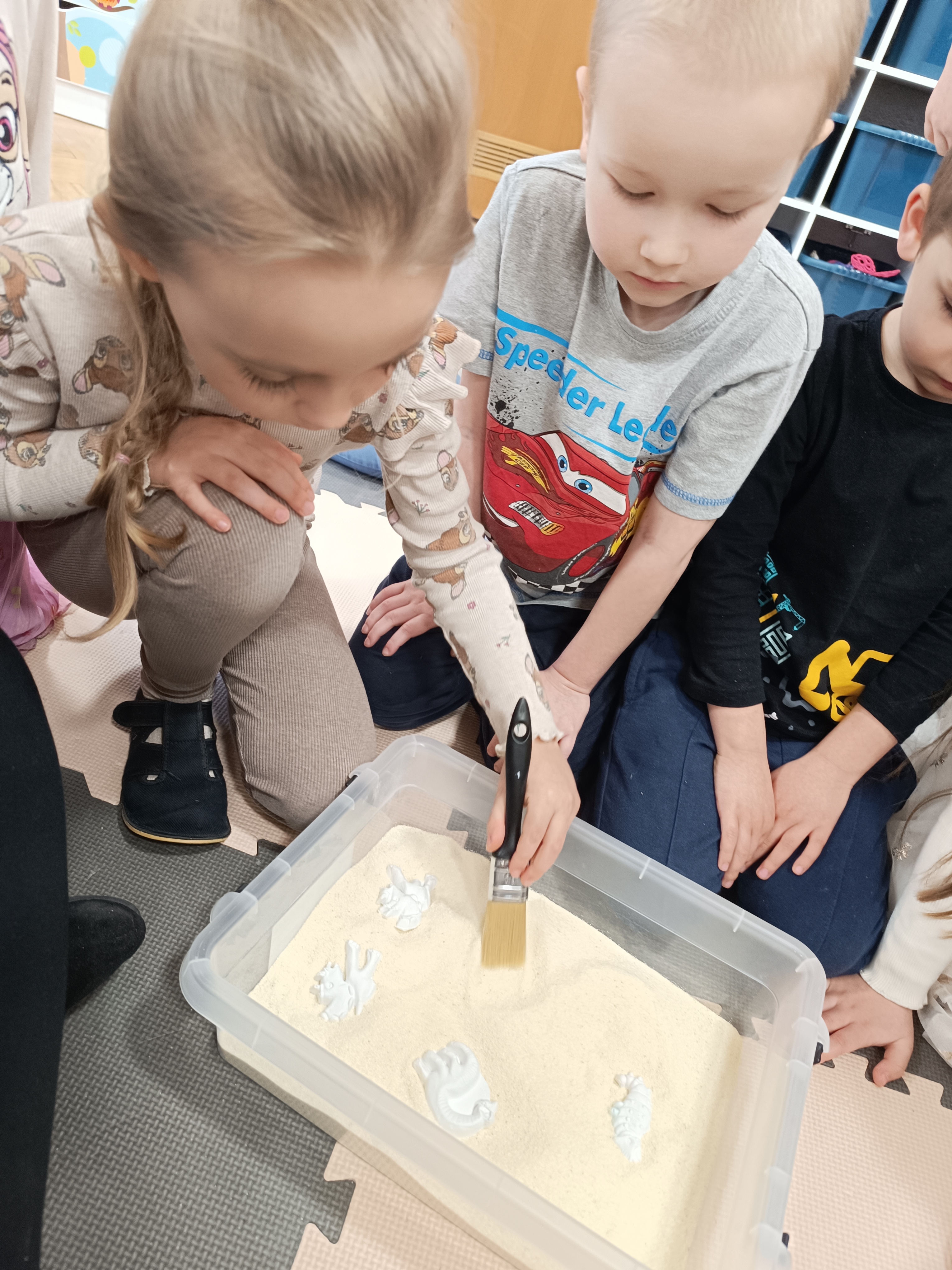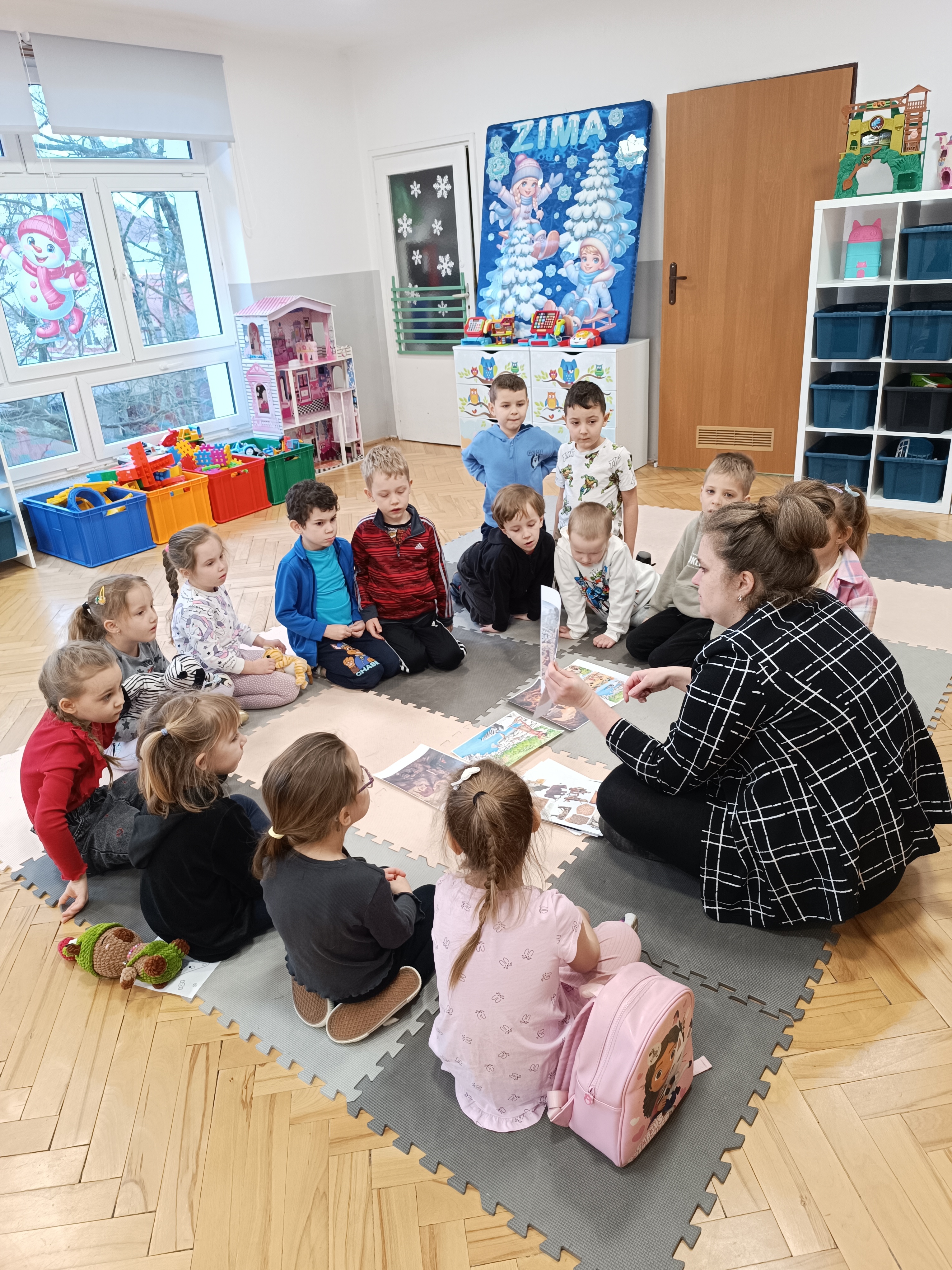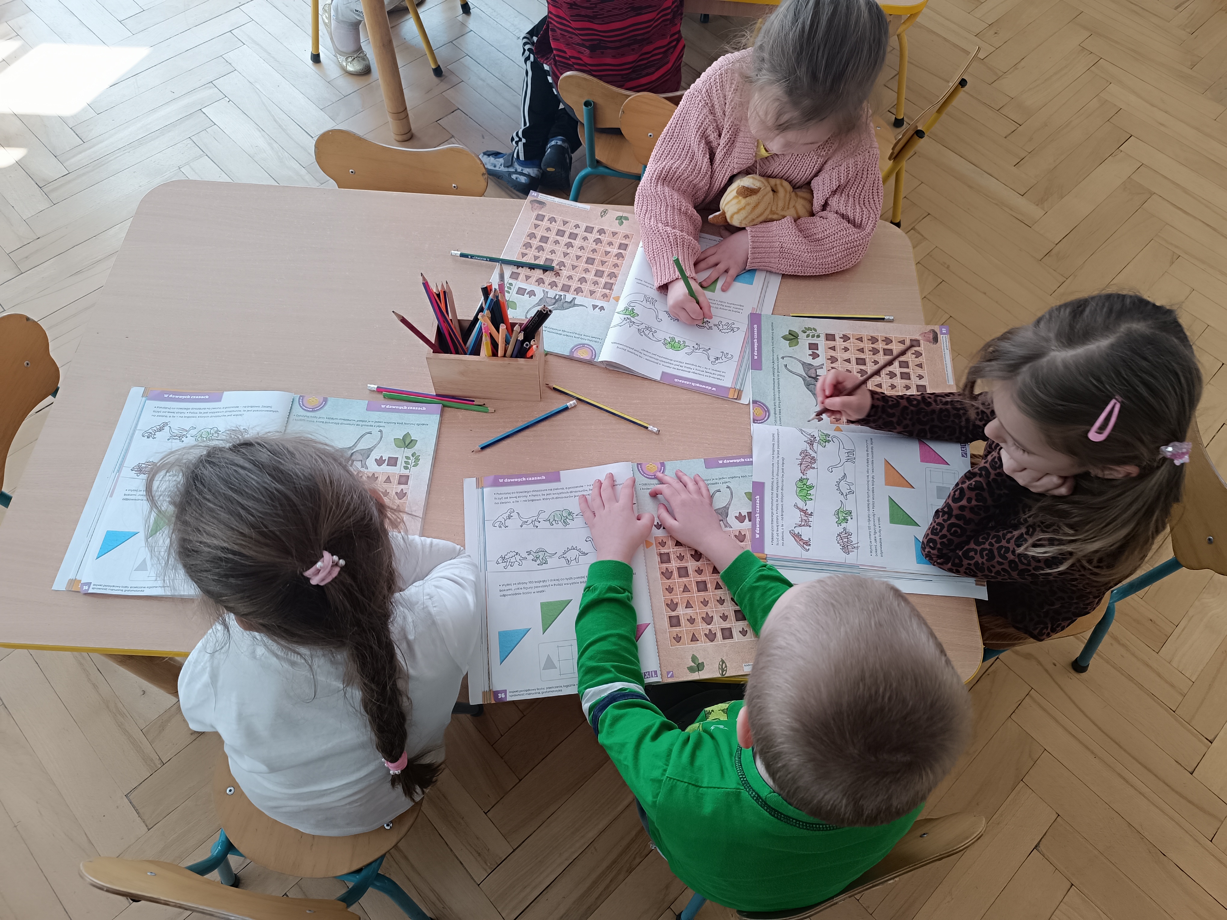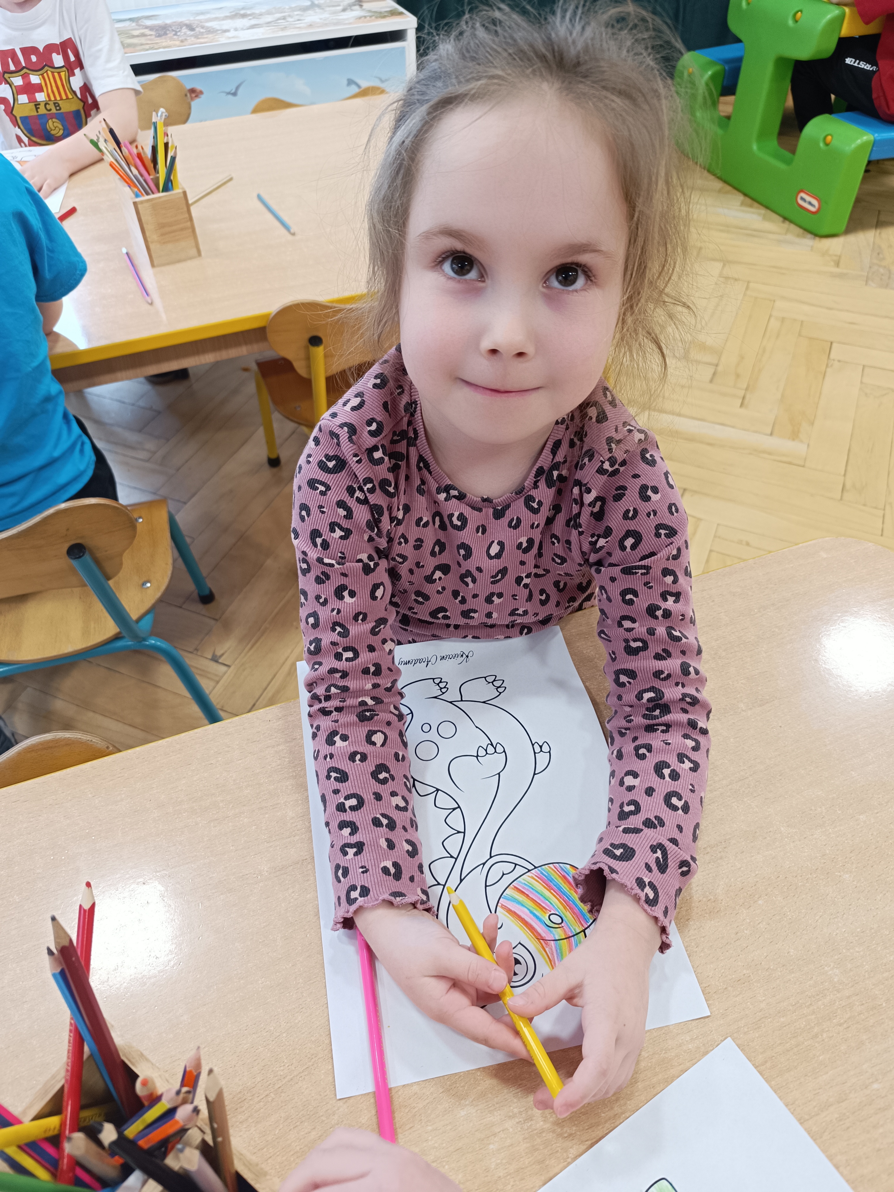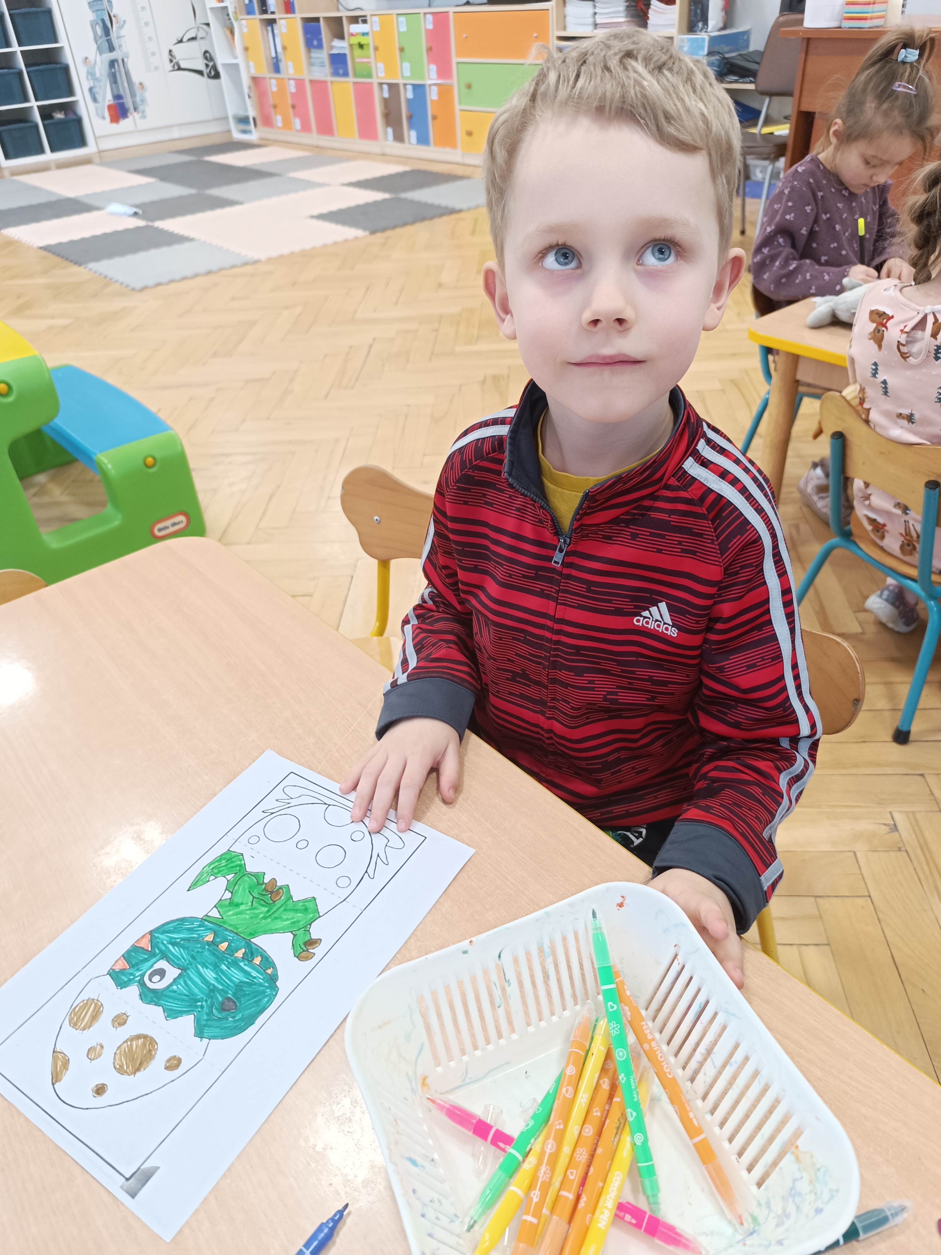 Rozmawialiśmy o tym, jak kiedyś wyglądał świat – dzieci dowiedziały się, że nasza planeta zmieniała się przez miliony lat. Poznały również stworzenia z przeszłości, w szczególności dinozaury, które wzbudziły ogromne zainteresowanie.