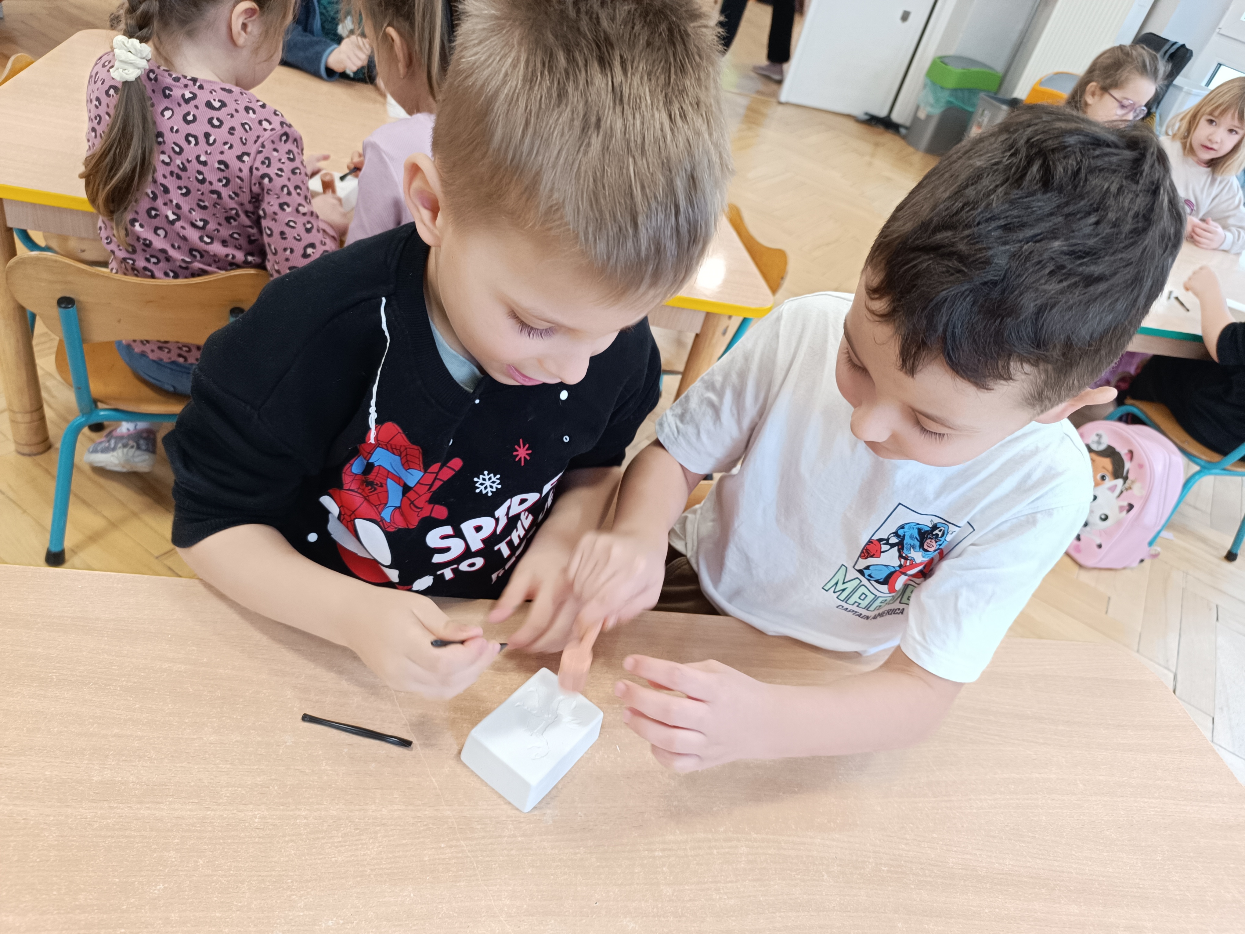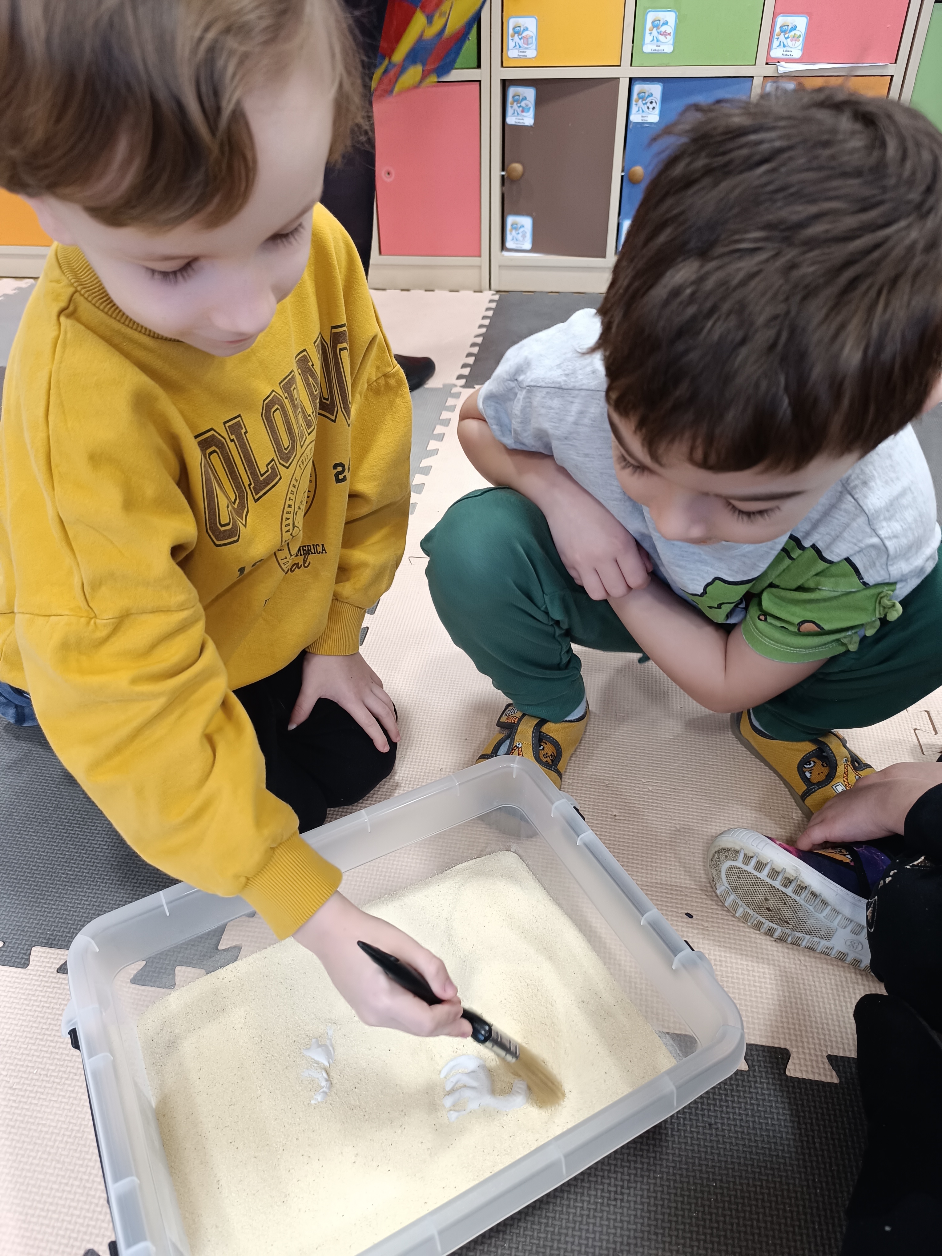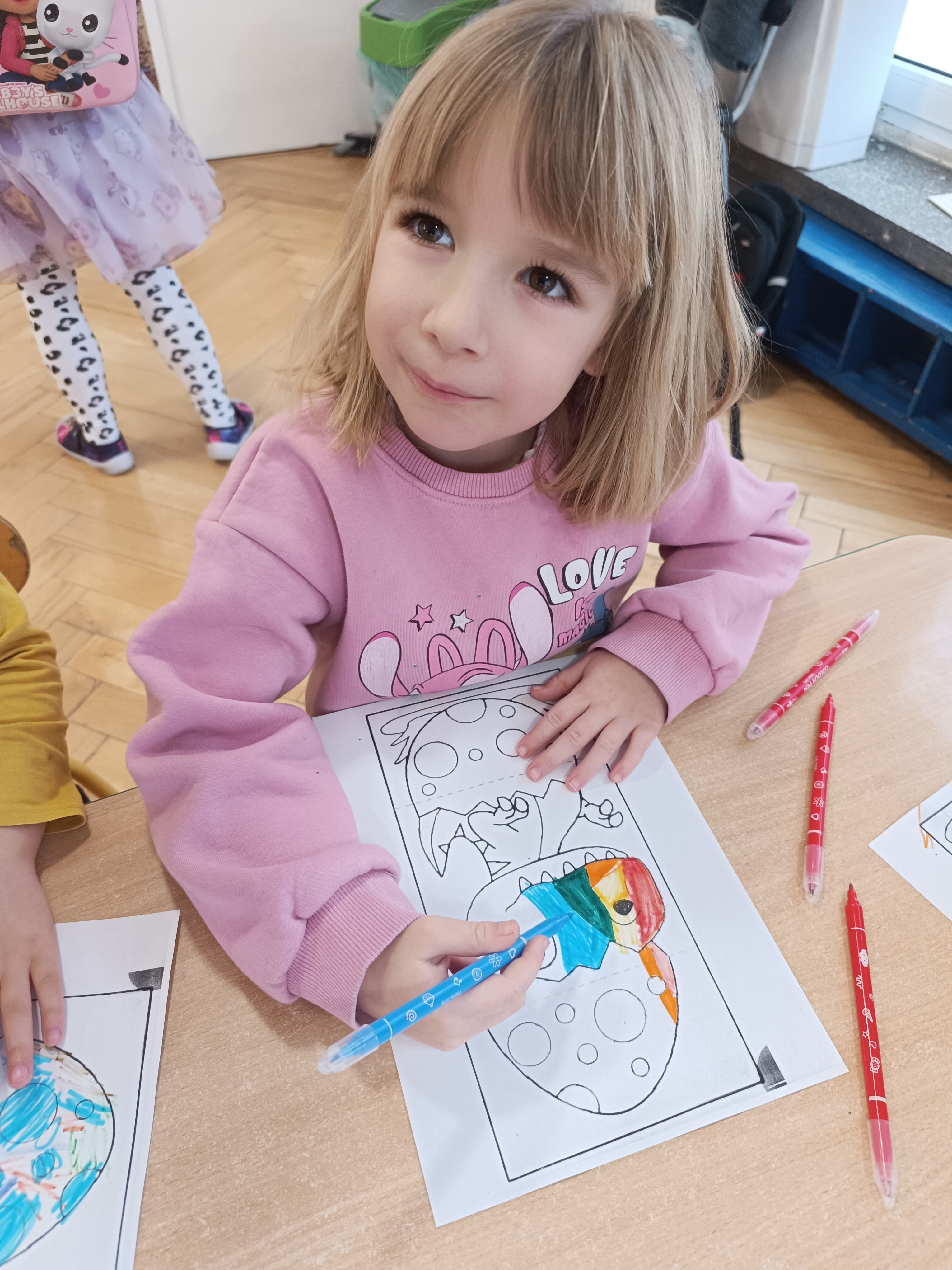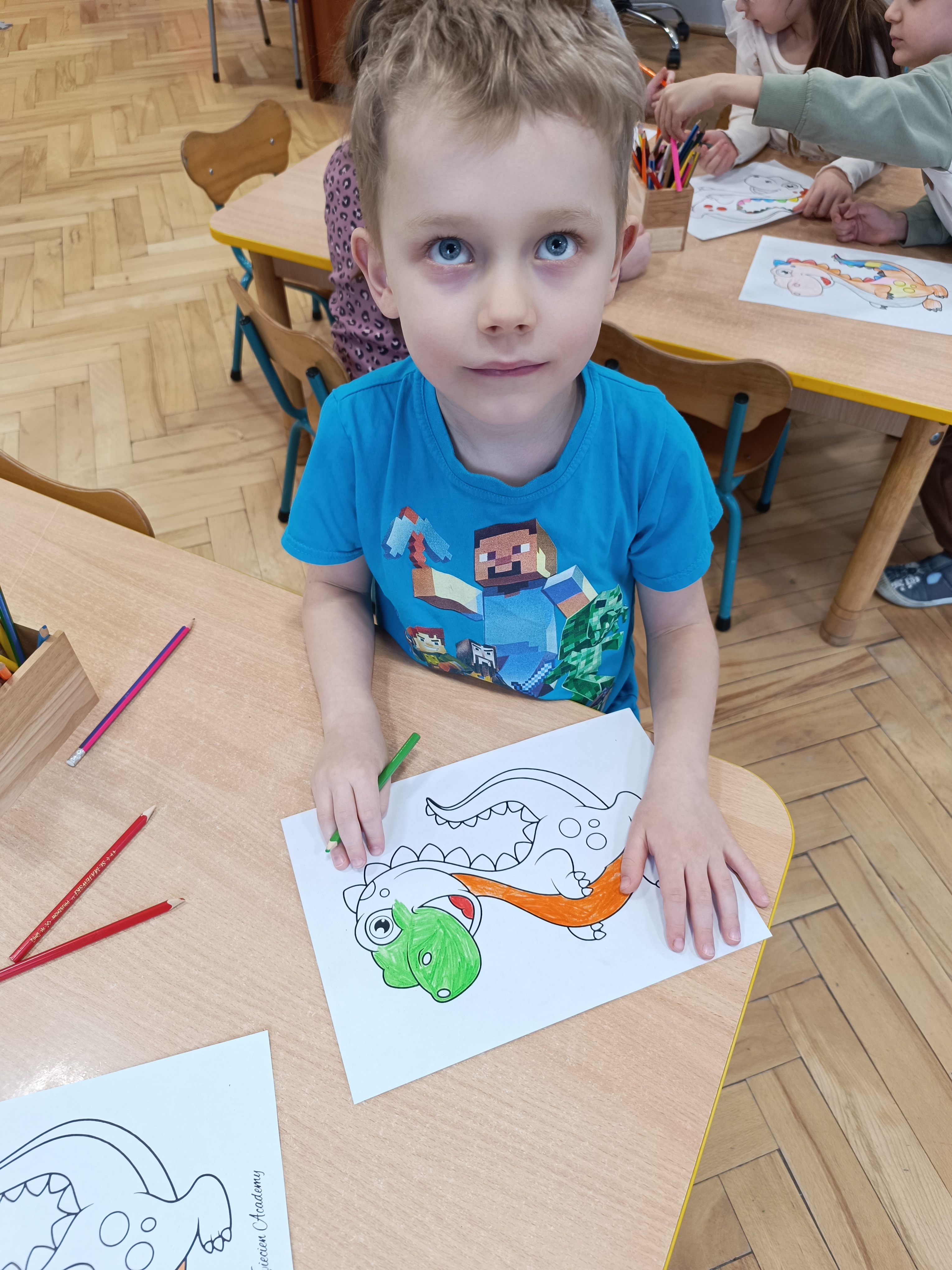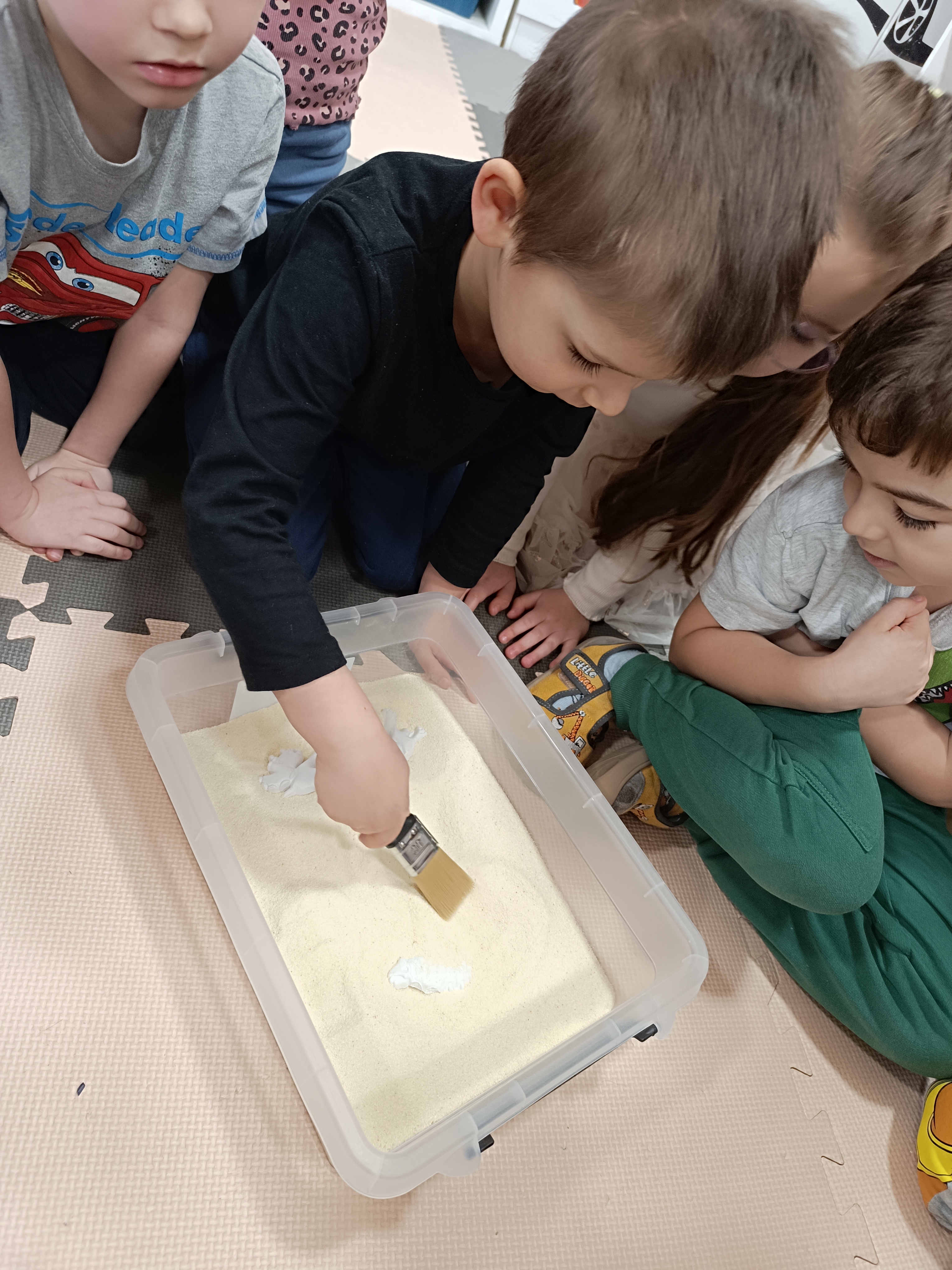 Rozmawialiśmy o tym, jak kiedyś wyglądał świat – dzieci dowiedziały się, że nasza planeta zmieniała się przez miliony lat. Poznały również stworzenia z przeszłości, w szczególności dinozaury, które wzbudziły ogromne zainteresowanie.