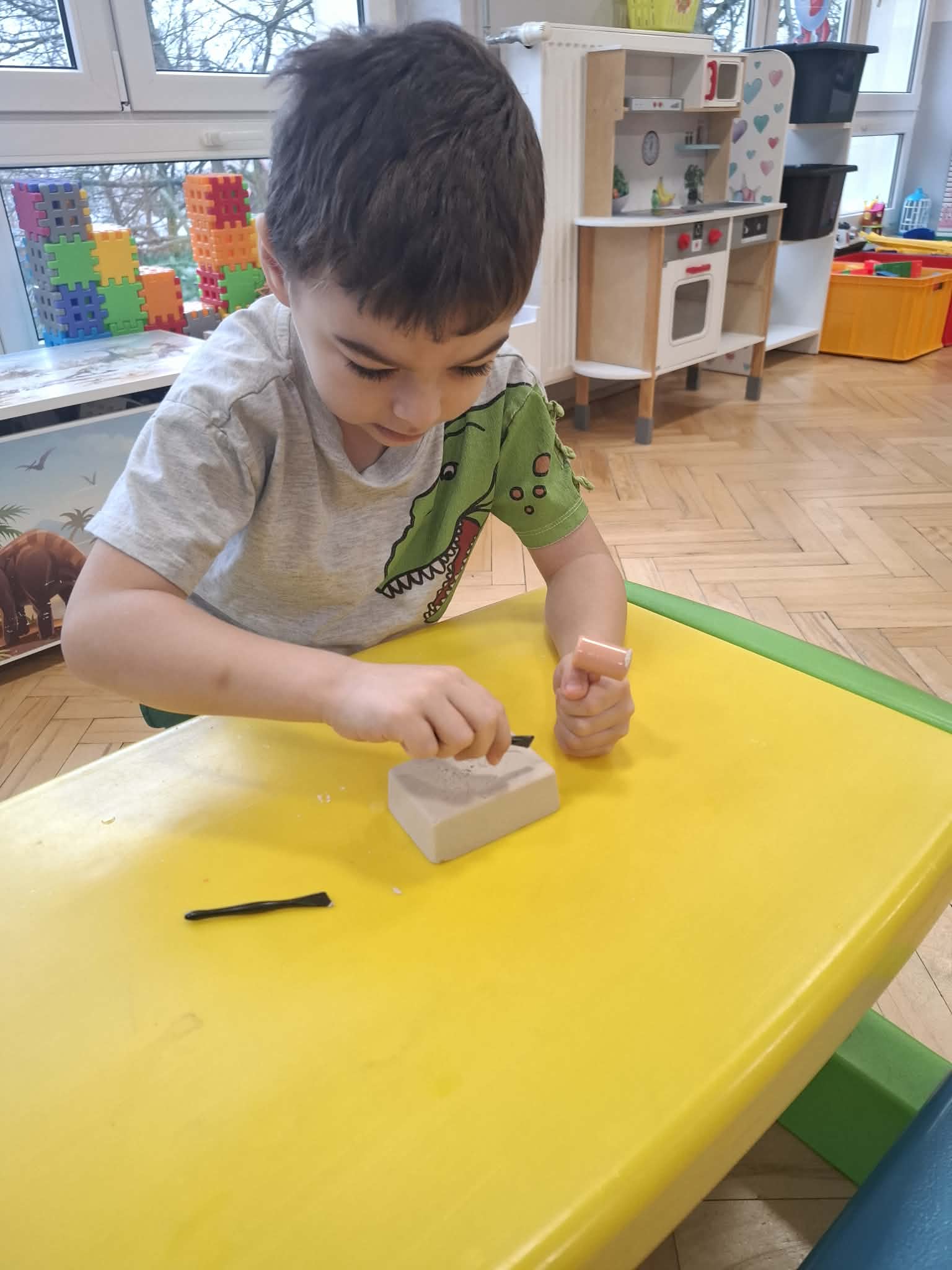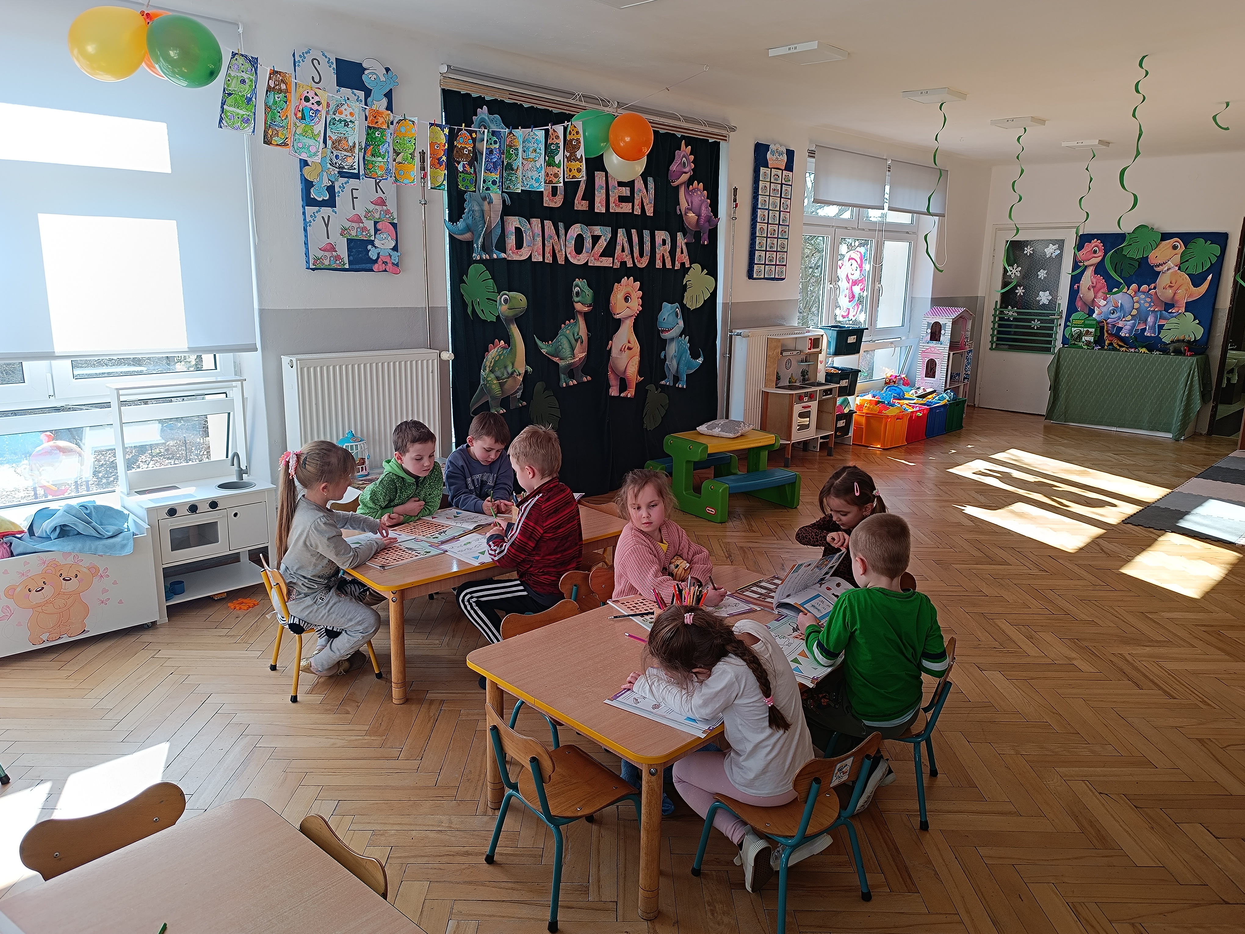 W minionym tygodniu realizowaliśmy temat „W dawnych czasach”, podczas którego dzieci miały okazję przenieść się w odległą przeszłość i poznać świat sprzed milionów lat. Był to czas pełen ciekawości, odkryć oraz nauki poprzez zabawę.