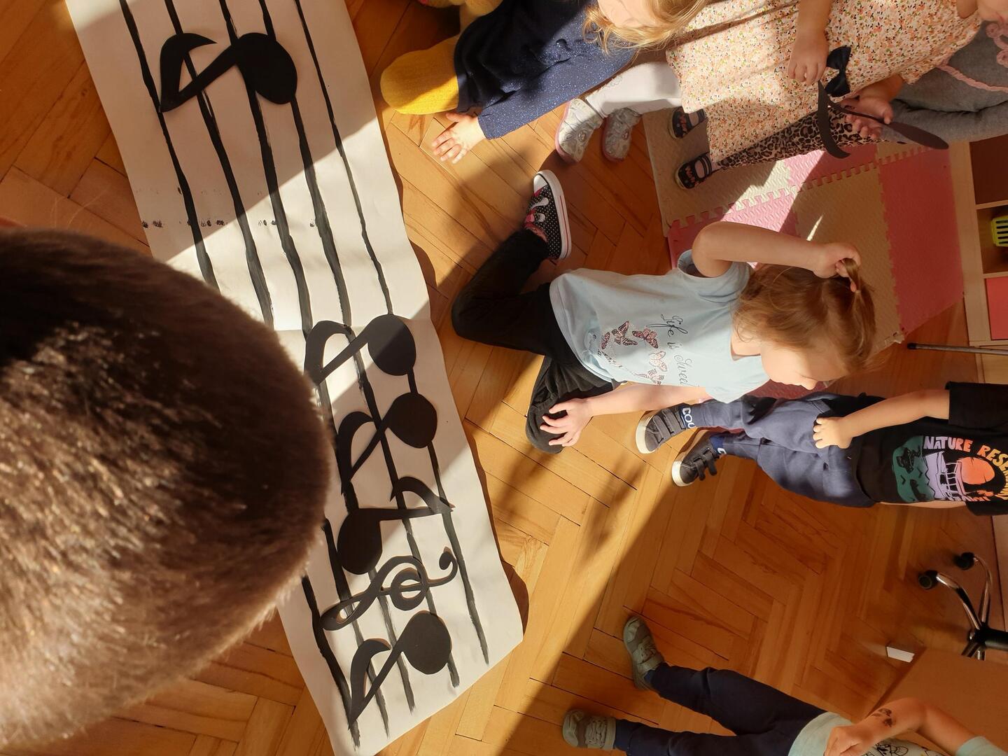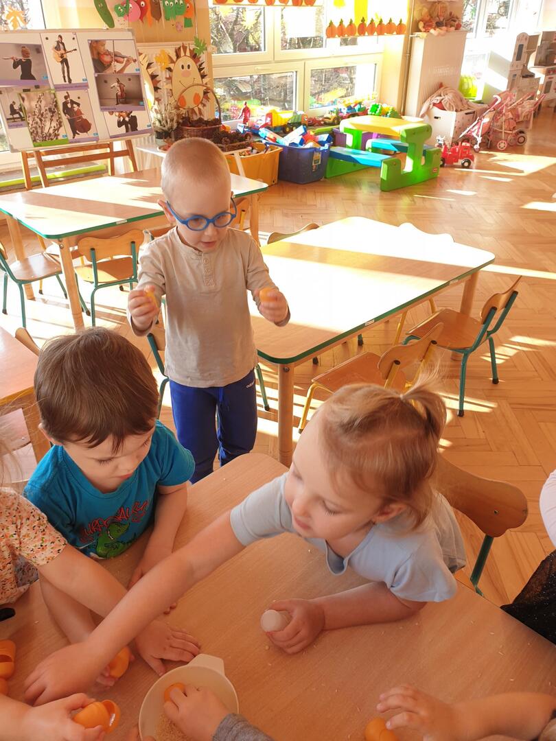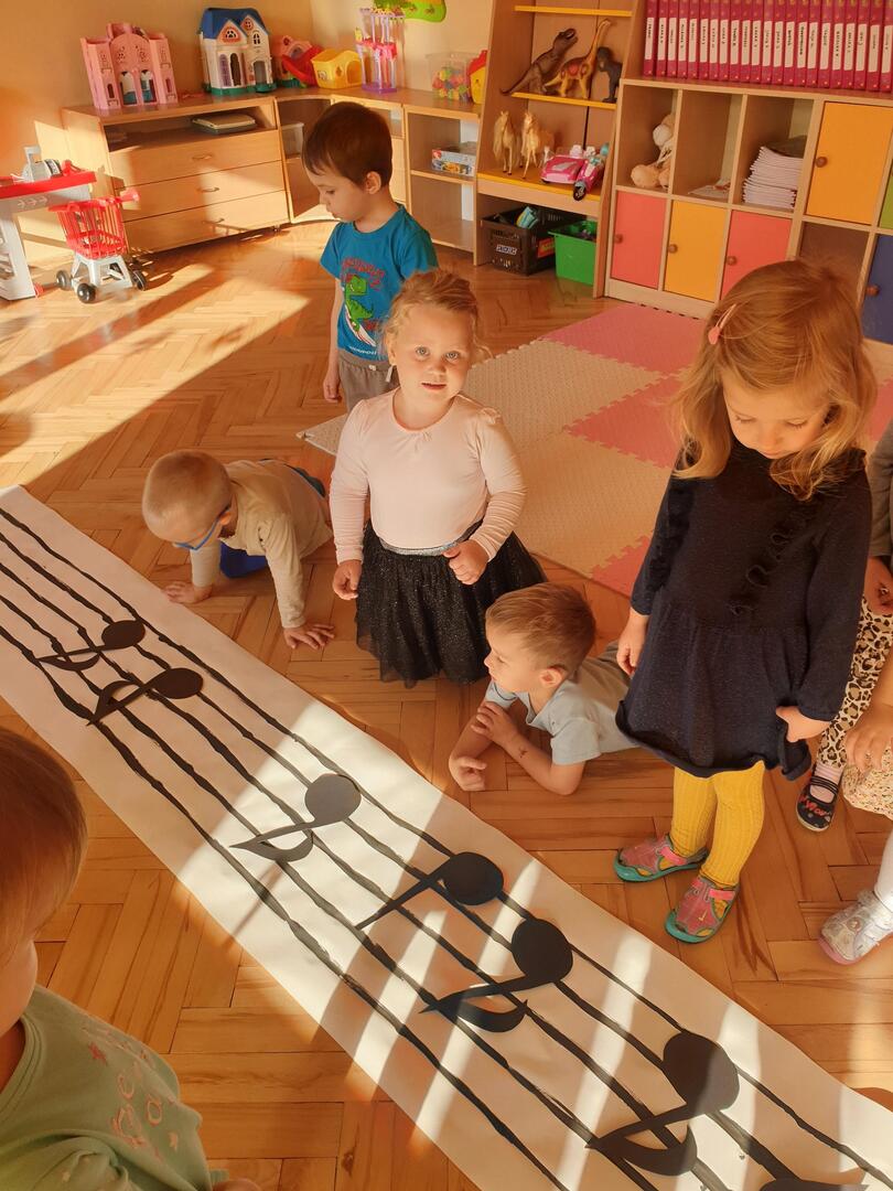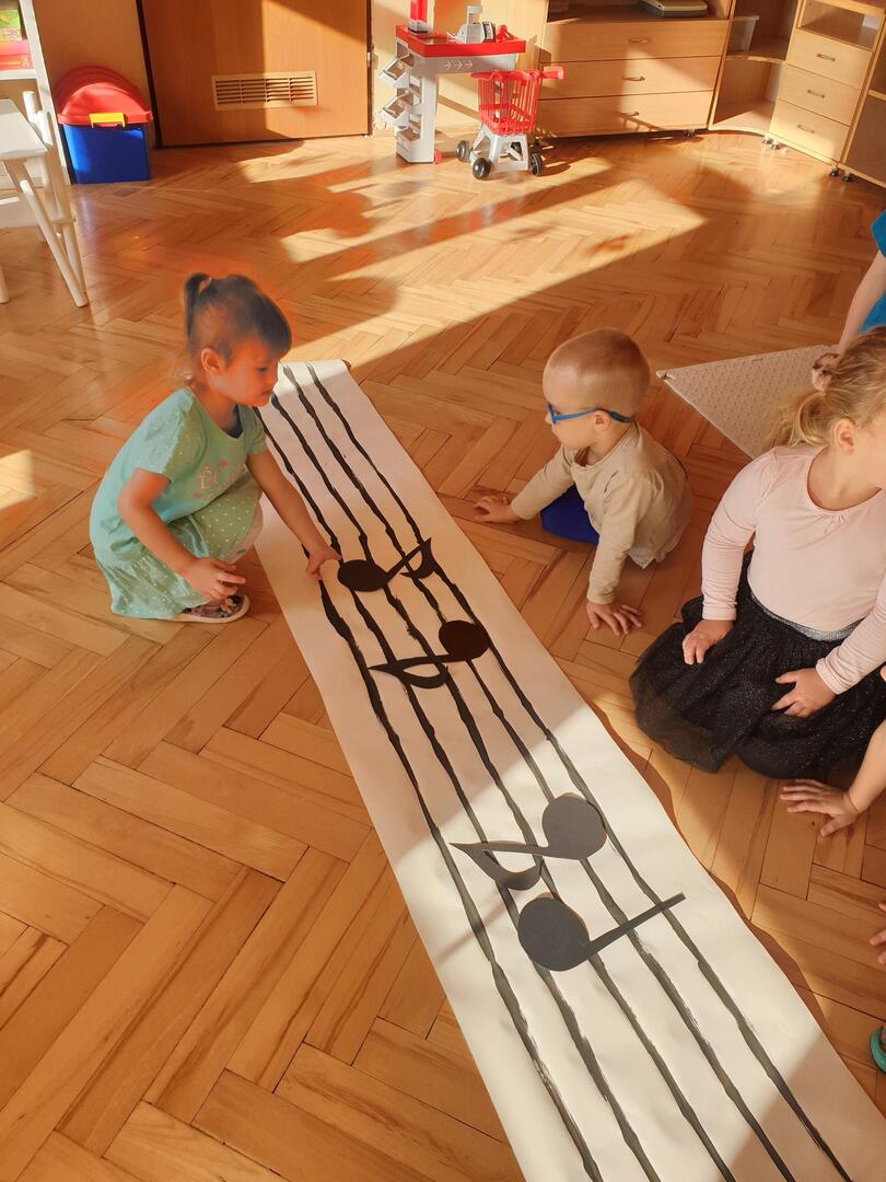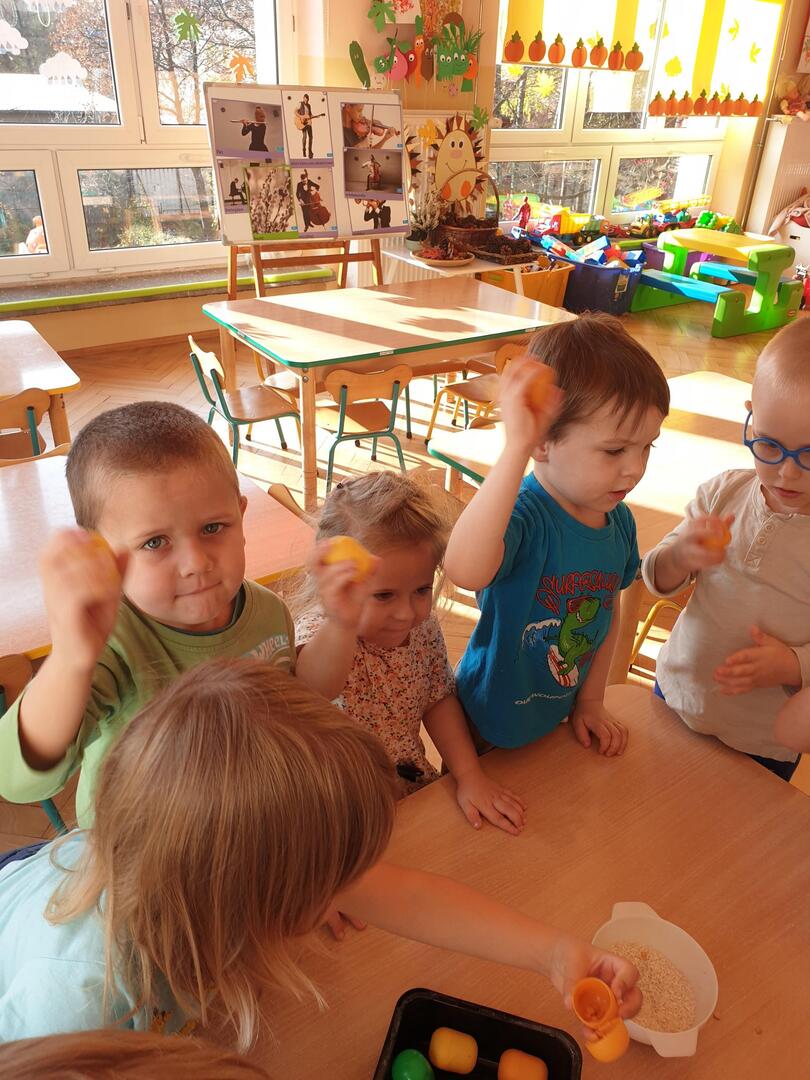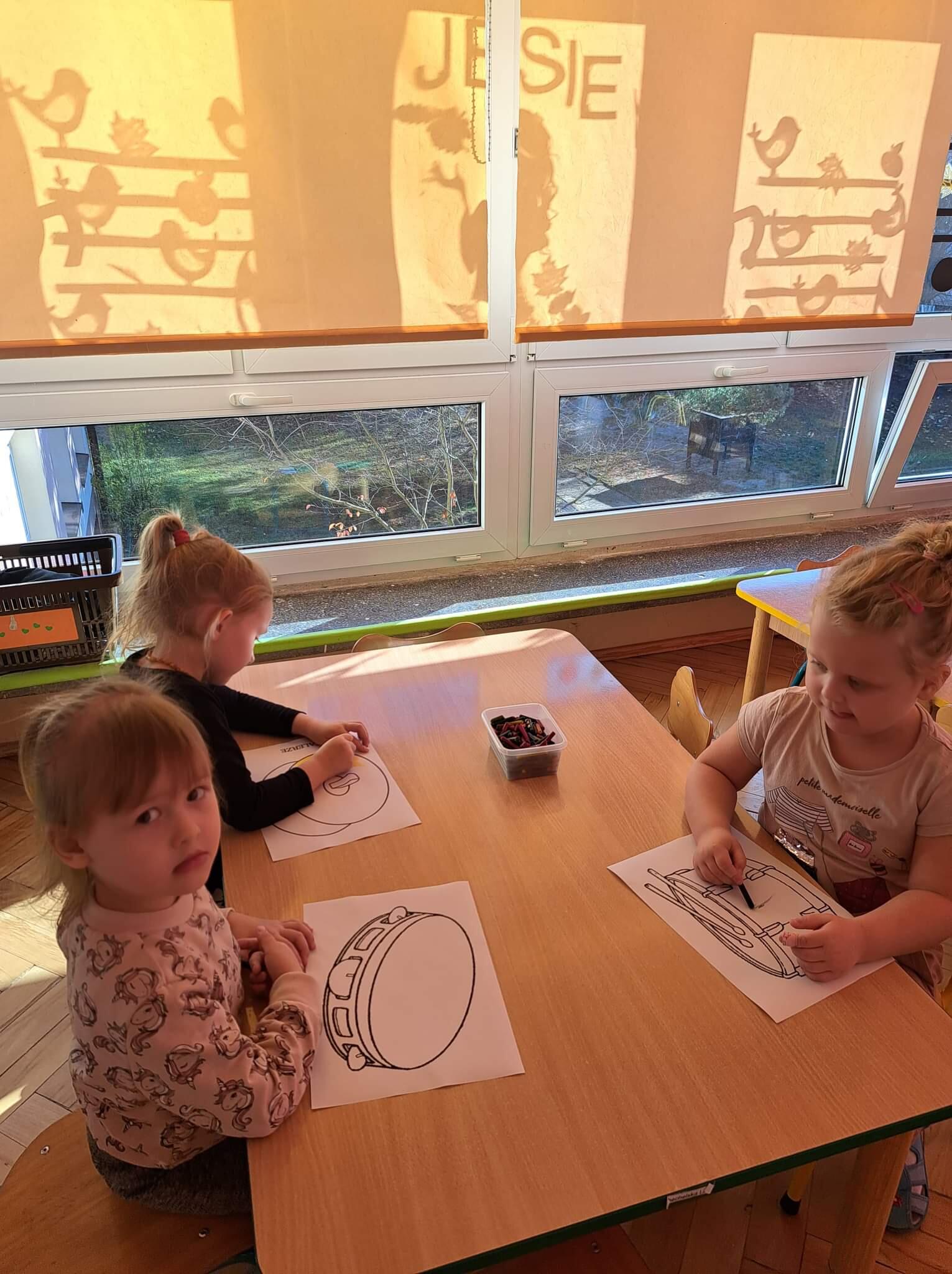 Również aktywnie słuchaliśmy muzyki, ilustrując ją ruchem. W zabawach plastycznych rozwijaliśmy wyobraźnię dźwiękową. Współpracowaliśmy z kolegami, zwracając uwagę na różnice w odczuwaniu bodźców i dbając o komfort drugiej osoby podczas zabawy. Zdajemy sobie sprawę z tego, że nie wszyscy reagują tak samo na mocny dotyk czy głośny dźwięk, i należy to uszanować.