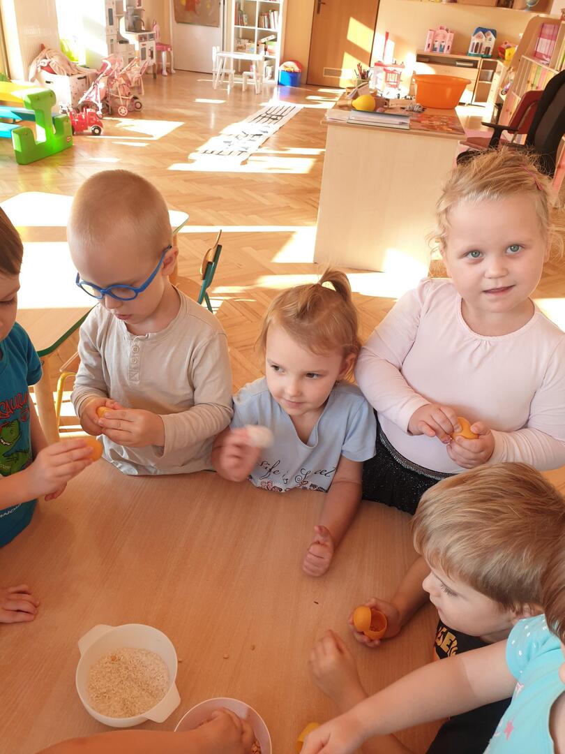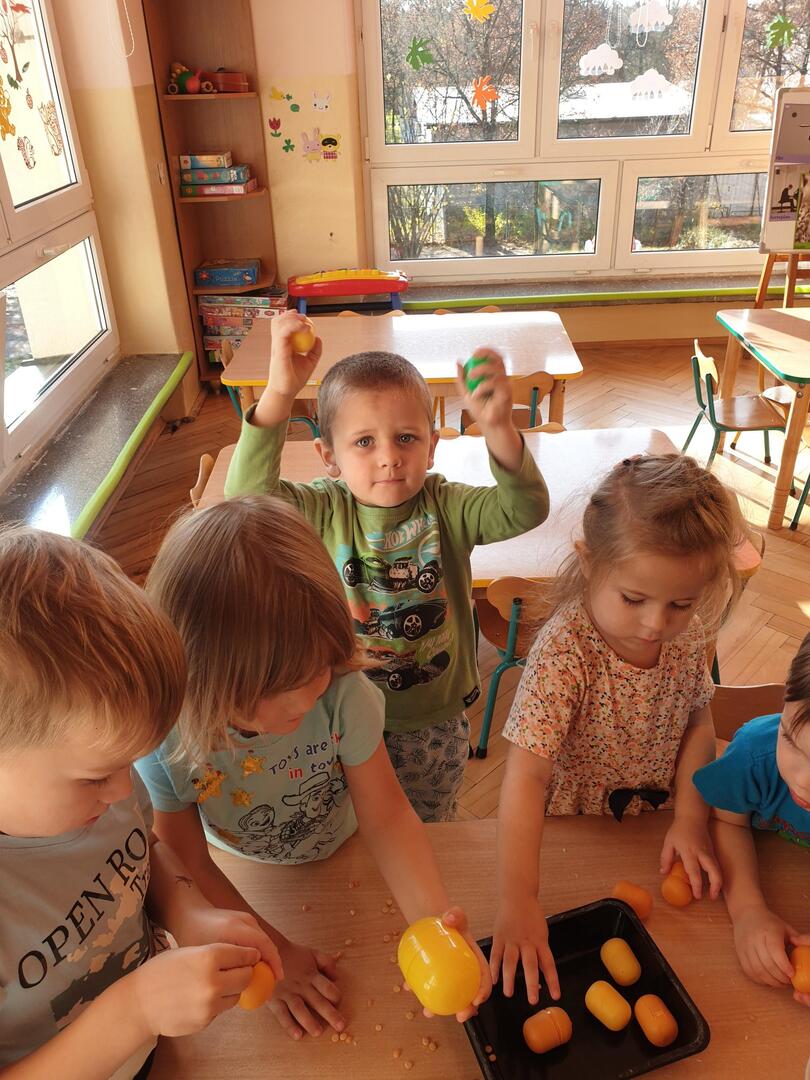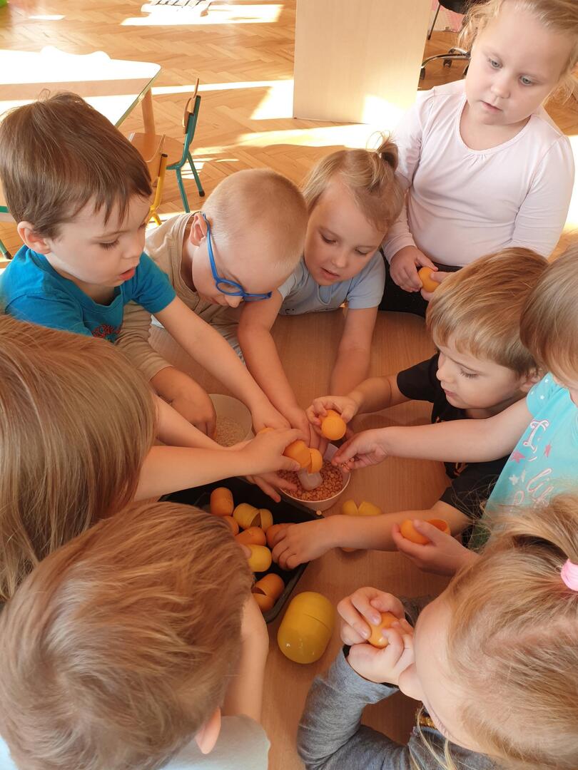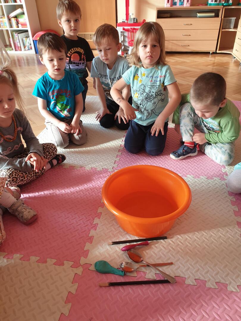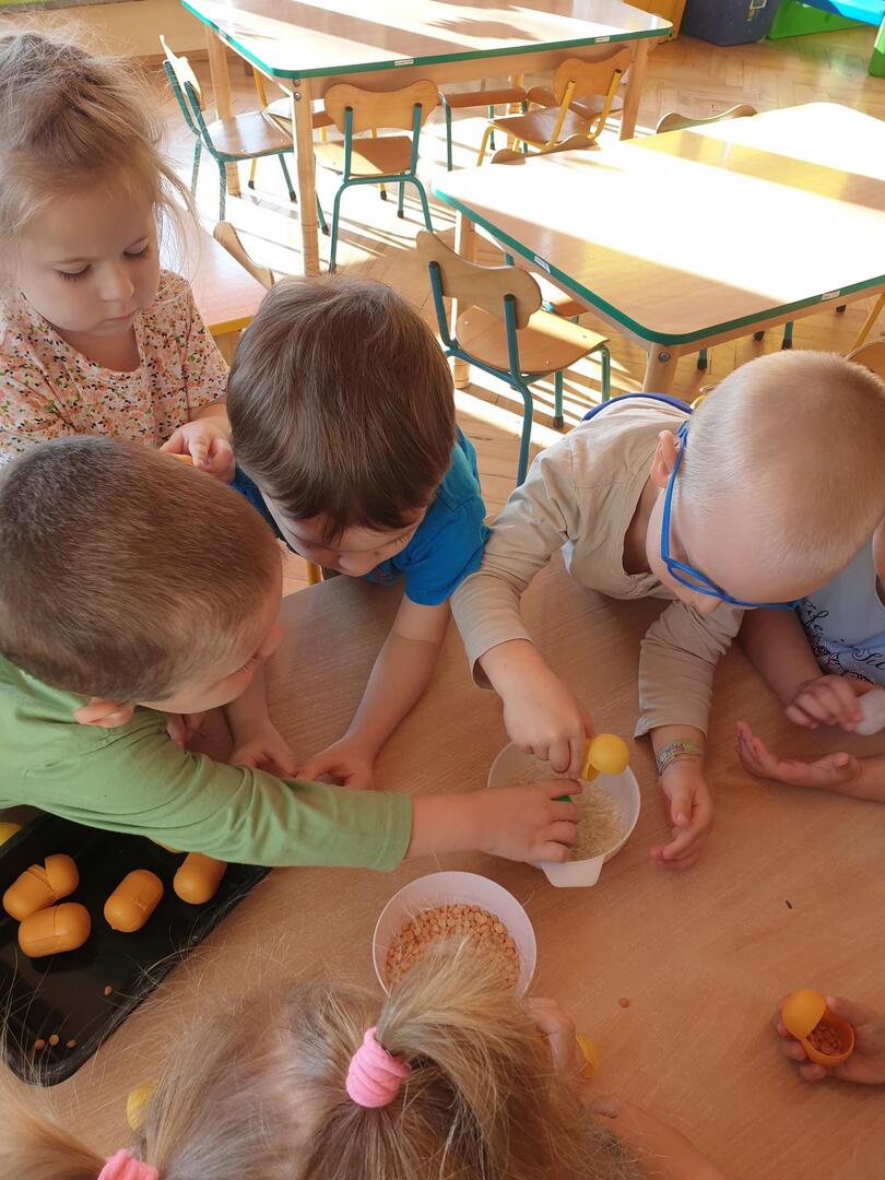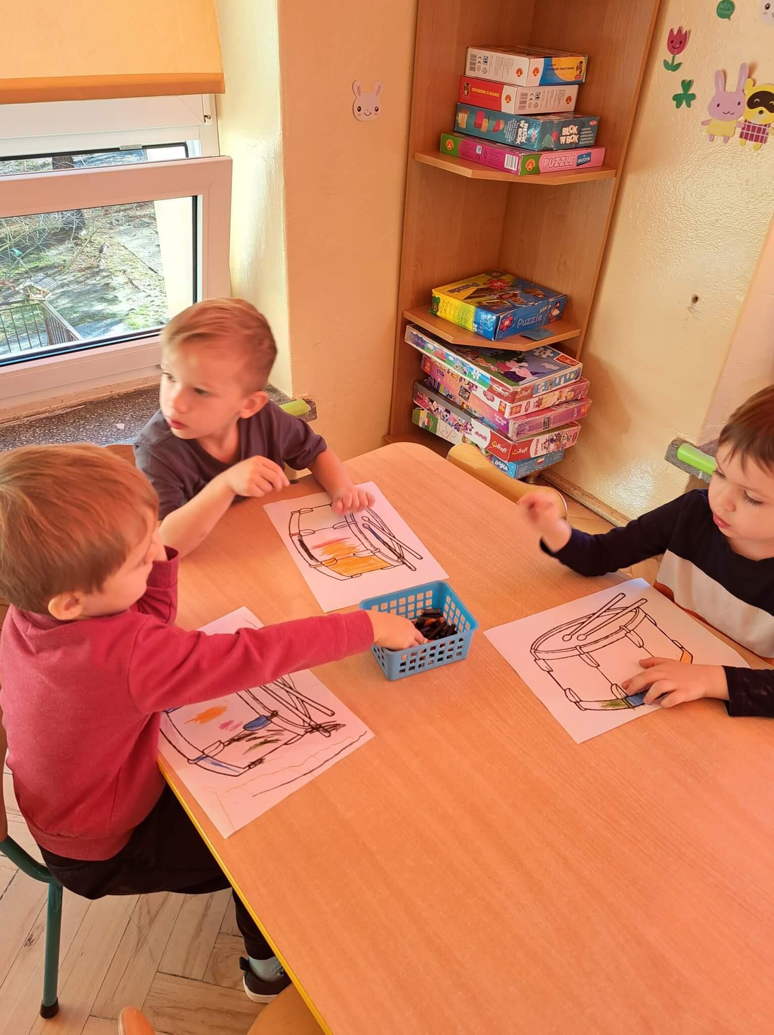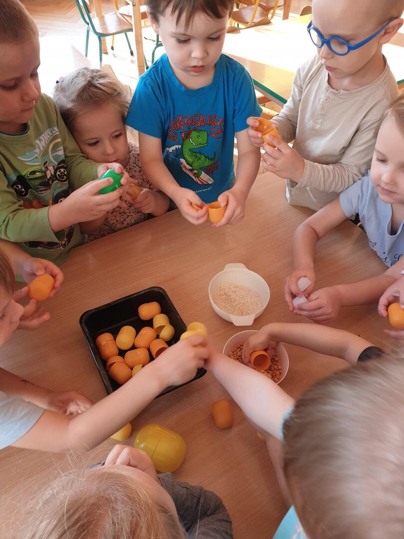 Również aktywnie słuchaliśmy muzyki, ilustrując ją ruchem. W zabawach plastycznych rozwijaliśmy wyobraźnię dźwiękową. Współpracowaliśmy z kolegami, zwracając uwagę na różnice w odczuwaniu bodźców i dbając o komfort drugiej osoby podczas zabawy. Zdajemy sobie sprawę z tego, że nie wszyscy reagują tak samo na mocny dotyk czy głośny dźwięk, i należy to uszanować.