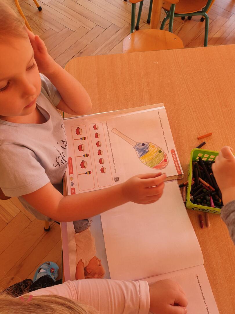 W minionym tygodniu bawiliśmy się w świecie wyobraźni. Po wysłuchaniu opowiadania pt. „Kto widział pieska w kratkę” wyobrażaliśmy sobie, że sami jesteśmy takim niezwykłym zwierzęciem, poszerzaliśmy zasób słownictwa i doskonaliliśmy umiejętność wyrażania uczuć słowami. Rozumiemy już znaczenie pojęć wyobraźnia i marzenie. Próbowaliśmy się zrelaksować i wyciszyć, aby dotrzeć do wewnętrznego świata. Trenowaliśmy uważność, czyli koncentrowanie się na bieżących doznaniach.