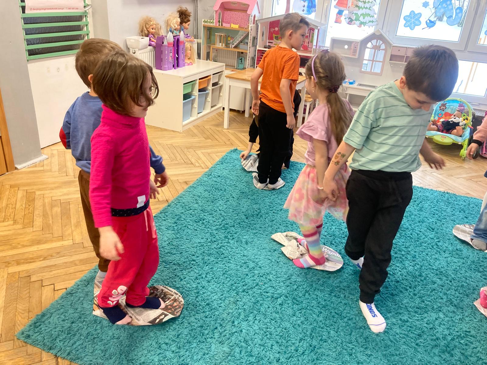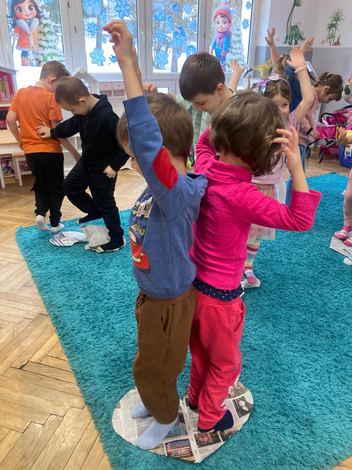 Nie zabrakło wspólnych gier i zabaw ruchowych, które wywołały mnóstwo uśmiechu i pozytywnej energii. Było aktywnie, wesoło i bardzo integrująco – dzieci świetnie współpracowały, kibicowały sobie i okazywały wsparcie.