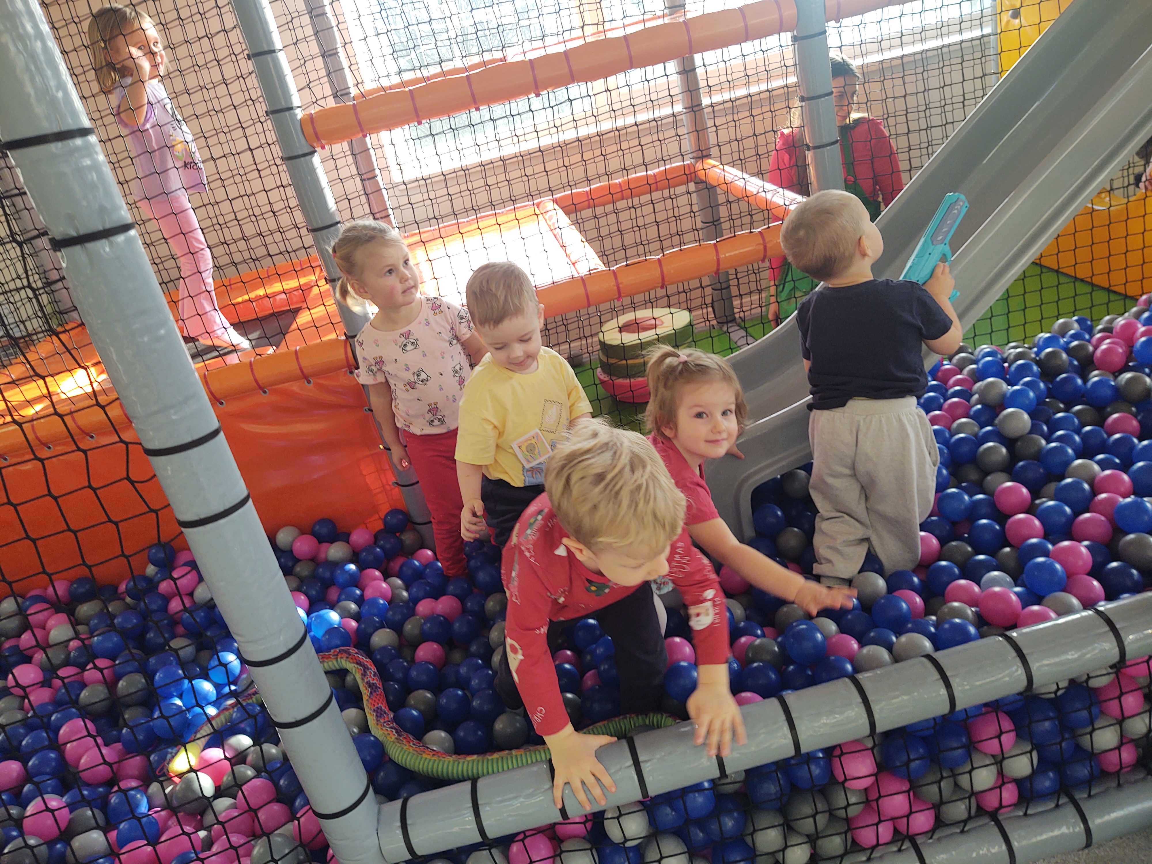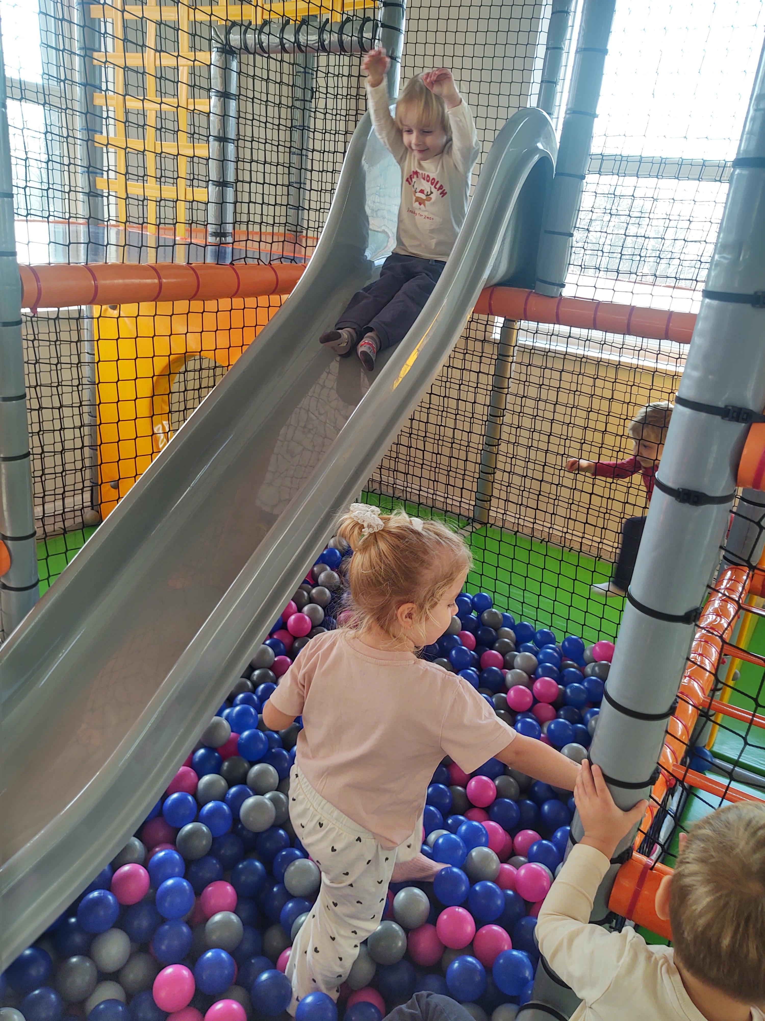 Na zakończenie tej wyjątkowej wyprawy Krasnoludki mogły oddać się swobodnej zabawie w kolorowej bawialni. Zjeżdżalnie, miękkie konstrukcje i kąciki zabaw stały się miejscem beztroskiej radości, integracji i wspólnego przeżywania magicznych chwil.