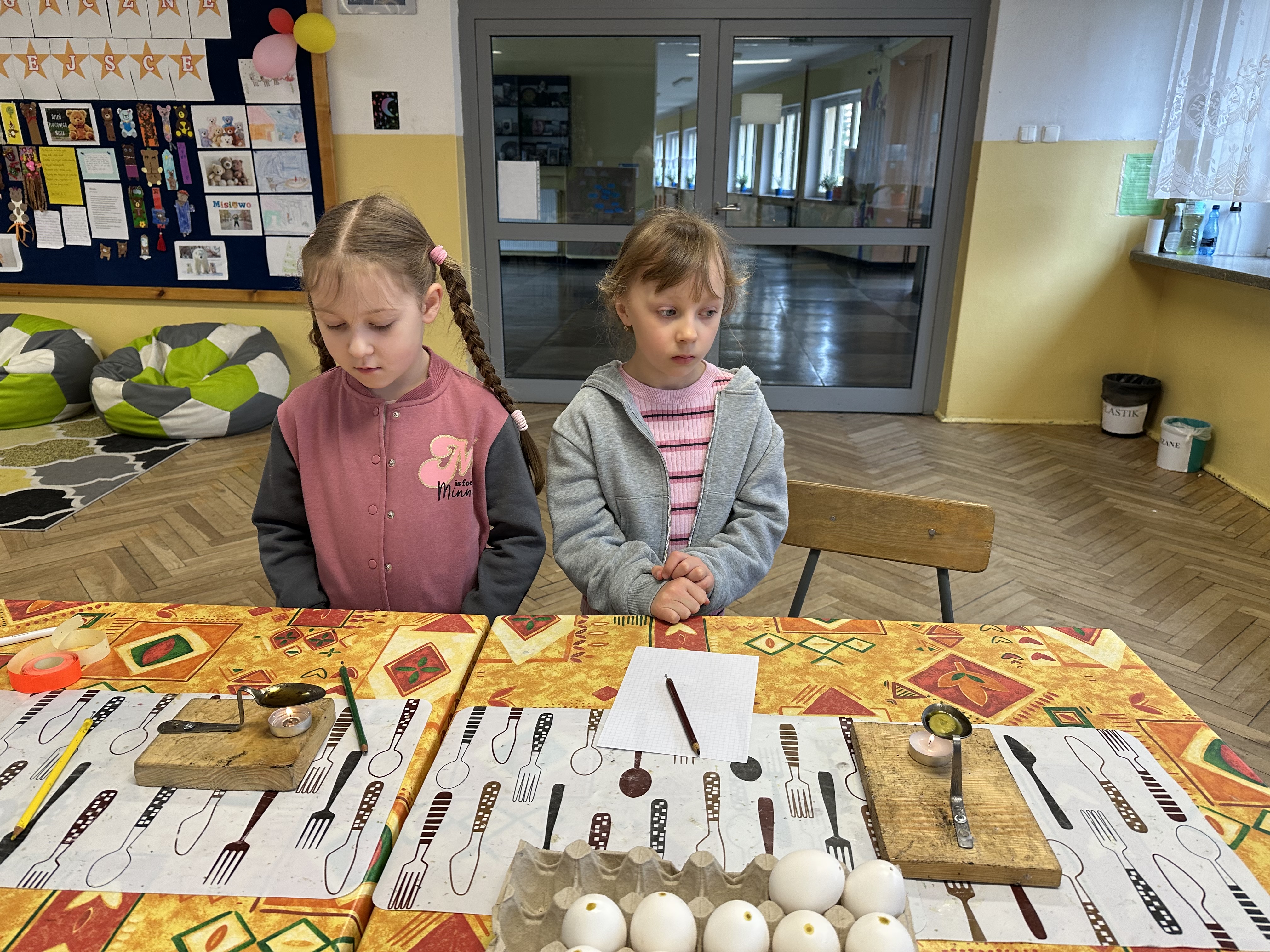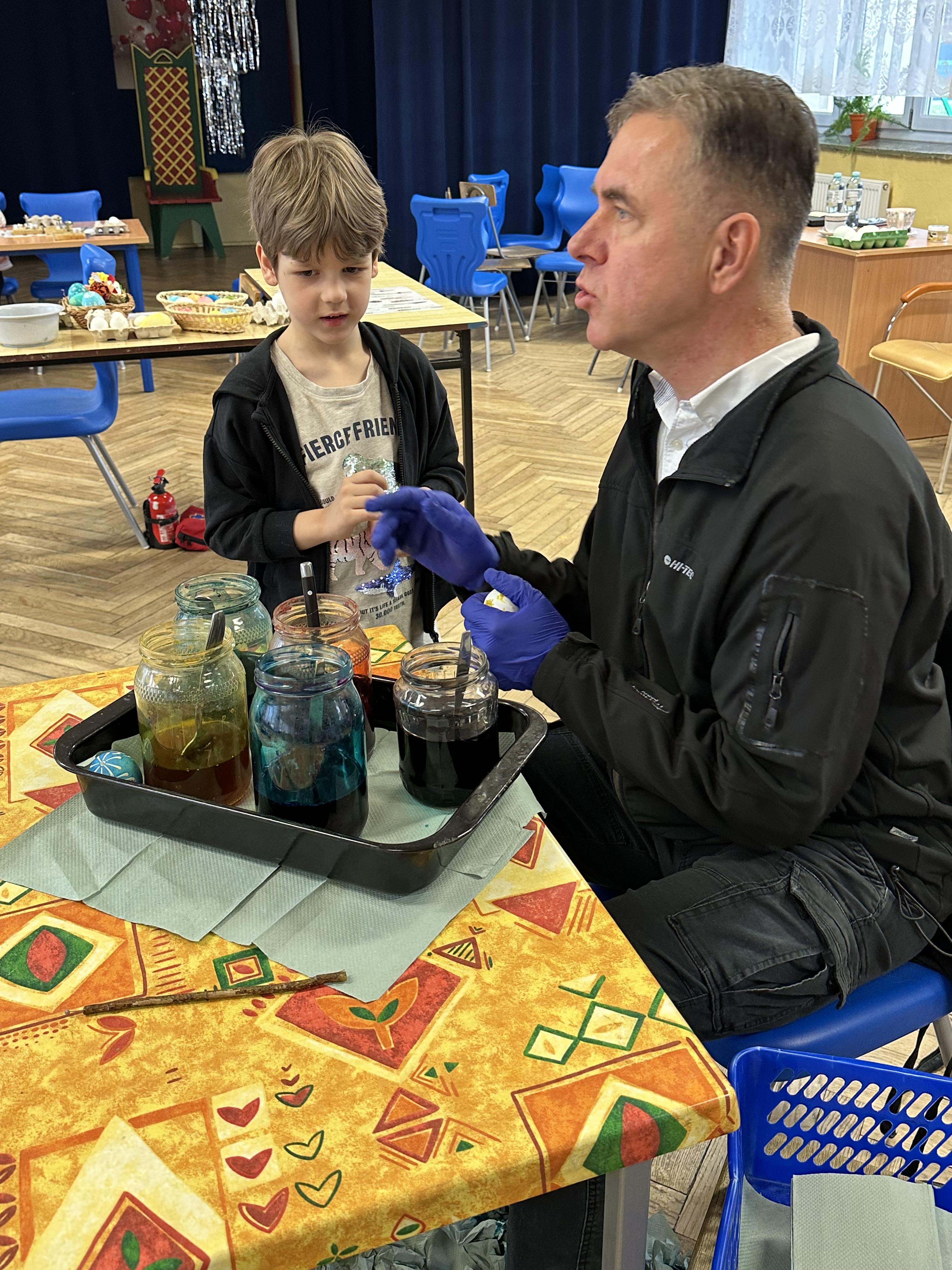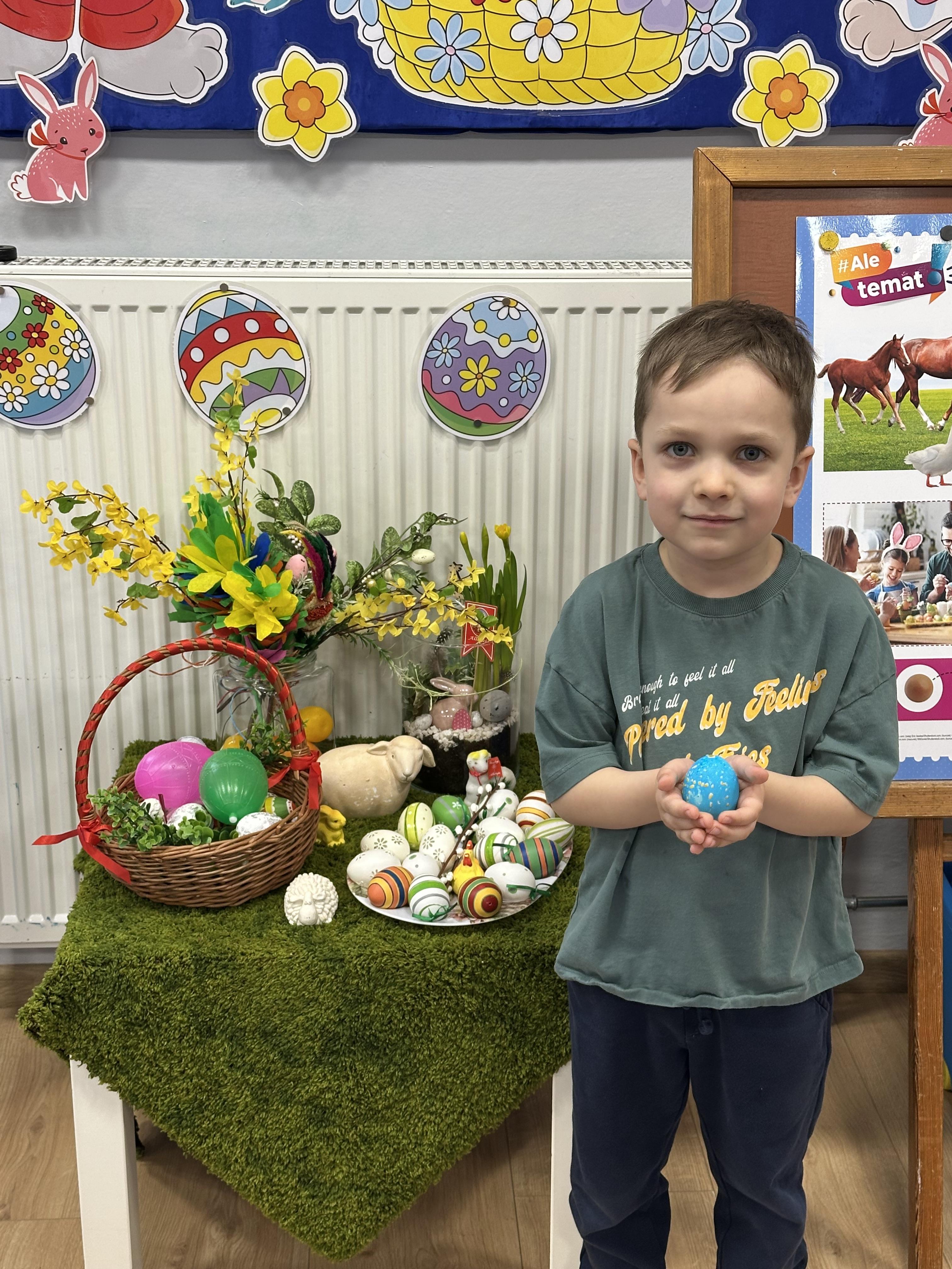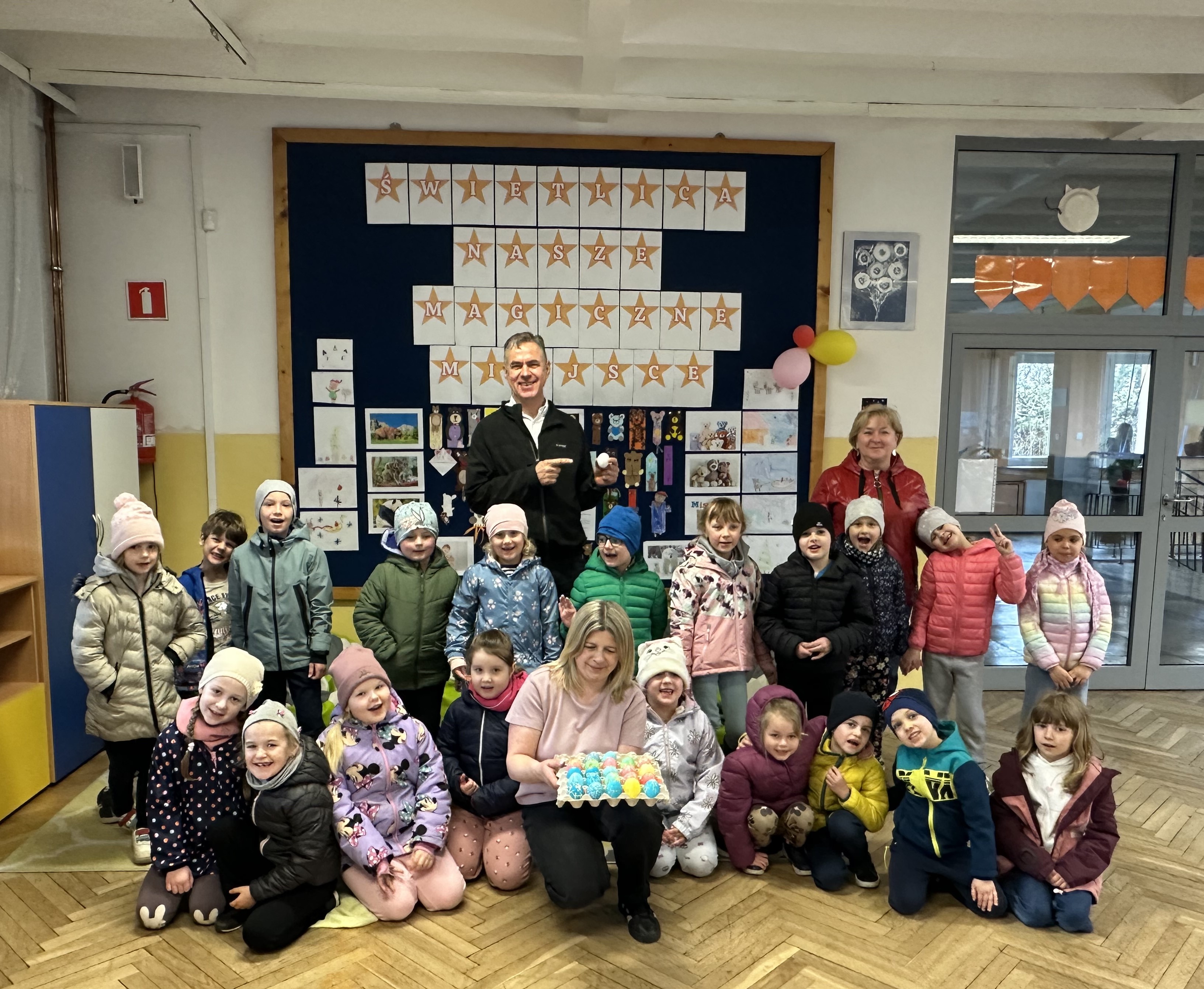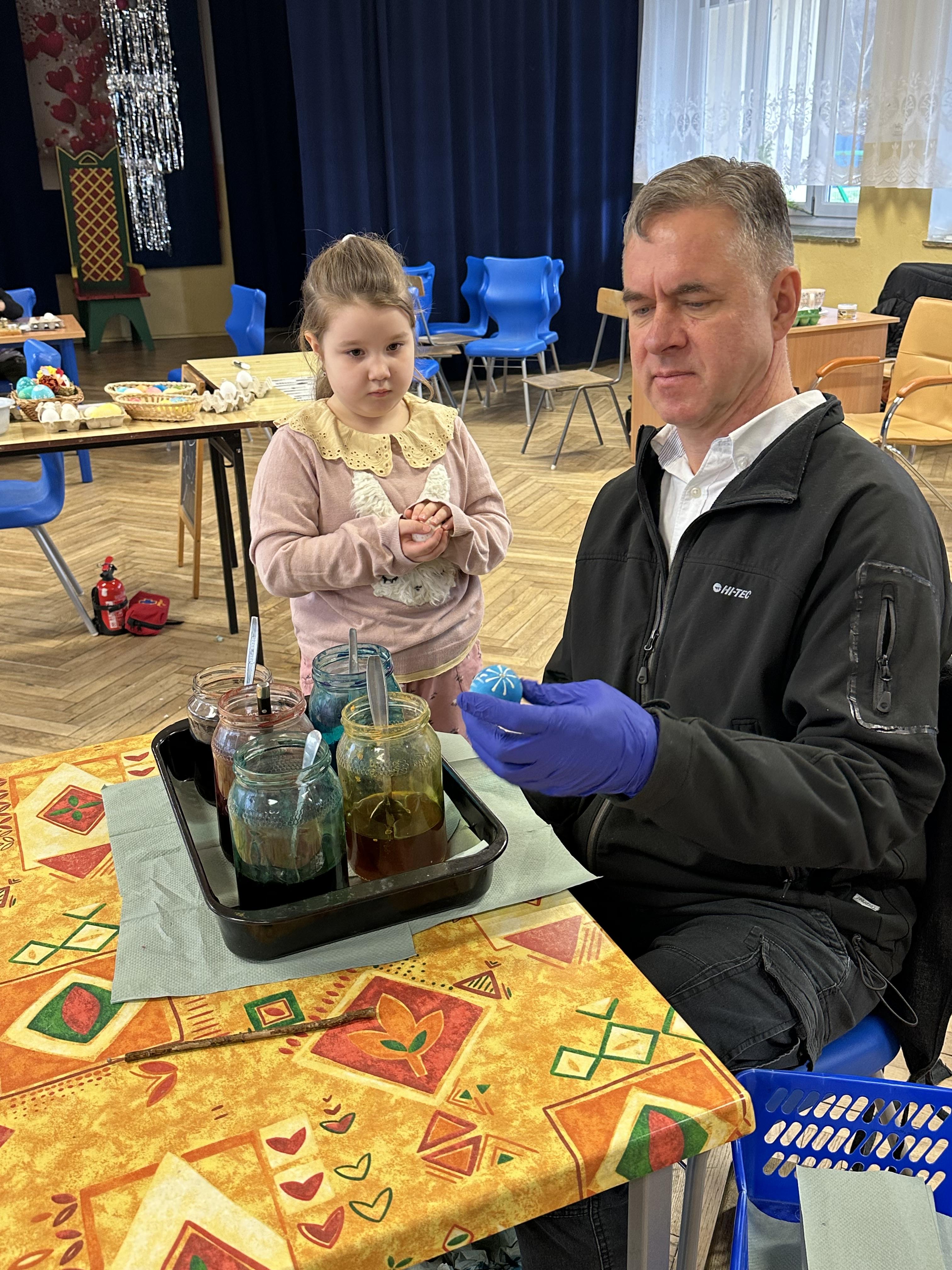 31 marca 2026 roku grupa „Pszczółek” uczestniczyła w warsztatach wielkanocnych zorganizowanych w Szkole Podstawowej nr 6 im. Władysława Broniewskiego w Trzebini pod hasłem „Przygoda z woskiem pszczelim i pisankami”. Celem spotkania było zapoznanie dzieci z techniką szpilkową wykorzystywaną do ozdabiania wydmuszek oraz przybliżenie tradycji wielkanocnych związanych z naszym regionem. Na początku warsztatów osoby prowadzące -pani Ania oraz pan Tytus -przywitały się ze starszakami i nawiązały w rozmowie do zwyczajów wielkanocnych. Następnie dzieci dowiedziały się, na czym polega technika szpilkowa i jak można ją wykorzystać do tworzenia pisanek. Prowadzący zaprezentowali kolejne etapy ozdabiania wydmuszek, zwracając szczególną uwagę na bezpieczeństwo podczas wykonywania prac. Dzieci z dużym zainteresowaniem obserwowały pokaz i chętnie słuchały wskazówek. Po części pokazowej uczestnicy przystąpili do samodzielnej pracy. Każde dziecko wykonało własną, wyjątkową pisankę techniką szpilkową. Warsztaty były dla dzieci nie tylko okazją do rozwijania zdolności manualnych i kreatywności, ale także do poznania wielkanocnych tradycji. Wykonane pisanki dzieci mogły zaprezentować kolegom i koleżankom w przedszkolu, a następnie zabrać do domu. Spotkanie przebiegło w miłej i radosnej atmosferze.