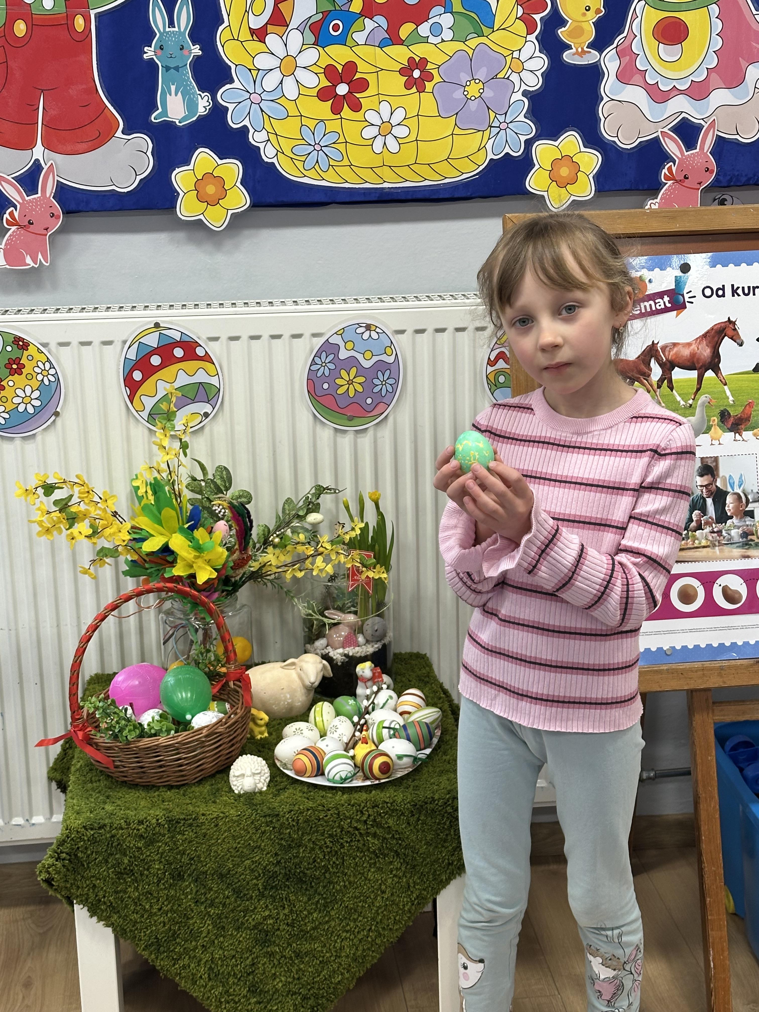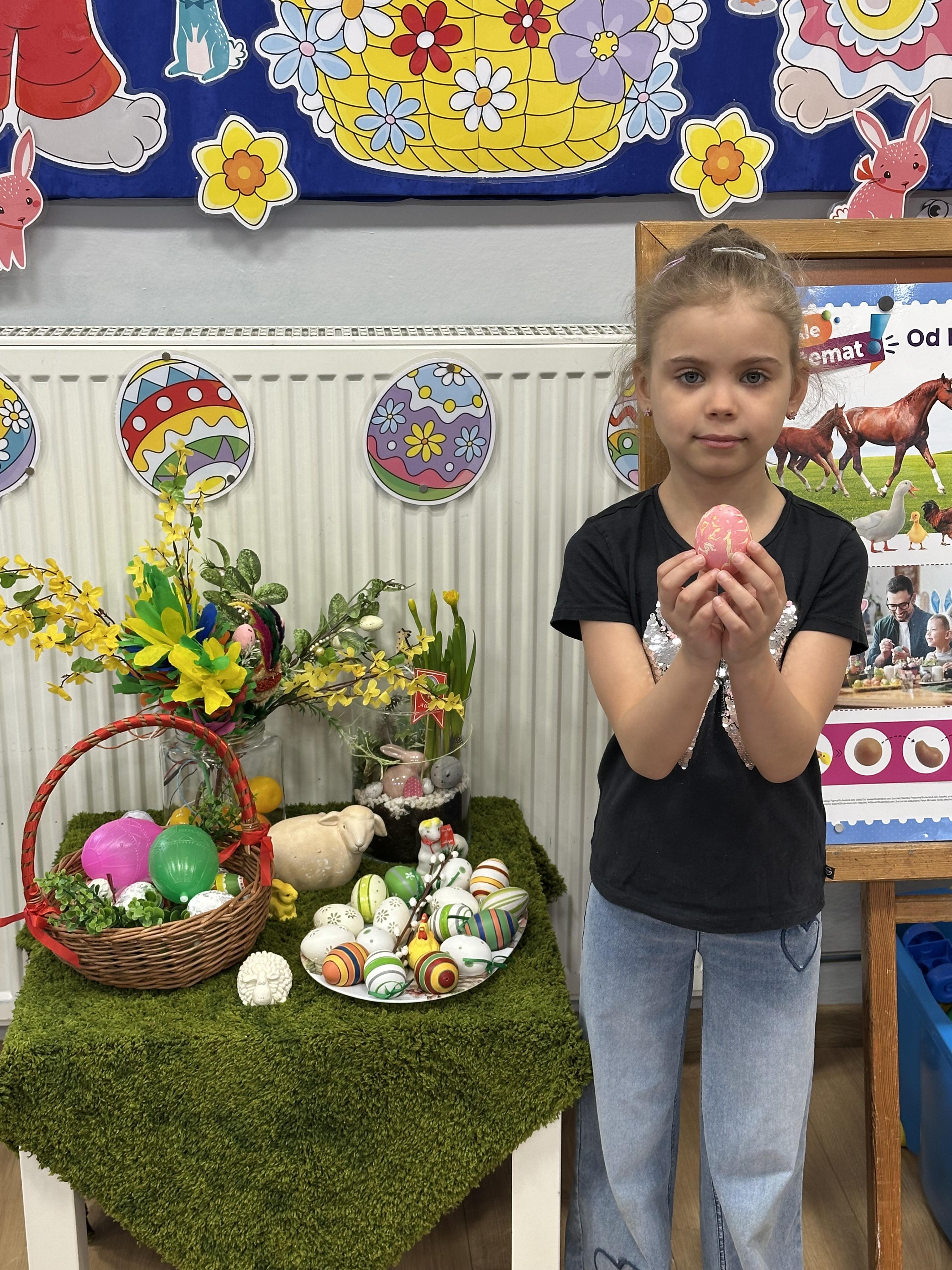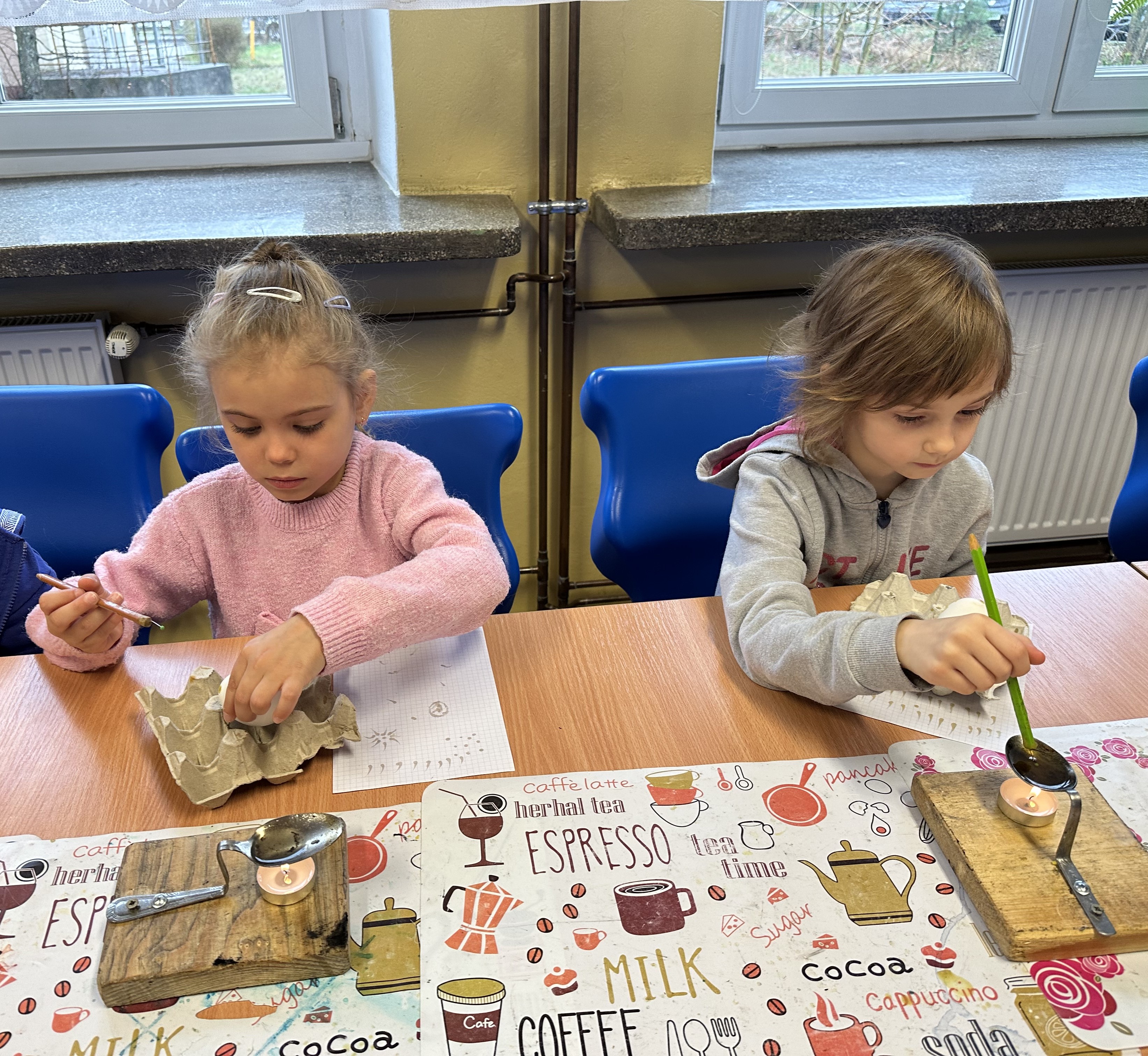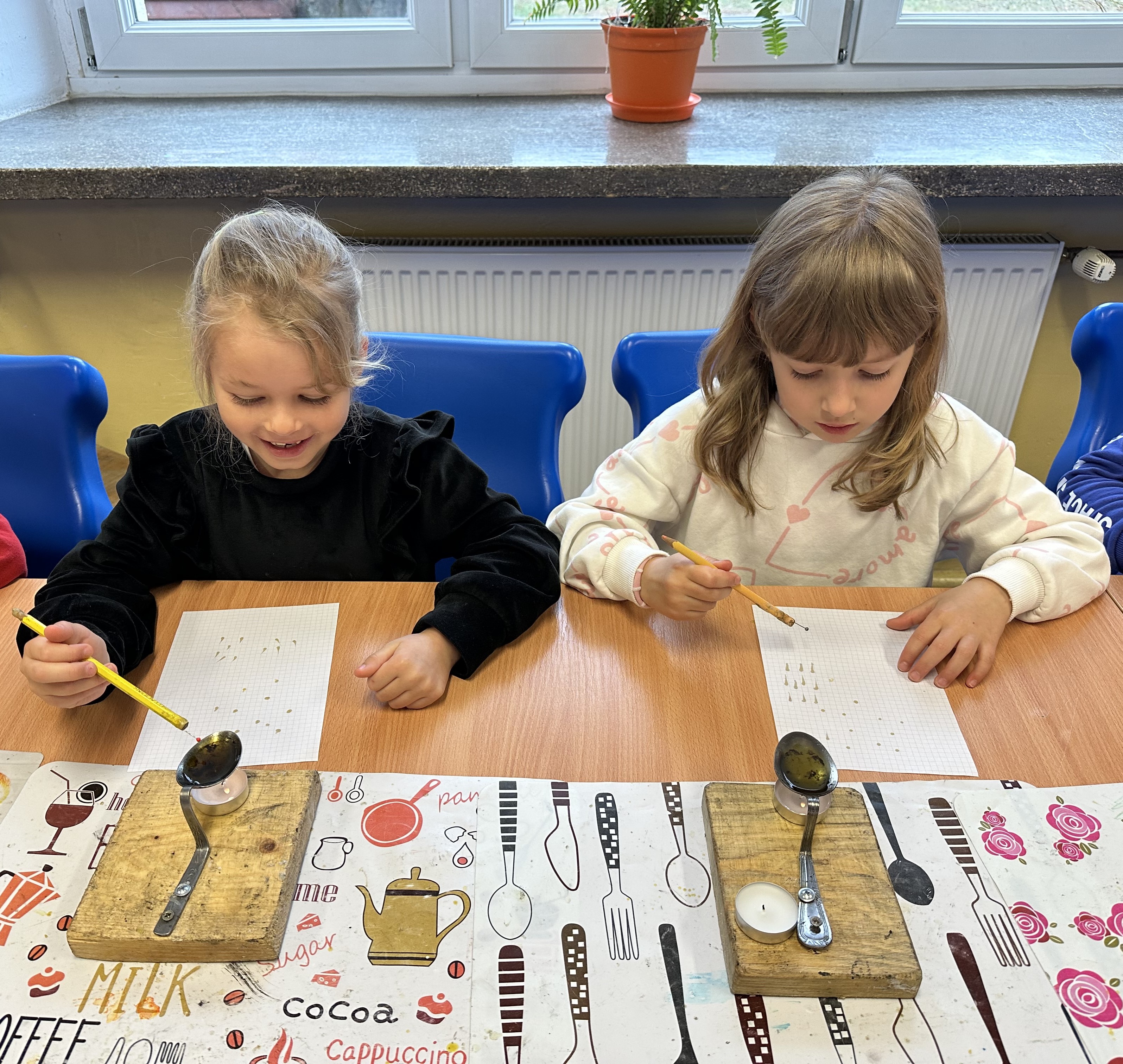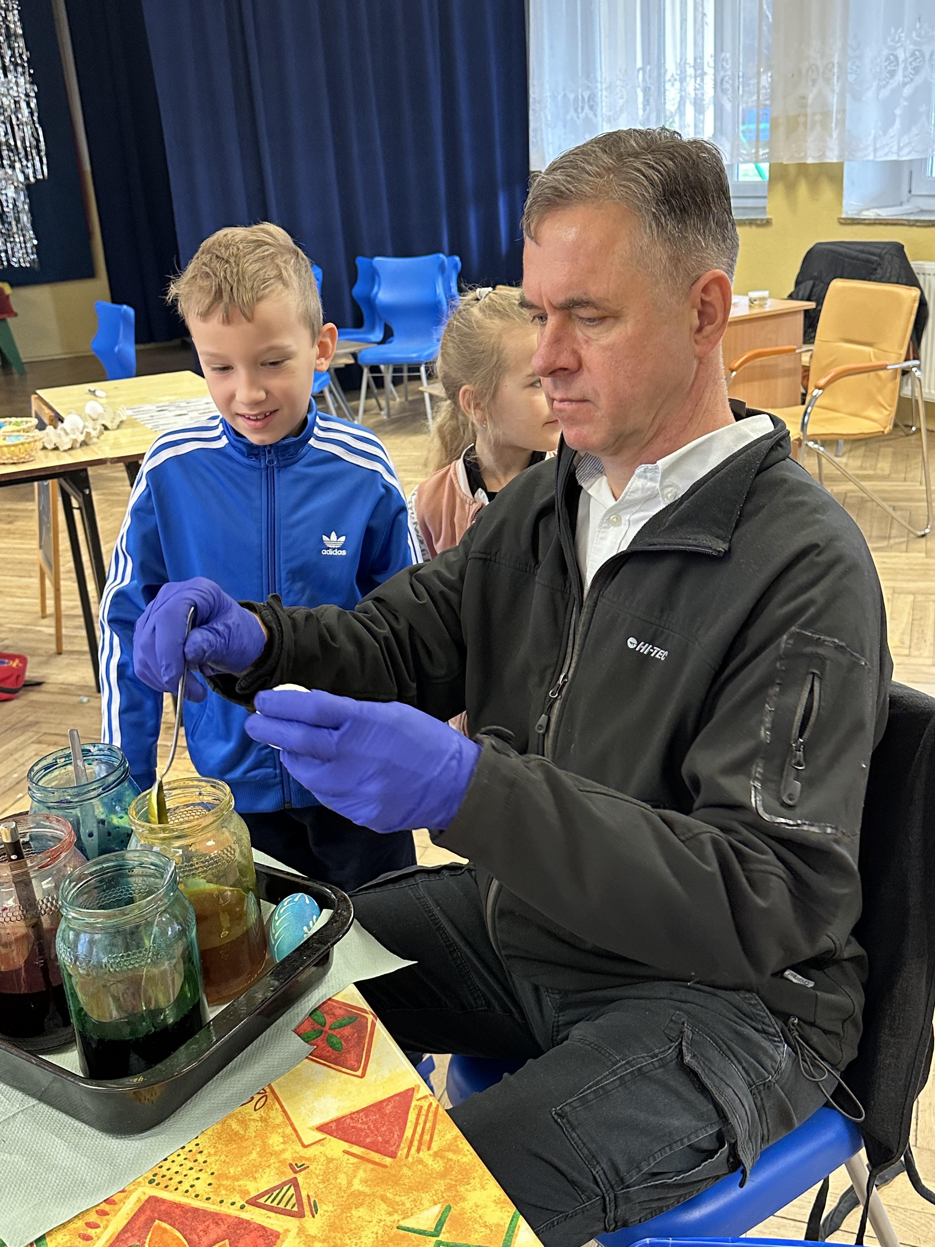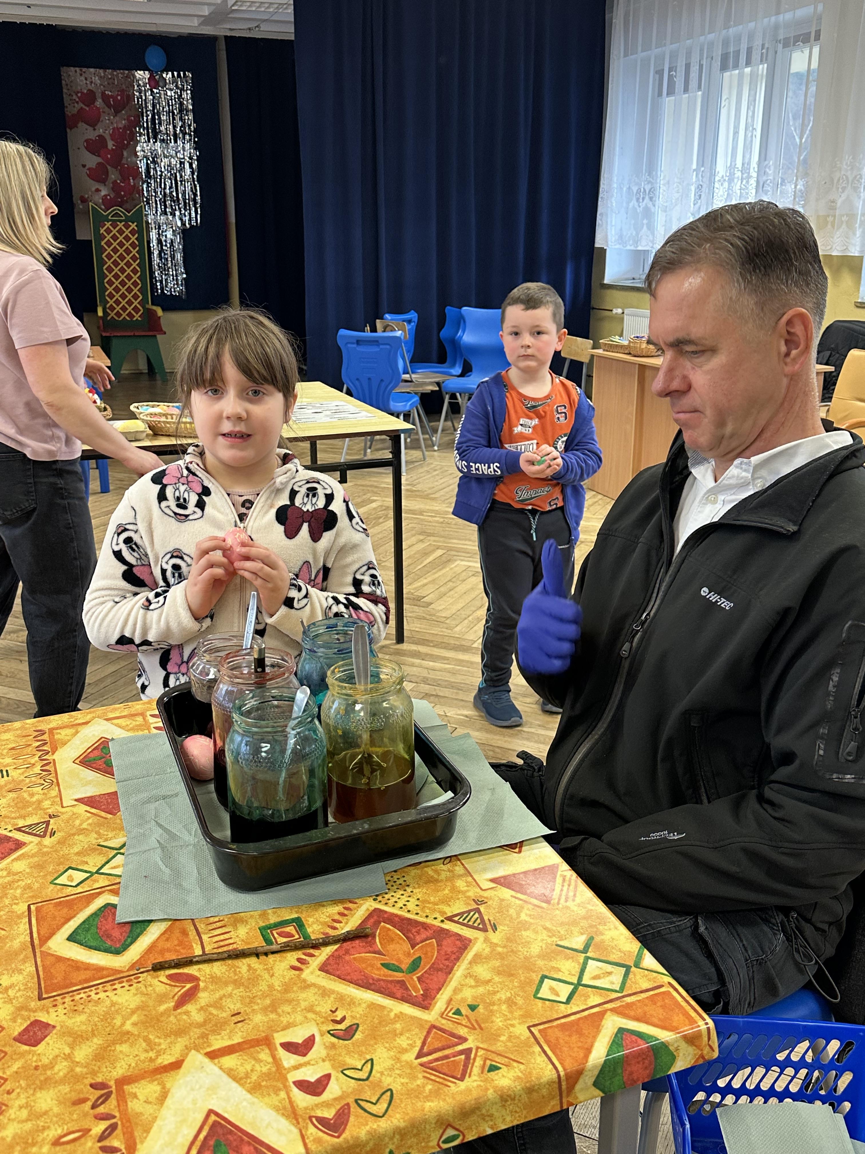31 marca 2026 roku grupa „Pszczółek” uczestniczyła w warsztatach wielkanocnych zorganizowanych w Szkole Podstawowej nr 6 im. Władysława Broniewskiego w Trzebini pod hasłem „Przygoda z woskiem pszczelim i pisankami”. Celem spotkania było zapoznanie dzieci z techniką szpilkową wykorzystywaną do ozdabiania wydmuszek oraz przybliżenie tradycji wielkanocnych związanych z naszym regionem. Na początku warsztatów osoby prowadzące -pani Ania oraz pan Tytus -przywitały się ze starszakami i nawiązały w rozmowie do zwyczajów wielkanocnych. Następnie dzieci dowiedziały się, na czym polega technika szpilkowa i jak można ją wykorzystać do tworzenia pisanek. Prowadzący zaprezentowali kolejne etapy ozdabiania wydmuszek, zwracając szczególną uwagę na bezpieczeństwo podczas wykonywania prac. Dzieci z dużym zainteresowaniem obserwowały pokaz i chętnie słuchały wskazówek. Po części pokazowej uczestnicy przystąpili do samodzielnej pracy. Każde dziecko wykonało własną, wyjątkową pisankę techniką szpilkową. Warsztaty były dla dzieci nie tylko okazją do rozwijania zdolności manualnych i kreatywności, ale także do poznania wielkanocnych tradycji. Wykonane pisanki dzieci mogły zaprezentować kolegom i koleżankom w przedszkolu, a następnie zabrać do domu. Spotkanie przebiegło w miłej i radosnej atmosferze.