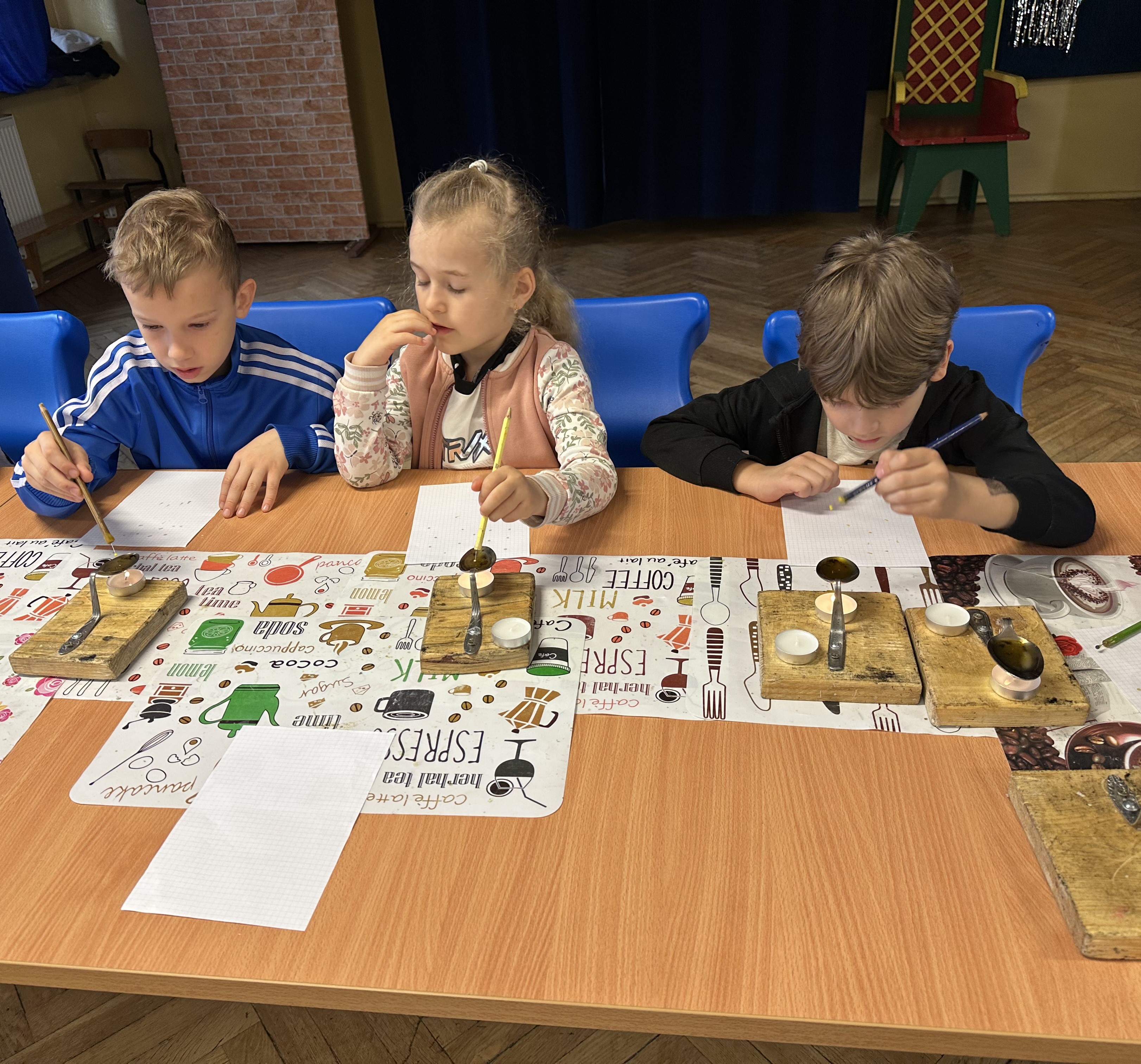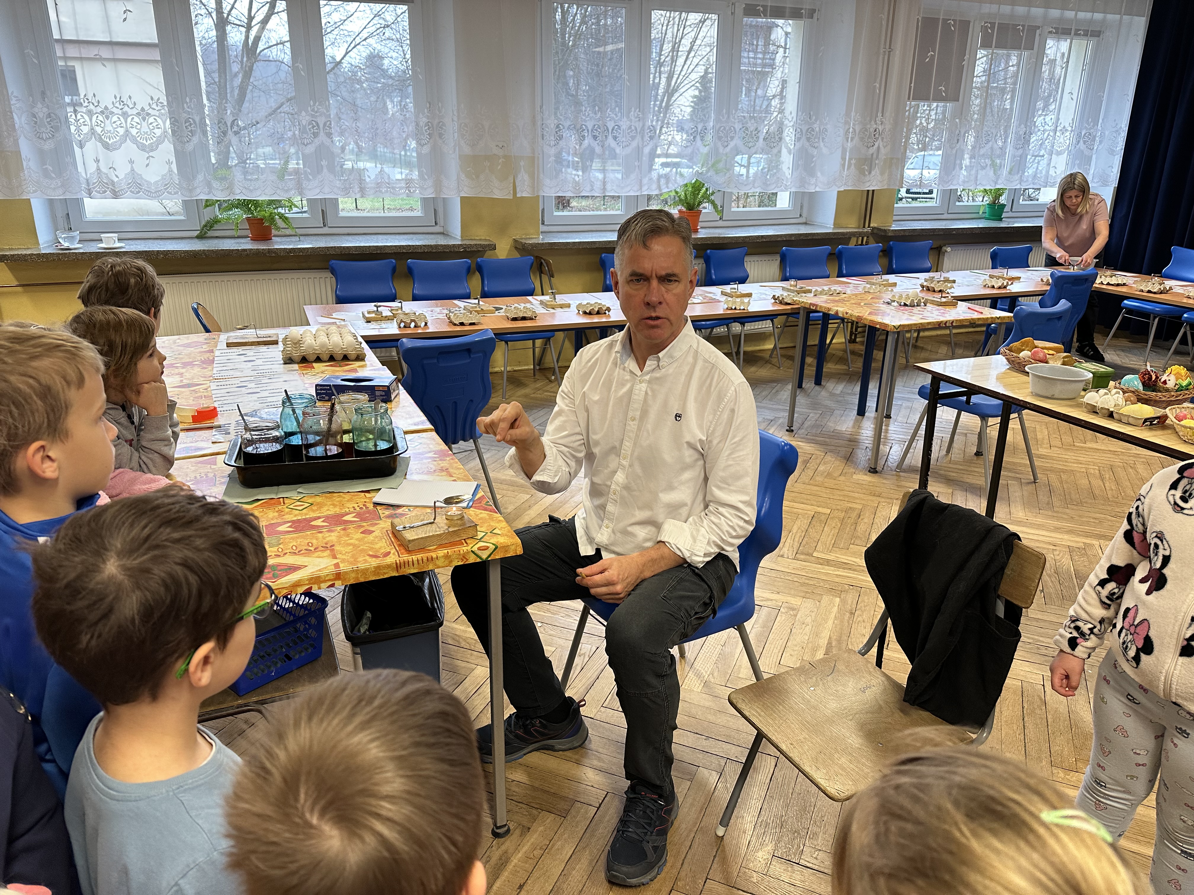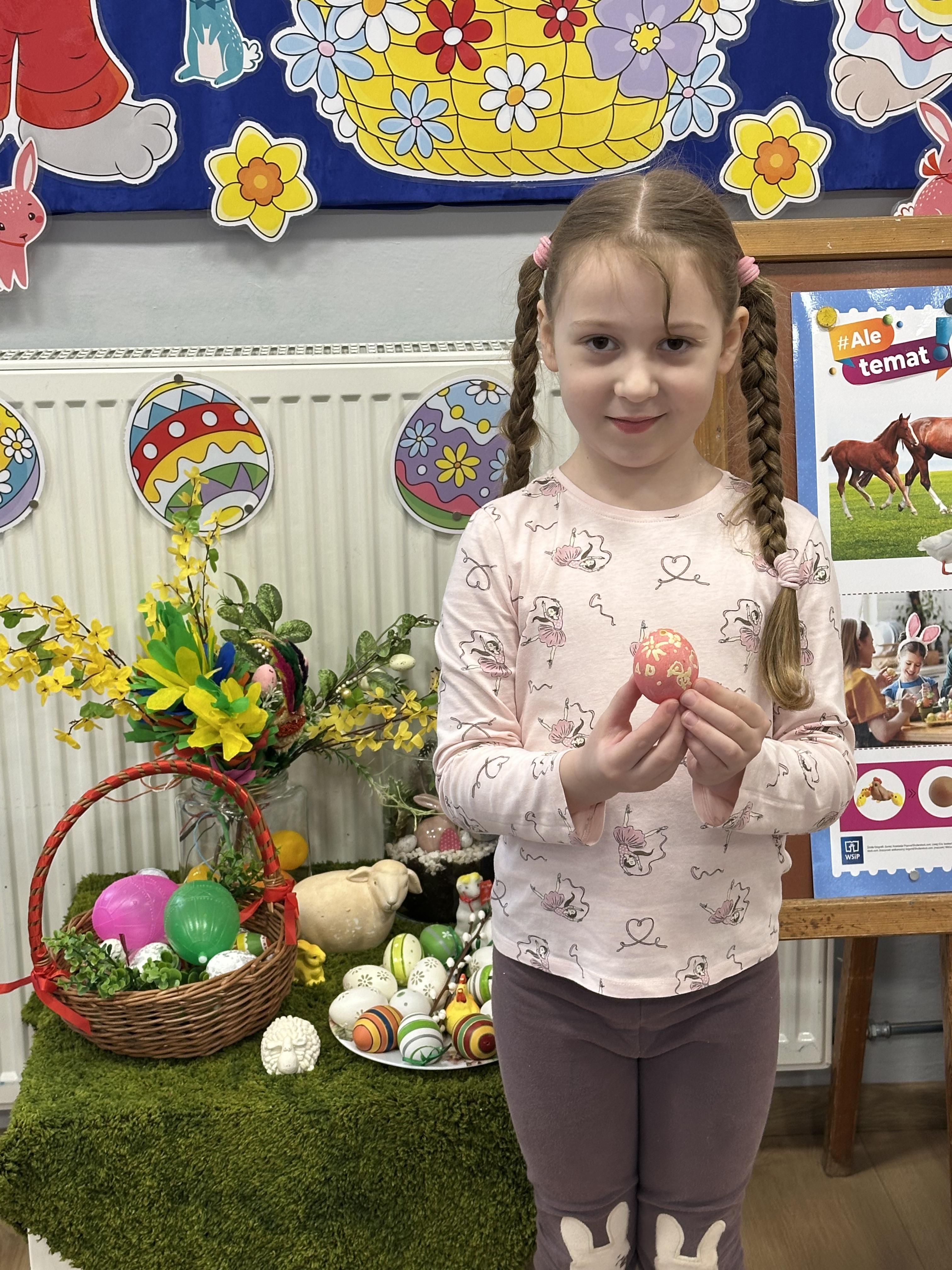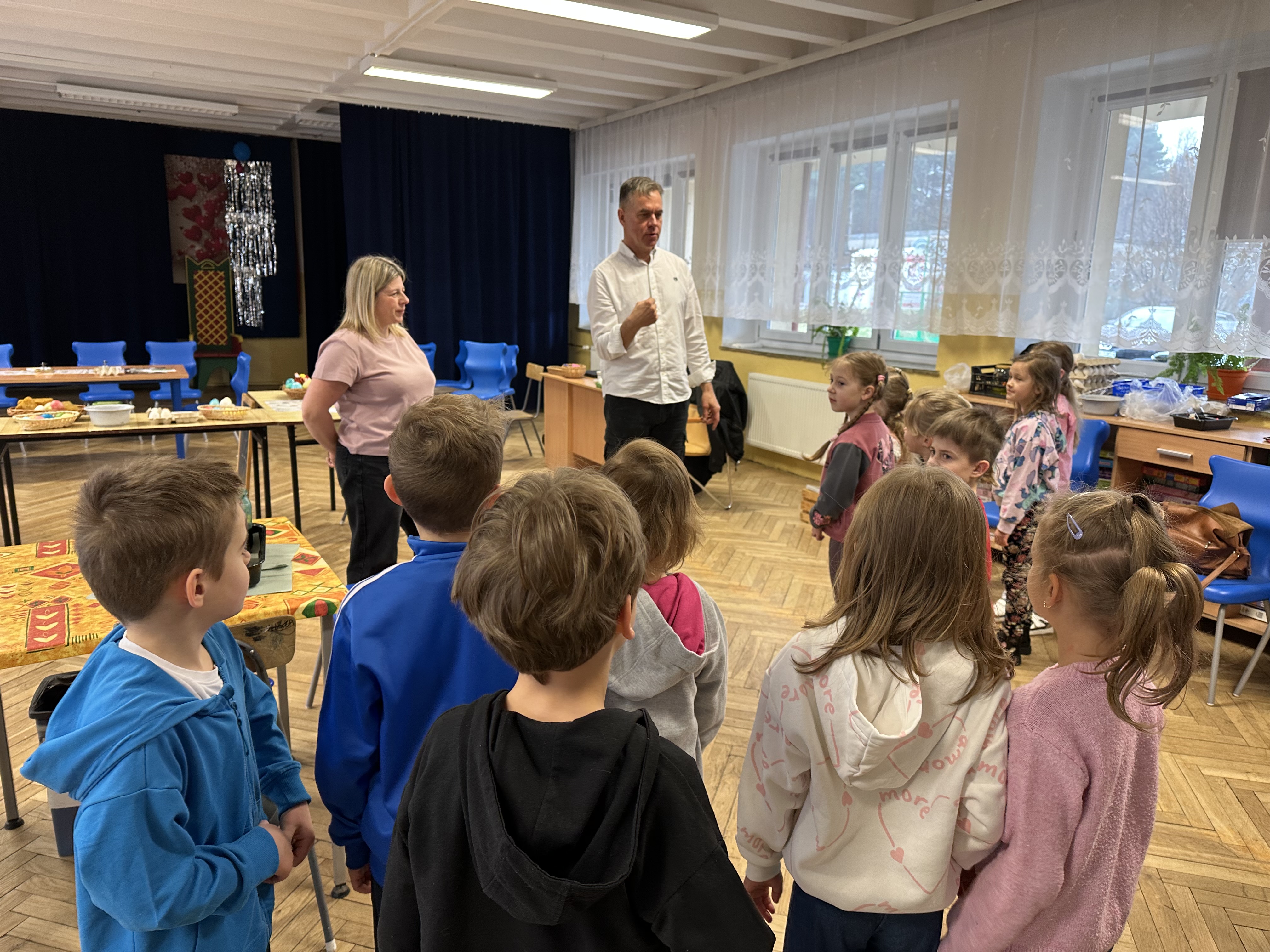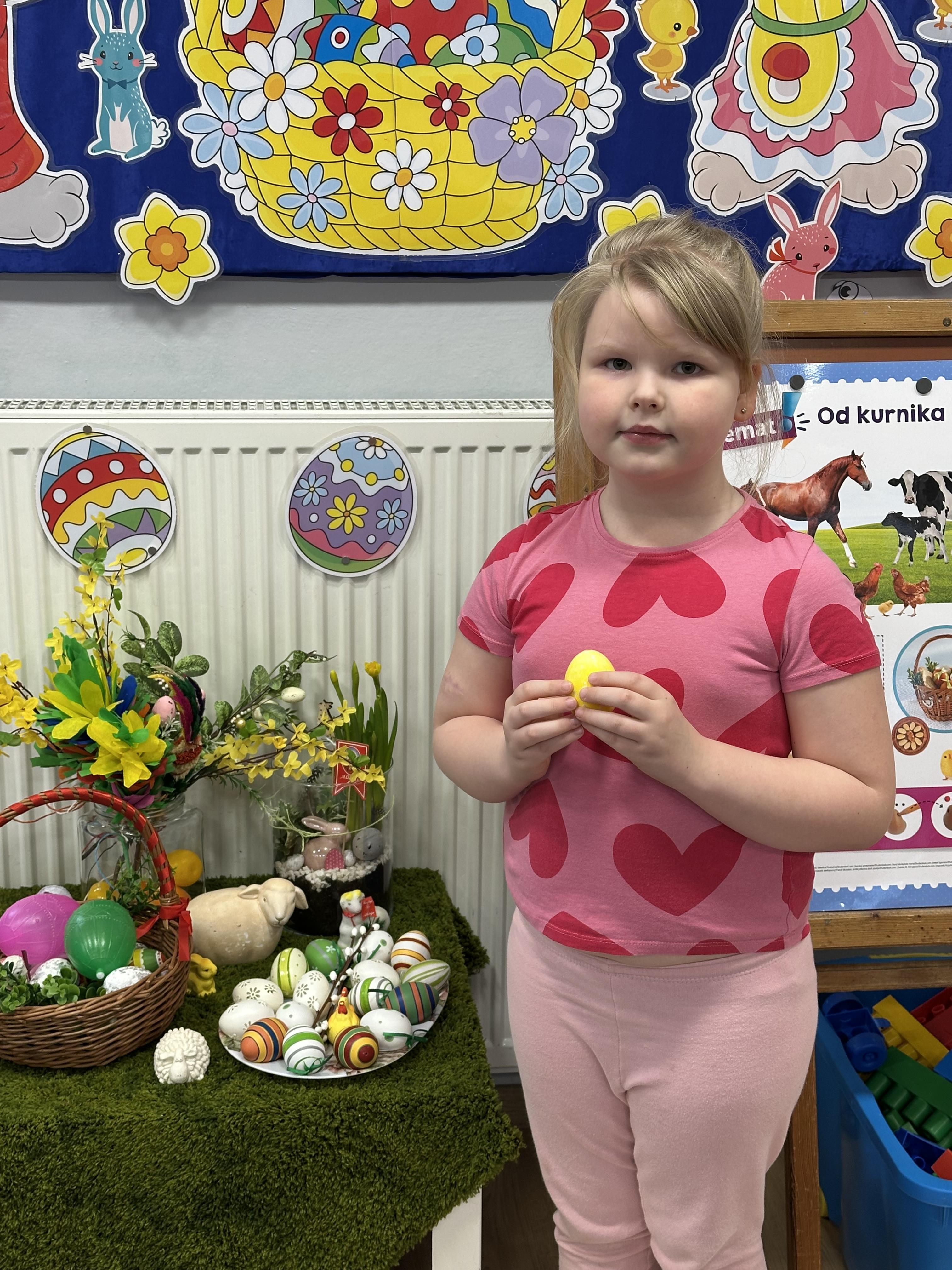 31 marca 2026 roku grupa „Pszczółek” uczestniczyła w warsztatach wielkanocnych zorganizowanych w Szkole Podstawowej nr 6 im. Władysława Broniewskiego w Trzebini pod hasłem „Przygoda z woskiem pszczelim i pisankami”. Celem spotkania było zapoznanie dzieci z techniką szpilkową wykorzystywaną do ozdabiania wydmuszek oraz przybliżenie tradycji wielkanocnych związanych z naszym regionem. Na początku warsztatów osoby prowadzące -pani Ania oraz pan Tytus -przywitały się ze starszakami i nawiązały w rozmowie do zwyczajów wielkanocnych. Następnie dzieci dowiedziały się, na czym polega technika szpilkowa i jak można ją wykorzystać do tworzenia pisanek. Prowadzący zaprezentowali kolejne etapy ozdabiania wydmuszek, zwracając szczególną uwagę na bezpieczeństwo podczas wykonywania prac. Dzieci z dużym zainteresowaniem obserwowały pokaz i chętnie słuchały wskazówek. Po części pokazowej uczestnicy przystąpili do samodzielnej pracy. Każde dziecko wykonało własną, wyjątkową pisankę techniką szpilkową. Warsztaty były dla dzieci nie tylko okazją do rozwijania zdolności manualnych i kreatywności, ale także do poznania wielkanocnych tradycji. Wykonane pisanki dzieci mogły zaprezentować kolegom i koleżankom w przedszkolu, a następnie zabrać do domu. Spotkanie przebiegło w miłej i radosnej atmosferze.