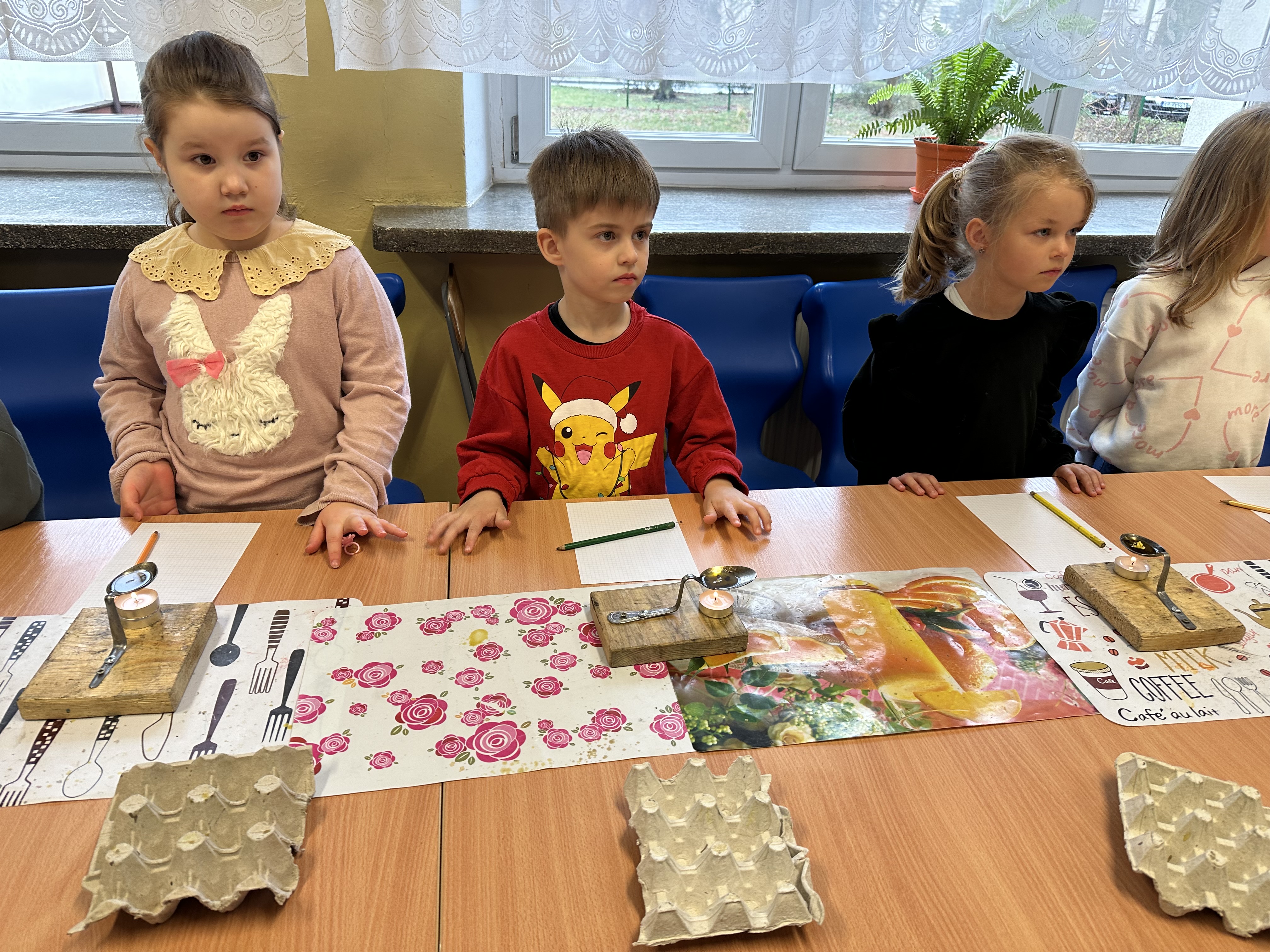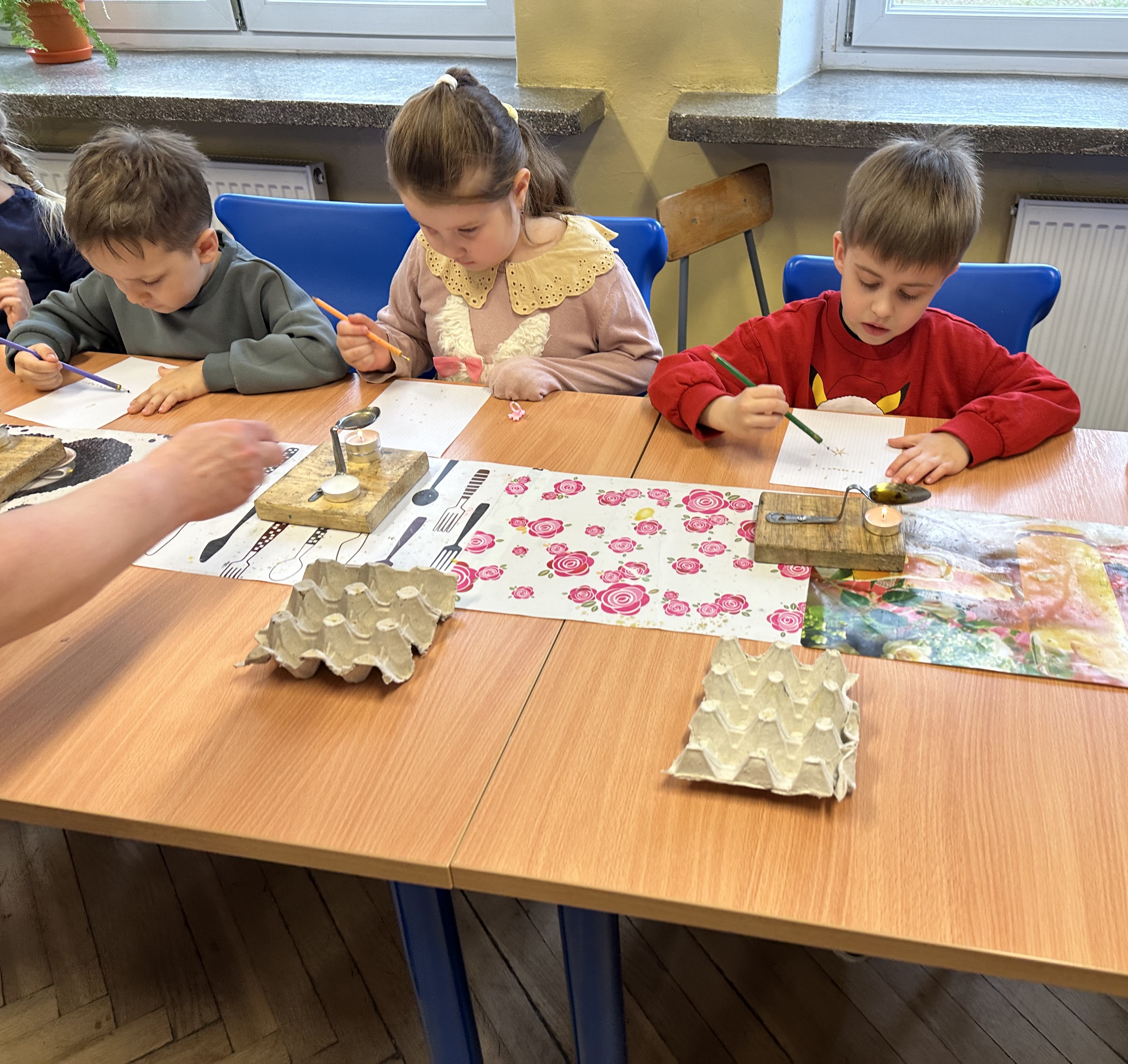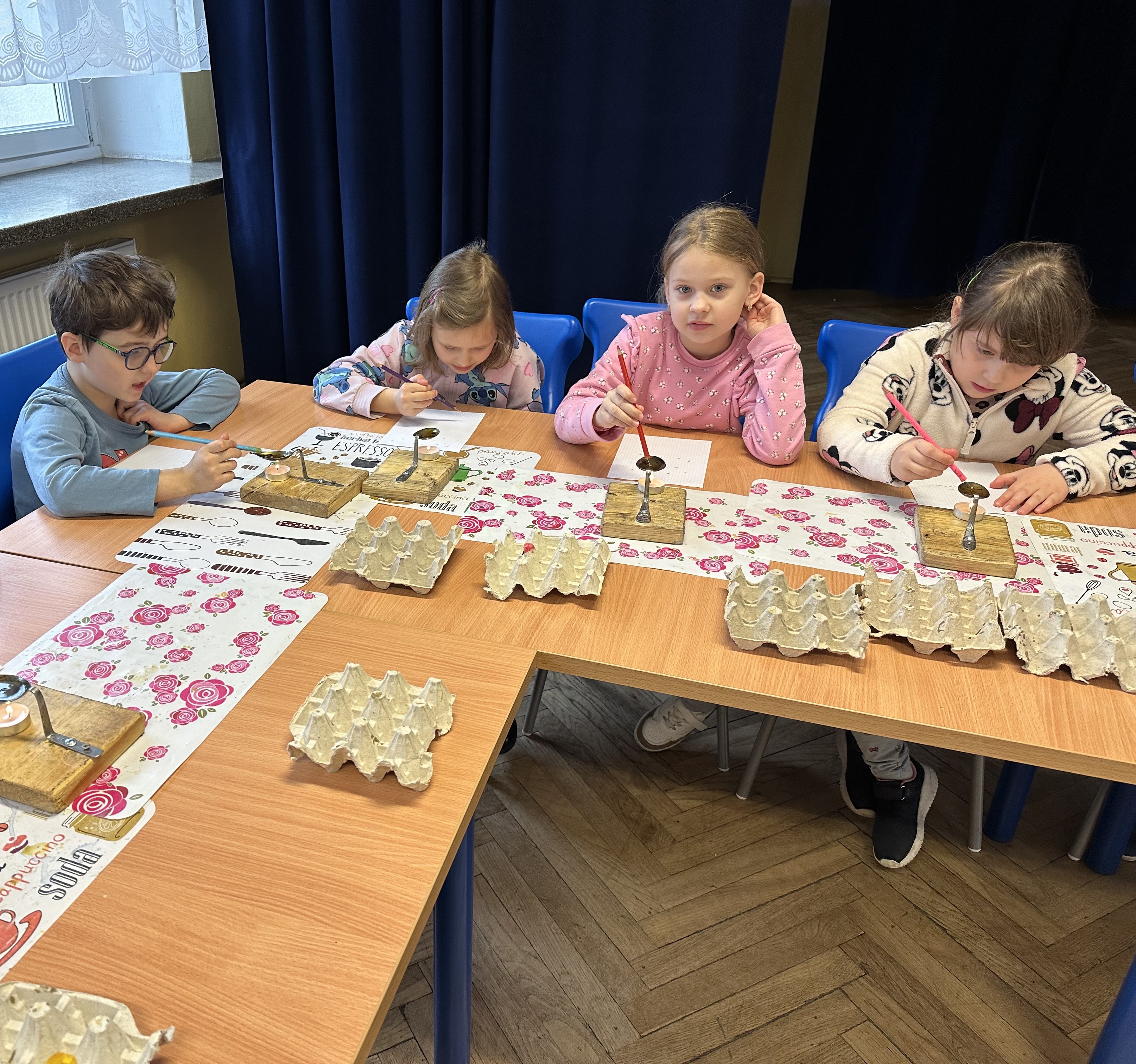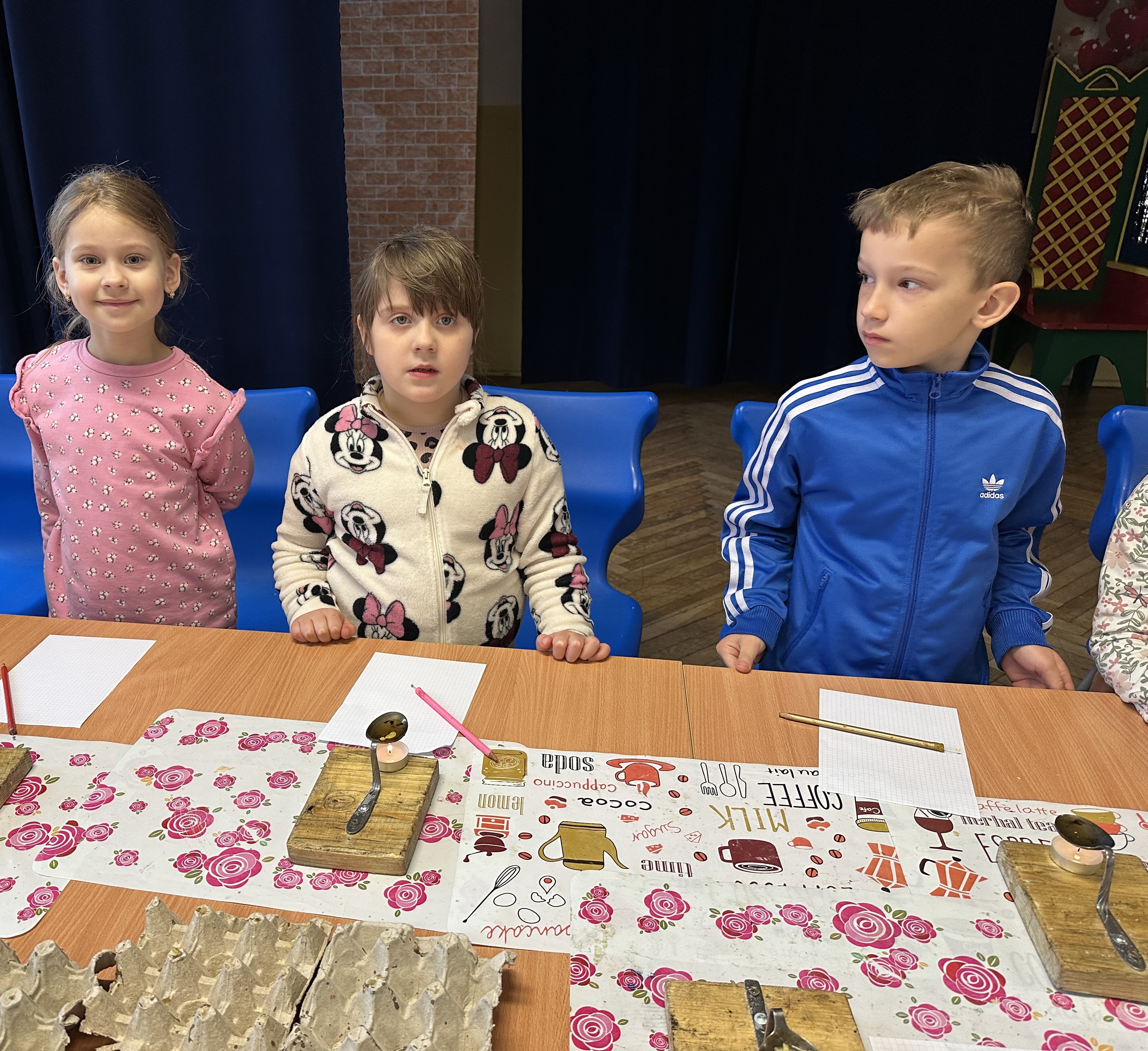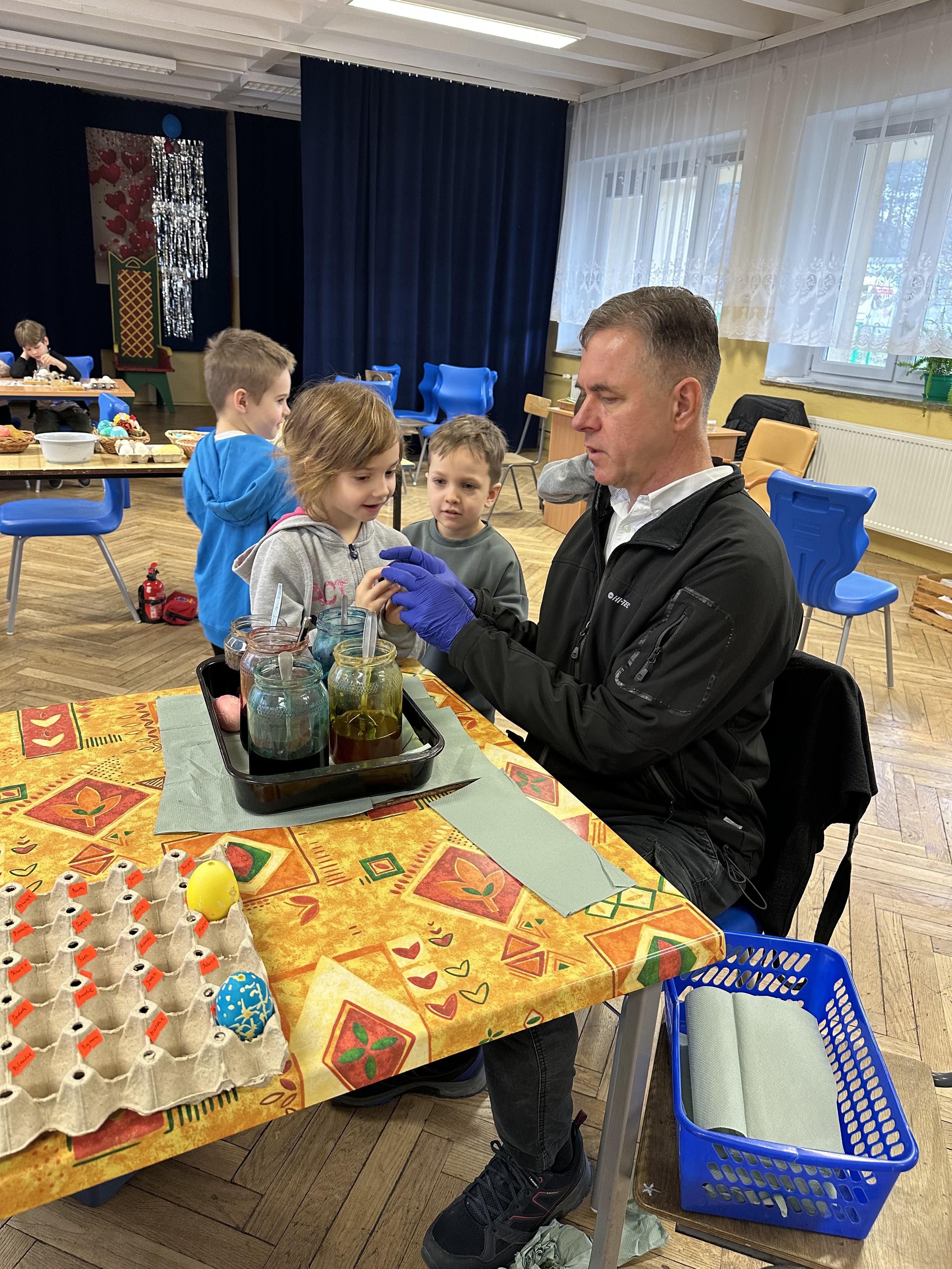 31 marca 2026 roku grupa „Pszczółek” uczestniczyła w warsztatach wielkanocnych zorganizowanych w Szkole Podstawowej nr 6 im. Władysława Broniewskiego w Trzebini pod hasłem „Przygoda z woskiem pszczelim i pisankami”. Celem spotkania było zapoznanie dzieci z techniką szpilkową wykorzystywaną do ozdabiania wydmuszek oraz przybliżenie tradycji wielkanocnych związanych z naszym regionem. Na początku warsztatów osoby prowadzące -pani Ania oraz pan Tytus -przywitały się ze starszakami i nawiązały w rozmowie do zwyczajów wielkanocnych. Następnie dzieci dowiedziały się, na czym polega technika szpilkowa i jak można ją wykorzystać do tworzenia pisanek. Prowadzący zaprezentowali kolejne etapy ozdabiania wydmuszek, zwracając szczególną uwagę na bezpieczeństwo podczas wykonywania prac. Dzieci z dużym zainteresowaniem obserwowały pokaz i chętnie słuchały wskazówek. Po części pokazowej uczestnicy przystąpili do samodzielnej pracy. Każde dziecko wykonało własną, wyjątkową pisankę techniką szpilkową. Warsztaty były dla dzieci nie tylko okazją do rozwijania zdolności manualnych i kreatywności, ale także do poznania wielkanocnych tradycji. Wykonane pisanki dzieci mogły zaprezentować kolegom i koleżankom w przedszkolu, a następnie zabrać do domu. Spotkanie przebiegło w miłej i radosnej atmosferze.