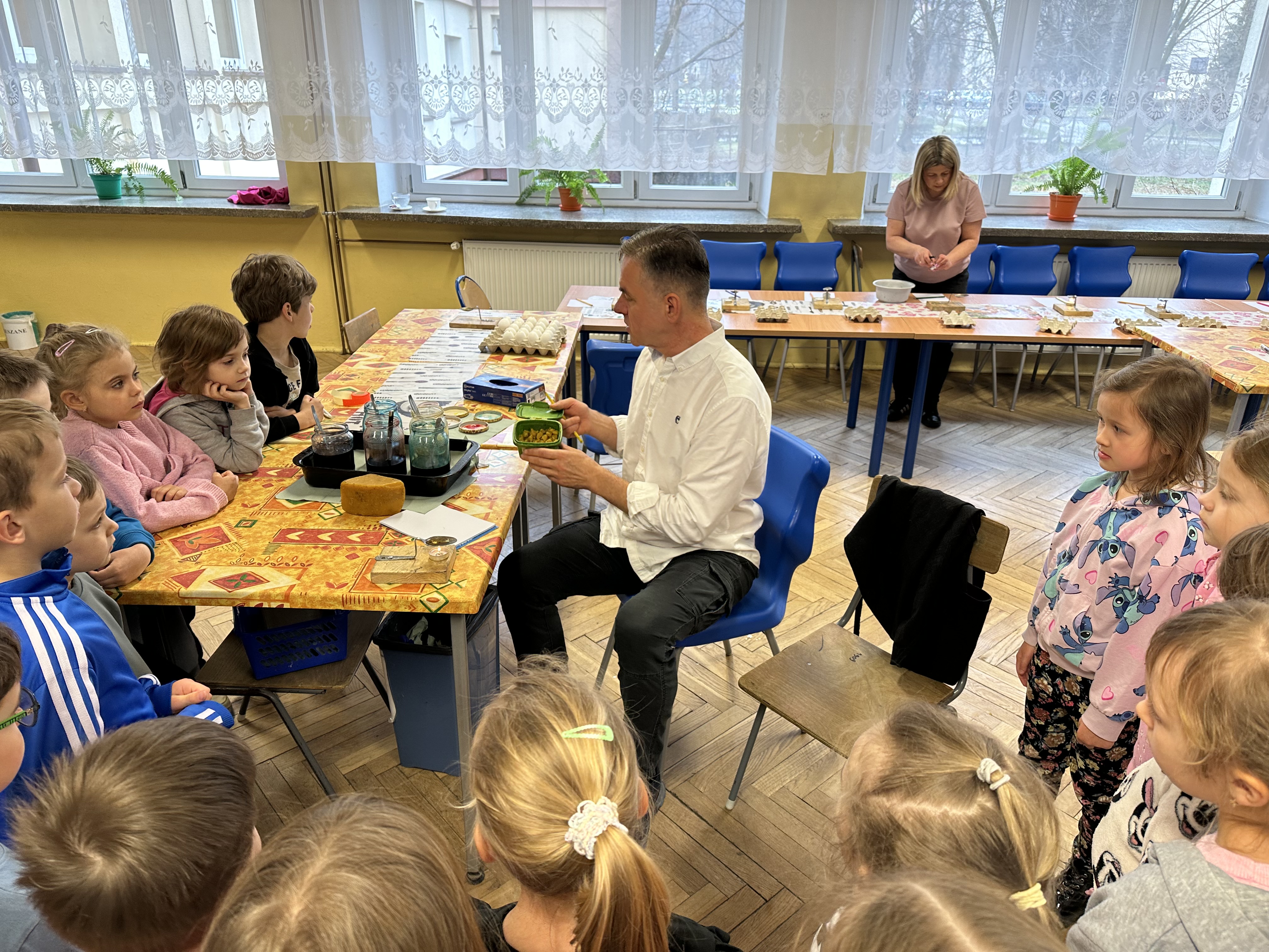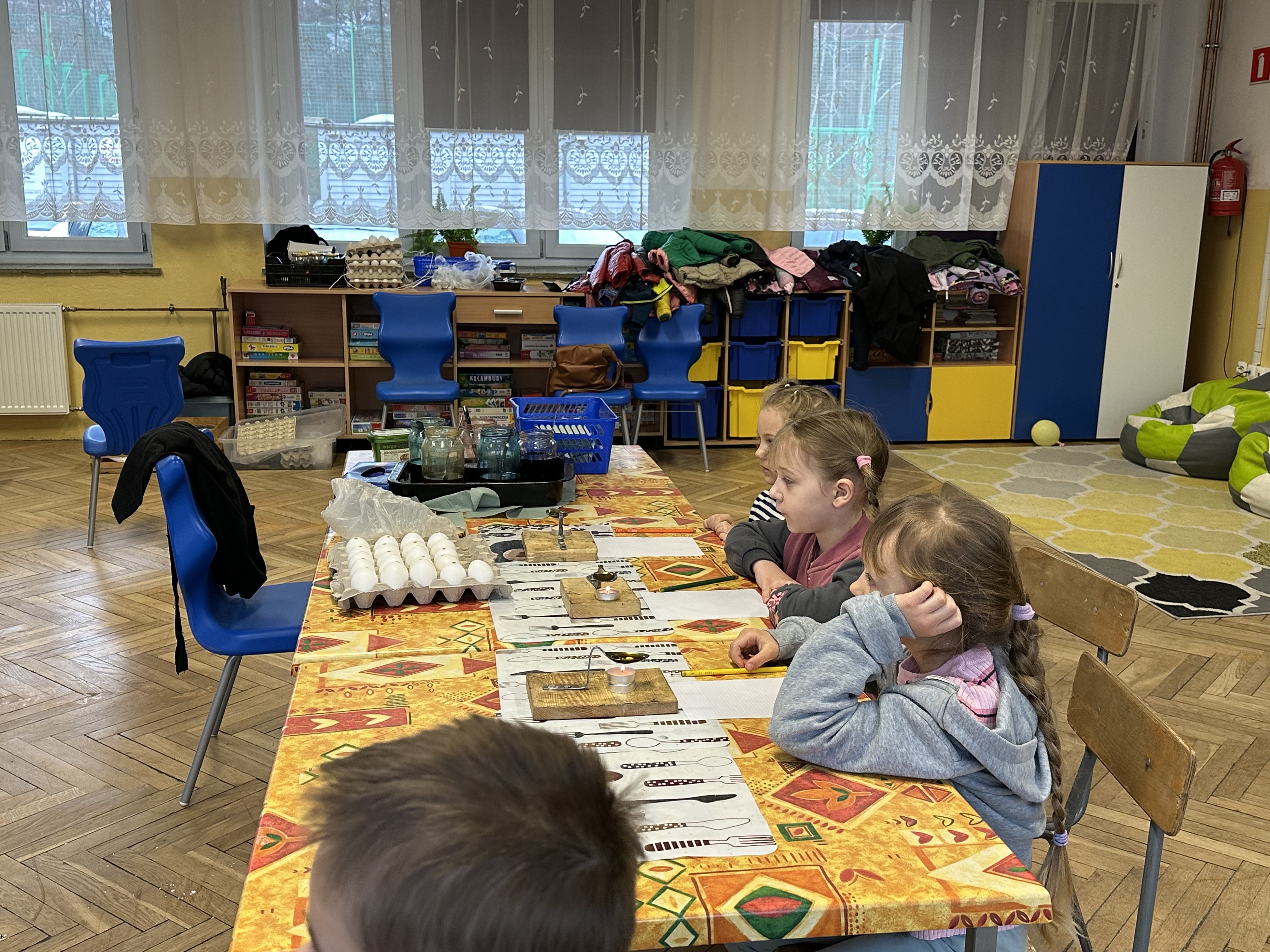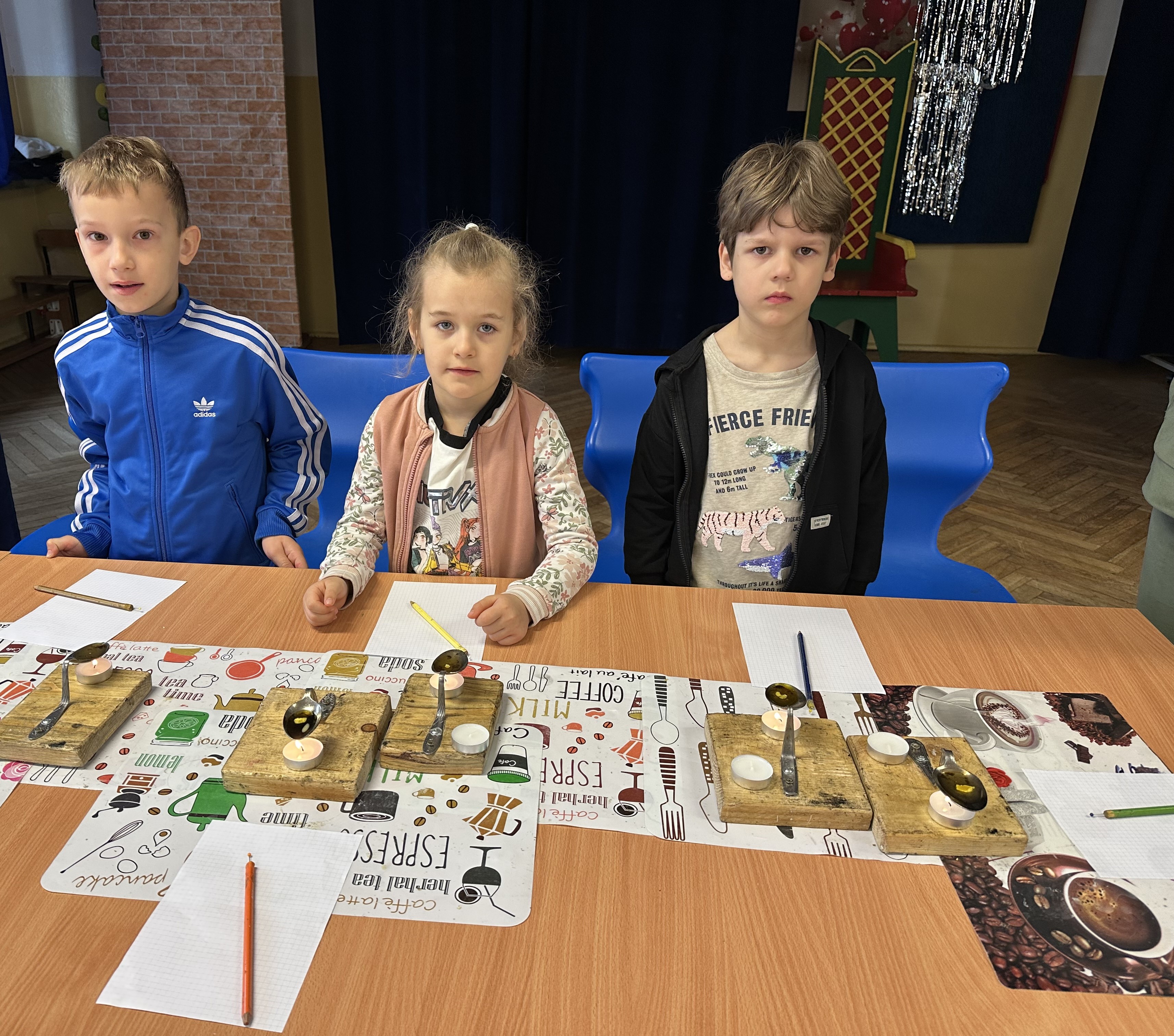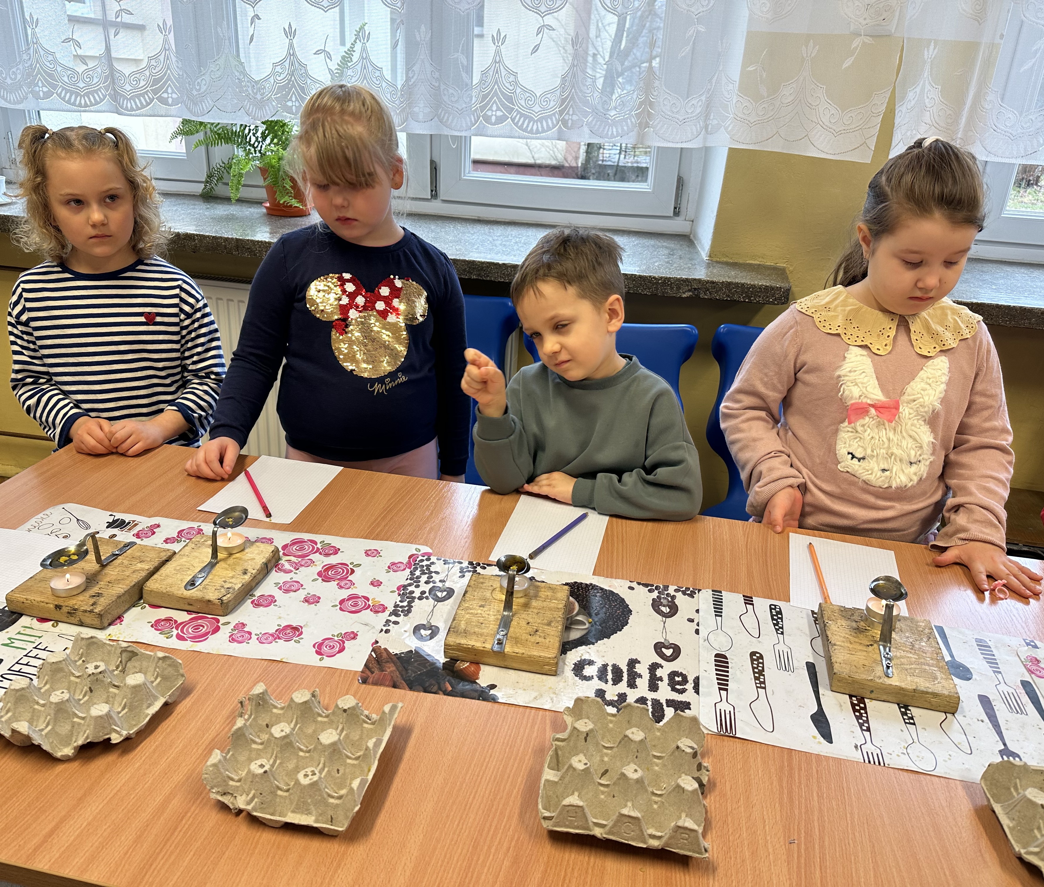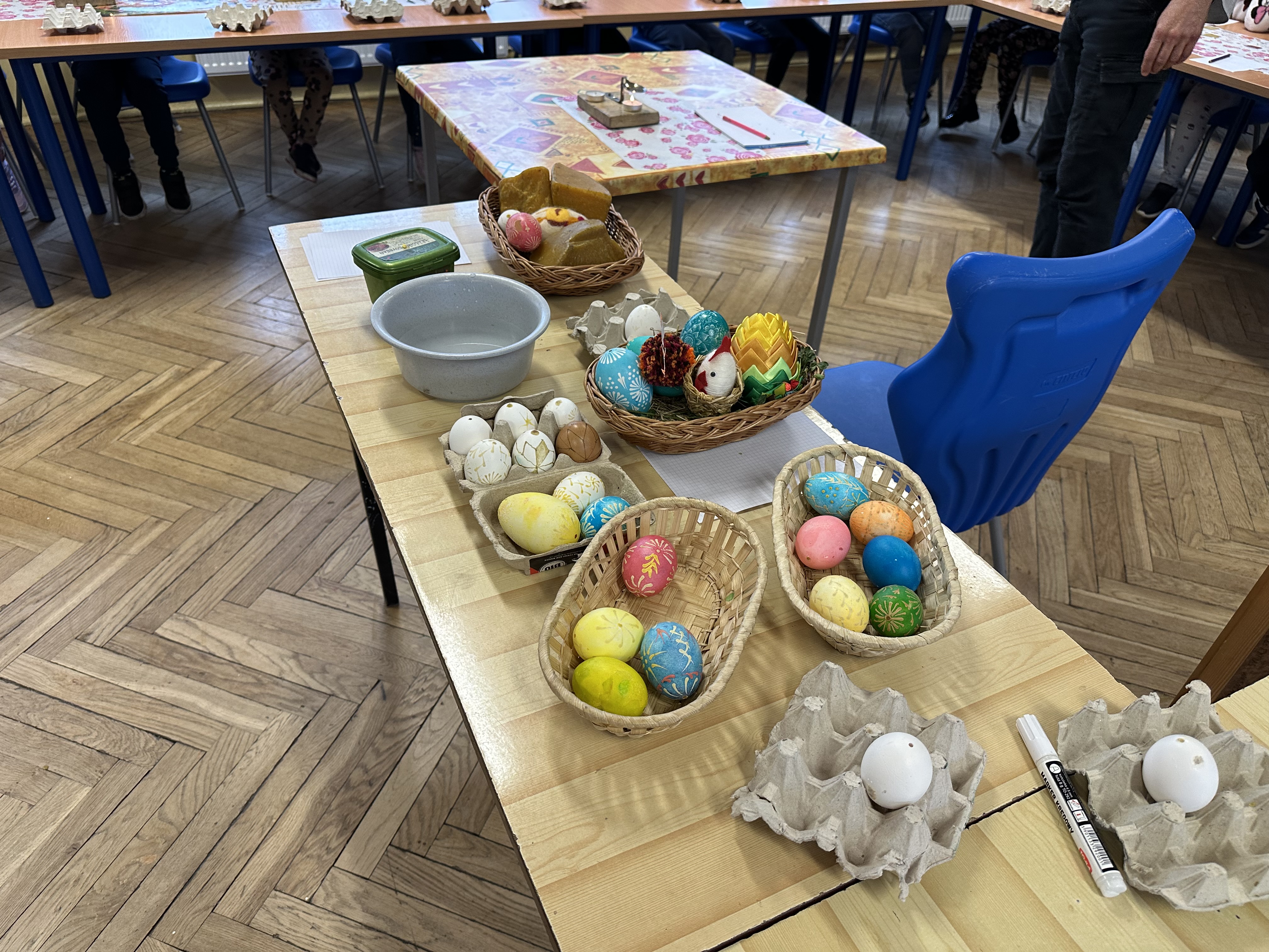 31 marca 2026 roku grupa „Pszczółek” uczestniczyła w warsztatach wielkanocnych zorganizowanych w Szkole Podstawowej nr 6 im. Władysława Broniewskiego w Trzebini pod hasłem „Przygoda z woskiem pszczelim i pisankami”. Celem spotkania było zapoznanie dzieci z techniką szpilkową wykorzystywaną do ozdabiania wydmuszek oraz przybliżenie tradycji wielkanocnych związanych z naszym regionem. Na początku warsztatów osoby prowadzące -pani Ania oraz pan Tytus -przywitały się ze starszakami i nawiązały w rozmowie do zwyczajów wielkanocnych. Następnie dzieci dowiedziały się, na czym polega technika szpilkowa i jak można ją wykorzystać do tworzenia pisanek. Prowadzący zaprezentowali kolejne etapy ozdabiania wydmuszek, zwracając szczególną uwagę na bezpieczeństwo podczas wykonywania prac. Dzieci z dużym zainteresowaniem obserwowały pokaz i chętnie słuchały wskazówek. Po części pokazowej uczestnicy przystąpili do samodzielnej pracy. Każde dziecko wykonało własną, wyjątkową pisankę techniką szpilkową. Warsztaty były dla dzieci nie tylko okazją do rozwijania zdolności manualnych i kreatywności, ale także do poznania wielkanocnych tradycji. Wykonane pisanki dzieci mogły zaprezentować kolegom i koleżankom w przedszkolu, a następnie zabrać do domu. Spotkanie przebiegło w miłej i radosnej atmosferze.