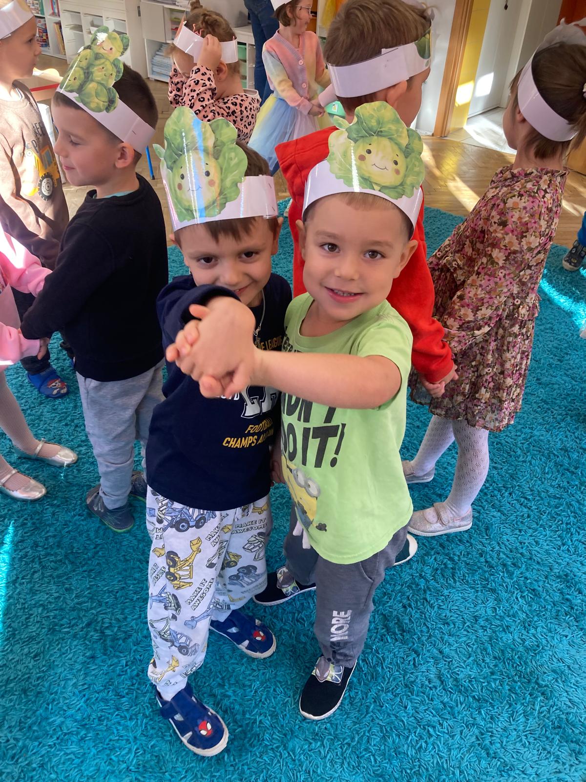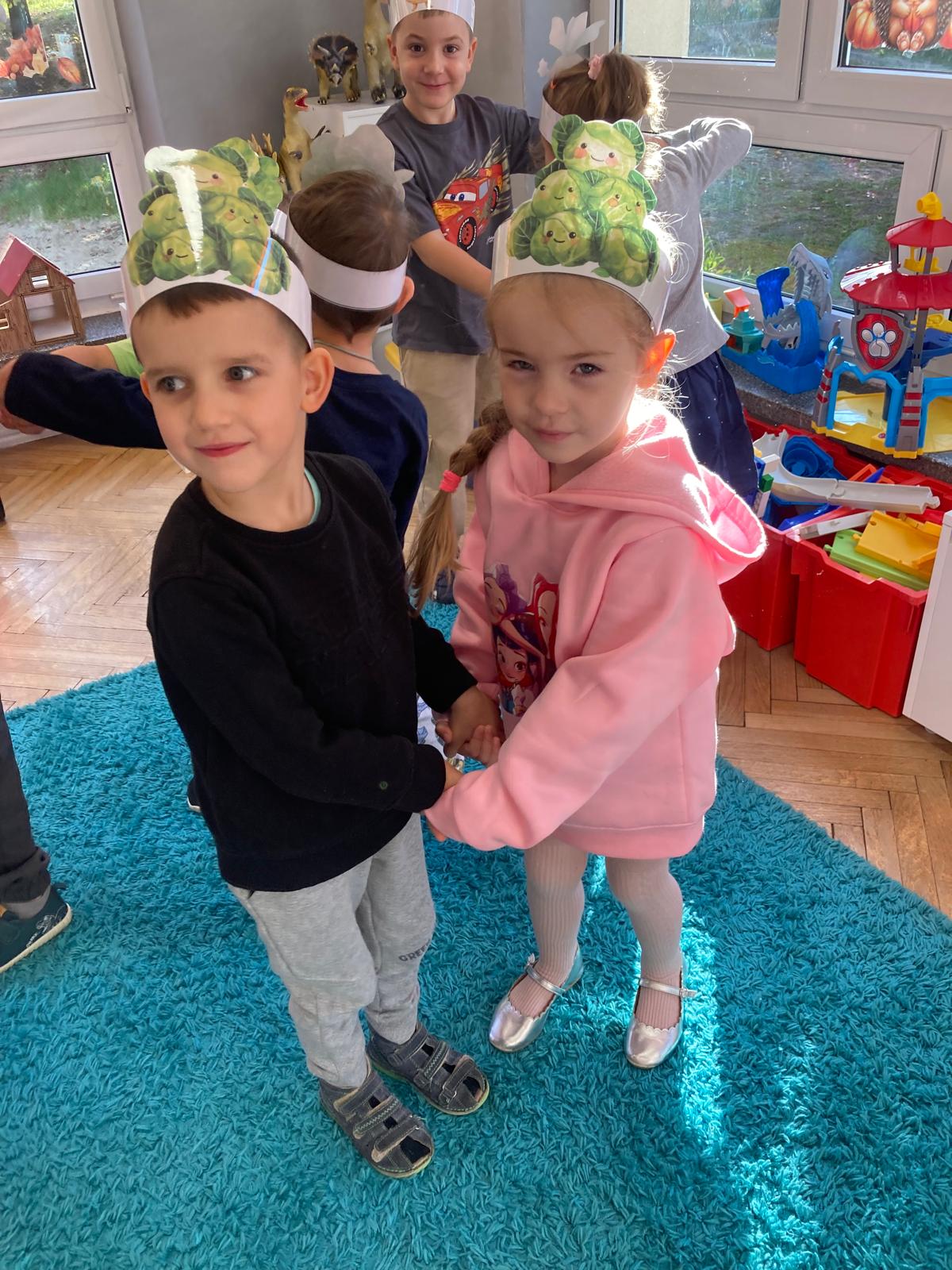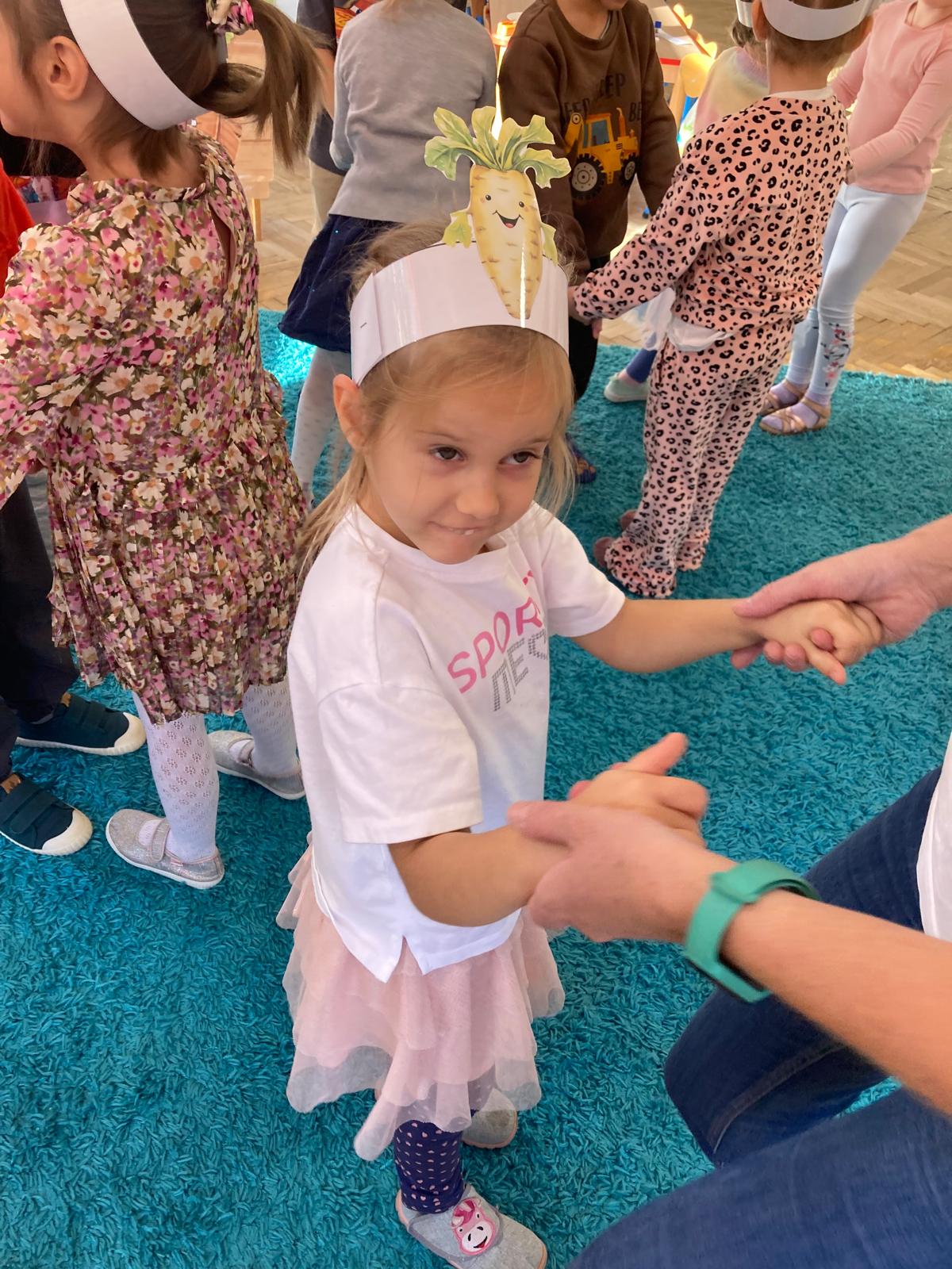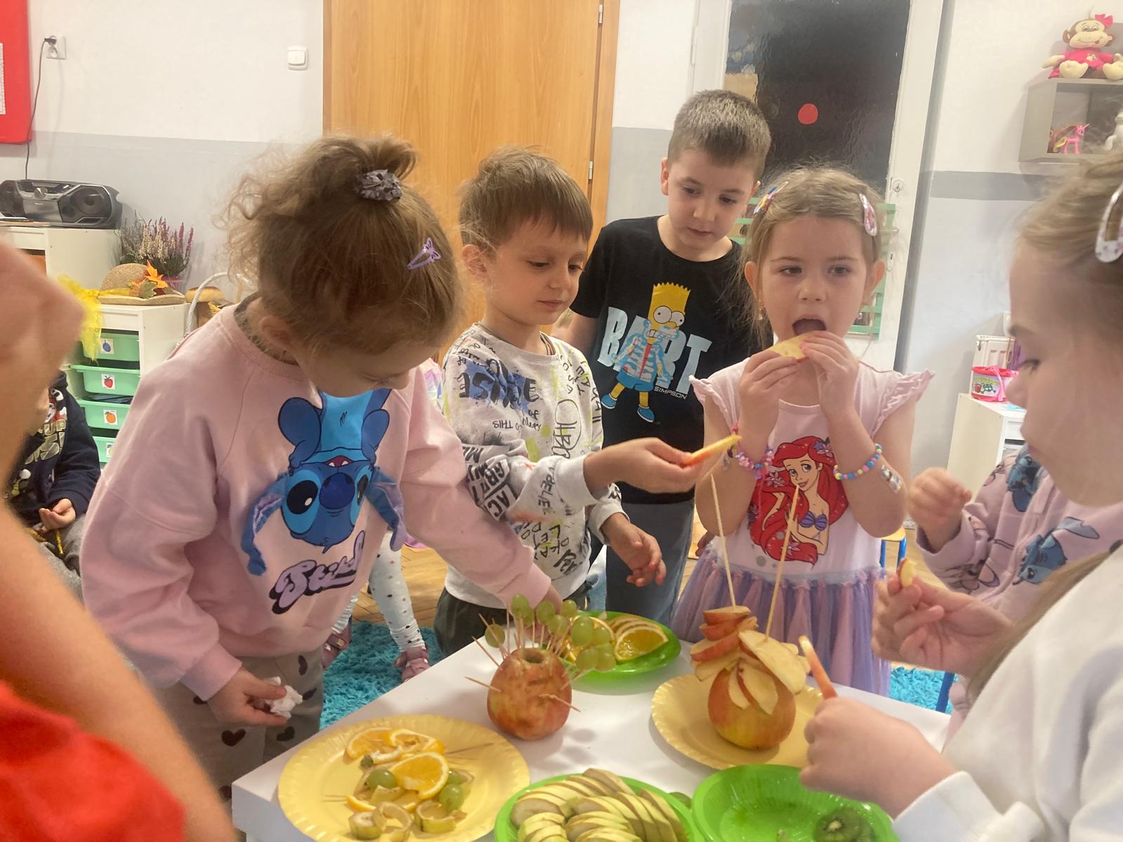 O witaminach zawartych w warzywach i owocach rozmawialiśmy w oparciu o wiersz Jana Brzechwy "Na sraganie".Tańczyliśmy jarzynowe tango a degustacja owocowych " dań" utrwalila wiedzę dzieci o ich roli w zyciu człowieka.
