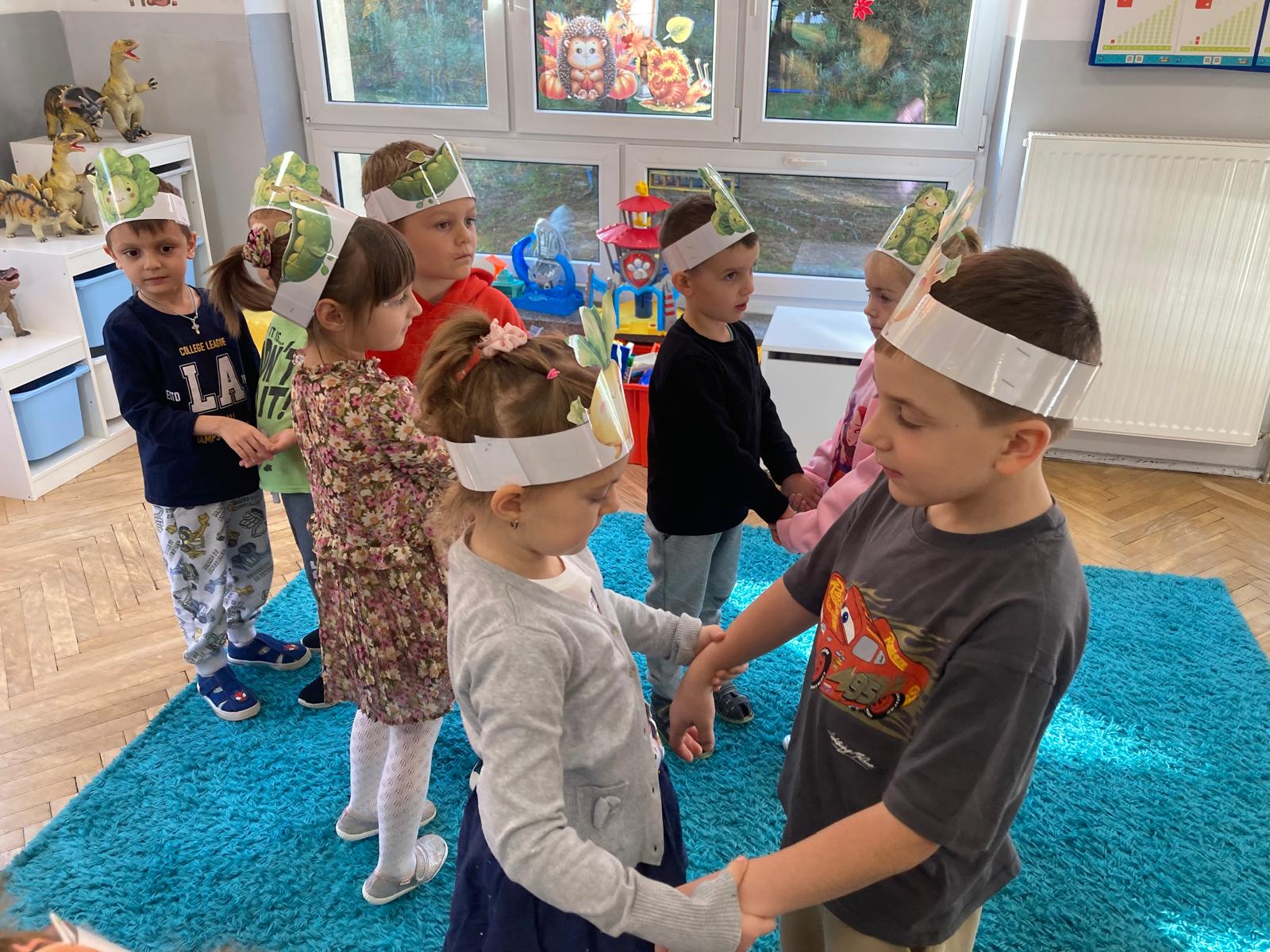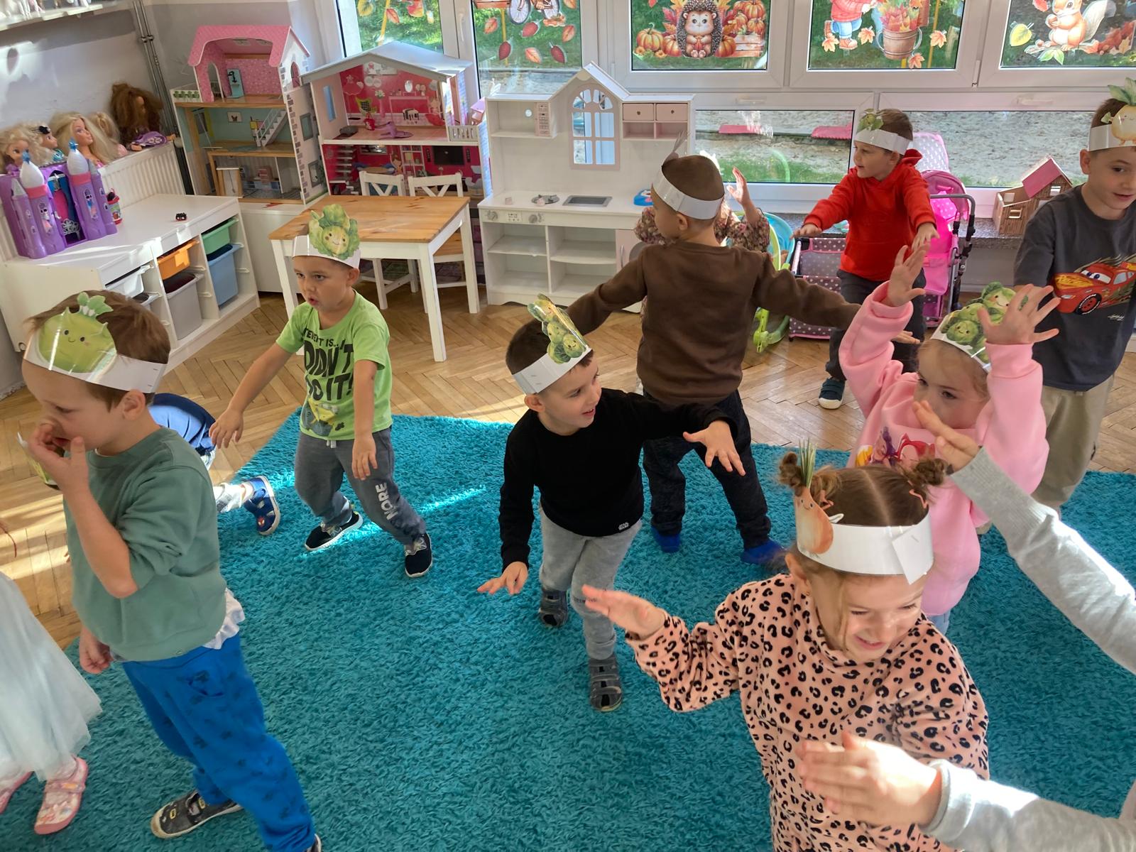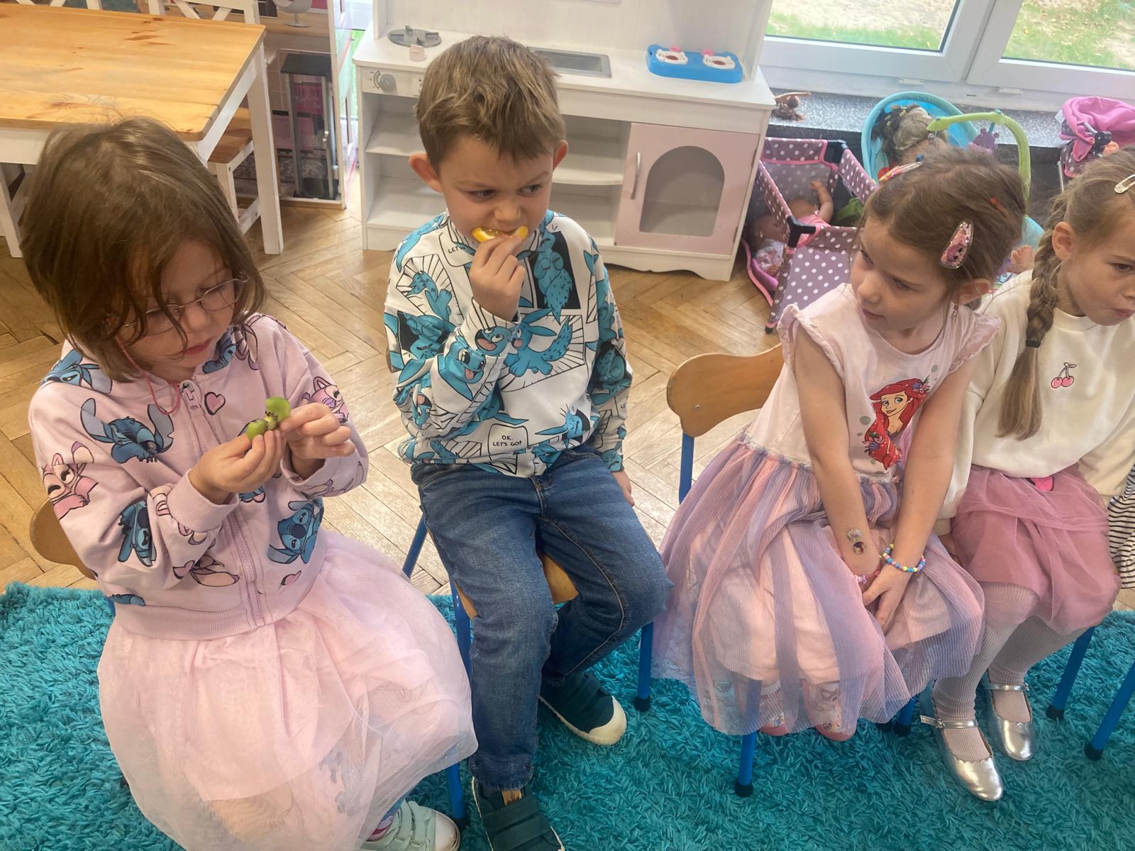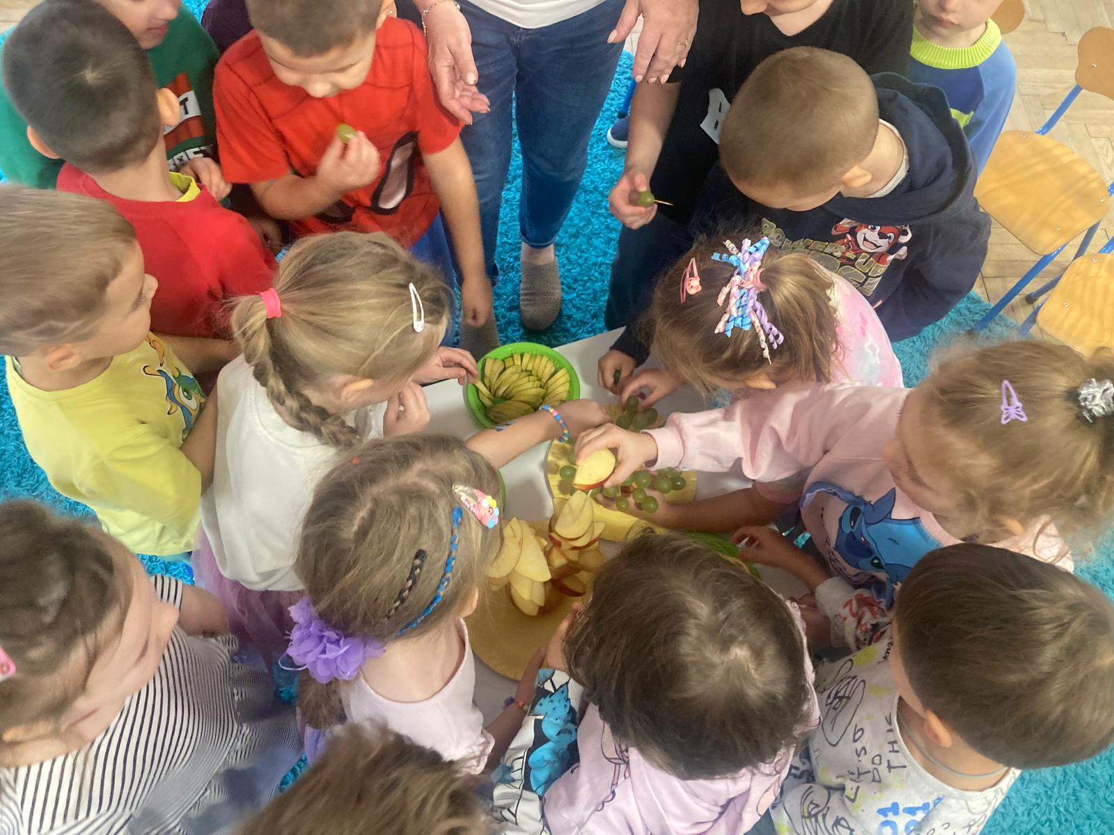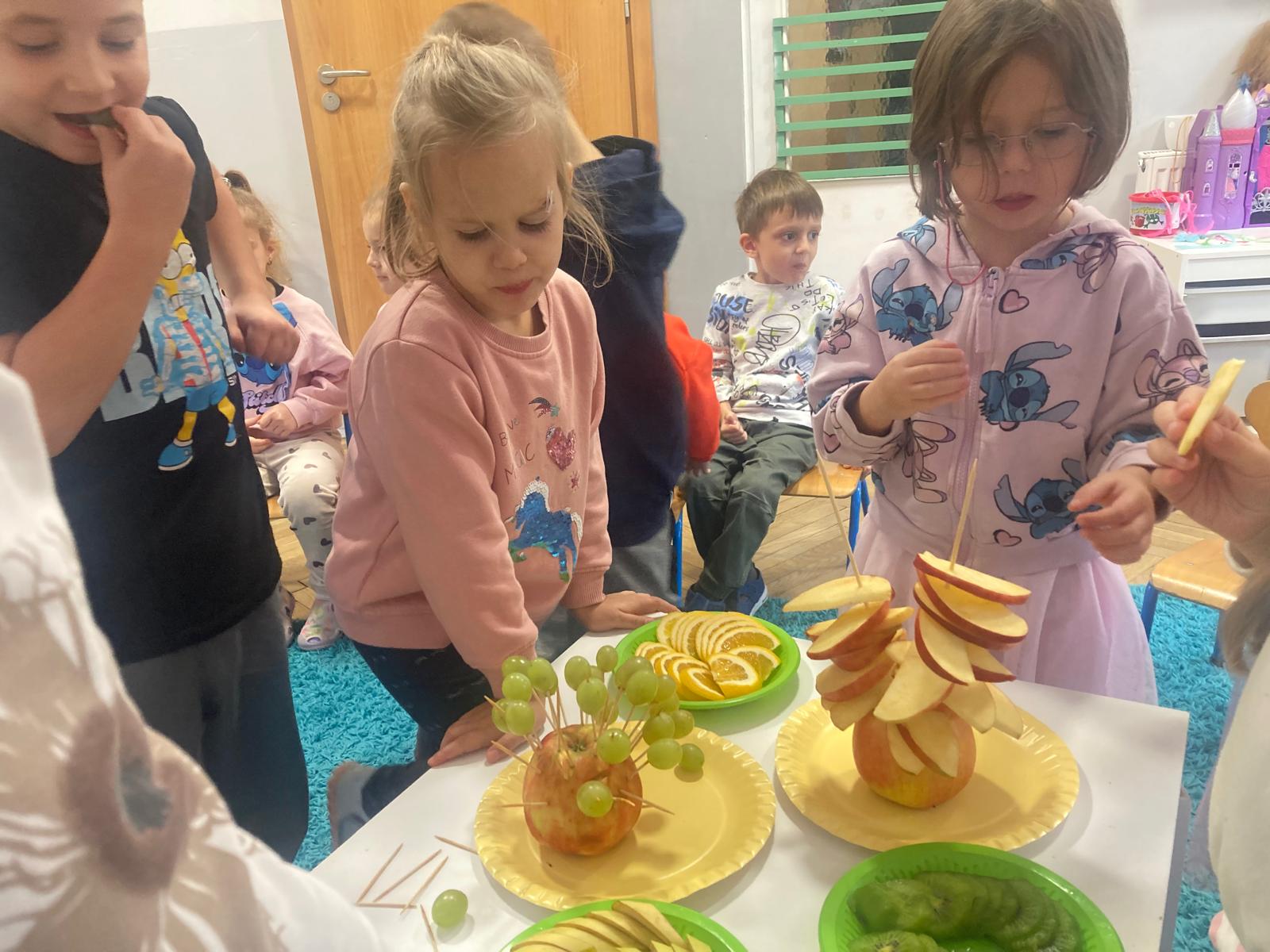 O witaminach zawartych w warzywach i owocach rozmawialiśmy w oparciu o wiersz Jana Brzechwy "Na sraganie".Tańczyliśmy jarzynowe tango a degustacja owocowych " dań" utrwalila wiedzę dzieci o ich roli w zyciu człowieka.