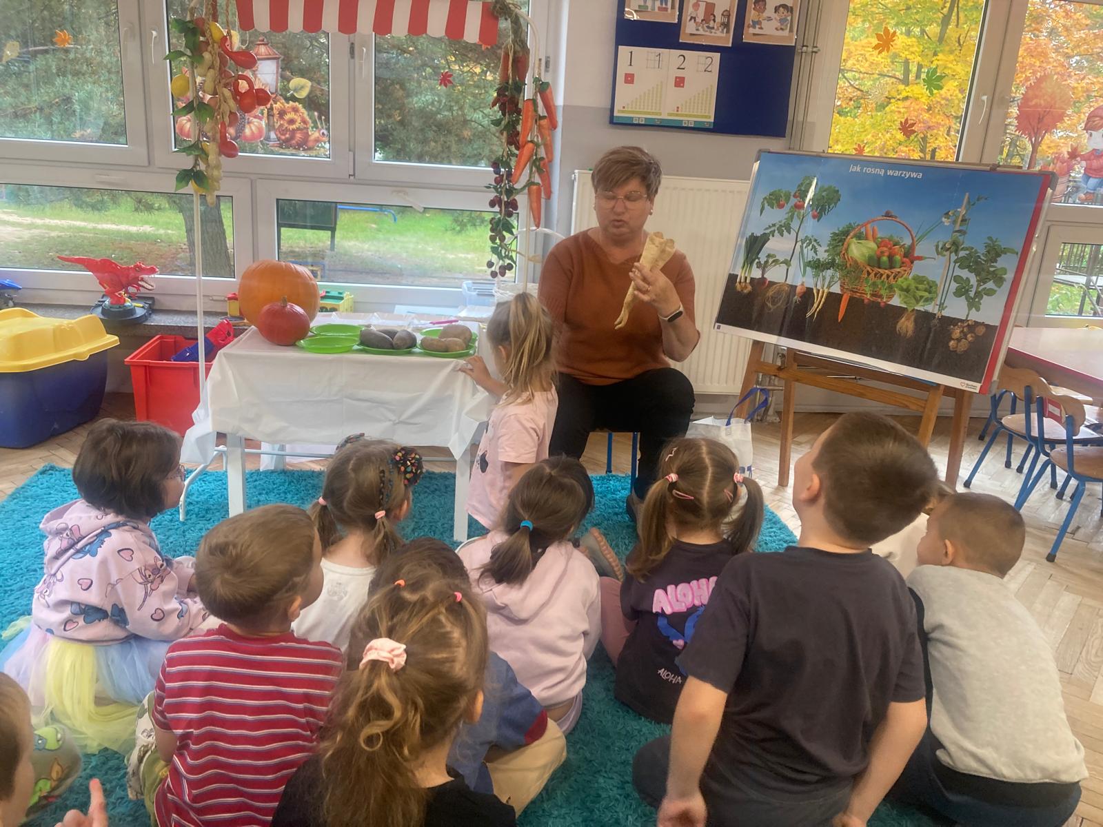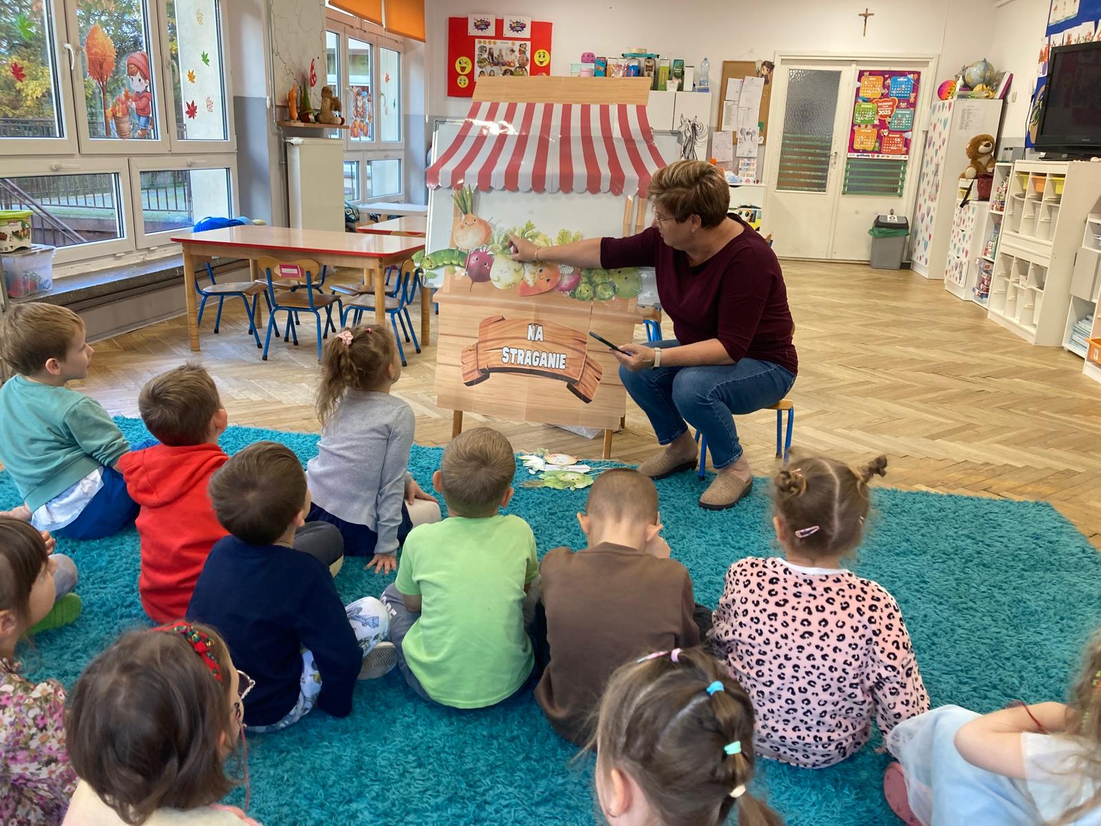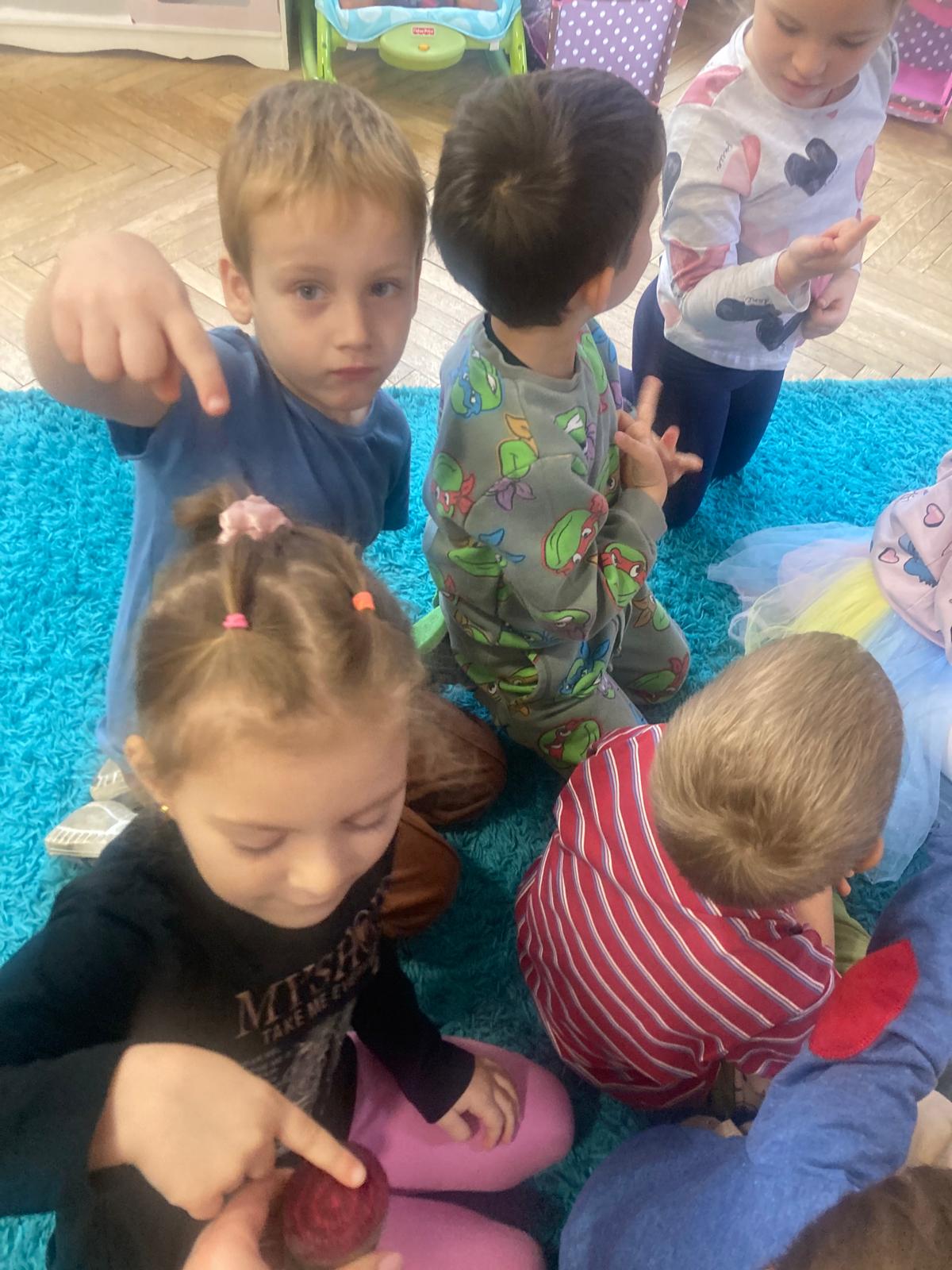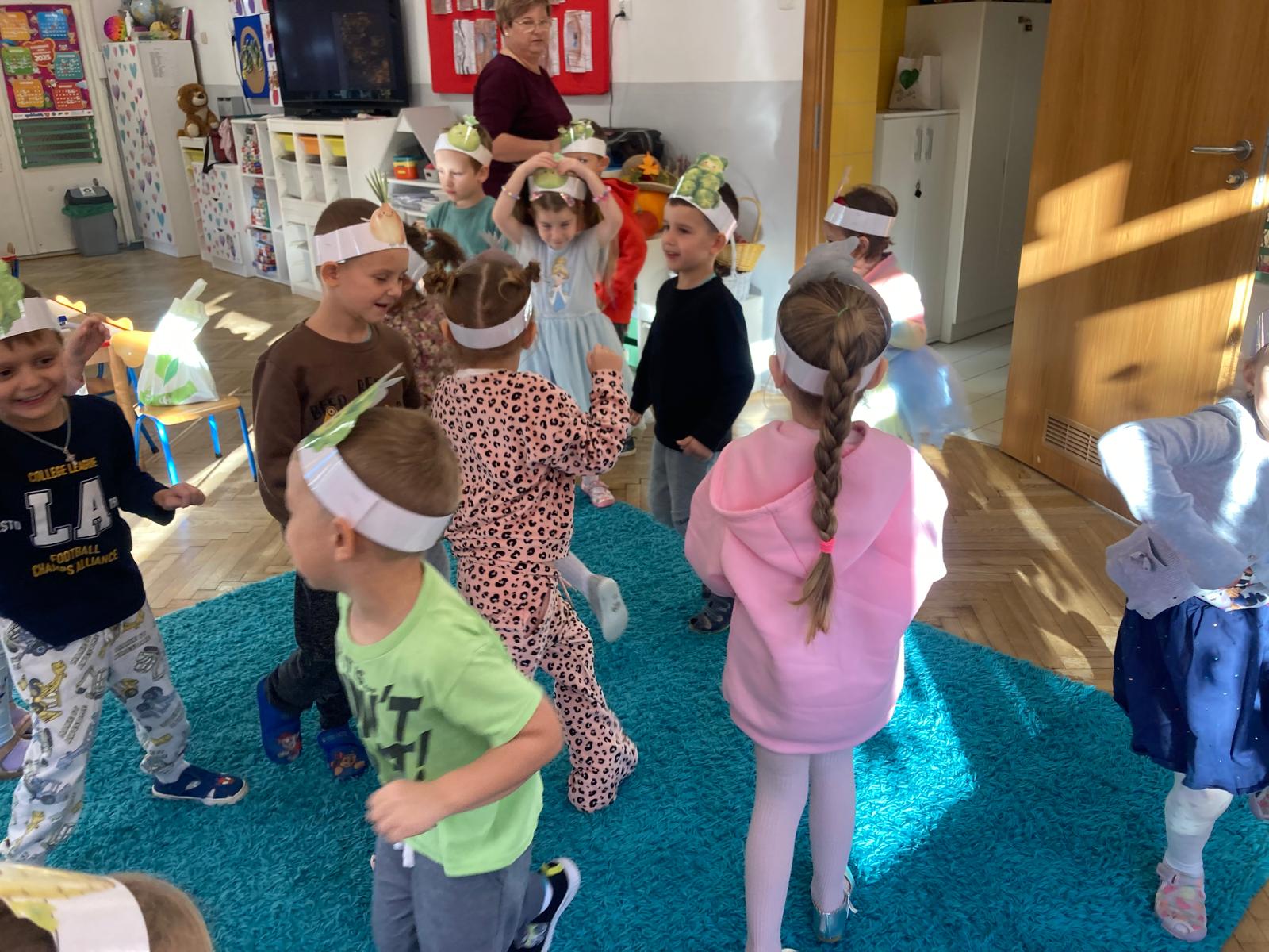 O witaminach zawartych w warzywach i owocach rozmawialiśmy w oparciu o wiersz Jana Brzechwy "Na sraganie".Tańczyliśmy jarzynowe tango a degustacja owocowych " dań" utrwalila wiedzę dzieci o ich roli w zyciu człowieka.