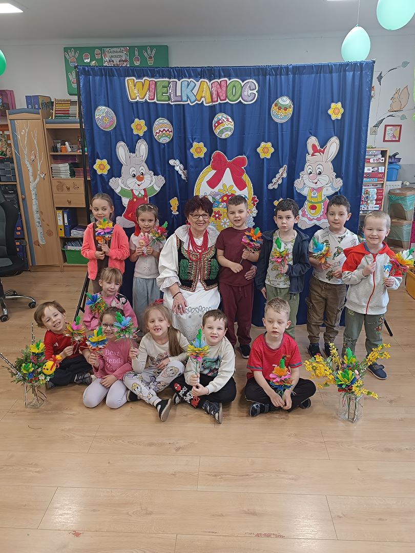 Podczas wizyty Pani Zosia opowiedziała dzieciom o stroju ludowym, który miała na sobie. Był to strój krakowski, a dzieci mogły dowiedzieć się, z jakich elementów się składa i jakie mają one znaczenie. W dalszej części spotkania pani Zofia mówiła o zwyczajach wielkanocnych charakterystycznych dla naszego regionu, zwracając szczególną uwagę na tradycję wykonywania palm oraz ich symbolikę.